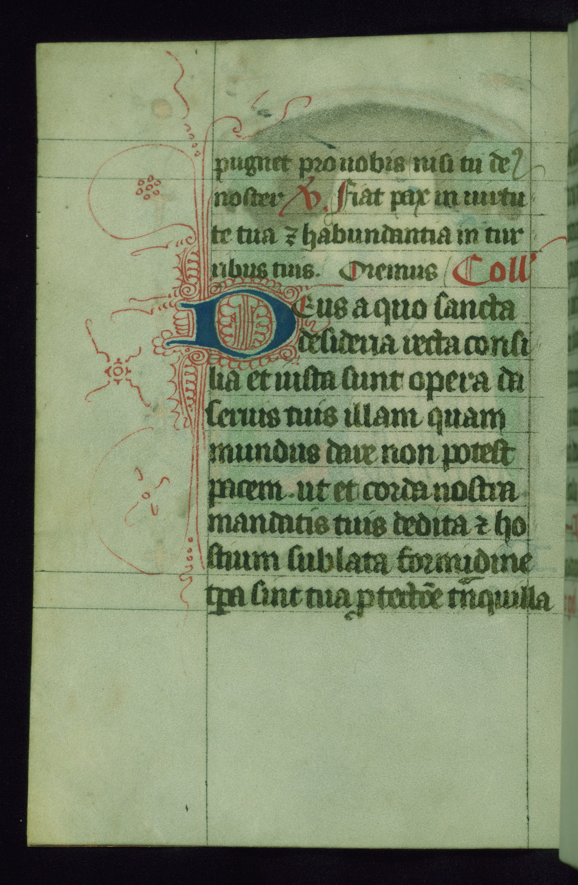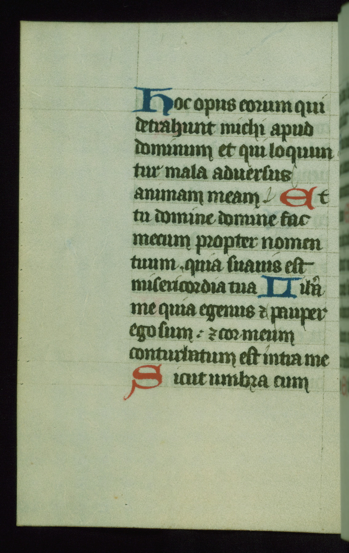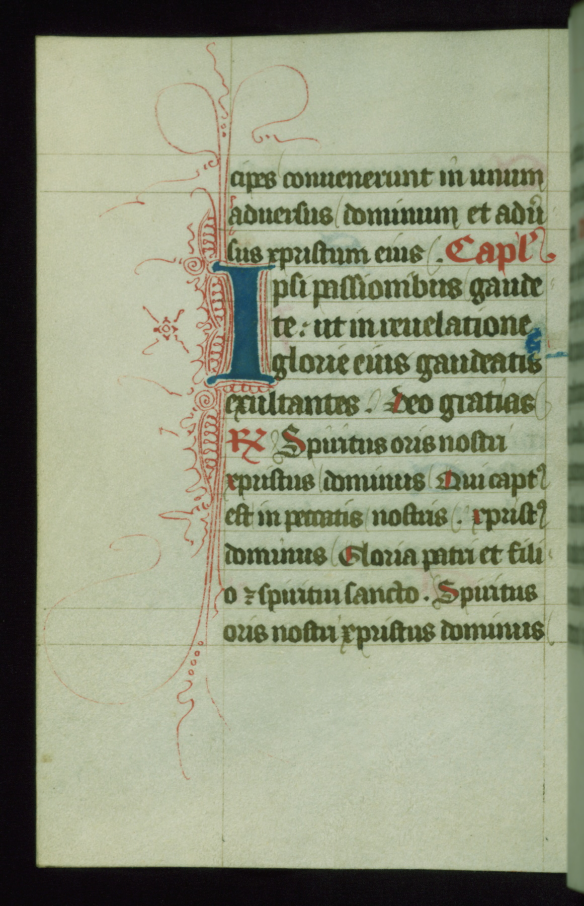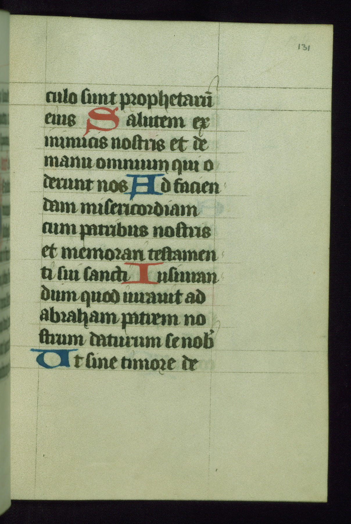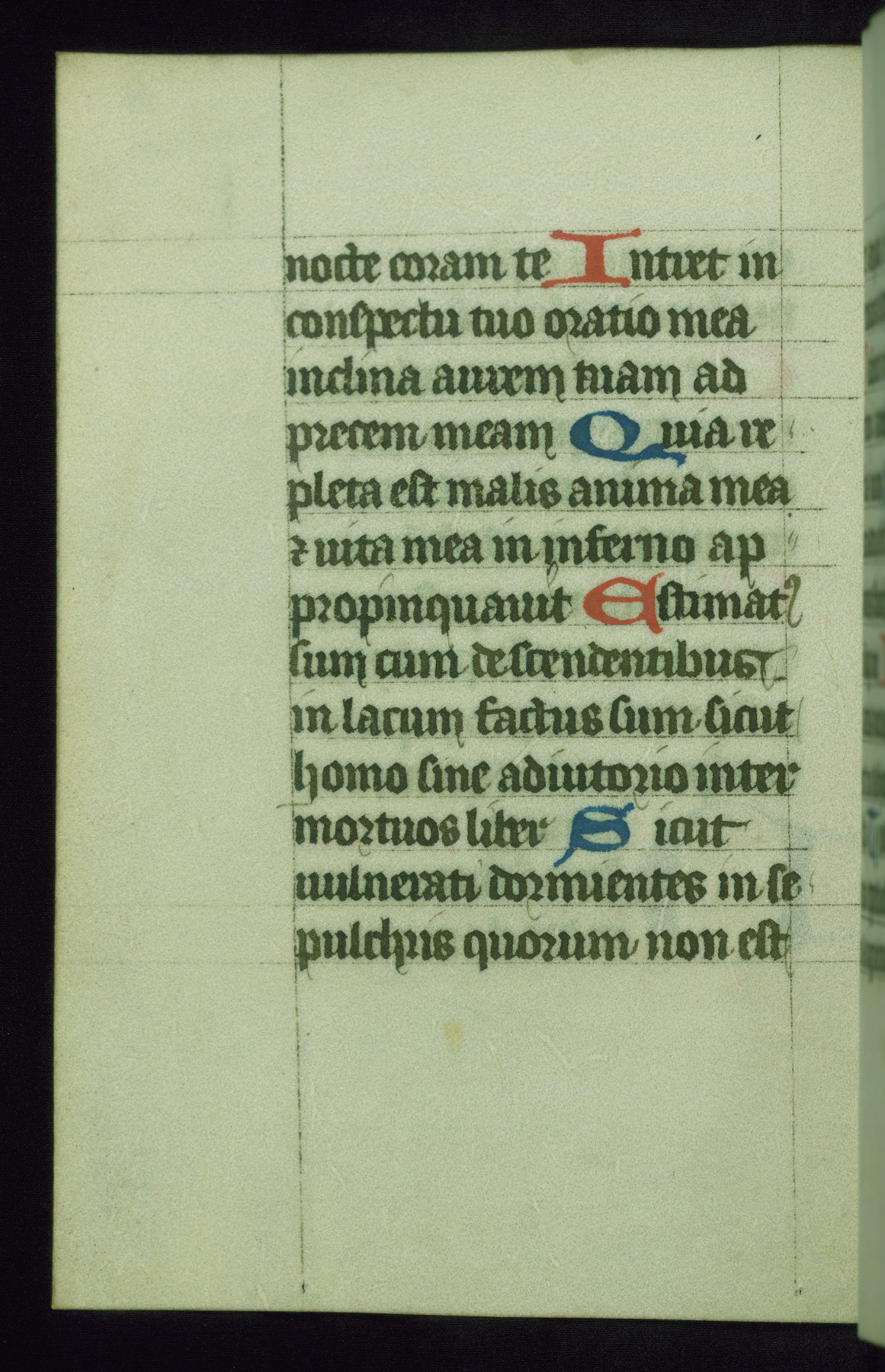 This prayer book was produced ca. 1430-40, likely in Brabant, but the contents of the calendar point to Tournai and Cambrai, and the Office of the Dead is for the use of Liège. North Netherlandish influence, possibly connected with works by the Masters of the Gold Scrolls, is suggested by the style and iconography of its images. The manuscript is notable for its large number of miniatures--forty-eight in total--as well as the sense of narrative within them, and the diversity of the suffrages they illustrate is striking. That the original owner had a strong interest in the Passion is evident in both the choice of texts and the images. The manuscript was well used, and accrued not only additional prayers and suffrages, but devotional objects as well: a pilgrim's badge was once attached to the corner of the image for the suffrage to relics on fol. 160r.
