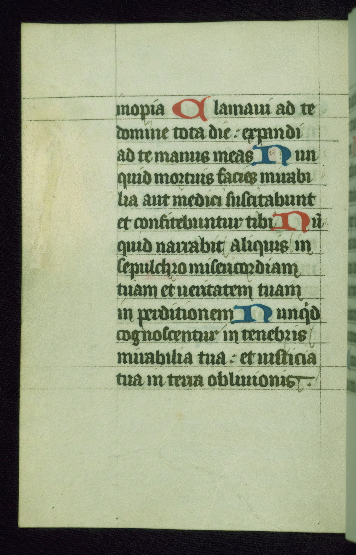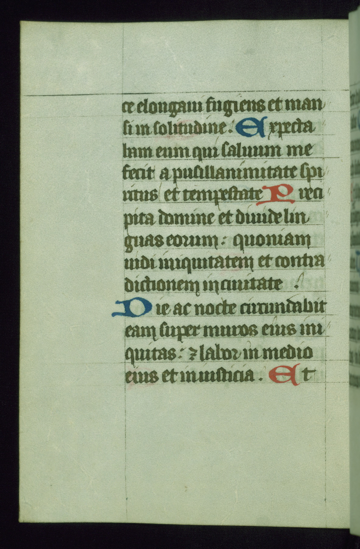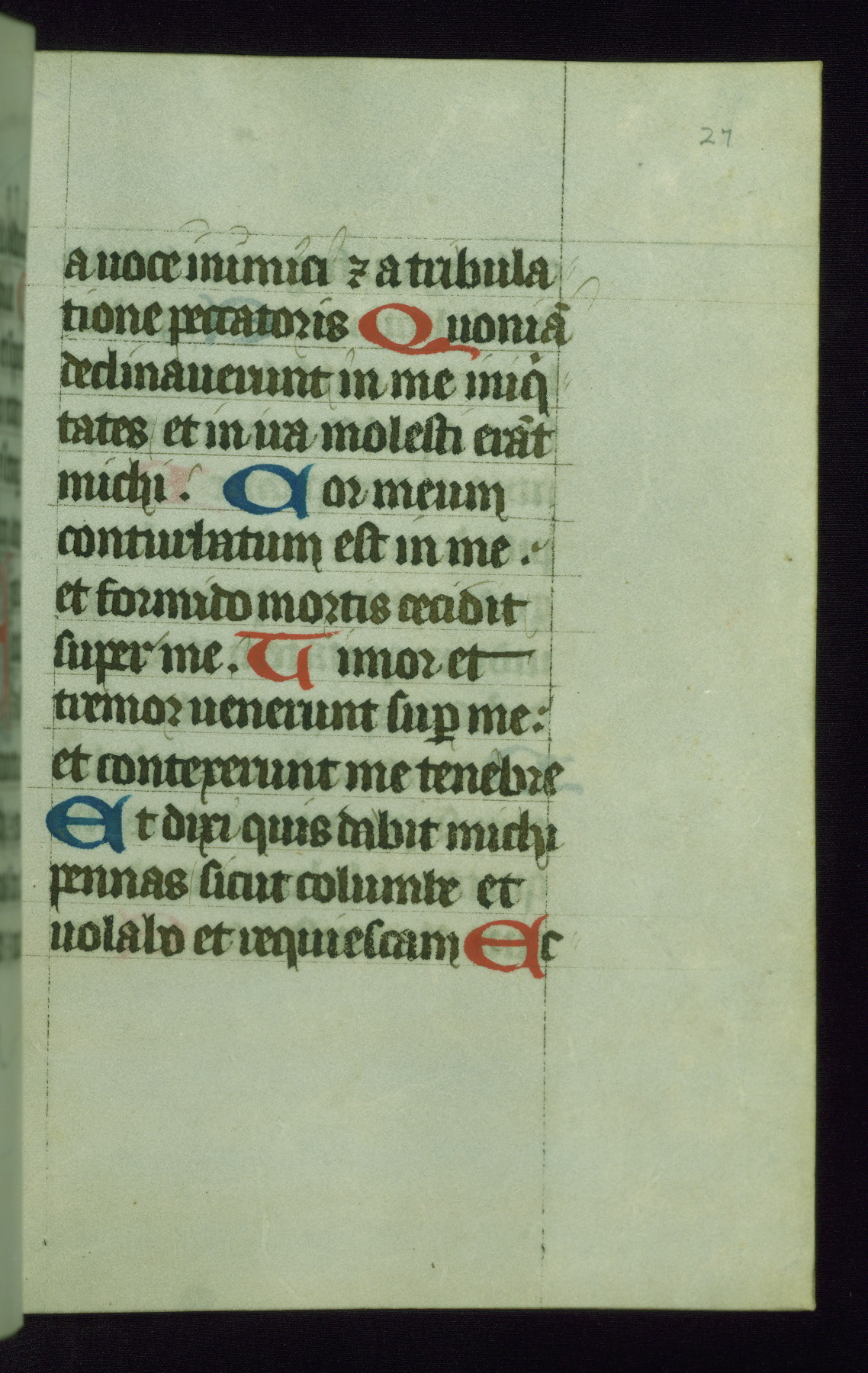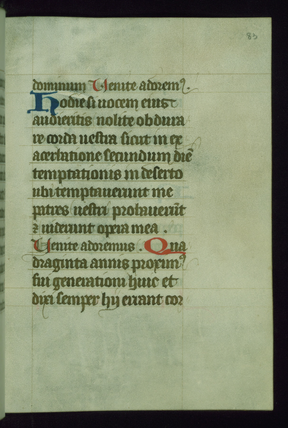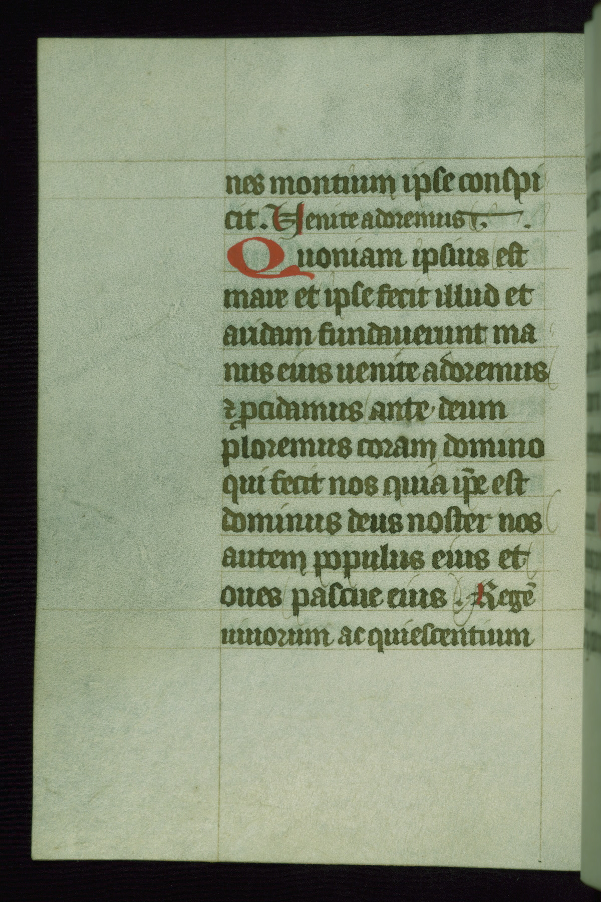 This prayer book was produced ca. 1430-40, likely in Brabant, but the contents of the calendar point to Tournai and Cambrai, and the Office of the Dead is for the use of Liège. North Netherlandish influence, possibly connected with works by the Masters of the Gold Scrolls, is suggested by the style and iconography of its images. The manuscript is notable for its large number of miniatures--forty-eight in total--as well as the sense of narrative within them, and the diversity of the suffrages they illustrate is striking. That the original owner had a strong interest in the Passion is evident in both the choice of texts and the images. The manuscript was well used, and accrued not only additional prayers and suffrages, but devotional objects as well: a pilgrim's badge was once attached to the corner of the image for the suffrage to relics on fol. 160r.