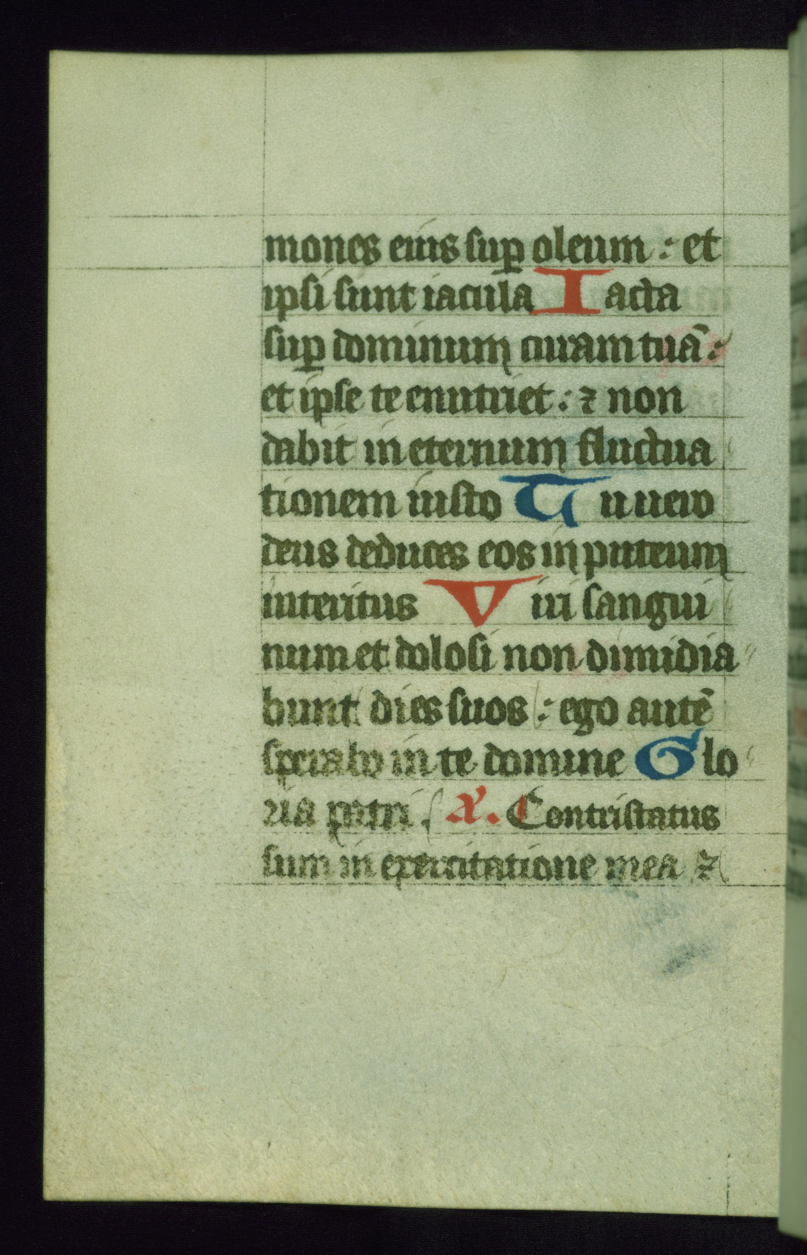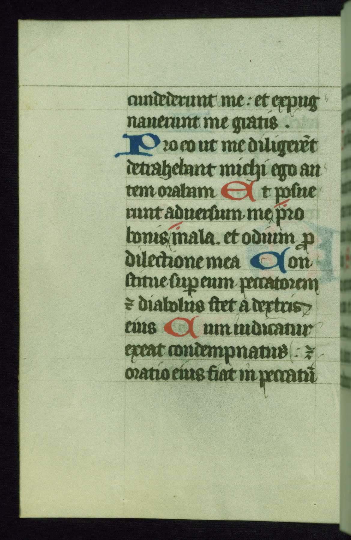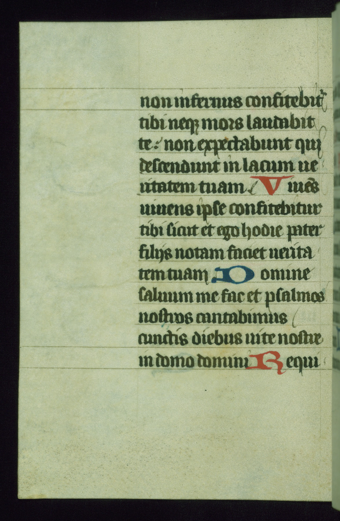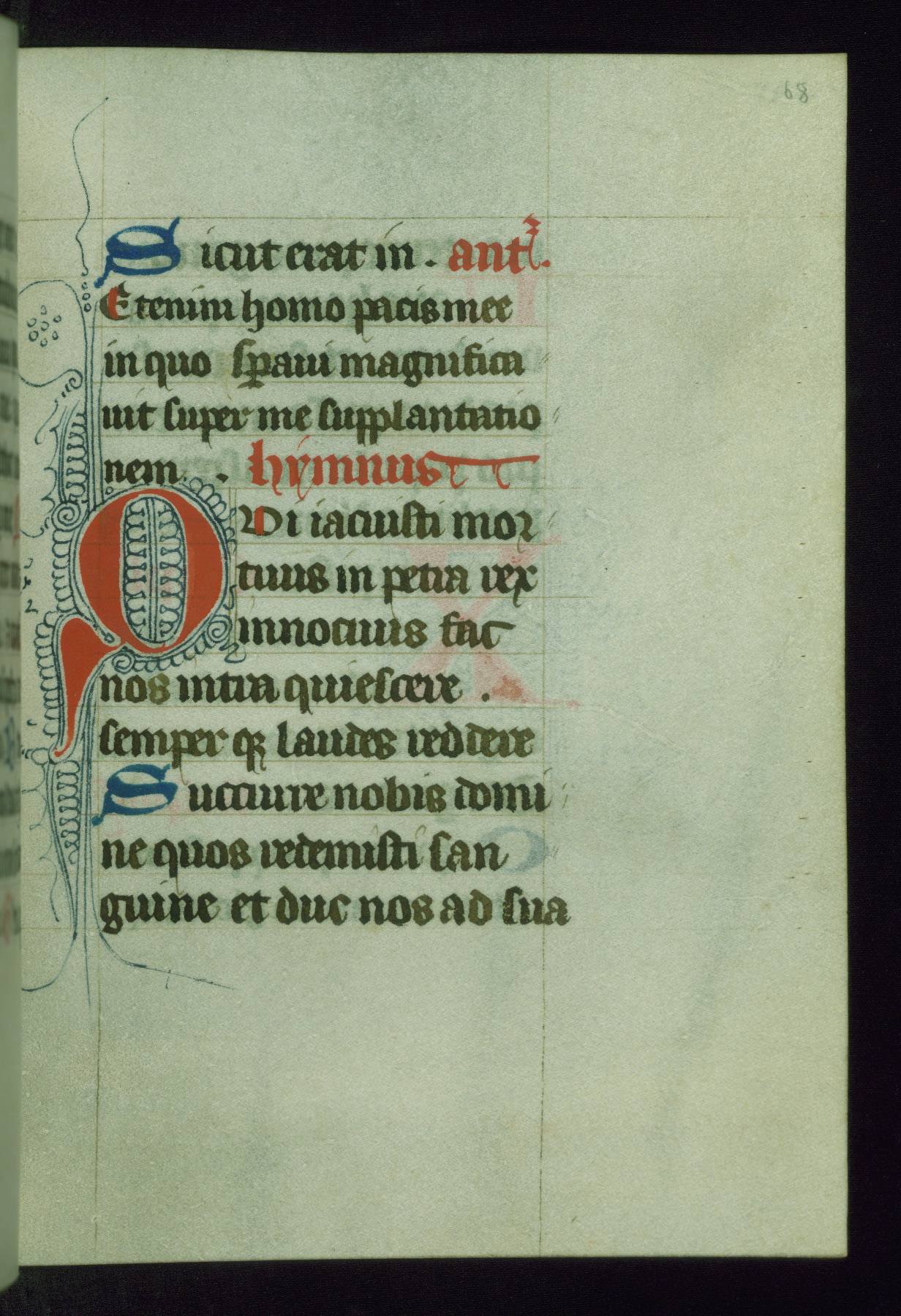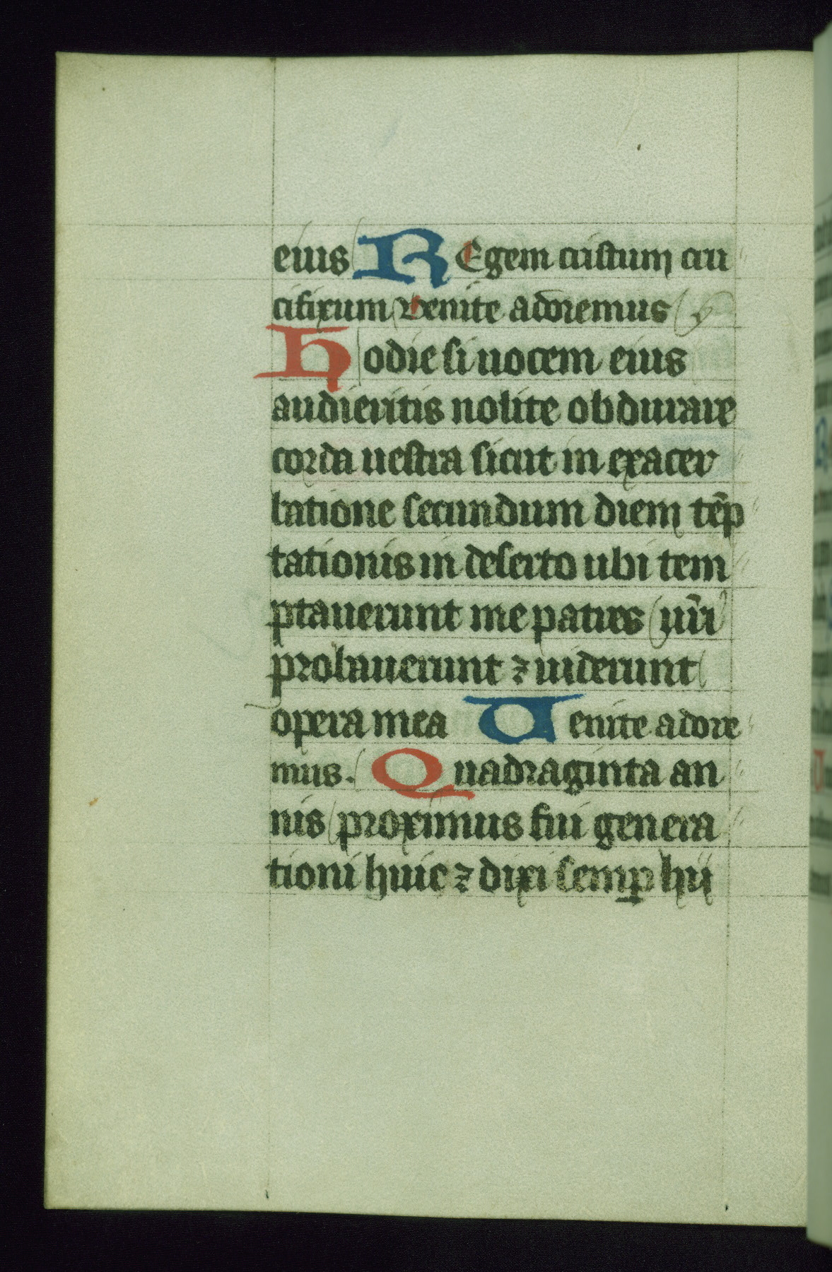 This prayer book was produced ca. 1430-40, likely in Brabant, but the contents of the calendar point to Tournai and Cambrai, and the Office of the Dead is for the use of Liège. North Netherlandish influence, possibly connected with works by the Masters of the Gold Scrolls, is suggested by the style and iconography of its images. The manuscript is notable for its large number of miniatures--forty-eight in total--as well as the sense of narrative within them, and the diversity of the suffrages they illustrate is striking. That the original owner had a strong interest in the Passion is evident in both the choice of texts and the images. The manuscript was well used, and accrued not only additional prayers and suffrages, but devotional objects as well: a pilgrim's badge was once attached to the corner of the image for the suffrage to relics on fol. 160r.