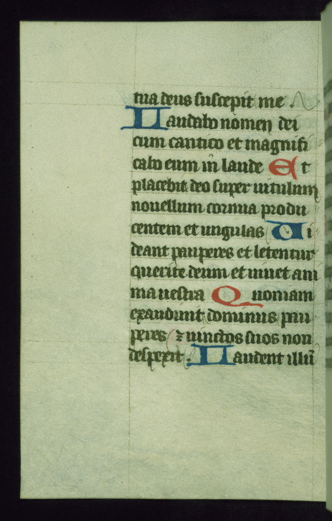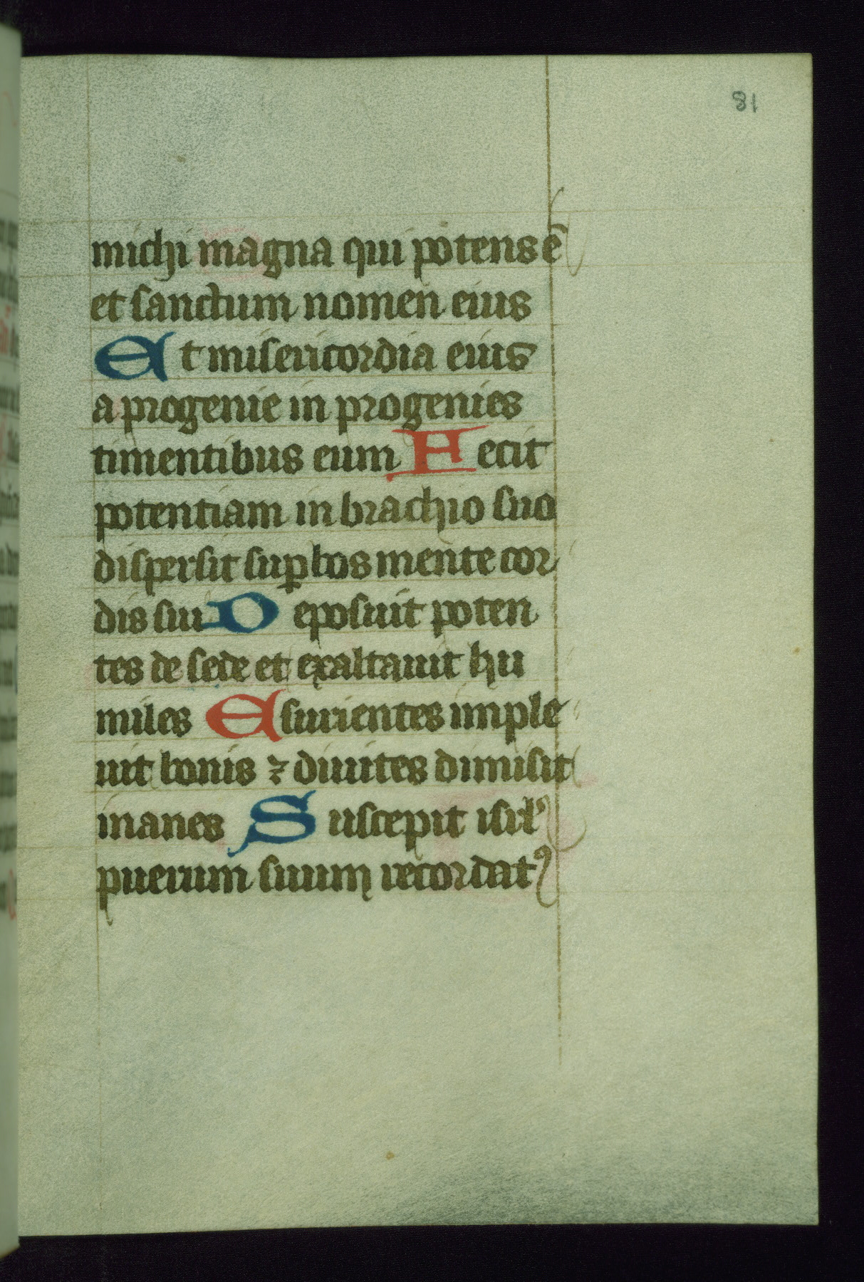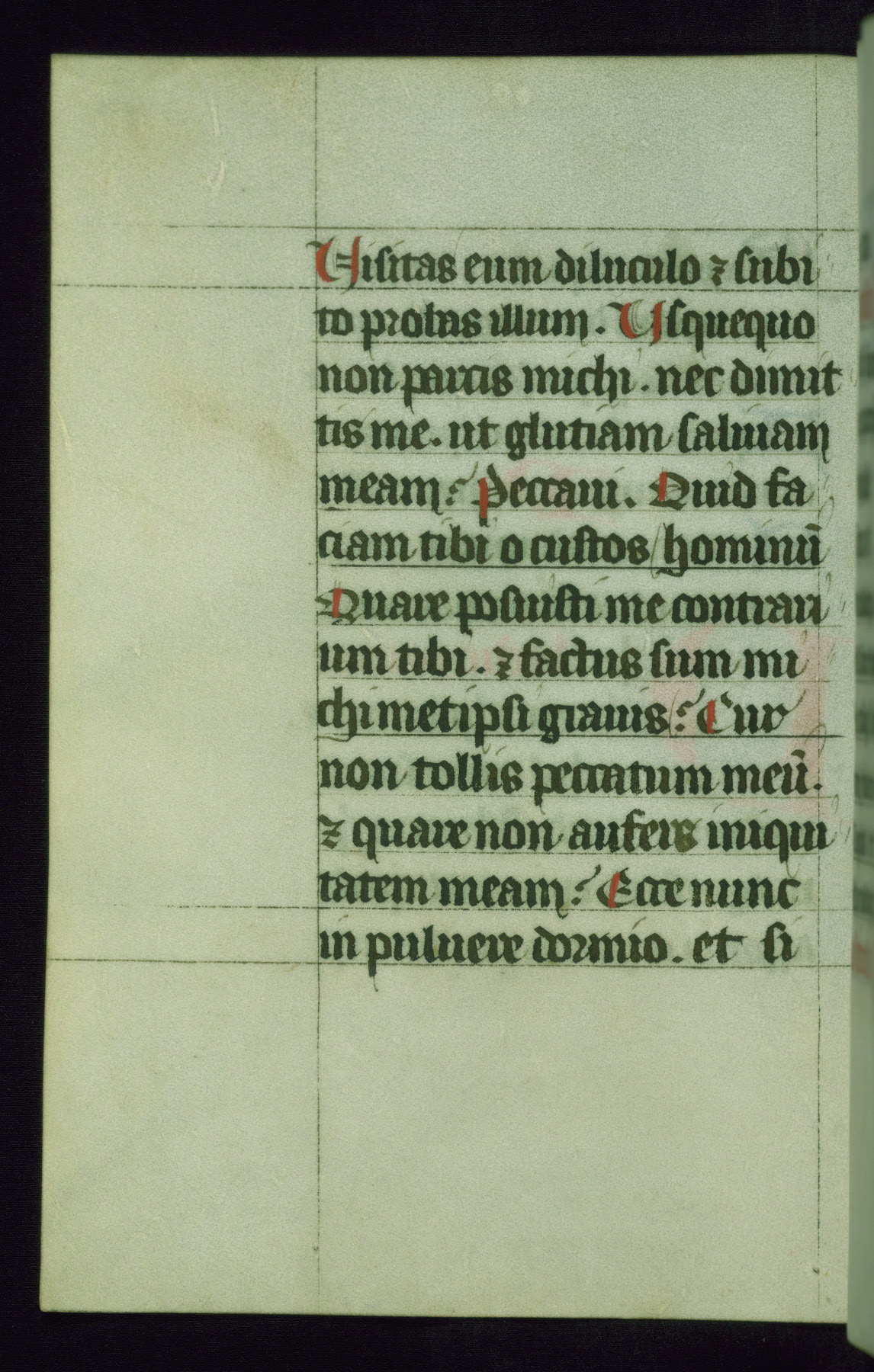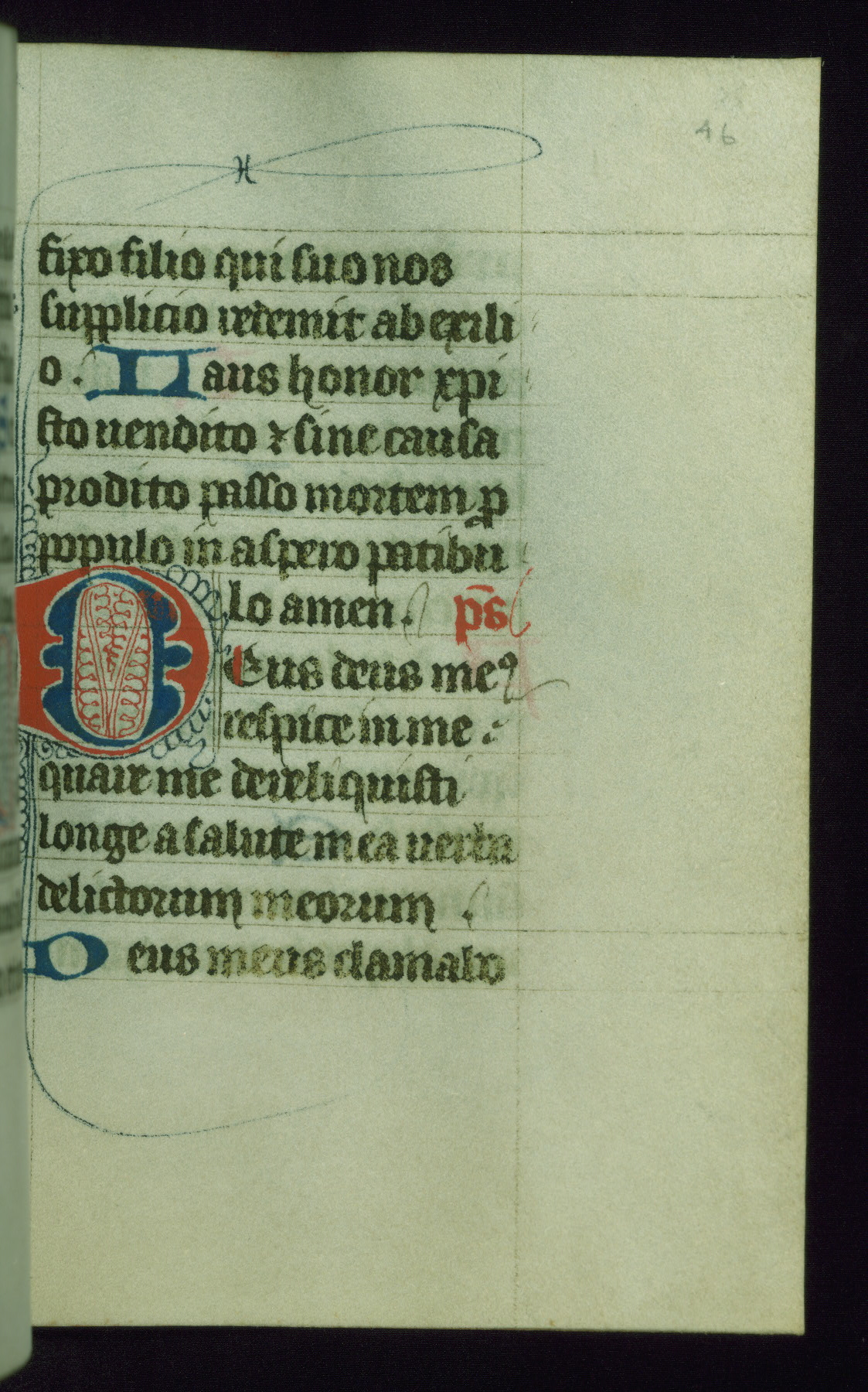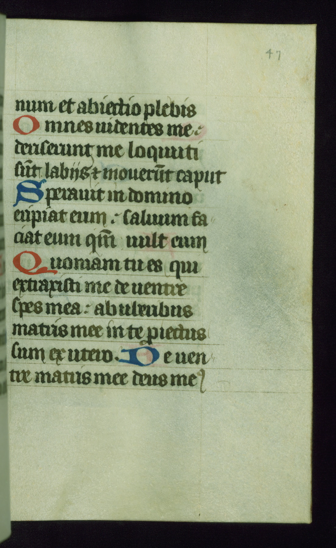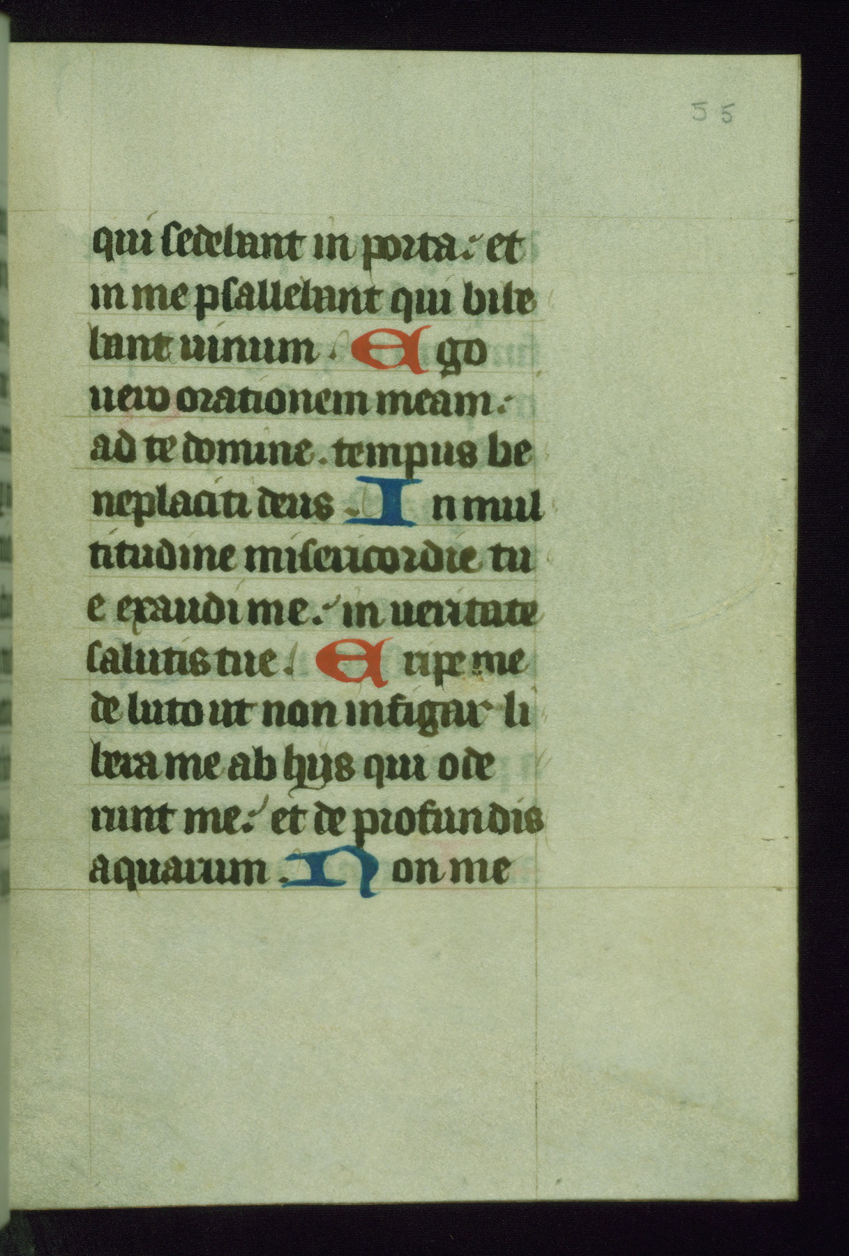 This prayer book was produced ca. 1430-40, likely in Brabant, but the contents of the calendar point to Tournai and Cambrai, and the Office of the Dead is for the use of Liège. North Netherlandish influence, possibly connected with works by the Masters of the Gold Scrolls, is suggested by the style and iconography of its images. The manuscript is notable for its large number of miniatures--forty-eight in total--as well as the sense of narrative within them, and the diversity of the suffrages they illustrate is striking. That the original owner had a strong interest in the Passion is evident in both the choice of texts and the images. The manuscript was well used, and accrued not only additional prayers and suffrages, but devotional objects as well: a pilgrim's badge was once attached to the corner of the image for the suffrage to relics on fol. 160r.