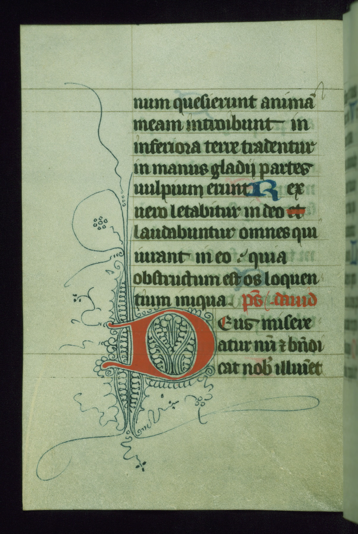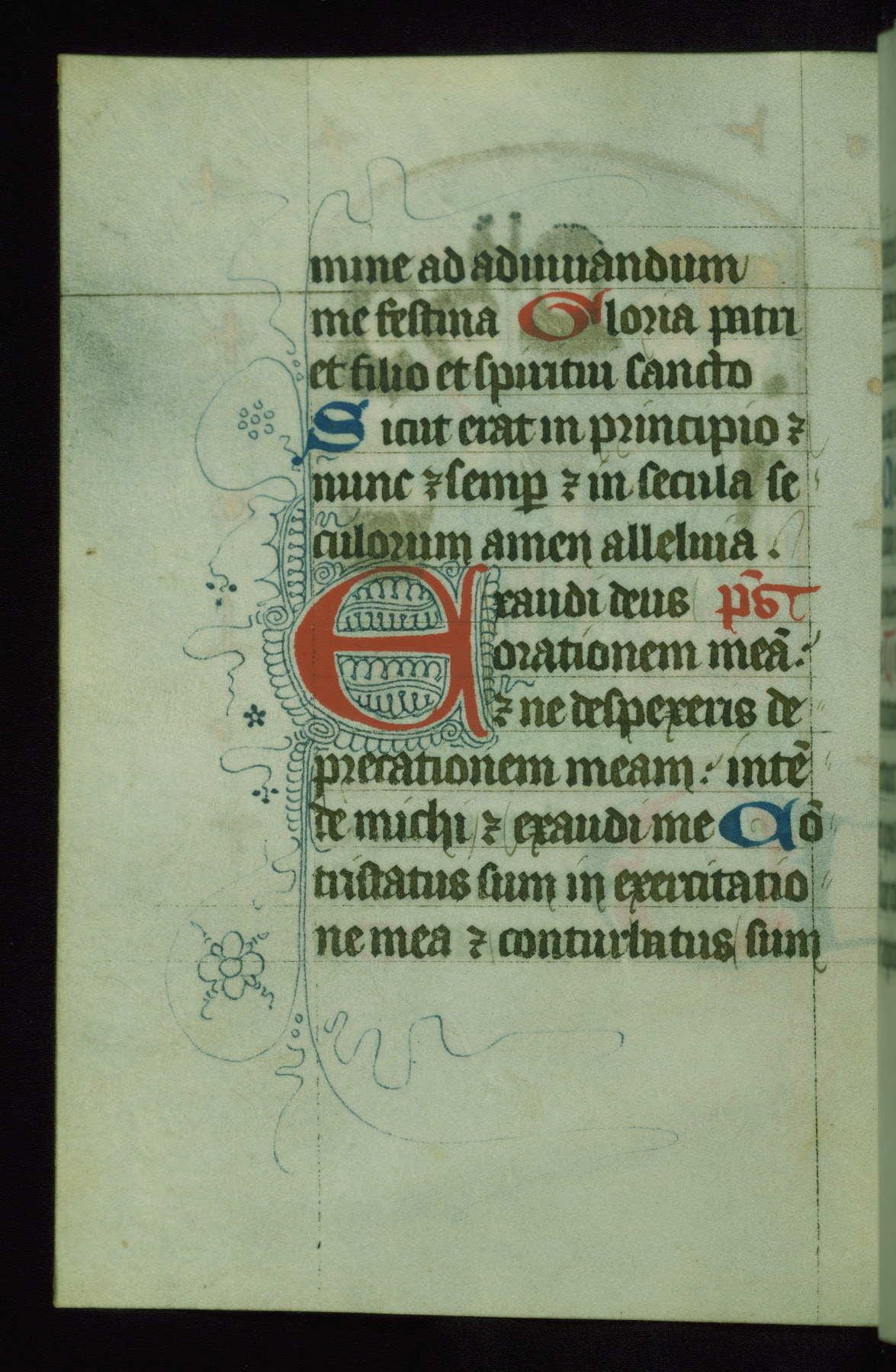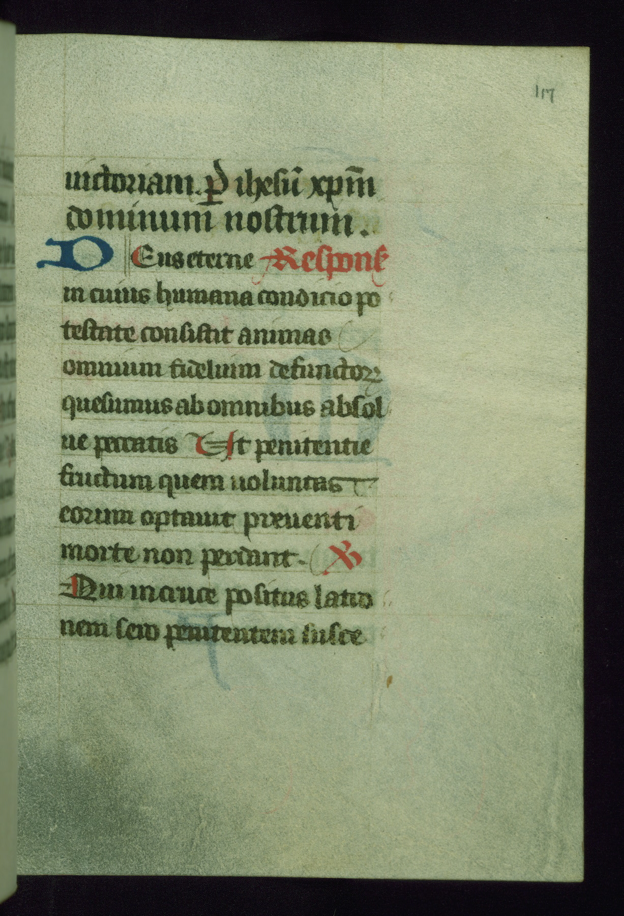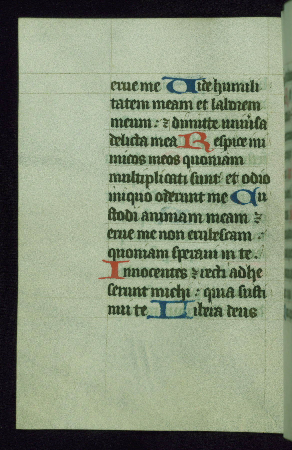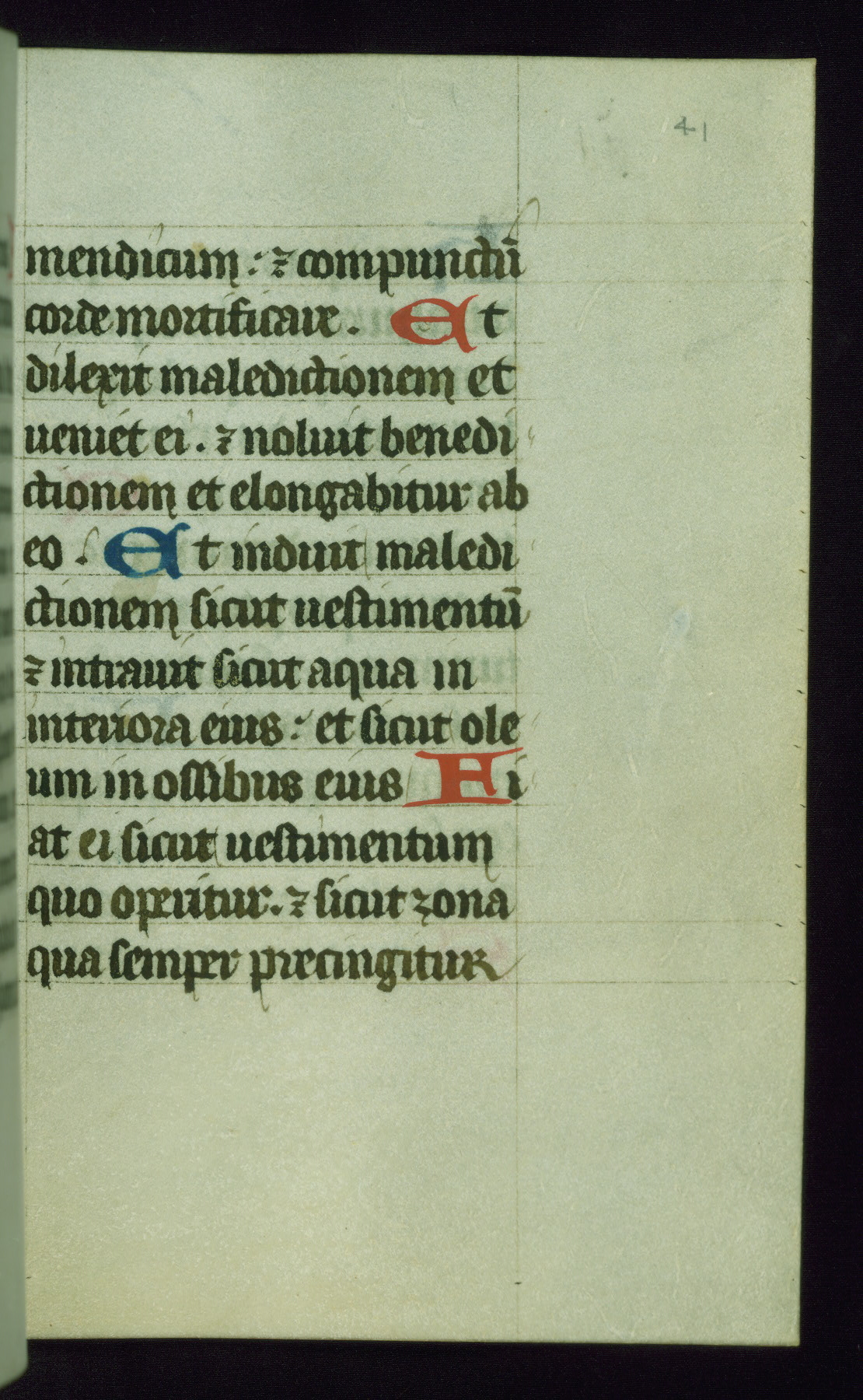This prayer book was produced ca. 1430-40, likely in Brabant, but the contents of the calendar point to Tournai and Cambrai, and the Office of the Dead is for the use of Liège. North Netherlandish influence, possibly connected with works by the Masters of the Gold Scrolls, is suggested by the style and iconography of its images. The manuscript is notable for its large number of miniatures--forty-eight in total--as well as the sense of narrative within them, and the diversity of the suffrages they illustrate is striking. That the original owner had a strong interest in the Passion is evident in both the choice of texts and the images. The manuscript was well used, and accrued not only additional prayers and suffrages, but devotional objects as well: a pilgrim's badge was once attached to the corner of the image for the suffrage to relics on fol. 160r.