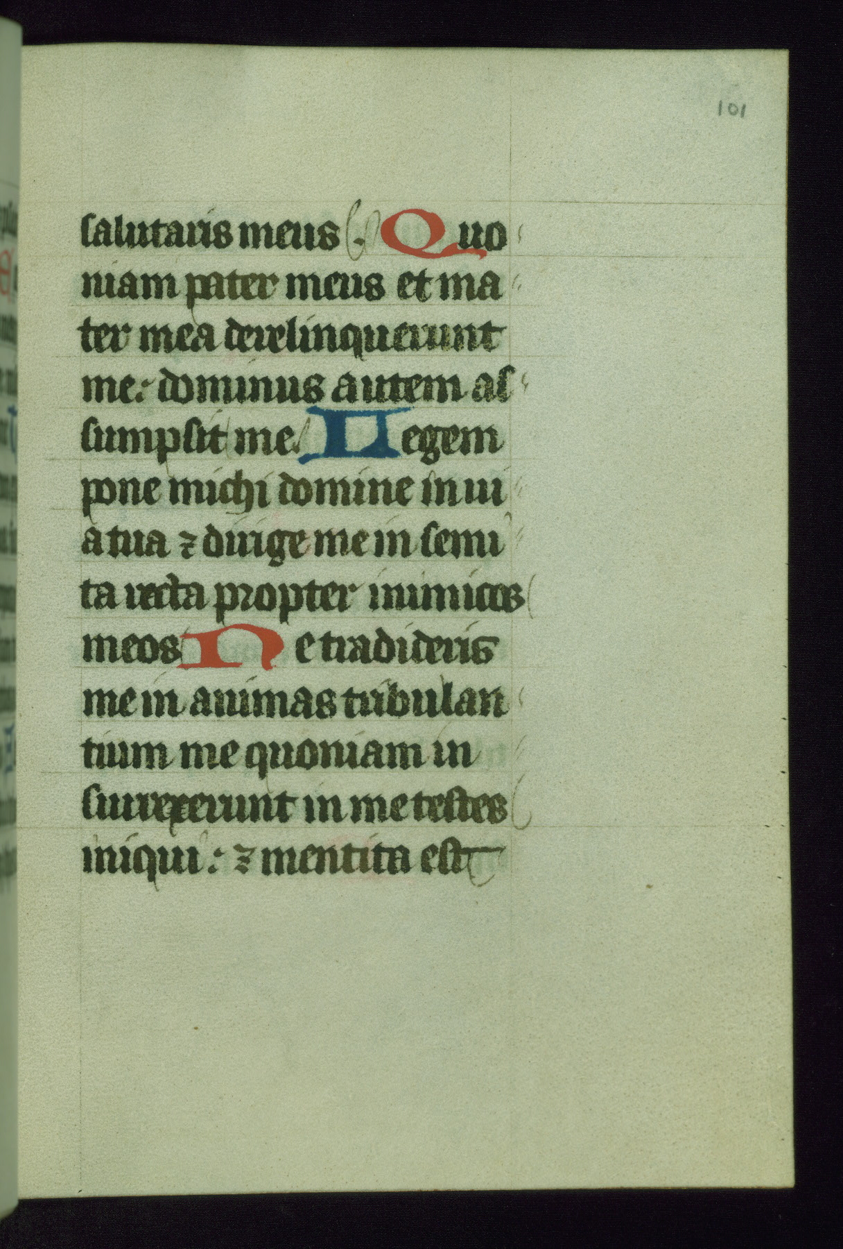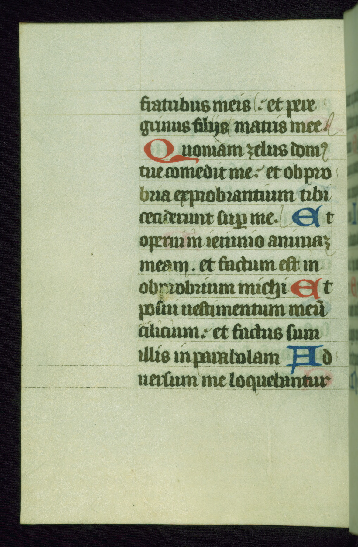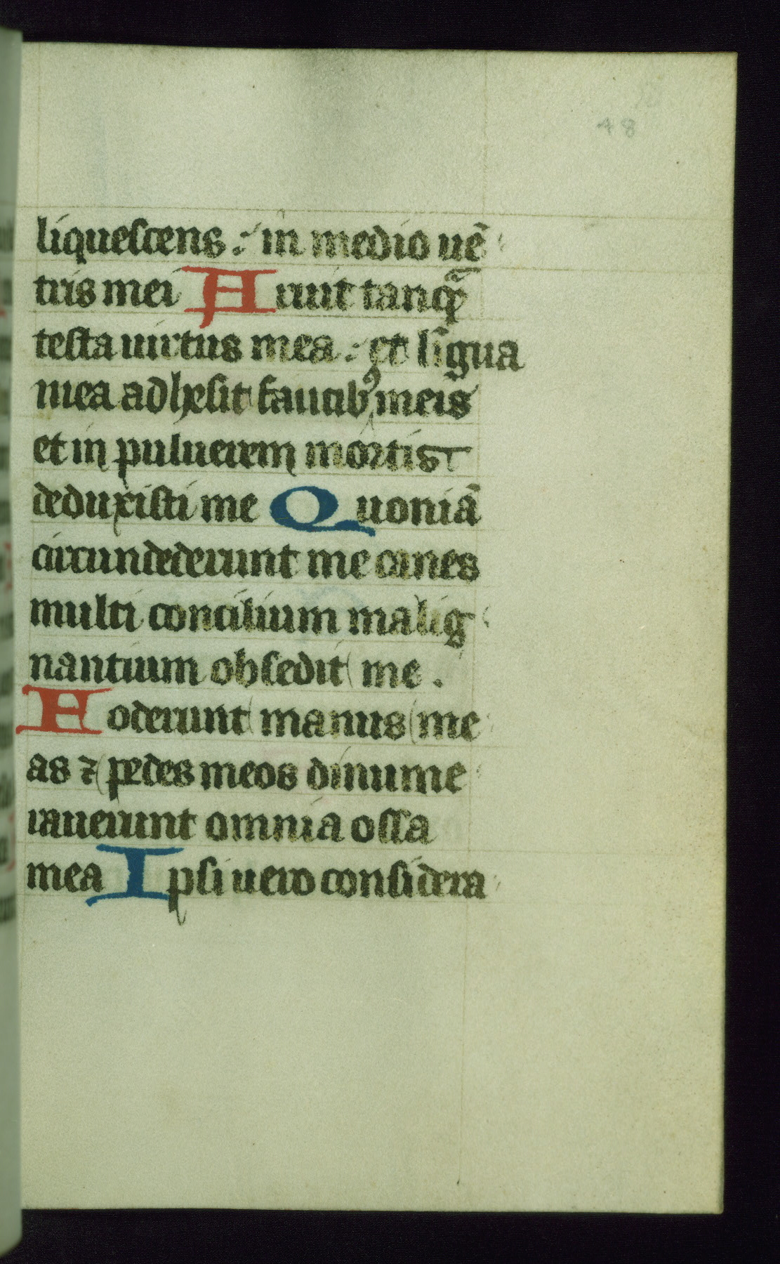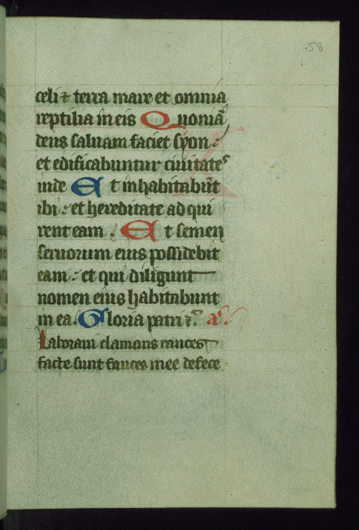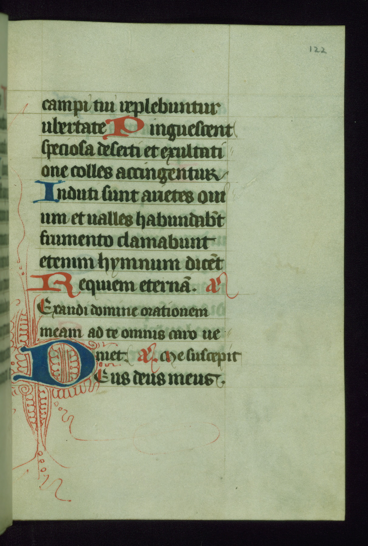 This prayer book was produced ca. 1430-40, likely in Brabant, but the contents of the calendar point to Tournai and Cambrai, and the Office of the Dead is for the use of Liège. North Netherlandish influence, possibly connected with works by the Masters of the Gold Scrolls, is suggested by the style and iconography of its images. The manuscript is notable for its large number of miniatures--forty-eight in total--as well as the sense of narrative within them, and the diversity of the suffrages they illustrate is striking. That the original owner had a strong interest in the Passion is evident in both the choice of texts and the images. The manuscript was well used, and accrued not only additional prayers and suffrages, but devotional objects as well: a pilgrim's badge was once attached to the corner of the image for the suffrage to relics on fol. 160r.