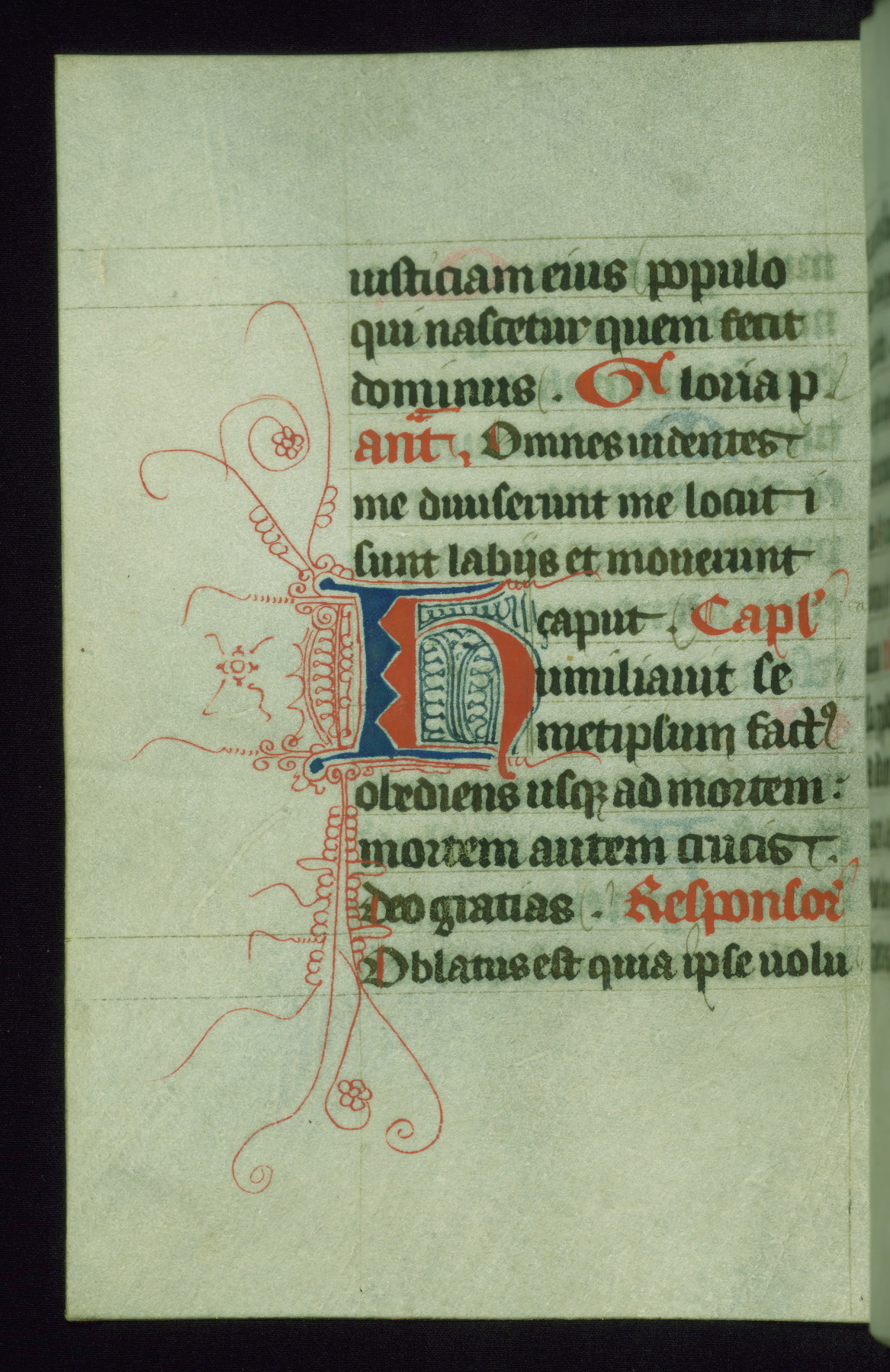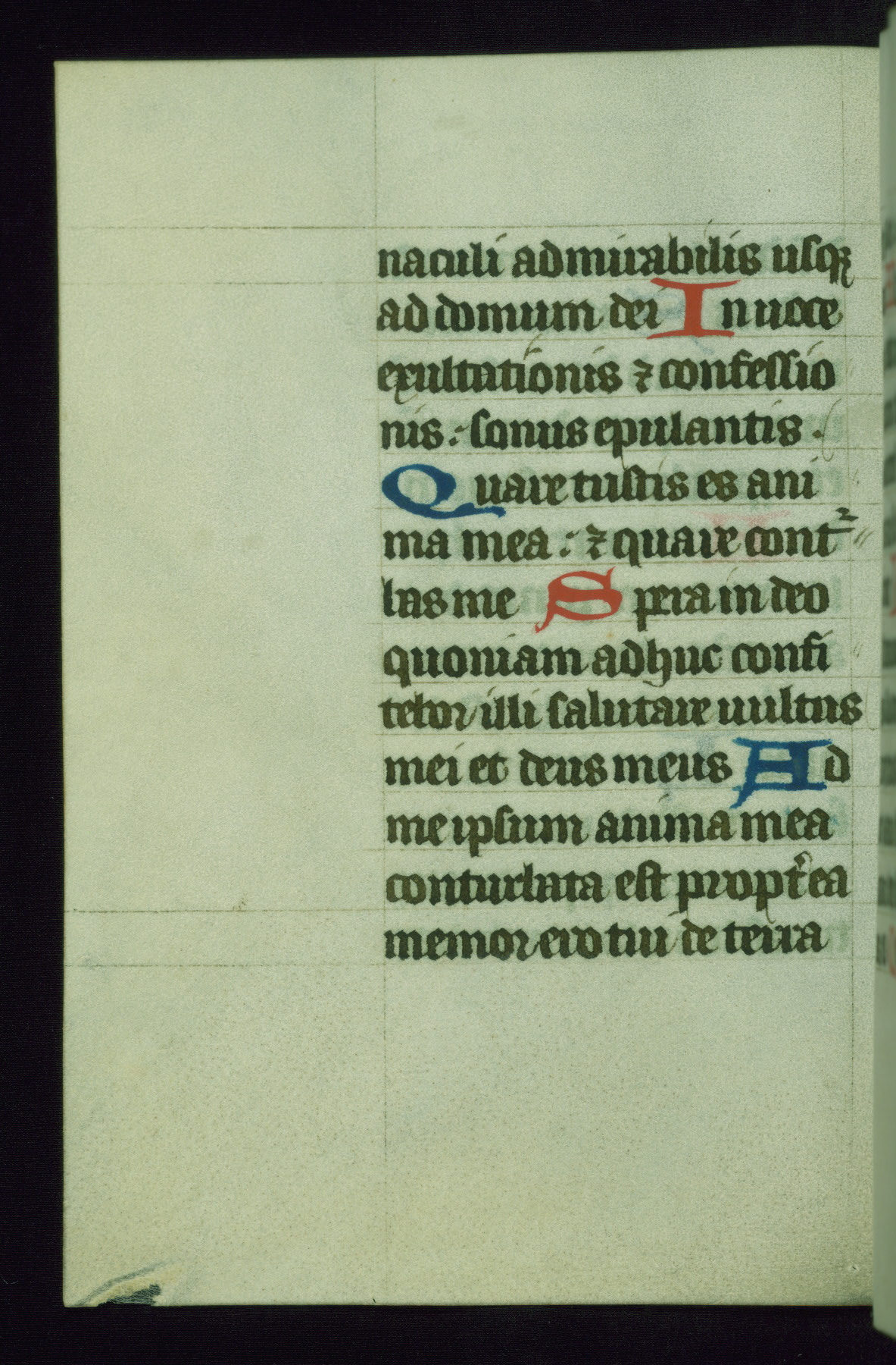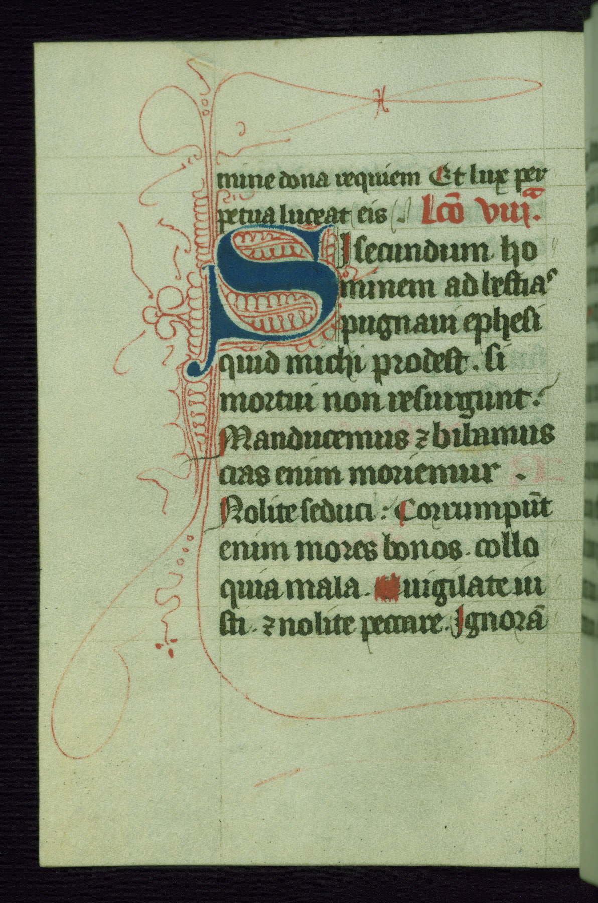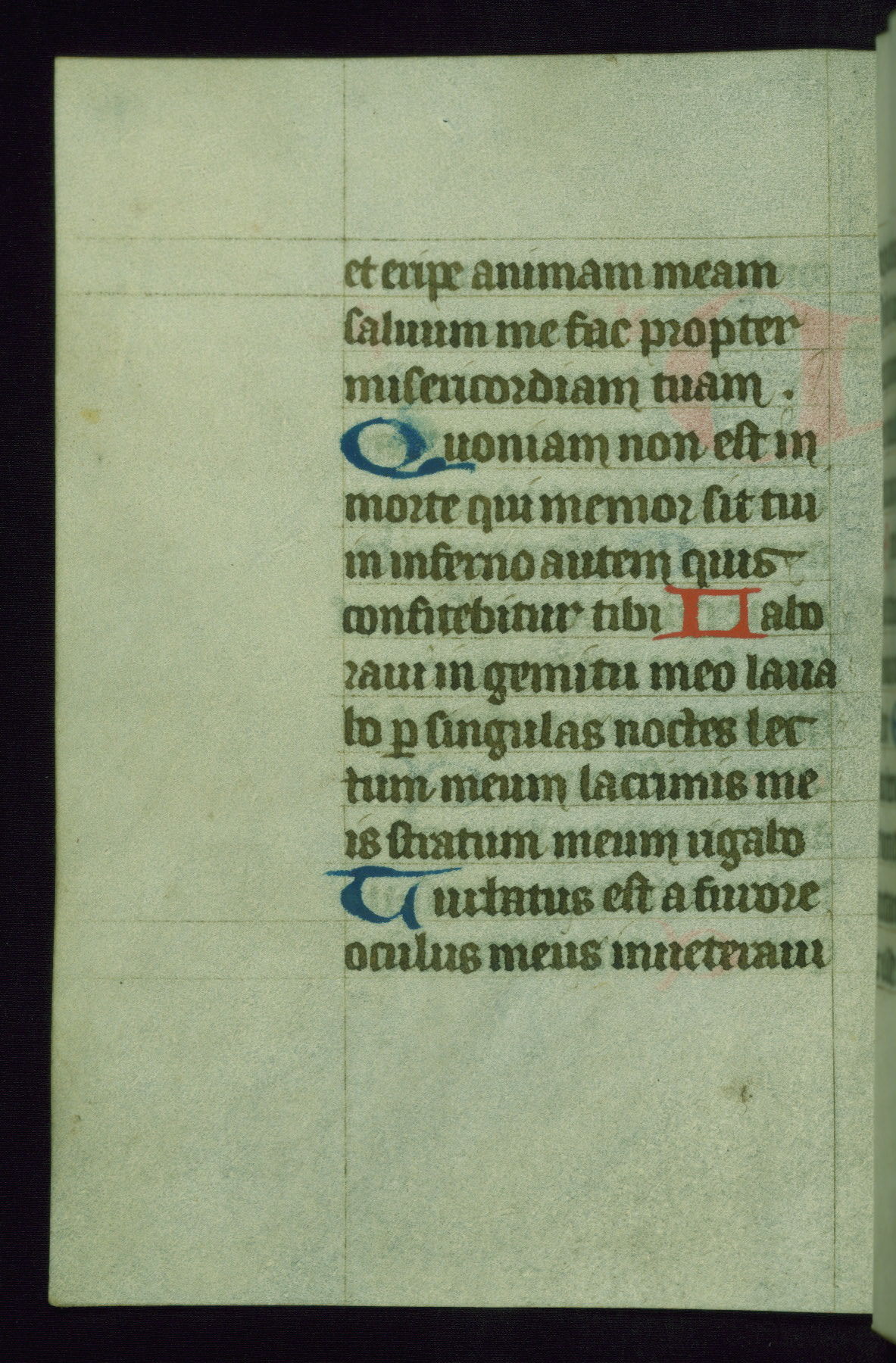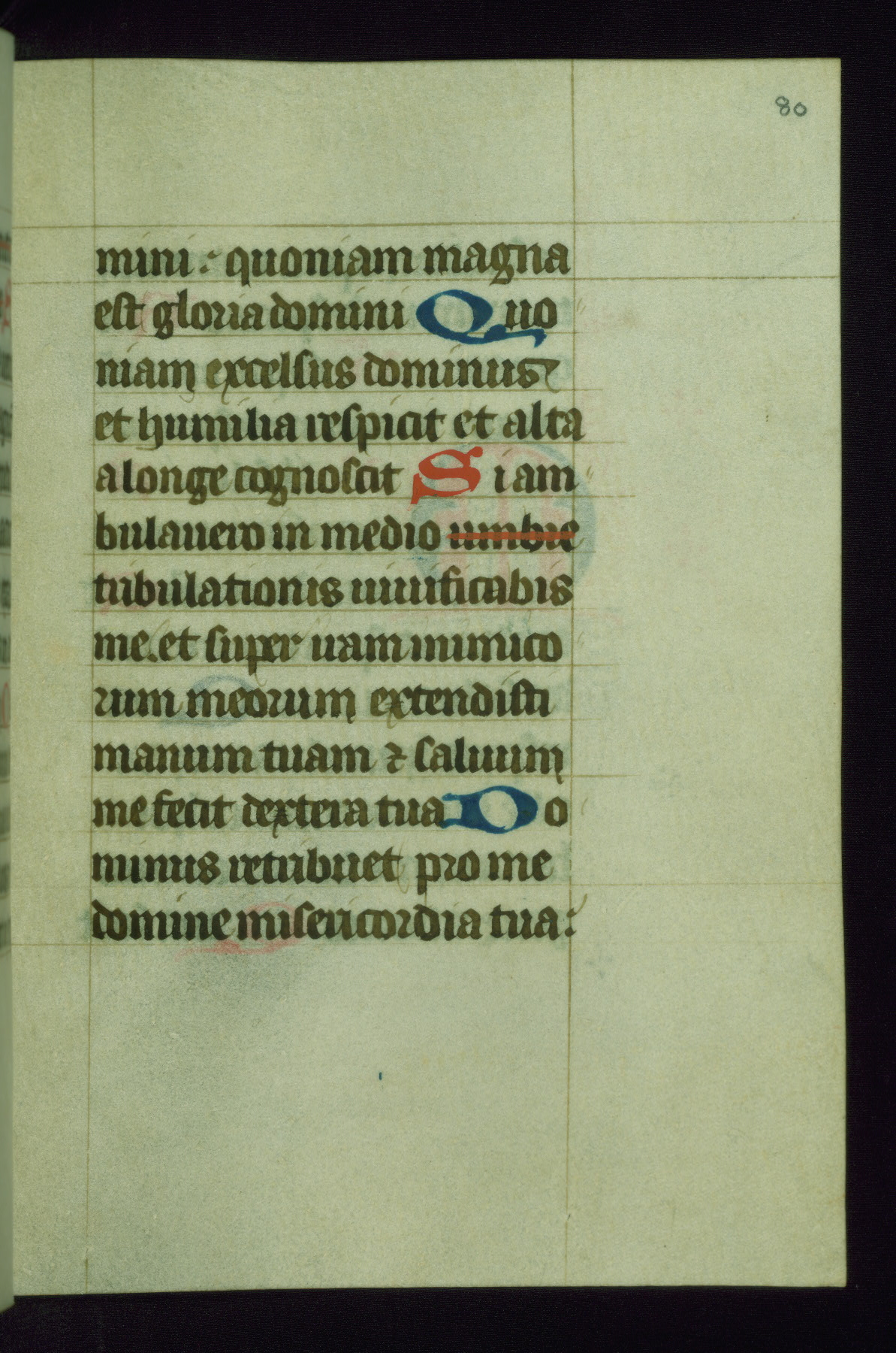 This prayer book was produced ca. 1430-40, likely in Brabant, but the contents of the calendar point to Tournai and Cambrai, and the Office of the Dead is for the use of Liège. North Netherlandish influence, possibly connected with works by the Masters of the Gold Scrolls, is suggested by the style and iconography of its images. The manuscript is notable for its large number of miniatures--forty-eight in total--as well as the sense of narrative within them, and the diversity of the suffrages they illustrate is striking. That the original owner had a strong interest in the Passion is evident in both the choice of texts and the images. The manuscript was well used, and accrued not only additional prayers and suffrages, but devotional objects as well: a pilgrim's badge was once attached to the corner of the image for the suffrage to relics on fol. 160r.