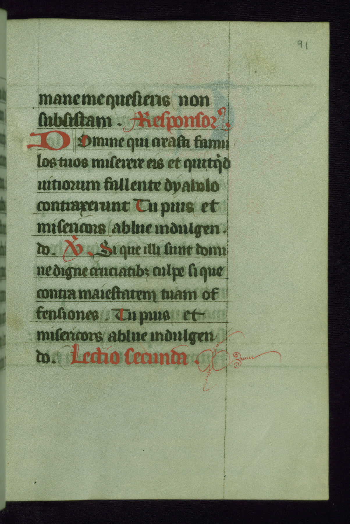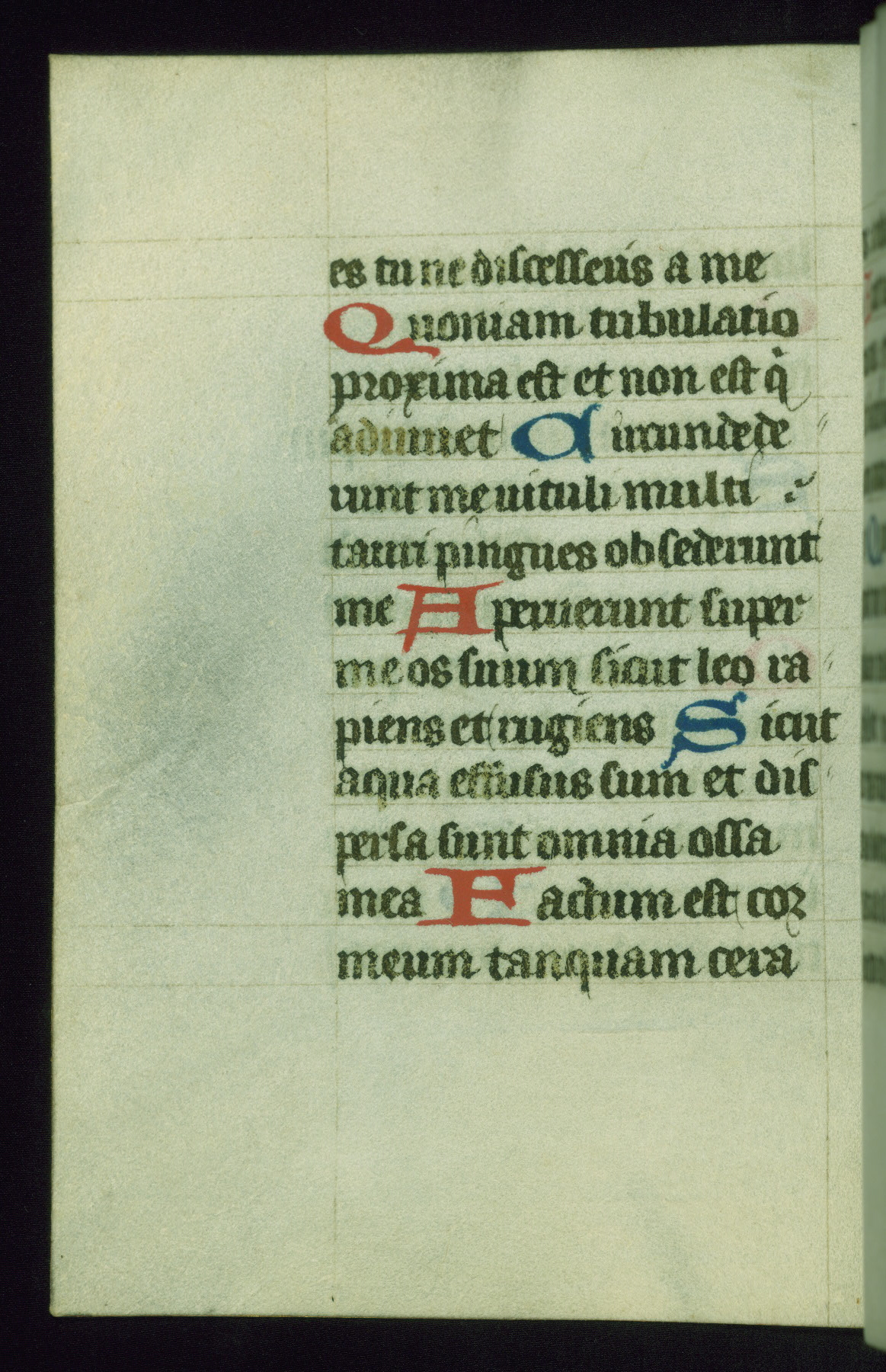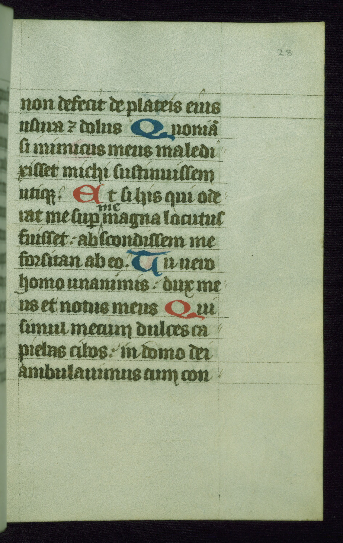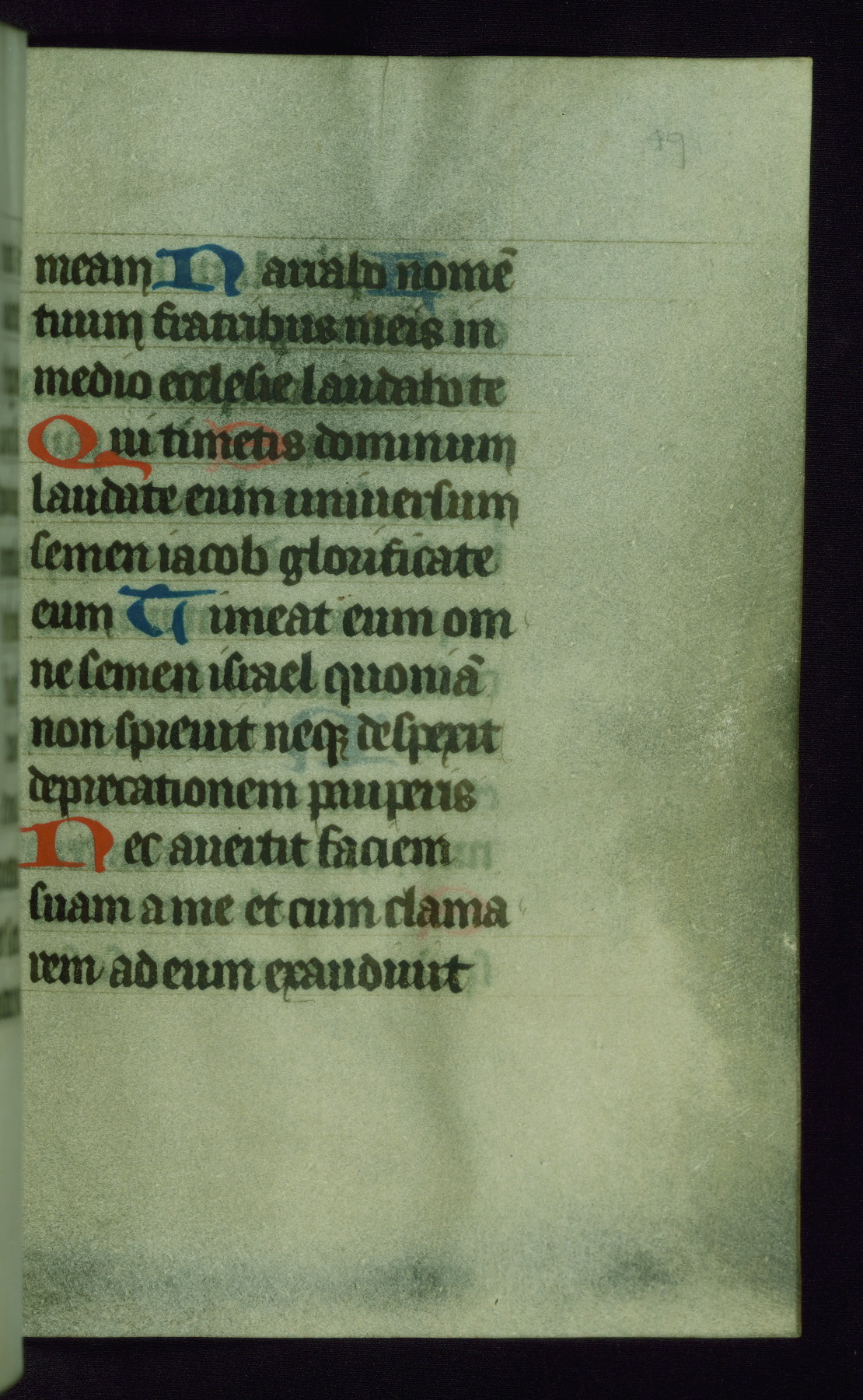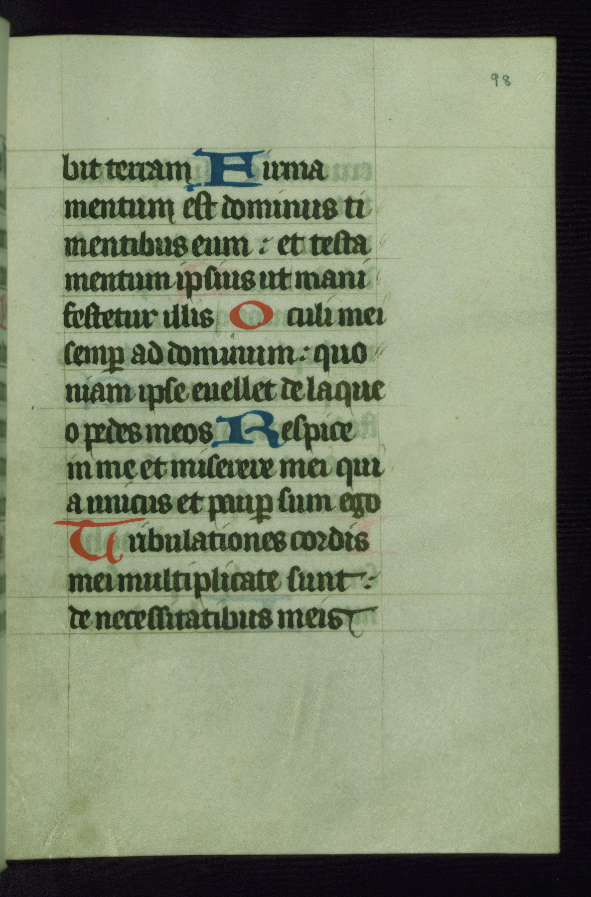This prayer book was produced ca. 1430-40, likely in Brabant, but the contents of the calendar point to Tournai and Cambrai, and the Office of the Dead is for the use of Liège. North Netherlandish influence, possibly connected with works by the Masters of the Gold Scrolls, is suggested by the style and iconography of its images. The manuscript is notable for its large number of miniatures--forty-eight in total--as well as the sense of narrative within them, and the diversity of the suffrages they illustrate is striking. That the original owner had a strong interest in the Passion is evident in both the choice of texts and the images. The manuscript was well used, and accrued not only additional prayers and suffrages, but devotional objects as well: a pilgrim's badge was once attached to the corner of the image for the suffrage to relics on fol. 160r.