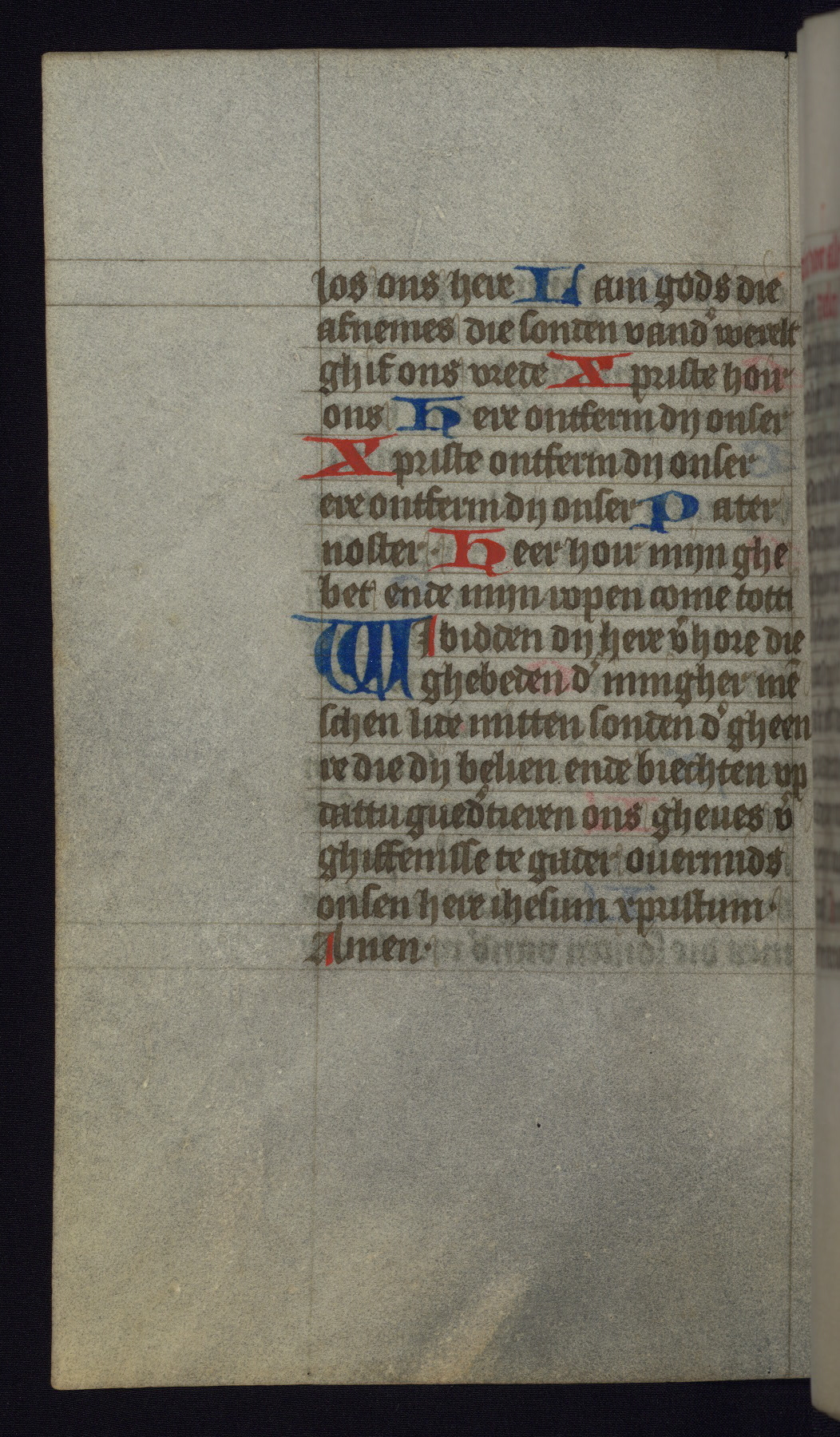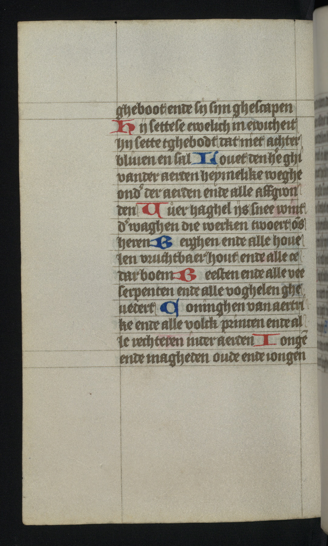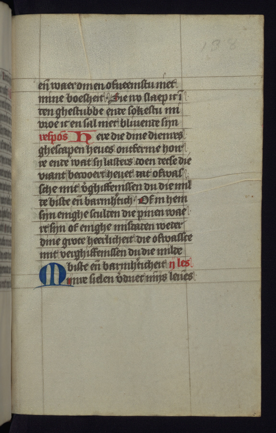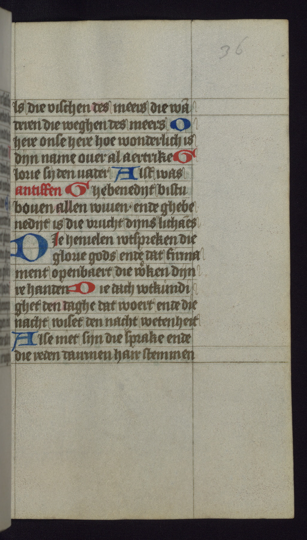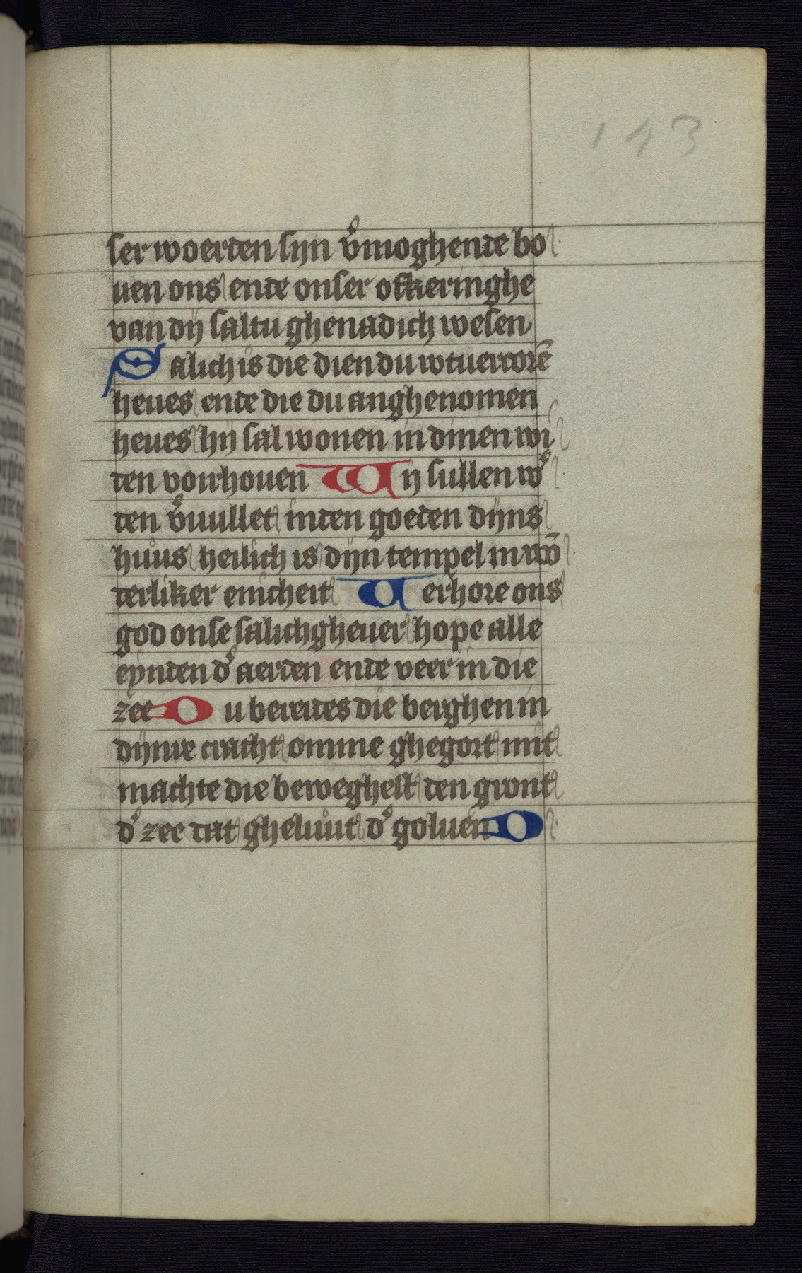This mid-fifteenth-century illuminated book of hours is written entirely in Dutch on fine parchment and is remarkable for its eighteen grisaille miniatures. This technique, wherein the figures are modeled primarily in a gray wash, became a favorite in the Netherlands. The hand behind the miniatures in this manuscript has been identified with a group of artists known as the Masters of the Delft Grisailles. The manuscript has been grouped with more than a dozen related works, including New York, Pierpont Morgan Library Ms. M.349; London, Victoria and Albert Museum, Geo. Reid Ms. 32; Leiden, Bibliotheek der Rijksuniversiteit BPL 224; Brussels, Bibliothèque Royale Ms. 21696; Antwerp, Plantin Moretus Ms. 49; and The Hague, Koninklijke Bibliotheek Ms. 74 G 35. The manuscript comprises 152 folios and is almost completely intact, lacking only two miniatures. It retains its original brown leather binding decorated with mythological beasts and a now illegible inscription. The calendar is for the use of Utrecht, which helps localize its original ownership, as might a mostly erased ownership inscription that has been partially recovered. Good impressions of two circular pilgrim badges, now removed, are visible on fol. 112v.