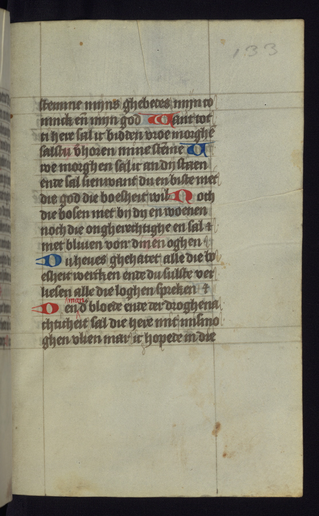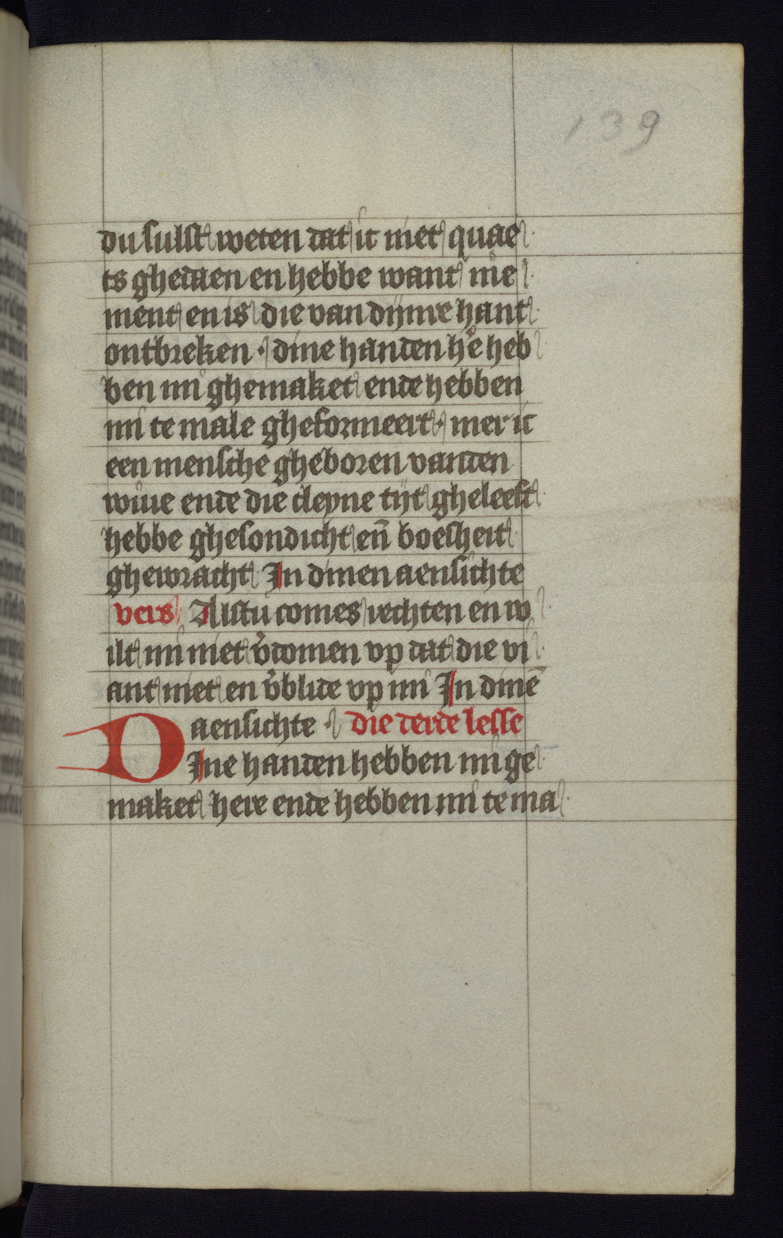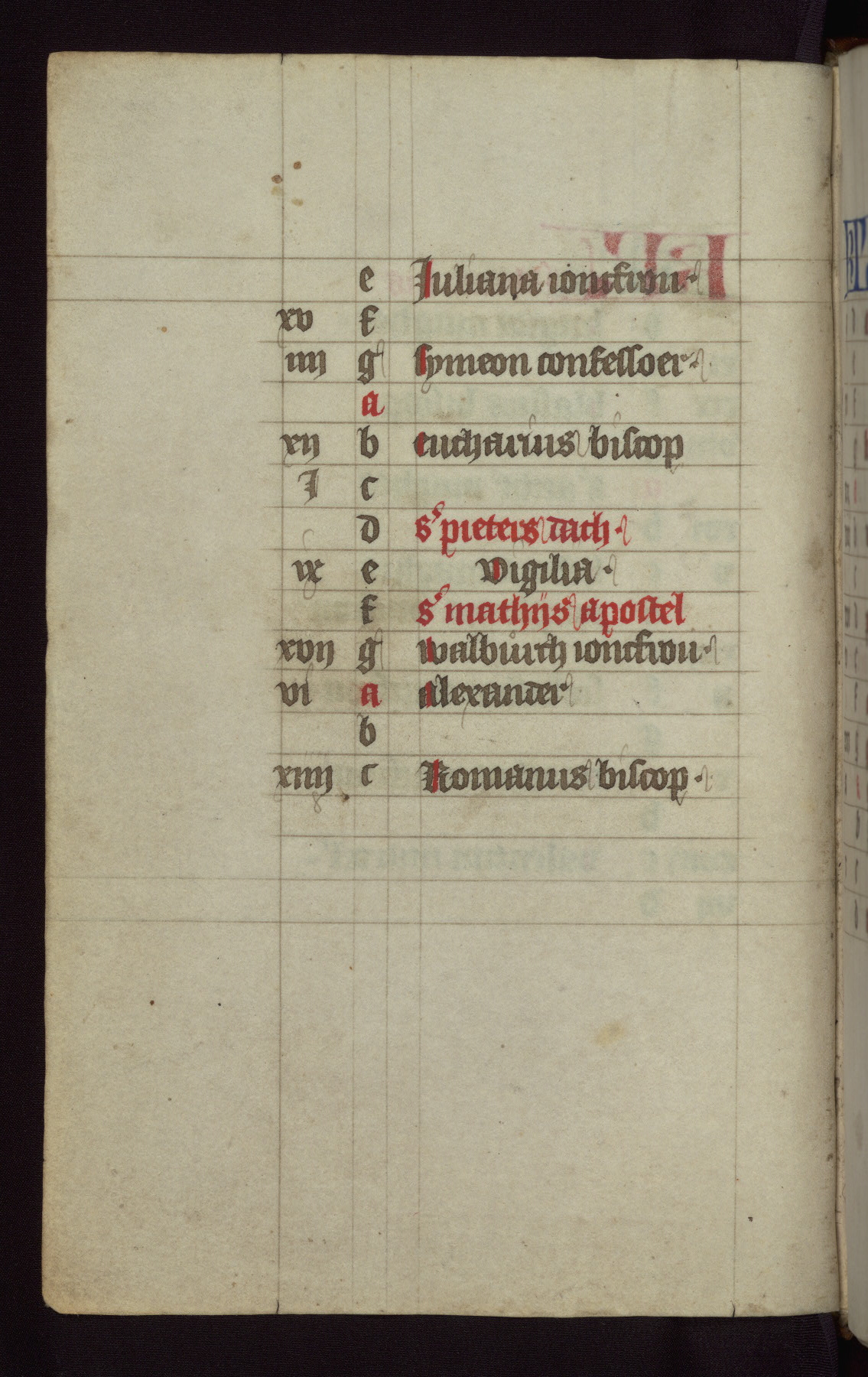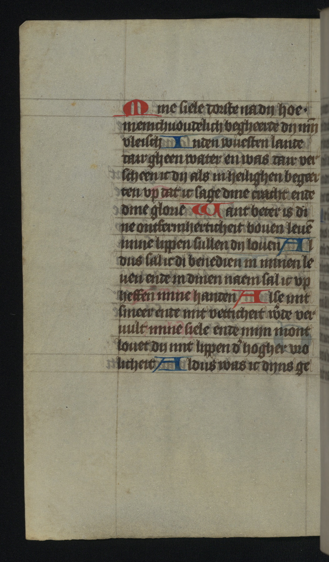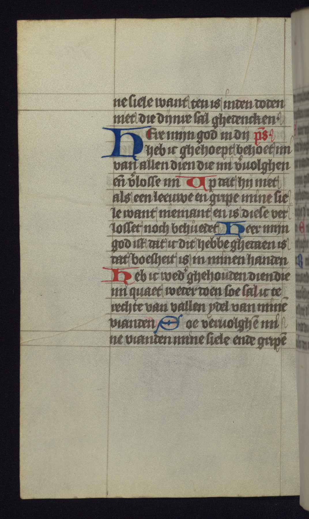 This mid-fifteenth-century illuminated book of hours is written entirely in Dutch on fine parchment and is remarkable for its eighteen grisaille miniatures. This technique, wherein the figures are modeled primarily in a gray wash, became a favorite in the Netherlands. The hand behind the miniatures in this manuscript has been identified with a group of artists known as the Masters of the Delft Grisailles. The manuscript has been grouped with more than a dozen related works, including New York, Pierpont Morgan Library Ms. M.349; London, Victoria and Albert Museum, Geo. Reid Ms. 32; Leiden, Bibliotheek der Rijksuniversiteit BPL 224; Brussels, Bibliothèque Royale Ms. 21696; Antwerp, Plantin Moretus Ms. 49; and The Hague, Koninklijke Bibliotheek Ms. 74 G 35. The manuscript comprises 152 folios and is almost completely intact, lacking only two miniatures. It retains its original brown leather binding decorated with mythological beasts and a now illegible inscription. The calendar is for the use of Utrecht, which helps localize its original ownership, as might a mostly erased ownership inscription that has been partially recovered. Good impressions of two circular pilgrim badges, now removed, are visible on fol. 112v.