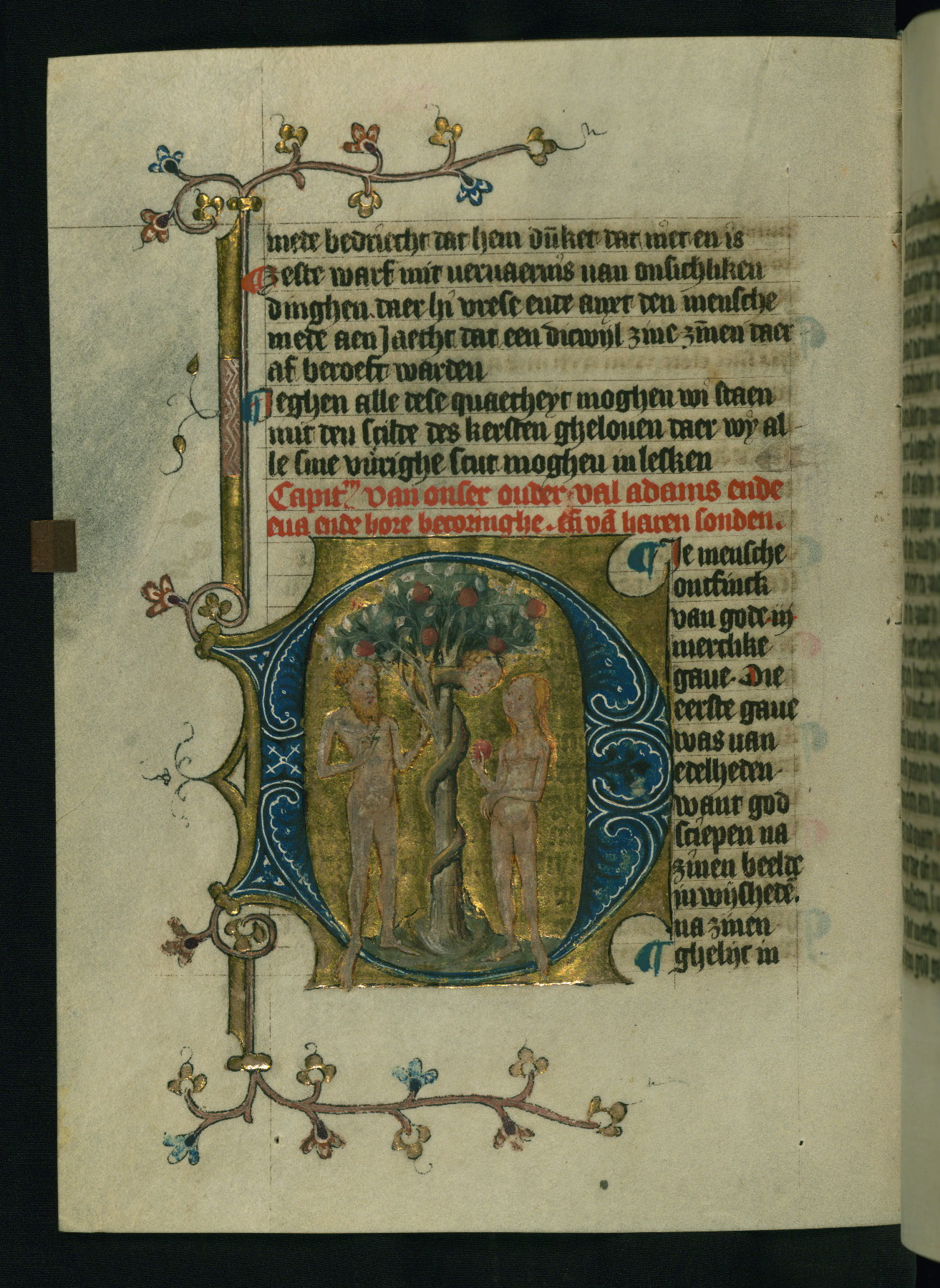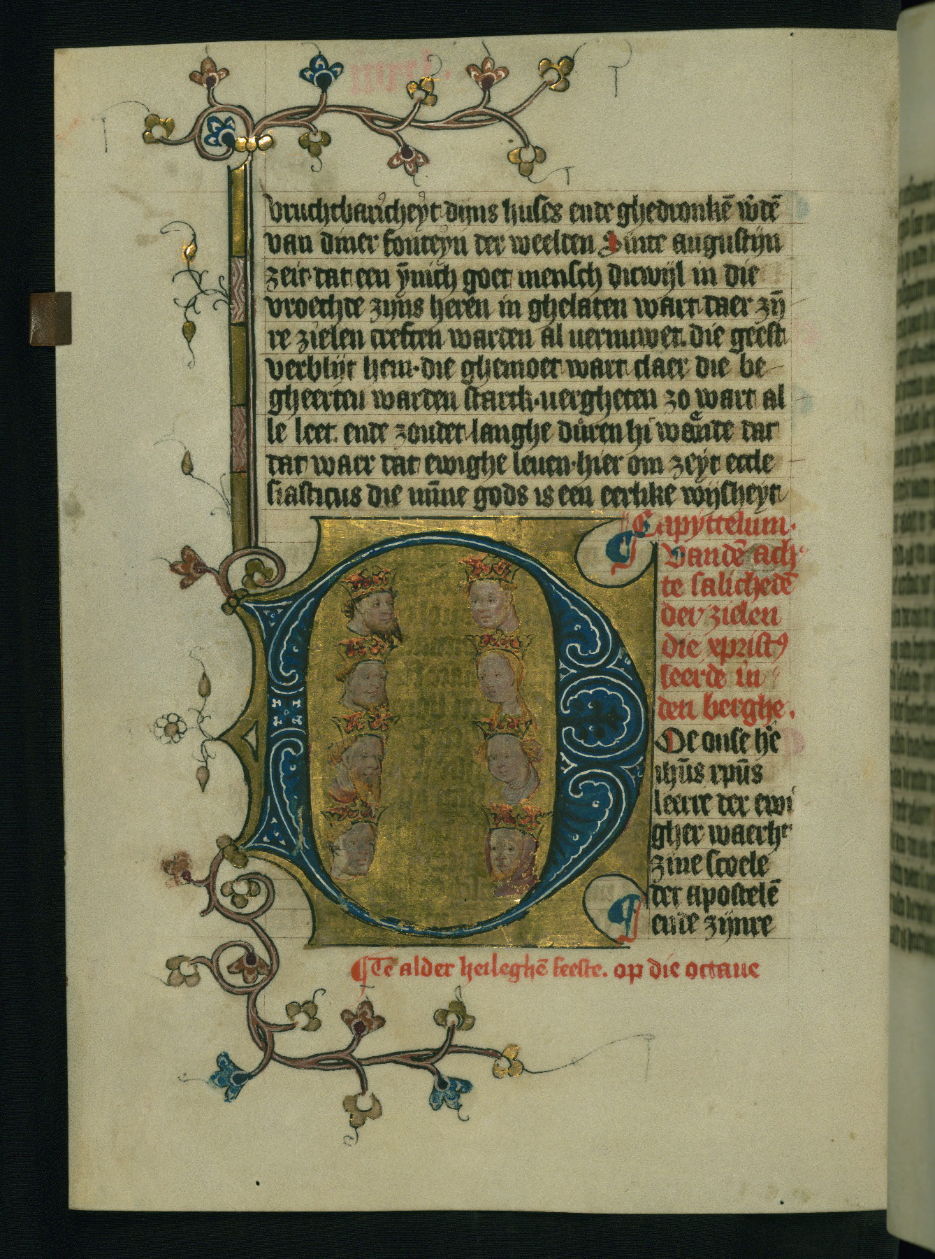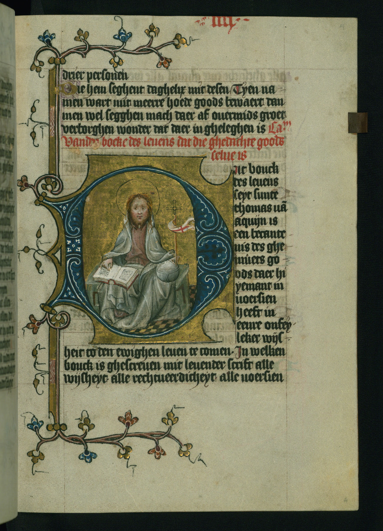This illuminated manuscript is a document of the first importance in the history of Dutch manuscript illumination and contains an important medieval Dutch devotional text. The Tafel van den Kersten ghelove is a compendium of Christian knowledge written by a learned Dominican, Dirc van Delf. The text is in two parts, one for winter, one for summer. This manuscript is of the winter part and is incomplete, omitting the prologue and chapters 13, 14, and 35-57. The arms of the Bavarian counts of Holland and the kneeling owner on fol. 1r indicate that this manuscript was the actual copy prepared for the dedicatee of the text, Albrecht of Bavaria, Count of Holland, from the original text of his chaplain, and is therefore to be dated to 1404 at the latest, when Albrecht died. The manuscript contains 165 folios and thirty-five historiated initials.
