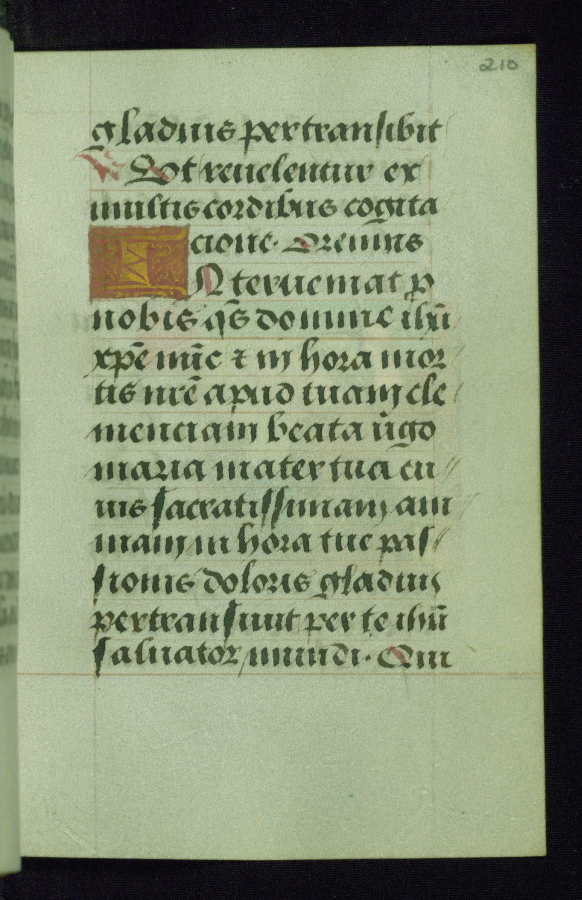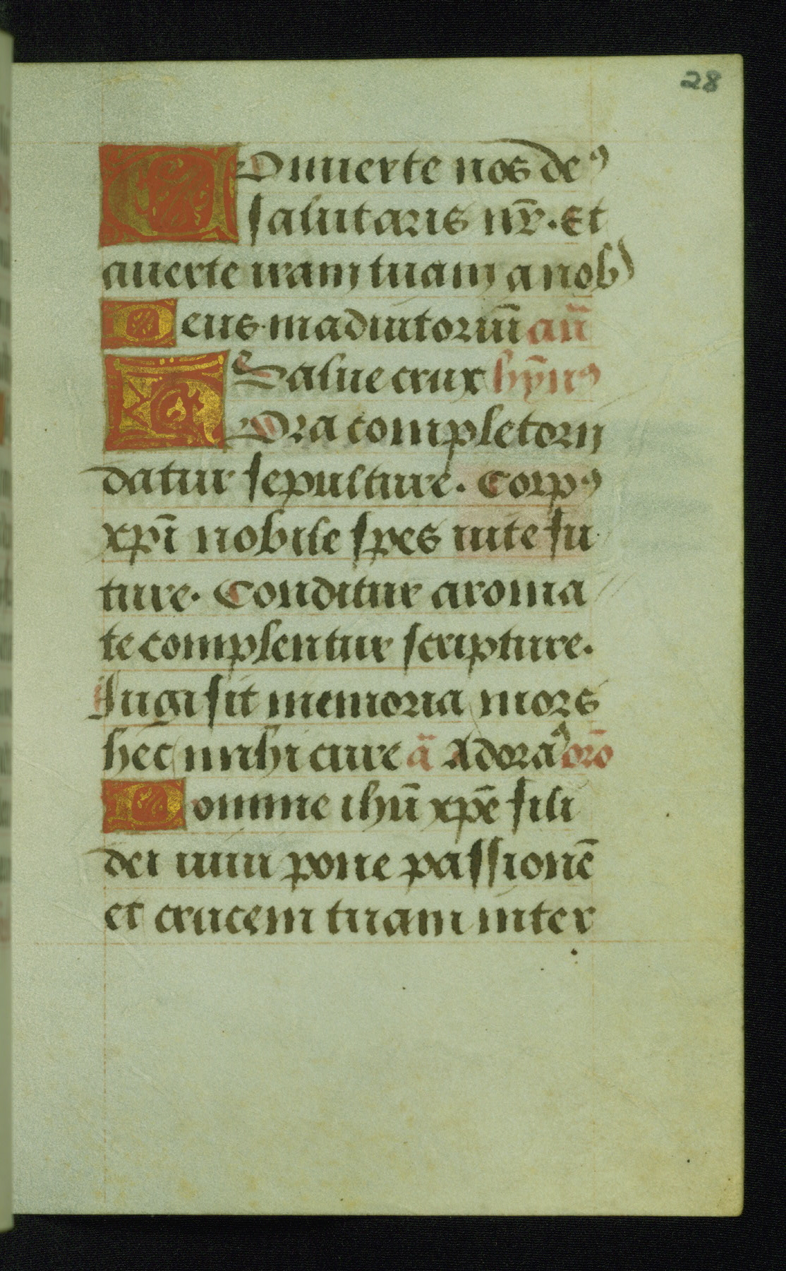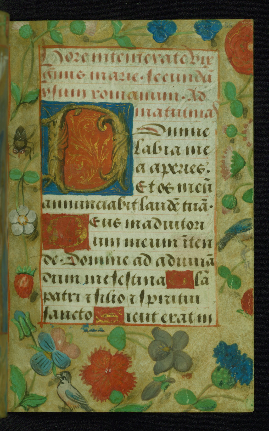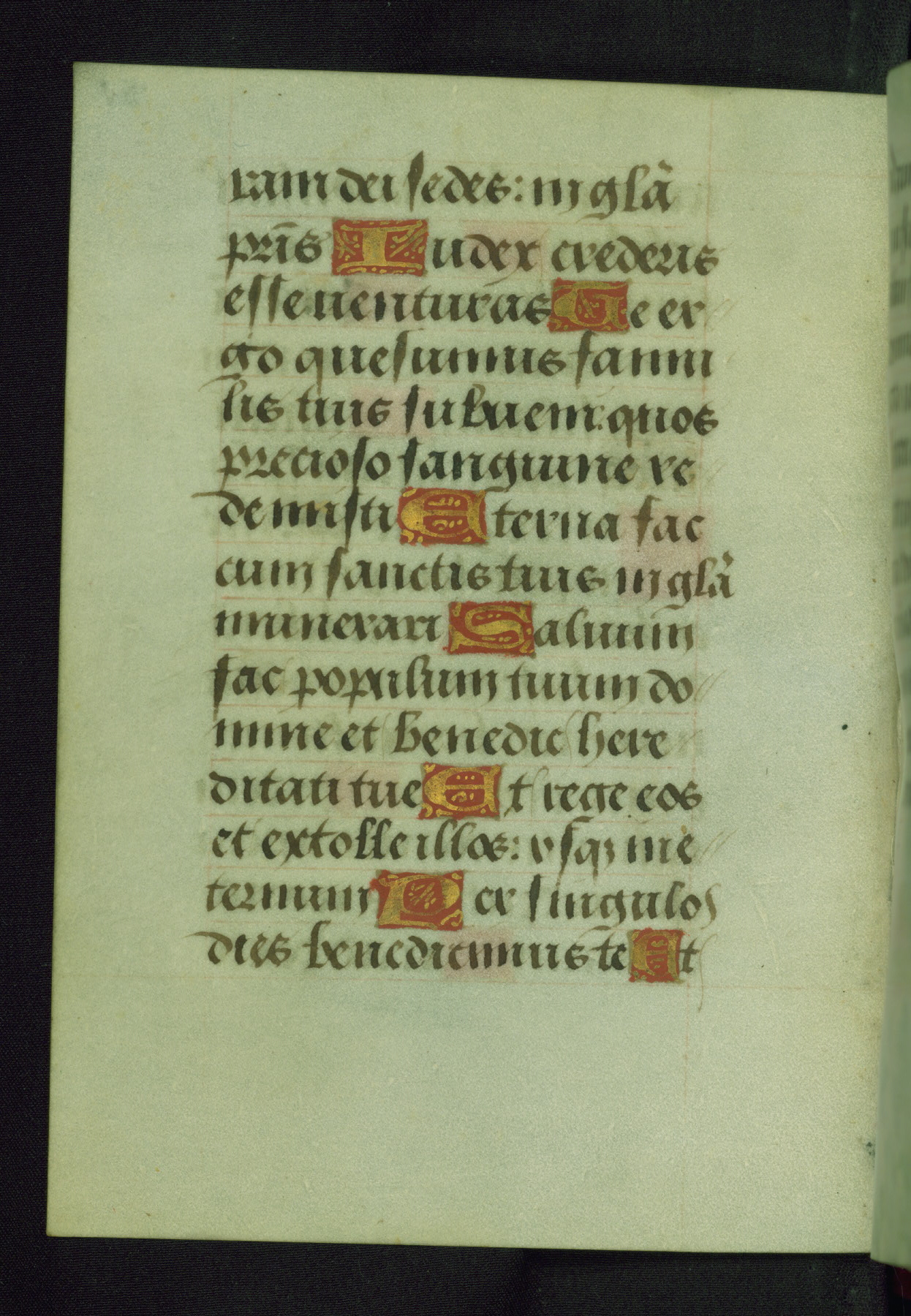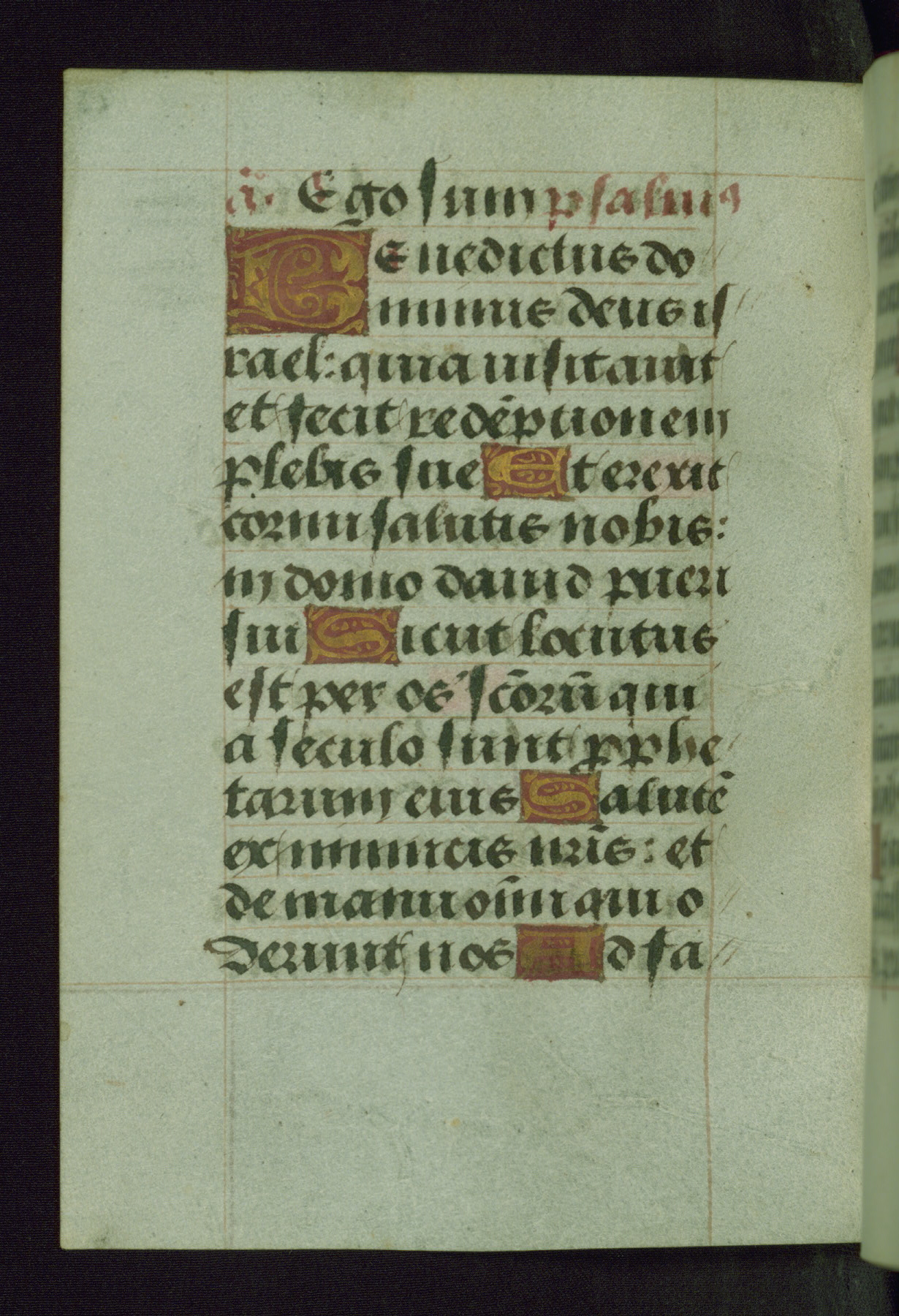 This small Book of Hours was made at the turn of the sixteenth century. The illuminations are in the style of the Master of the Prayerbook of ca. 1500, active in Bruges. The name of the first owner is inscribed in the book in a prayer on fol. 241v, in which a man named Philip confesses himself a sinner and prays for his heart to be pure. The series of full-page miniatures opens with an interesting illumination of the Salvator Mundi that was a common theme in South Netherlandish illumination in this period. A comparable example, painted by the Master of the Prayerbook c. 1500, is found in the manuscript Vat. Ross. Lat. 94.