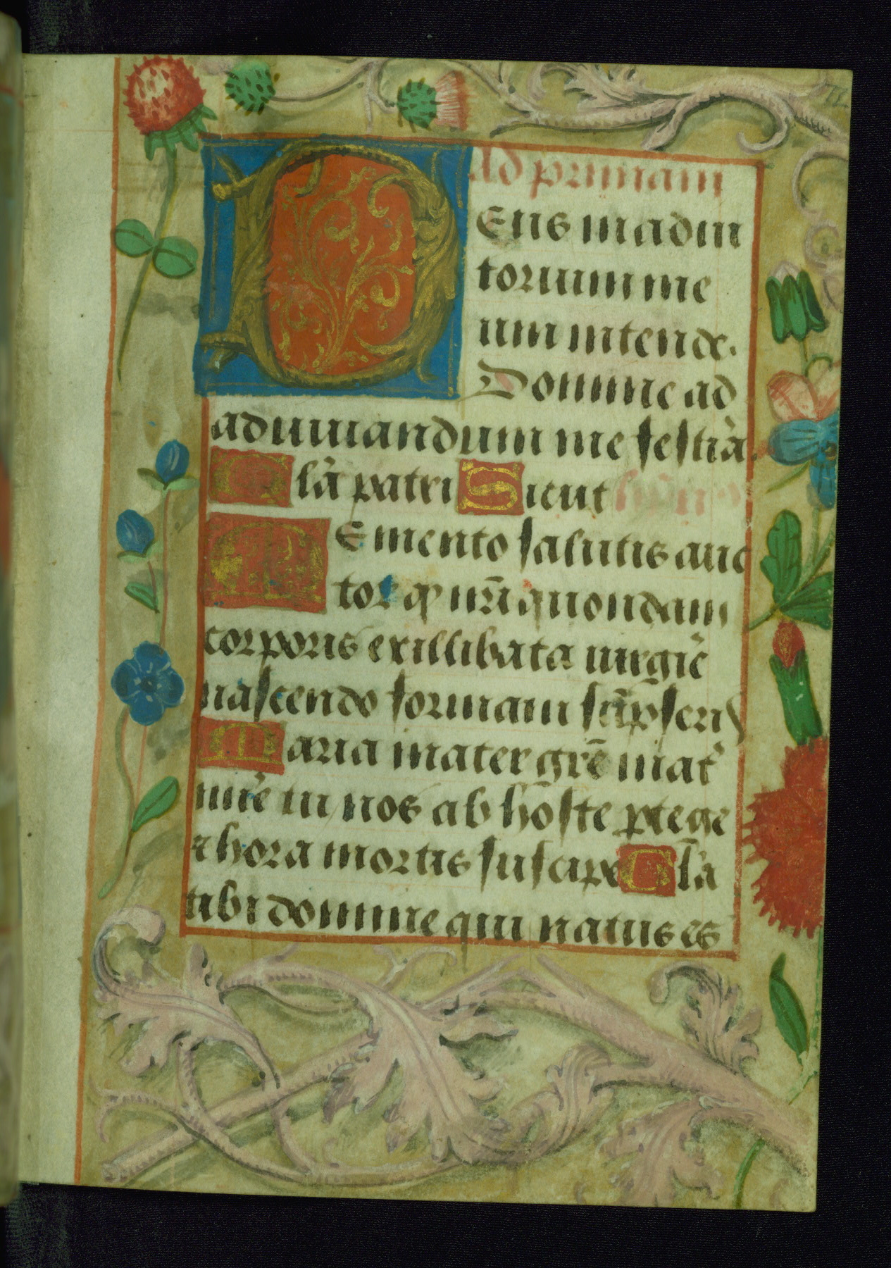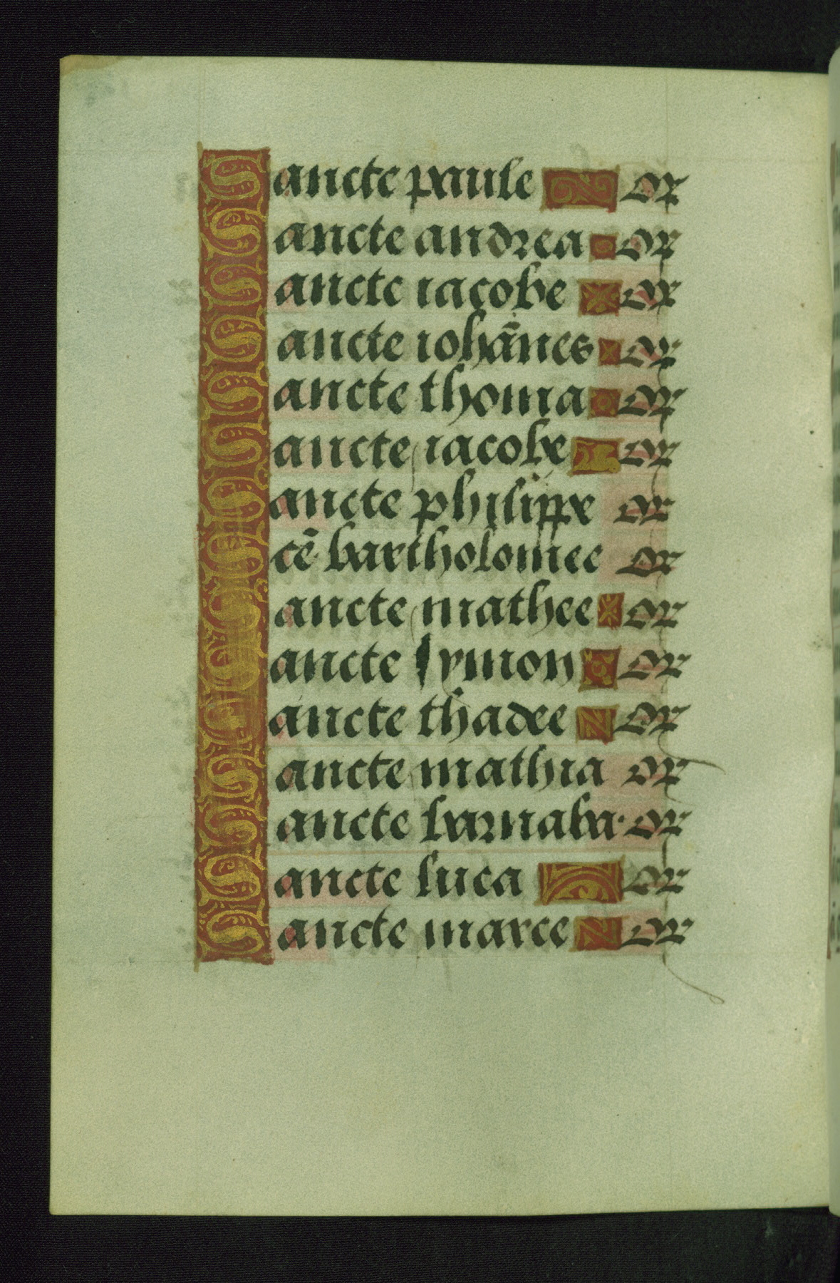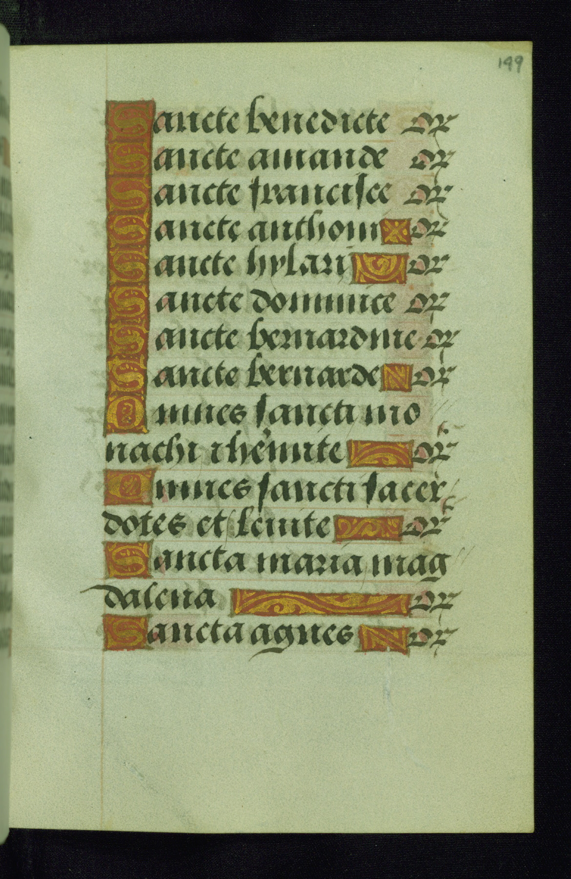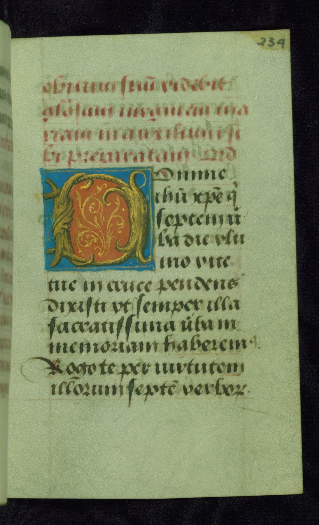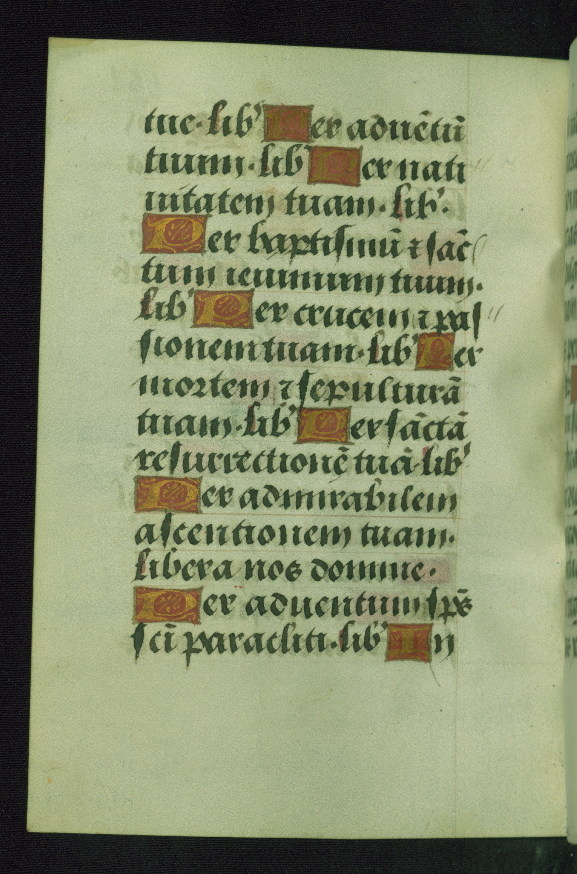 This small Book of Hours was made at the turn of the sixteenth century. The illuminations are in the style of the Master of the Prayerbook of ca. 1500, active in Bruges. The name of the first owner is inscribed in the book in a prayer on fol. 241v, in which a man named Philip confesses himself a sinner and prays for his heart to be pure. The series of full-page miniatures opens with an interesting illumination of the Salvator Mundi that was a common theme in South Netherlandish illumination in this period. A comparable example, painted by the Master of the Prayerbook c. 1500, is found in the manuscript Vat. Ross. Lat. 94.