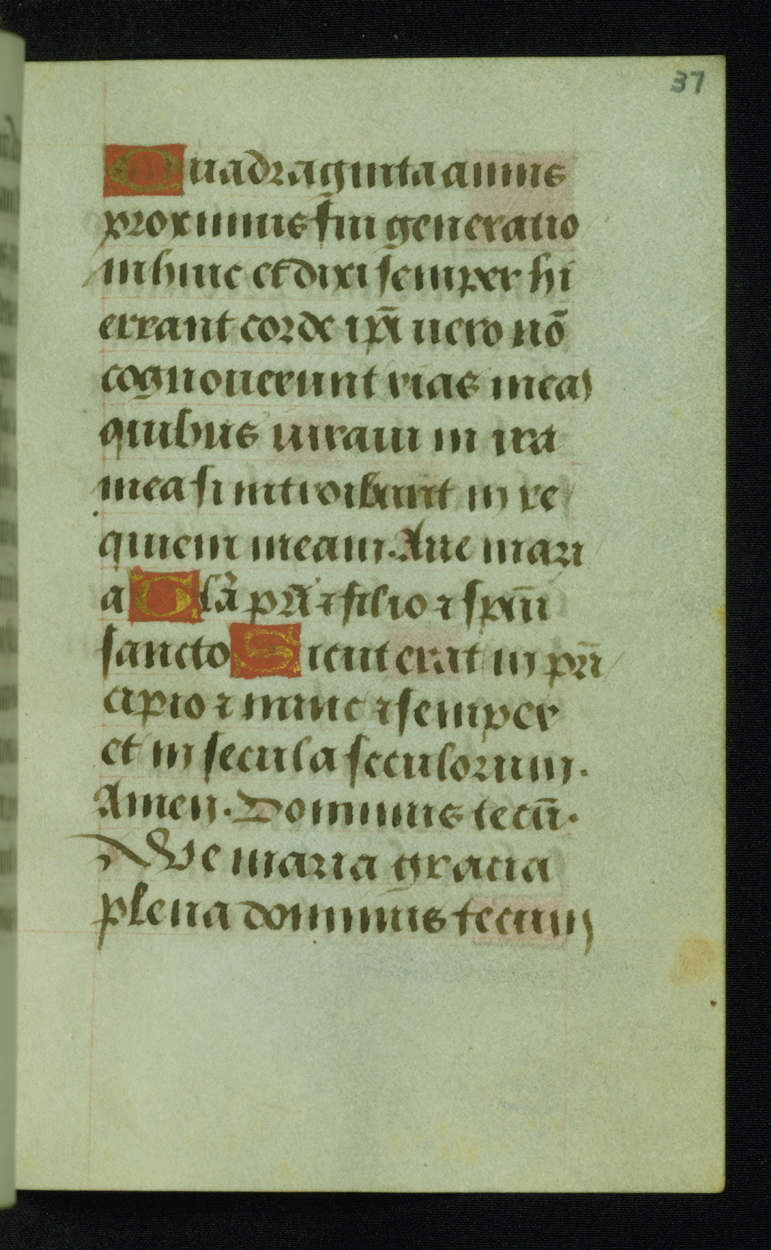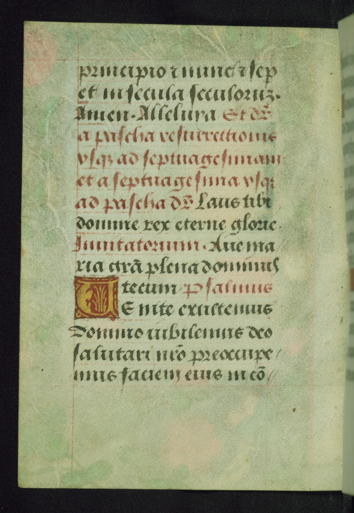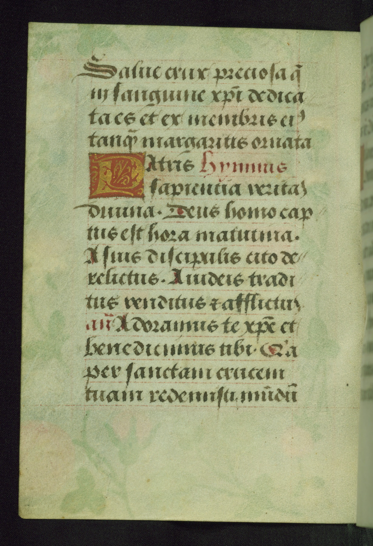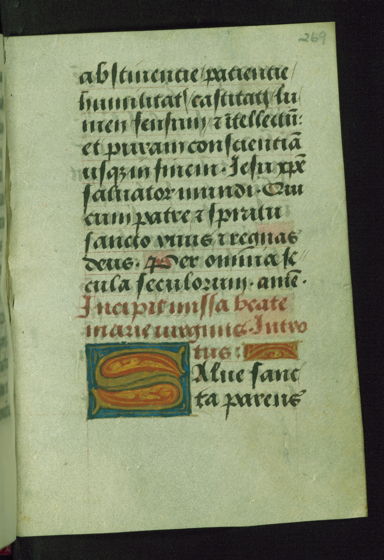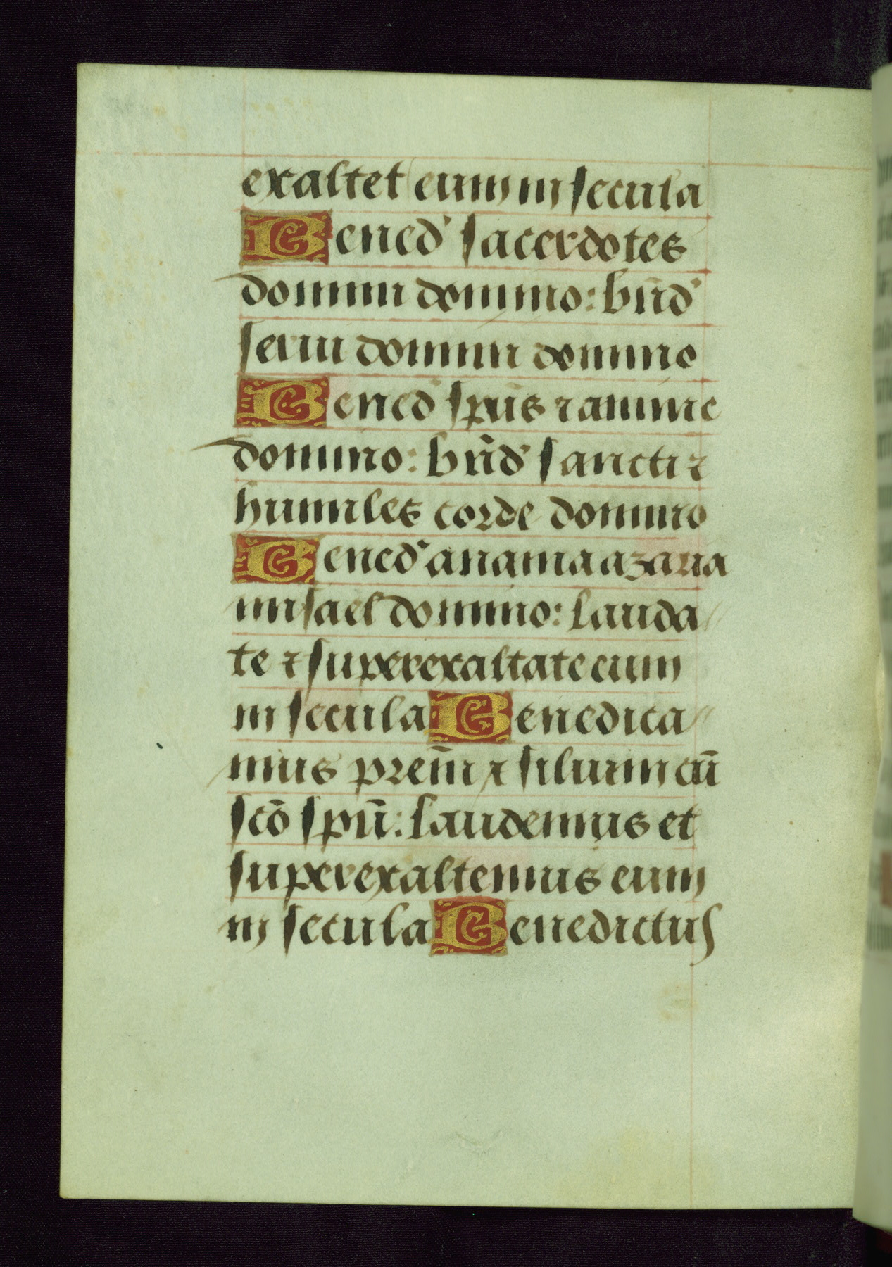 This small Book of Hours was made at the turn of the sixteenth century. The illuminations are in the style of the Master of the Prayerbook of ca. 1500, active in Bruges. The name of the first owner is inscribed in the book in a prayer on fol. 241v, in which a man named Philip confesses himself a sinner and prays for his heart to be pure. The series of full-page miniatures opens with an interesting illumination of the Salvator Mundi that was a common theme in South Netherlandish illumination in this period. A comparable example, painted by the Master of the Prayerbook c. 1500, is found in the manuscript Vat. Ross. Lat. 94.