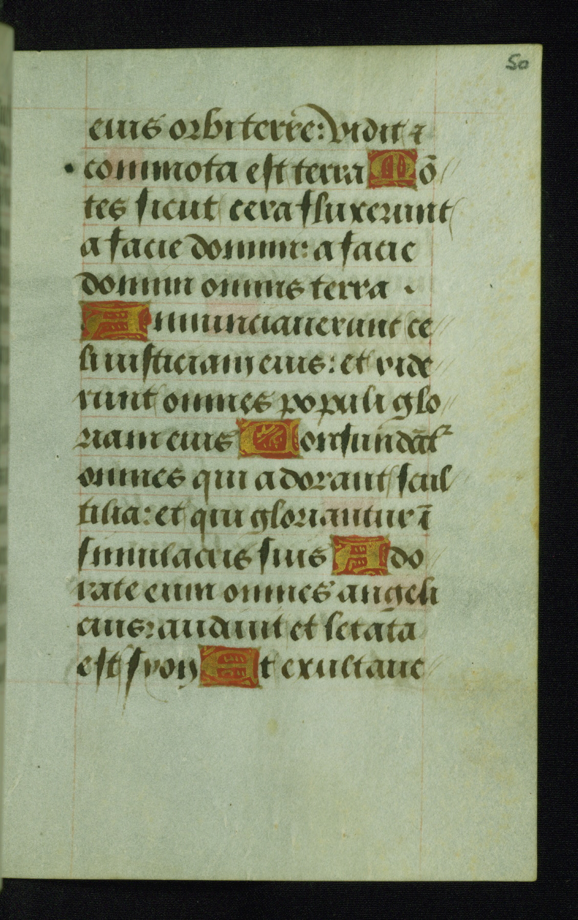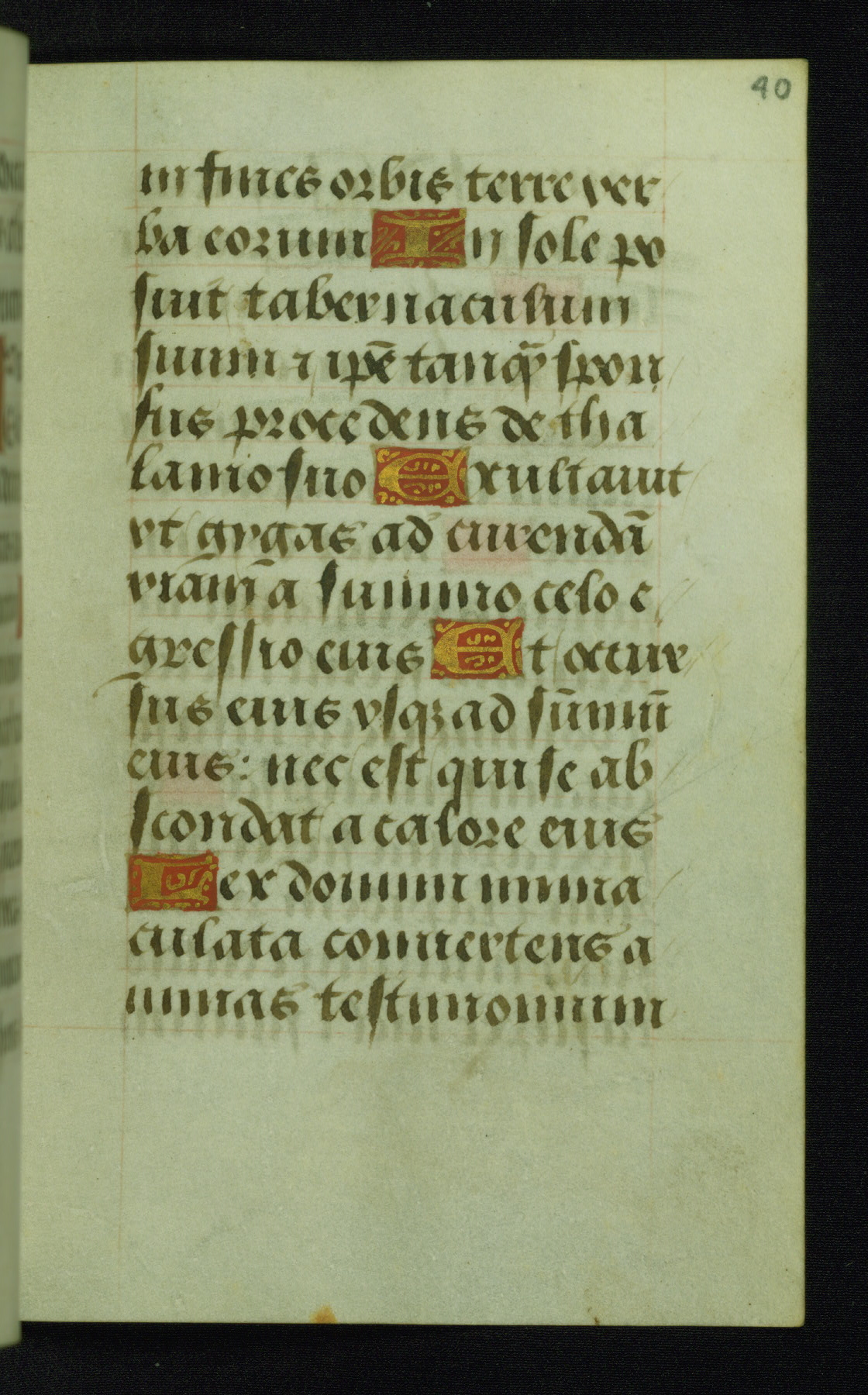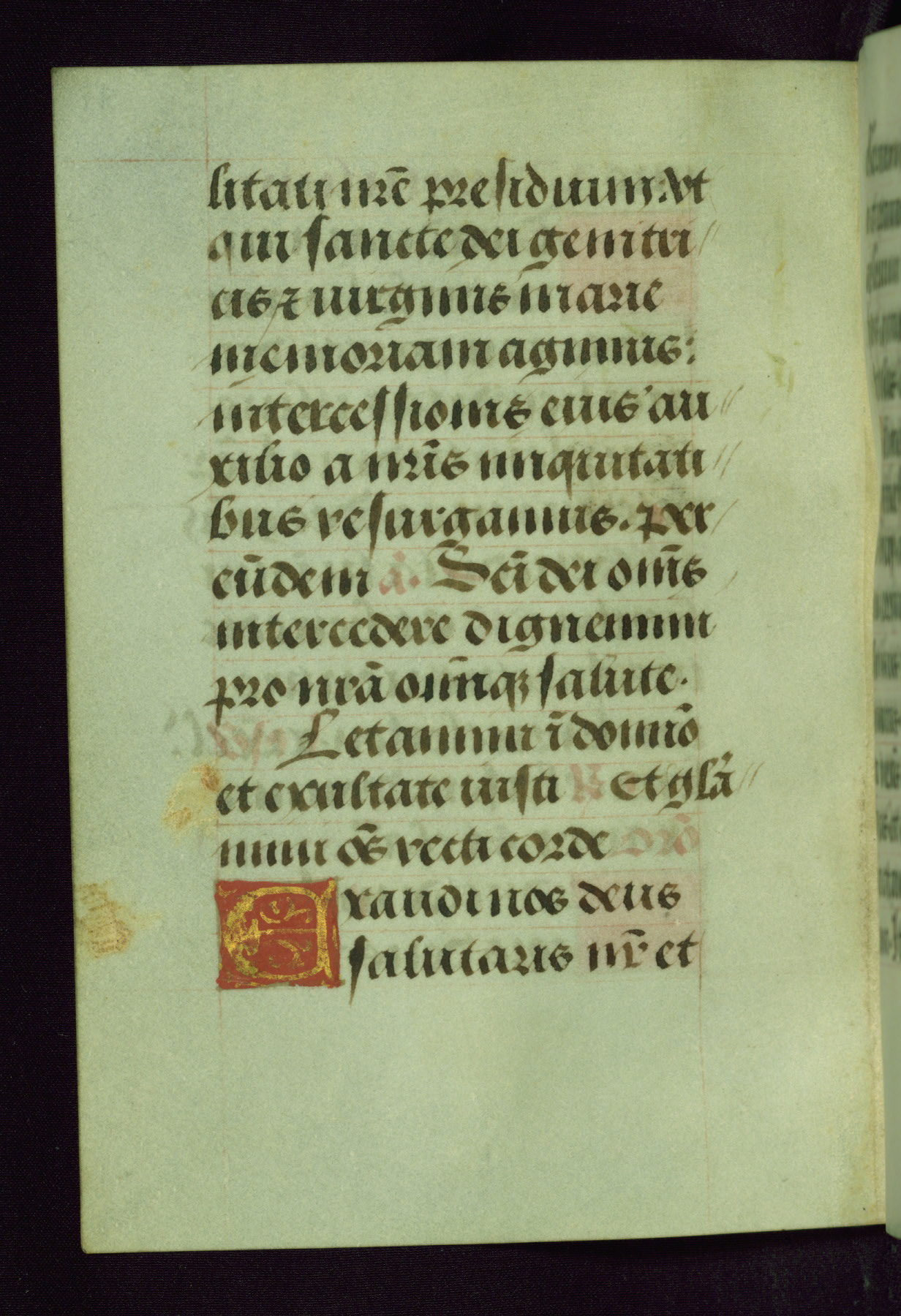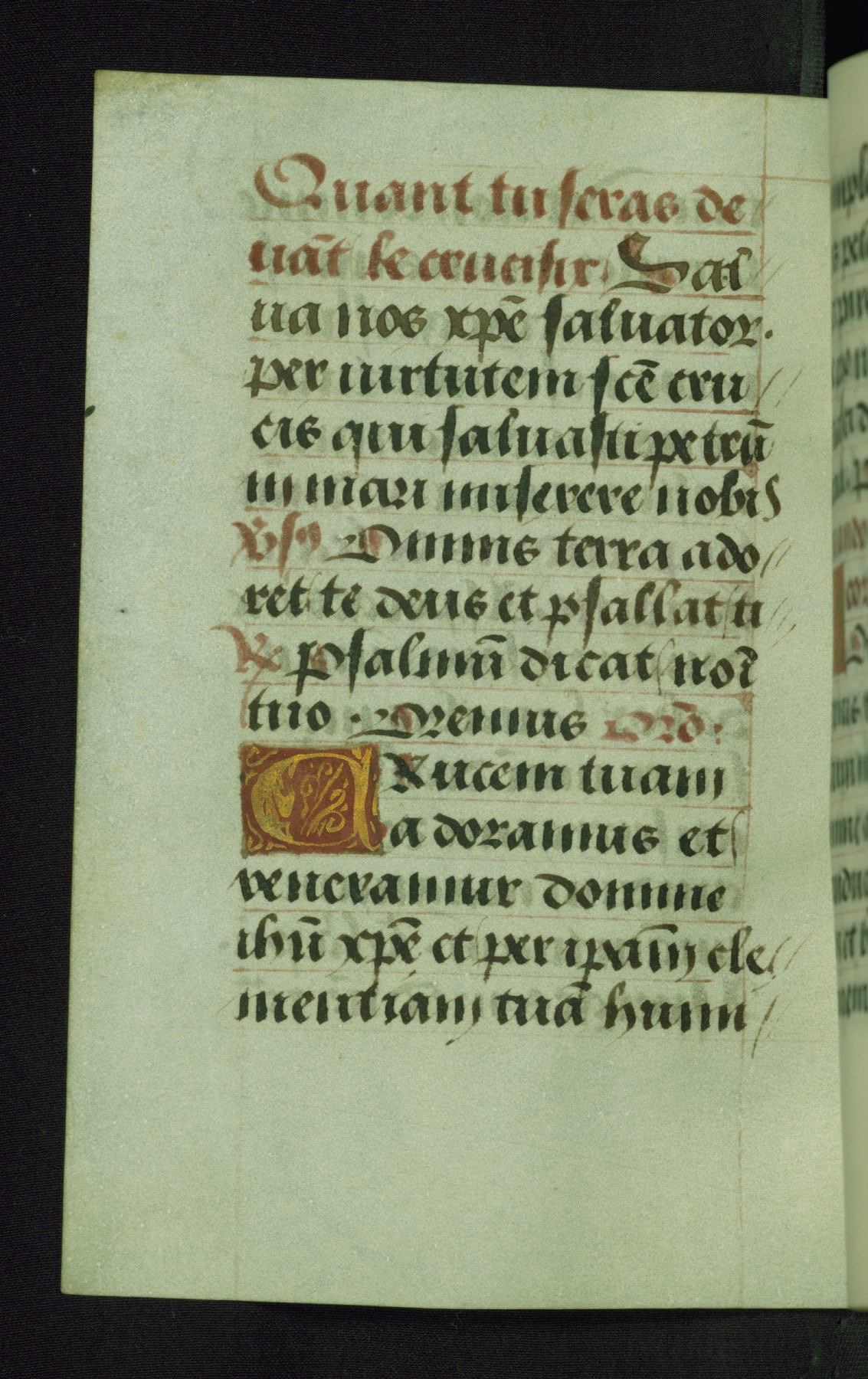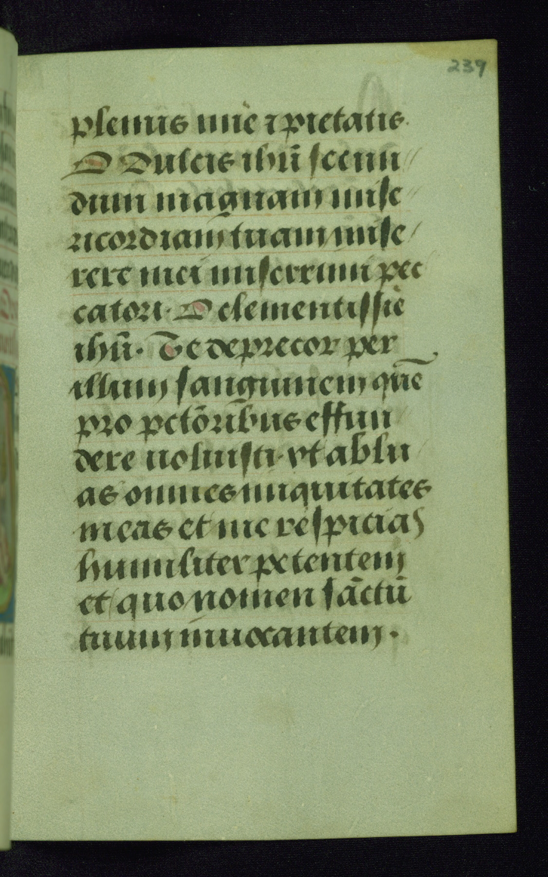 This small Book of Hours was made at the turn of the sixteenth century. The illuminations are in the style of the Master of the Prayerbook of ca. 1500, active in Bruges. The name of the first owner is inscribed in the book in a prayer on fol. 241v, in which a man named Philip confesses himself a sinner and prays for his heart to be pure. The series of full-page miniatures opens with an interesting illumination of the Salvator Mundi that was a common theme in South Netherlandish illumination in this period. A comparable example, painted by the Master of the Prayerbook c. 1500, is found in the manuscript Vat. Ross. Lat. 94.