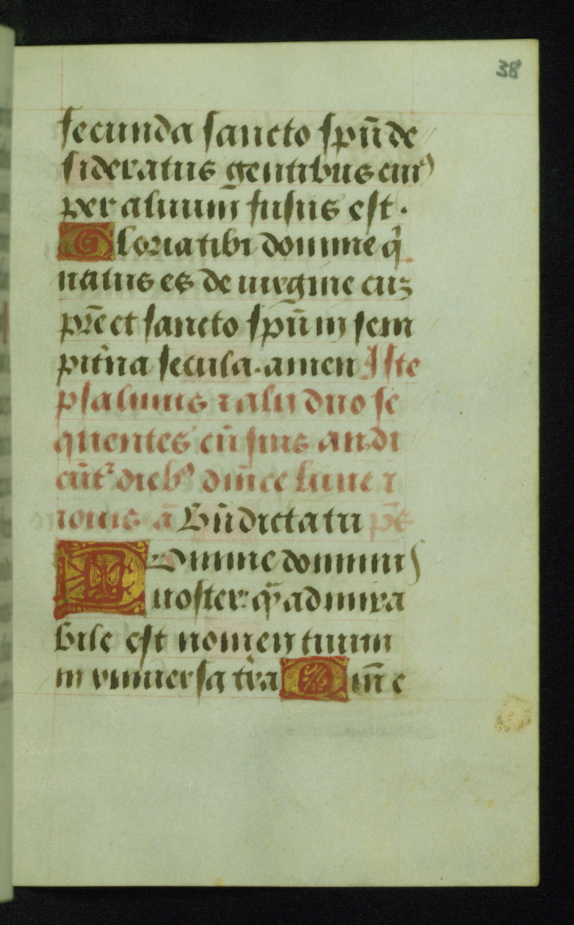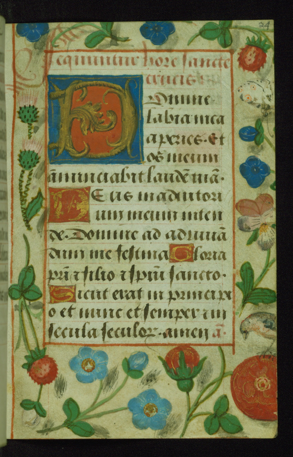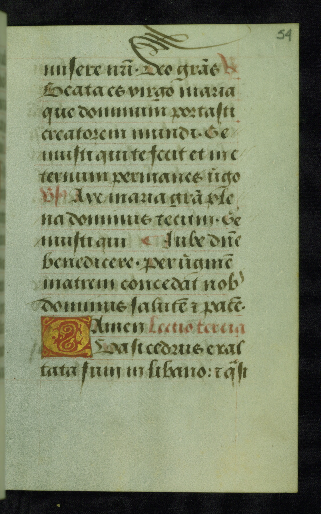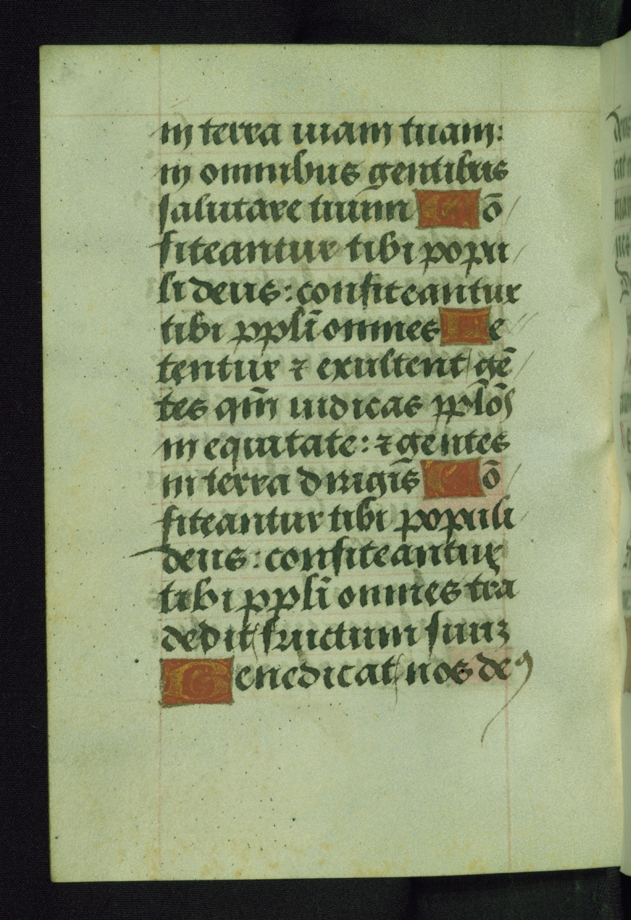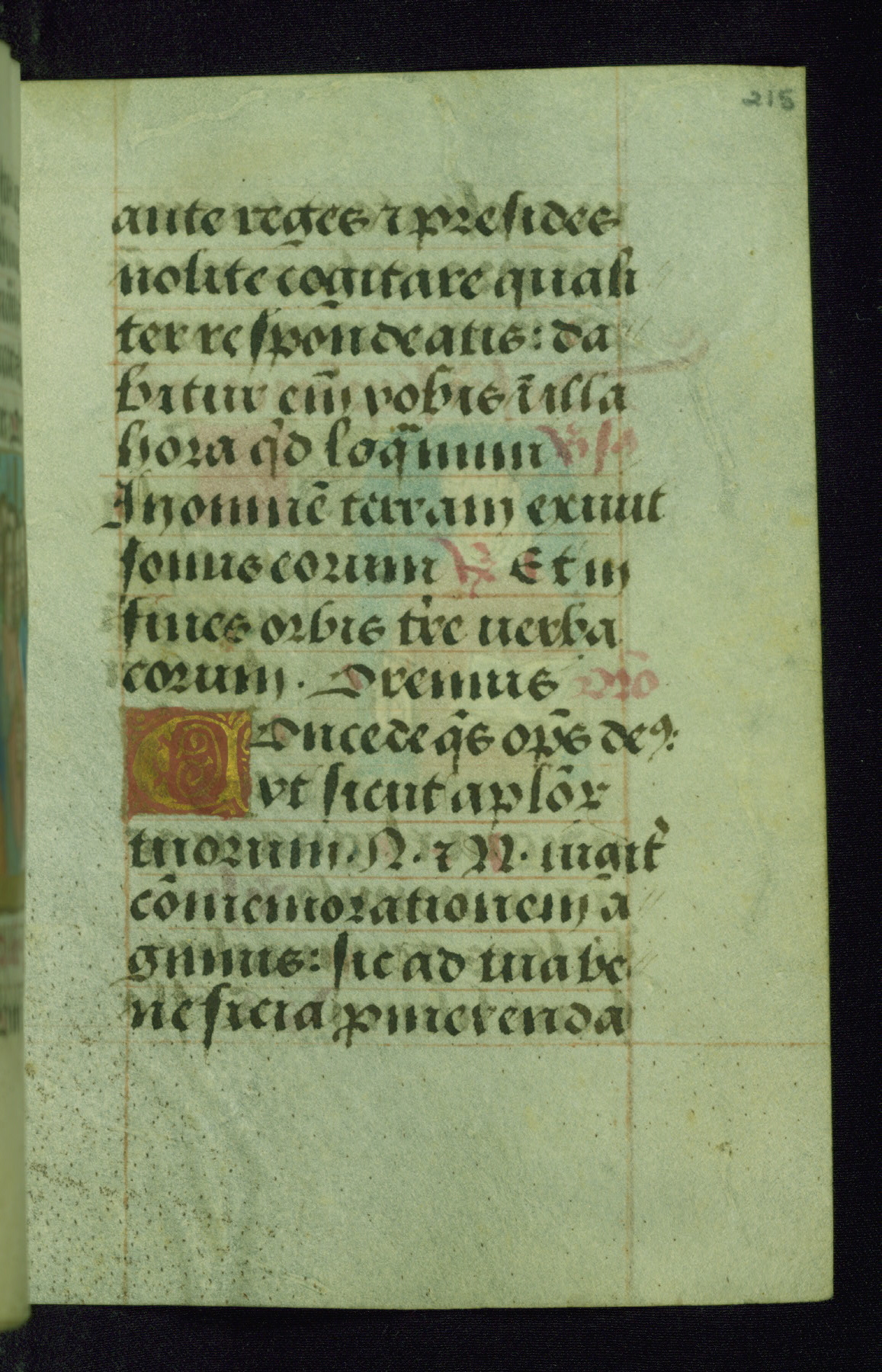 This small Book of Hours was made at the turn of the sixteenth century. The illuminations are in the style of the Master of the Prayerbook of ca. 1500, active in Bruges. The name of the first owner is inscribed in the book in a prayer on fol. 241v, in which a man named Philip confesses himself a sinner and prays for his heart to be pure. The series of full-page miniatures opens with an interesting illumination of the Salvator Mundi that was a common theme in South Netherlandish illumination in this period. A comparable example, painted by the Master of the Prayerbook c. 1500, is found in the manuscript Vat. Ross. Lat. 94.