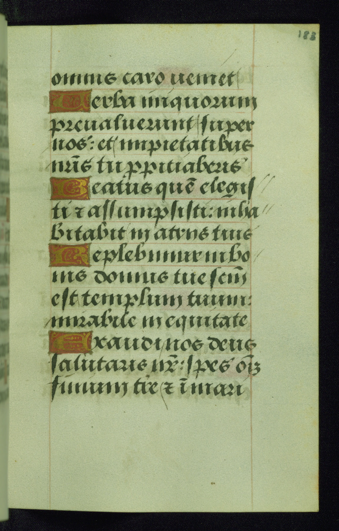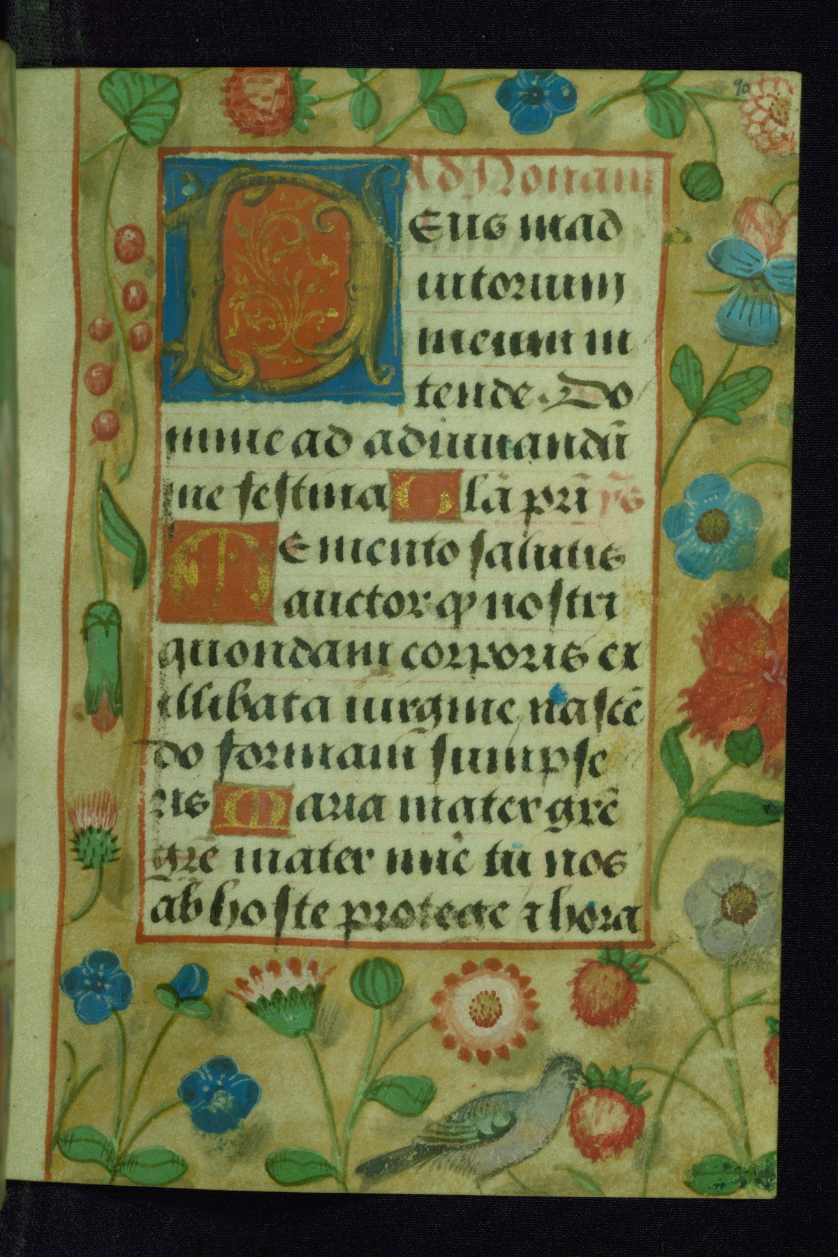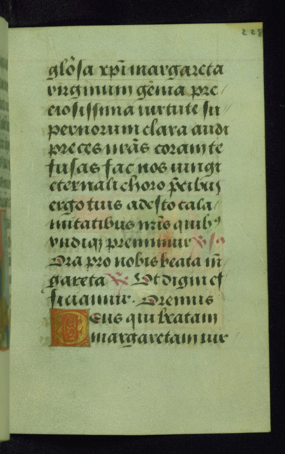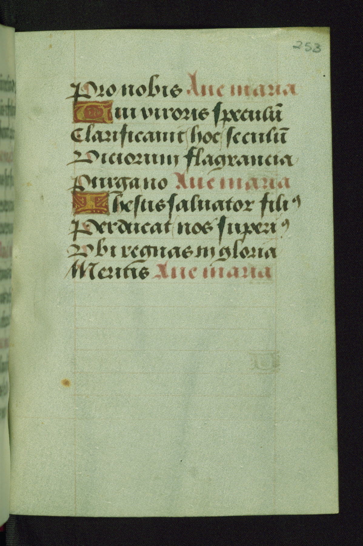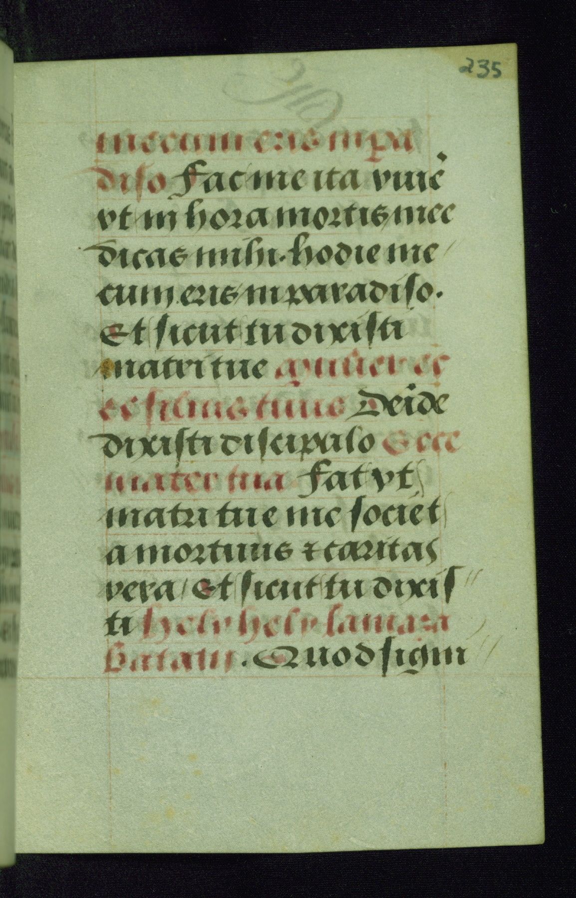 This small Book of Hours was made at the turn of the sixteenth century. The illuminations are in the style of the Master of the Prayerbook of ca. 1500, active in Bruges. The name of the first owner is inscribed in the book in a prayer on fol. 241v, in which a man named Philip confesses himself a sinner and prays for his heart to be pure. The series of full-page miniatures opens with an interesting illumination of the Salvator Mundi that was a common theme in South Netherlandish illumination in this period. A comparable example, painted by the Master of the Prayerbook c. 1500, is found in the manuscript Vat. Ross. Lat. 94.