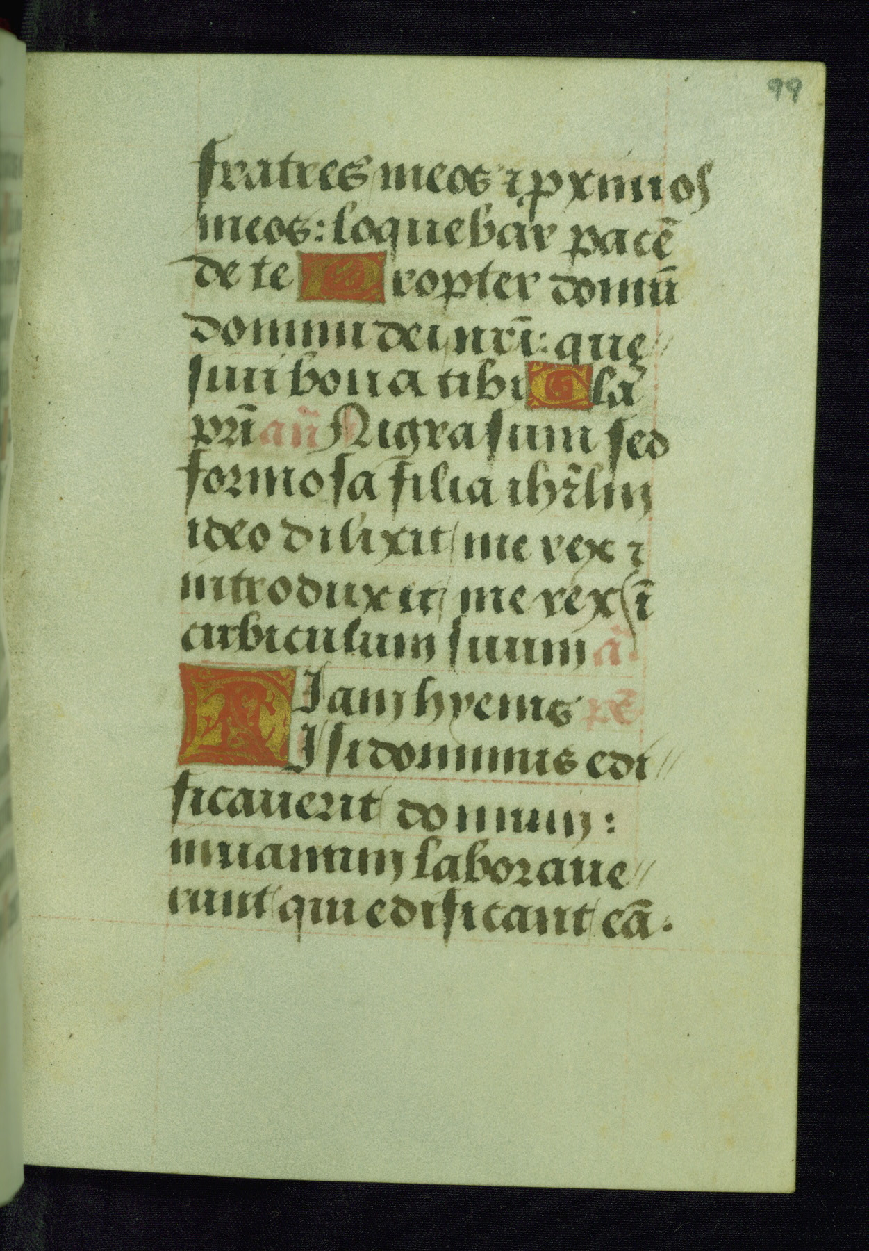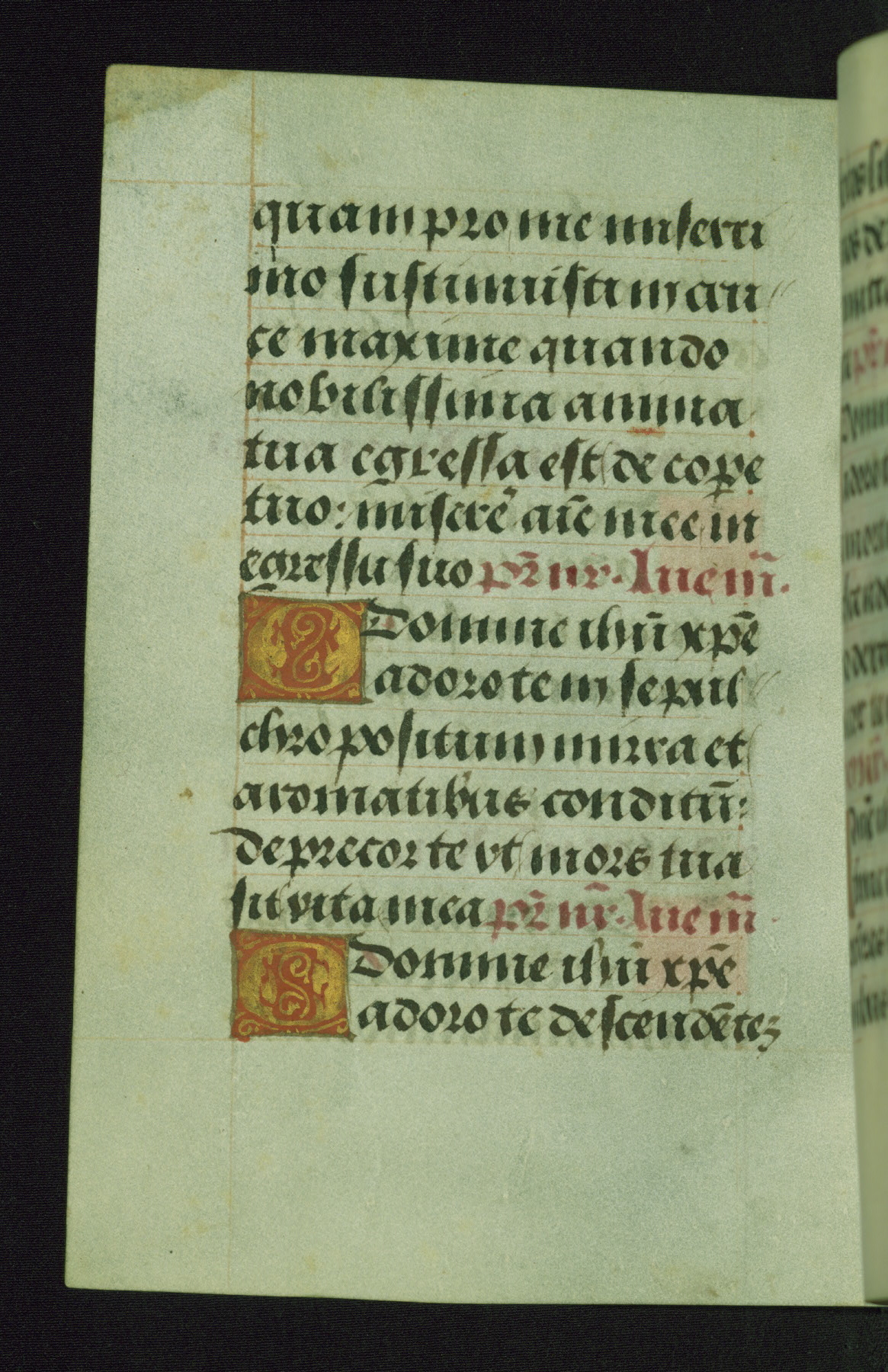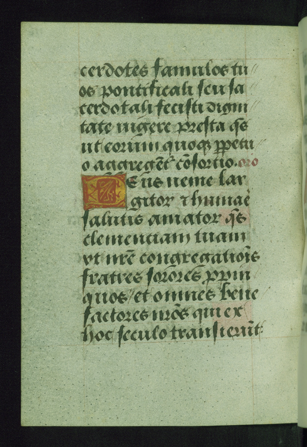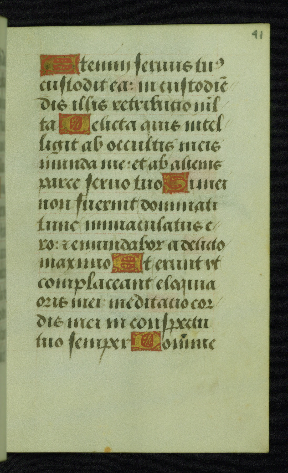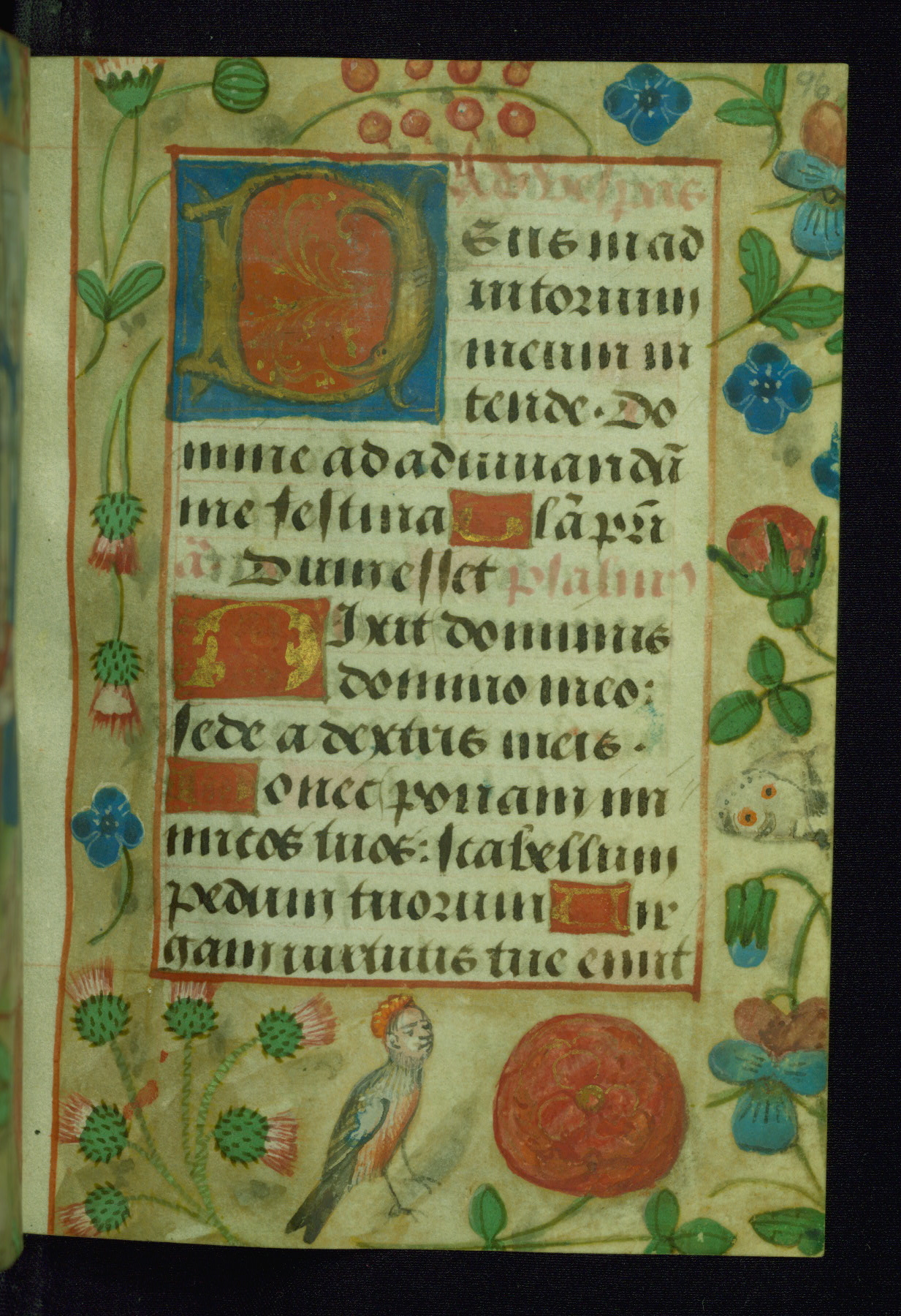 This small Book of Hours was made at the turn of the sixteenth century. The illuminations are in the style of the Master of the Prayerbook of ca. 1500, active in Bruges. The name of the first owner is inscribed in the book in a prayer on fol. 241v, in which a man named Philip confesses himself a sinner and prays for his heart to be pure. The series of full-page miniatures opens with an interesting illumination of the Salvator Mundi that was a common theme in South Netherlandish illumination in this period. A comparable example, painted by the Master of the Prayerbook c. 1500, is found in the manuscript Vat. Ross. Lat. 94.
