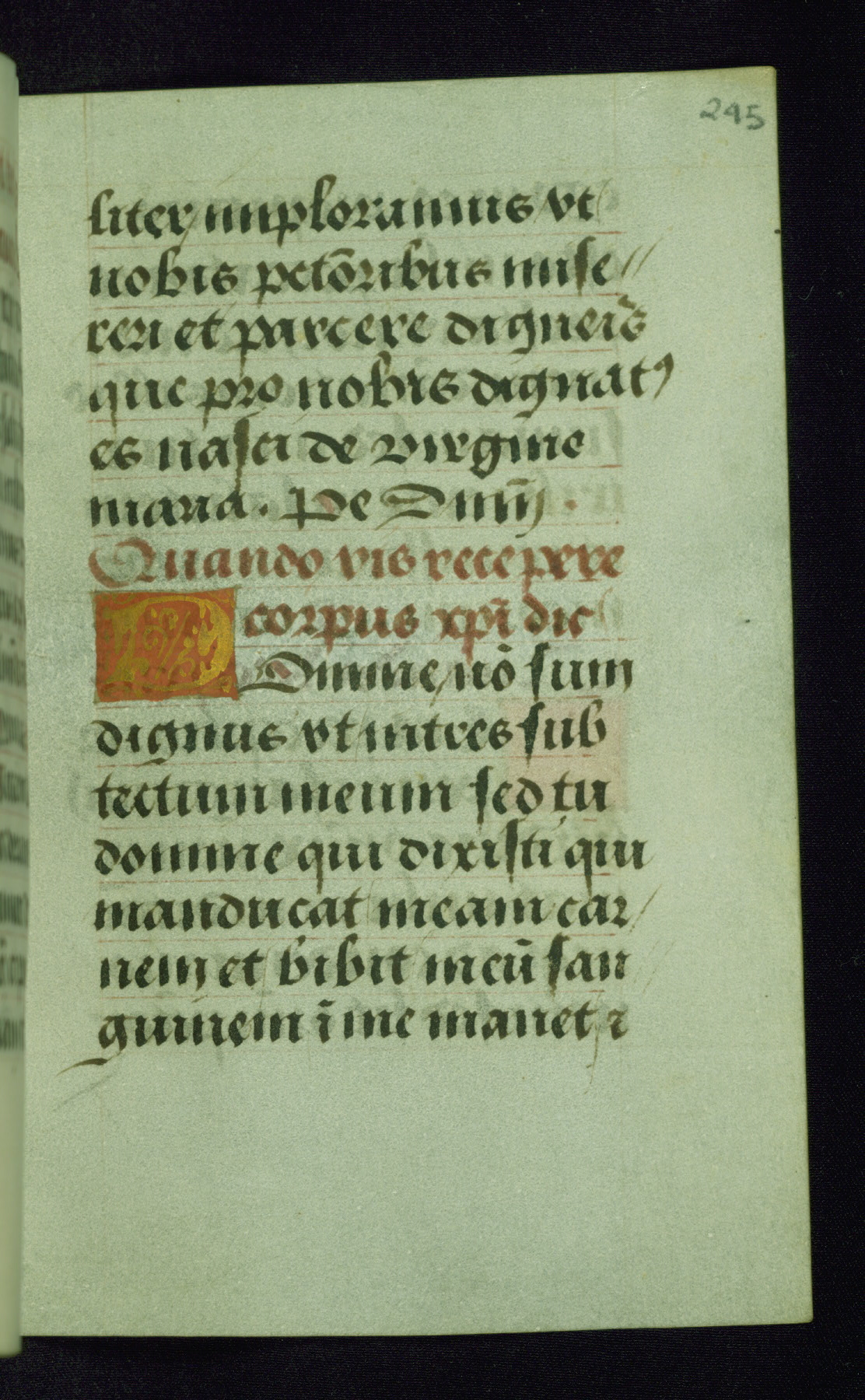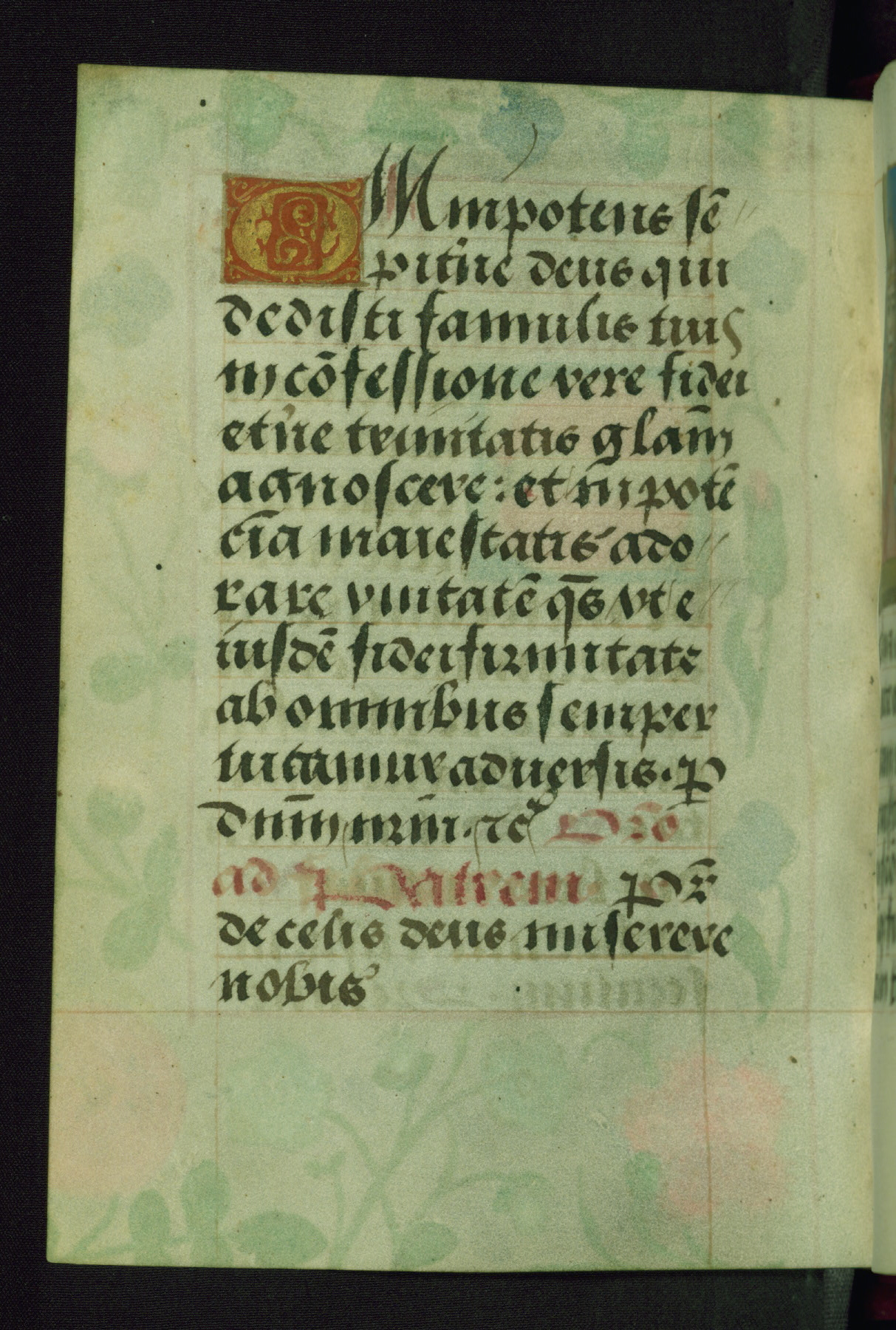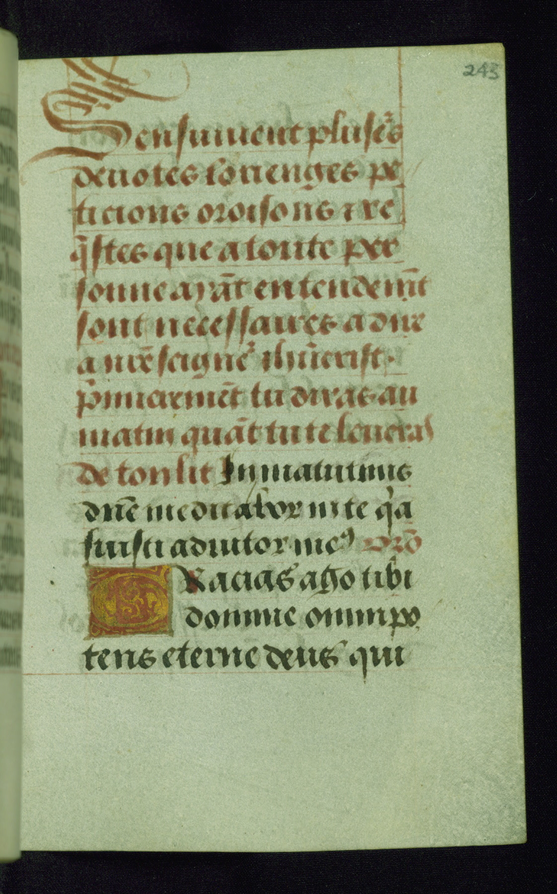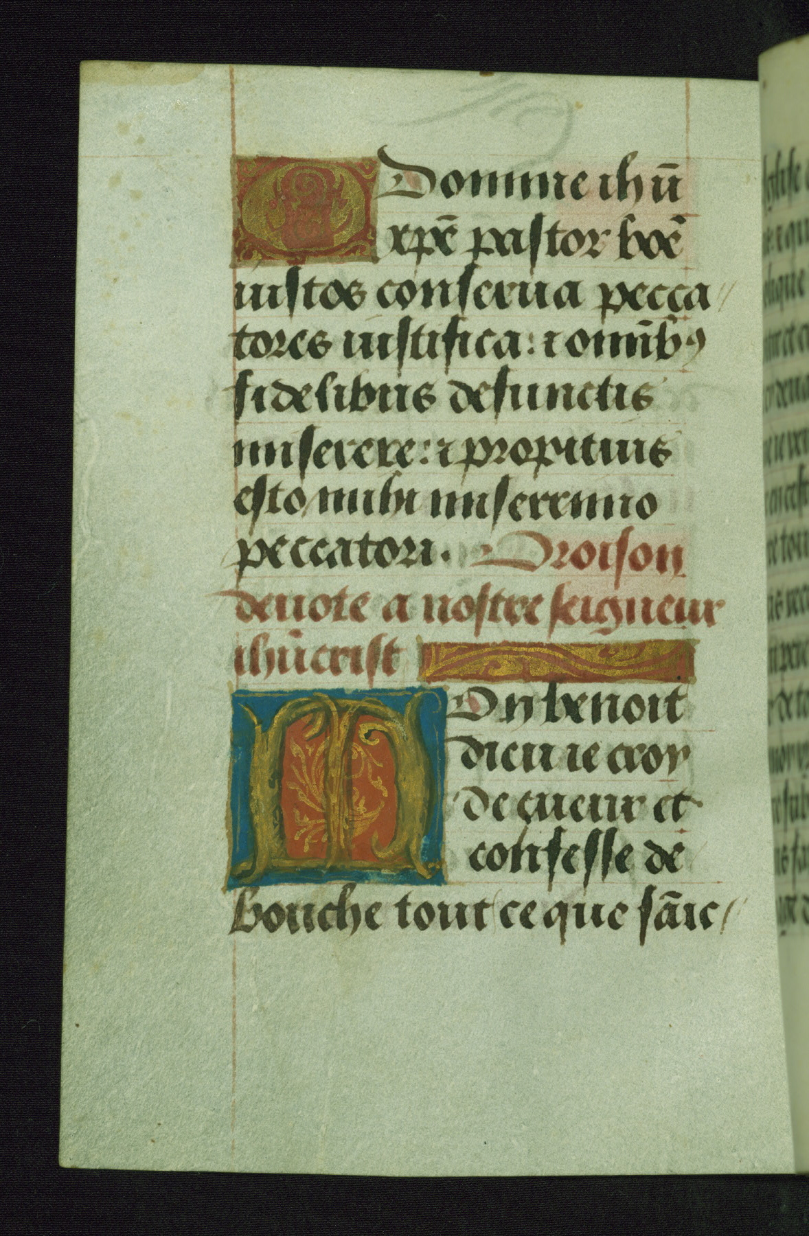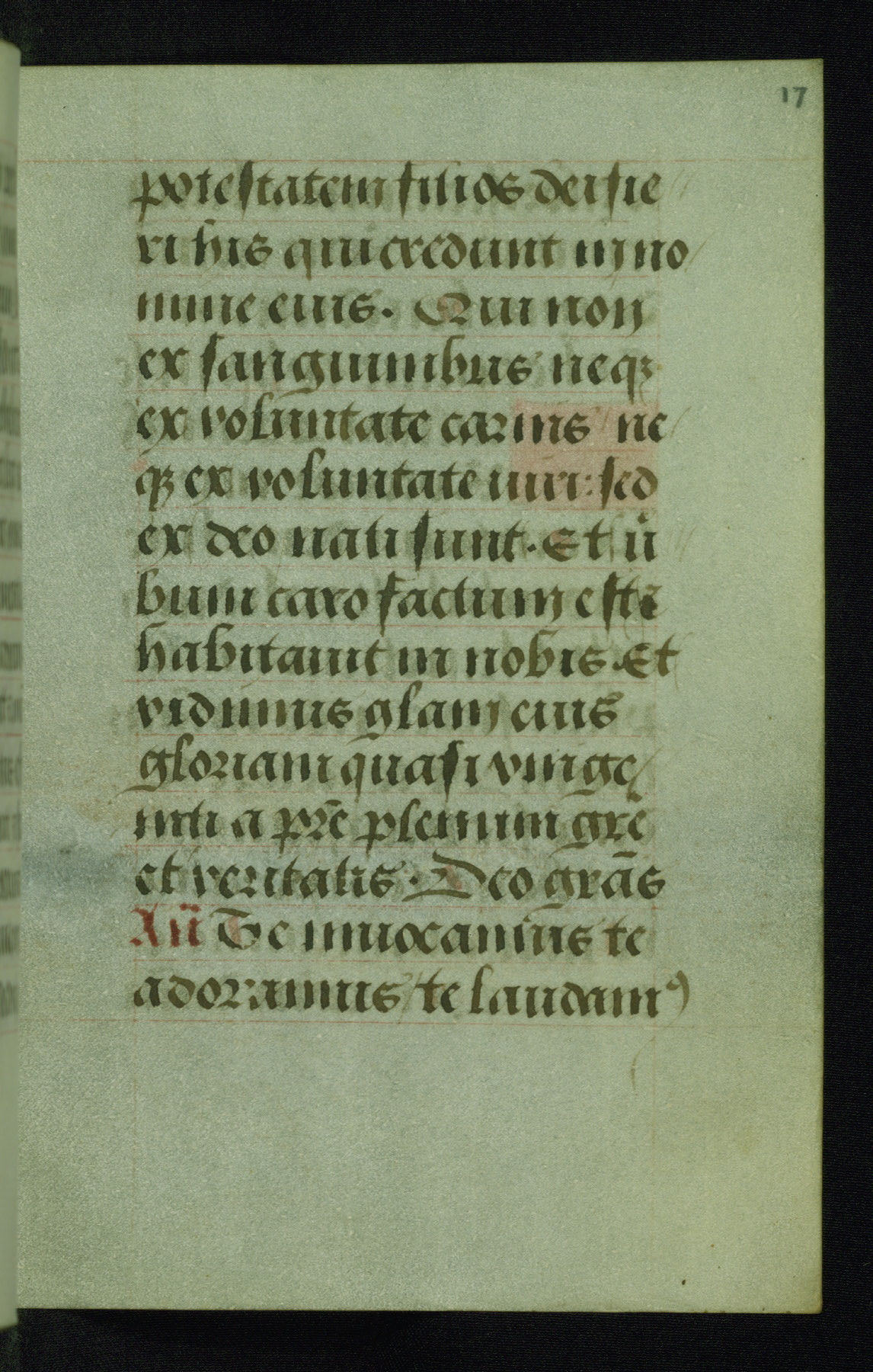 This small Book of Hours was made at the turn of the sixteenth century. The illuminations are in the style of the Master of the Prayerbook of ca. 1500, active in Bruges. The name of the first owner is inscribed in the book in a prayer on fol. 241v, in which a man named Philip confesses himself a sinner and prays for his heart to be pure. The series of full-page miniatures opens with an interesting illumination of the Salvator Mundi that was a common theme in South Netherlandish illumination in this period. A comparable example, painted by the Master of the Prayerbook c. 1500, is found in the manuscript Vat. Ross. Lat. 94.