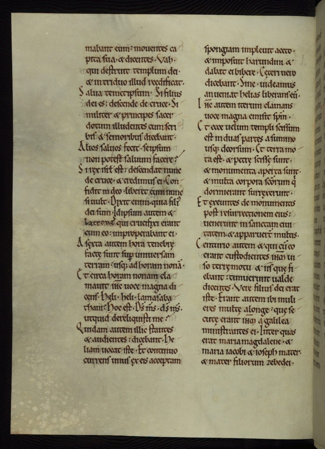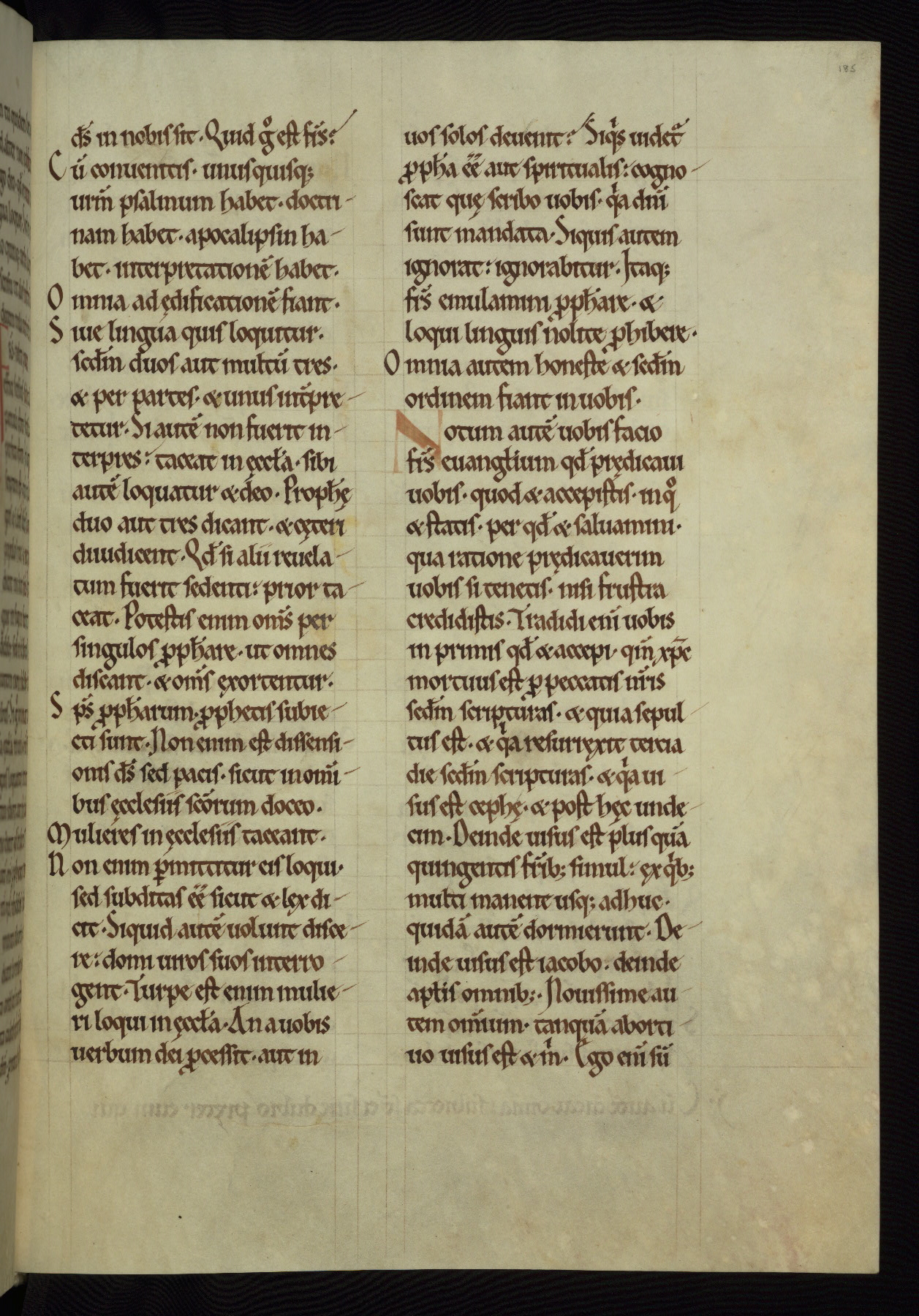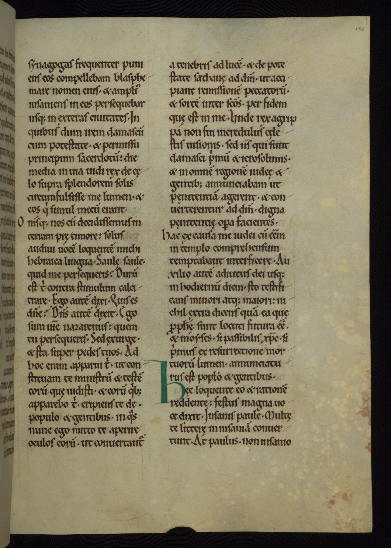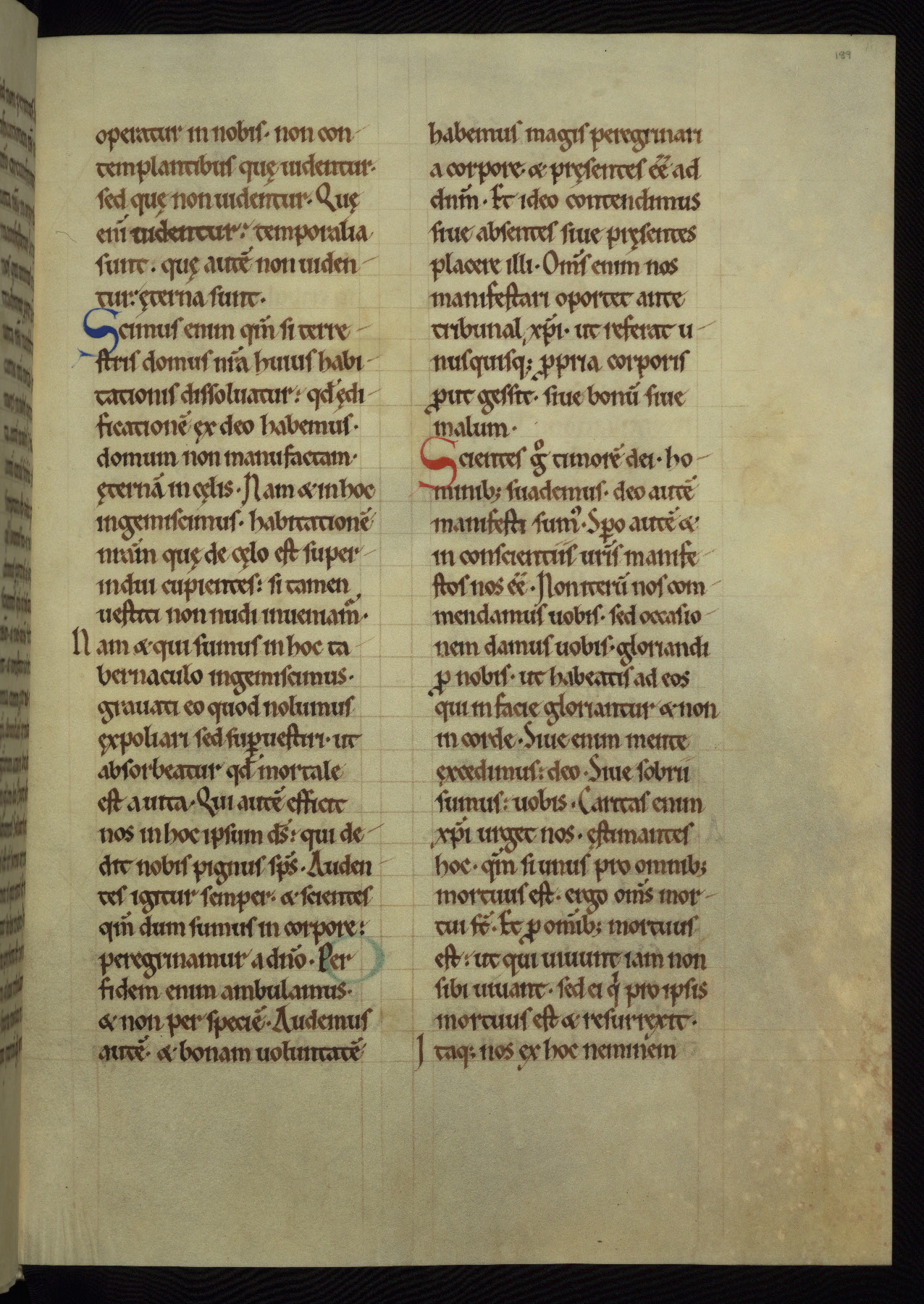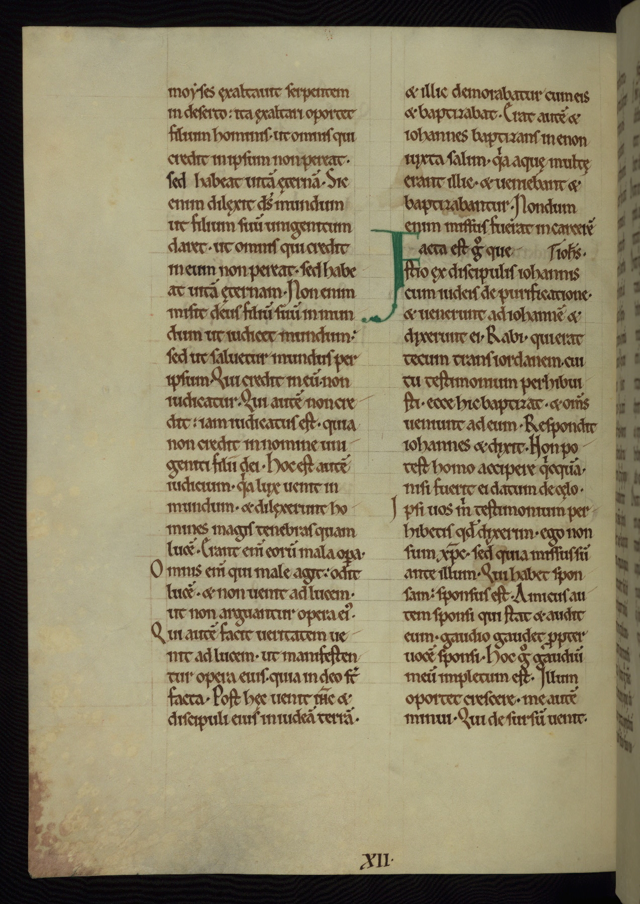 This large-format copy of the New Testament was almost certainly created at Rochester Cathedral Priory, England, in the first half of the twelfth century. It was part of a five-volume Bible, only one other volume of which, London, British Library Ms. Royal I.C.VII, has survived. The decorated initials in these manuscripts compare closely with those in other books securely attributed to Rochester. Textually these books are closely related to the Gundulph Bible (San Marino, Huntington Library Ms. HM 62), known to have been produced at Rochester in the second half of the eleventh century. Although neither the Walters' nor the British Library's volume includes an inscription associating this Bible with Rochester, the two medieval catalogs of the Rochester Cathedral library, produced around 1130 and in 1202, contain references to manuscripts that correspond well with them. The book’s large size indicates it that was designed to be read aloud, either during services or at meals in the refectory. Large, fanciful initials filled with succulent foliage, fruit, dragons, animals, and human faces begin each section of the text. Executed in a vibrant palette of red, blue, green, ochre (in place of gold), and yellow, the intricate, dynamic designs capture the essence of Romanesque manuscript illumination. Royal I.C.VII also includes four historiated initials (for the books of Joshua, I Samuel, 2 Samuel, and 2 Kings). Although the Bible was made at Rochester, the pre-Gothic script of W.18 in particular is extremely close to that practiced at nearby Canterbury at the time.