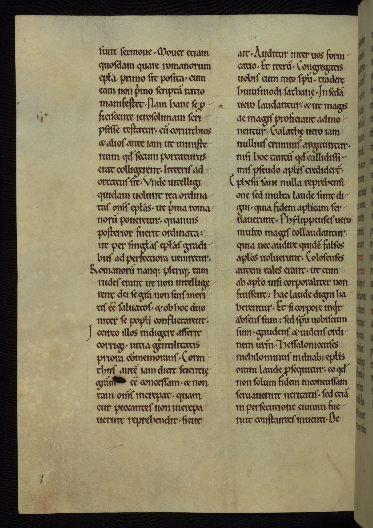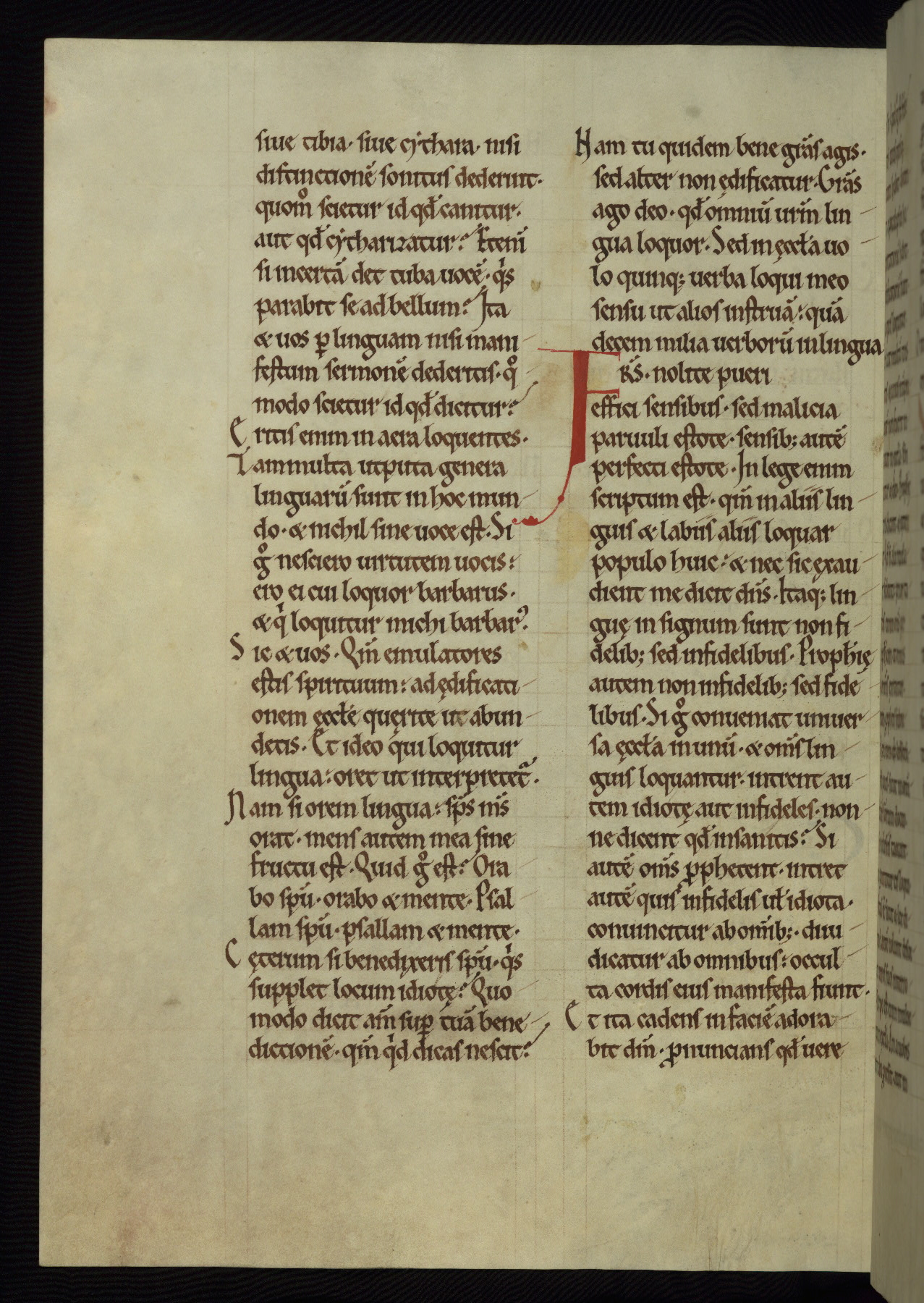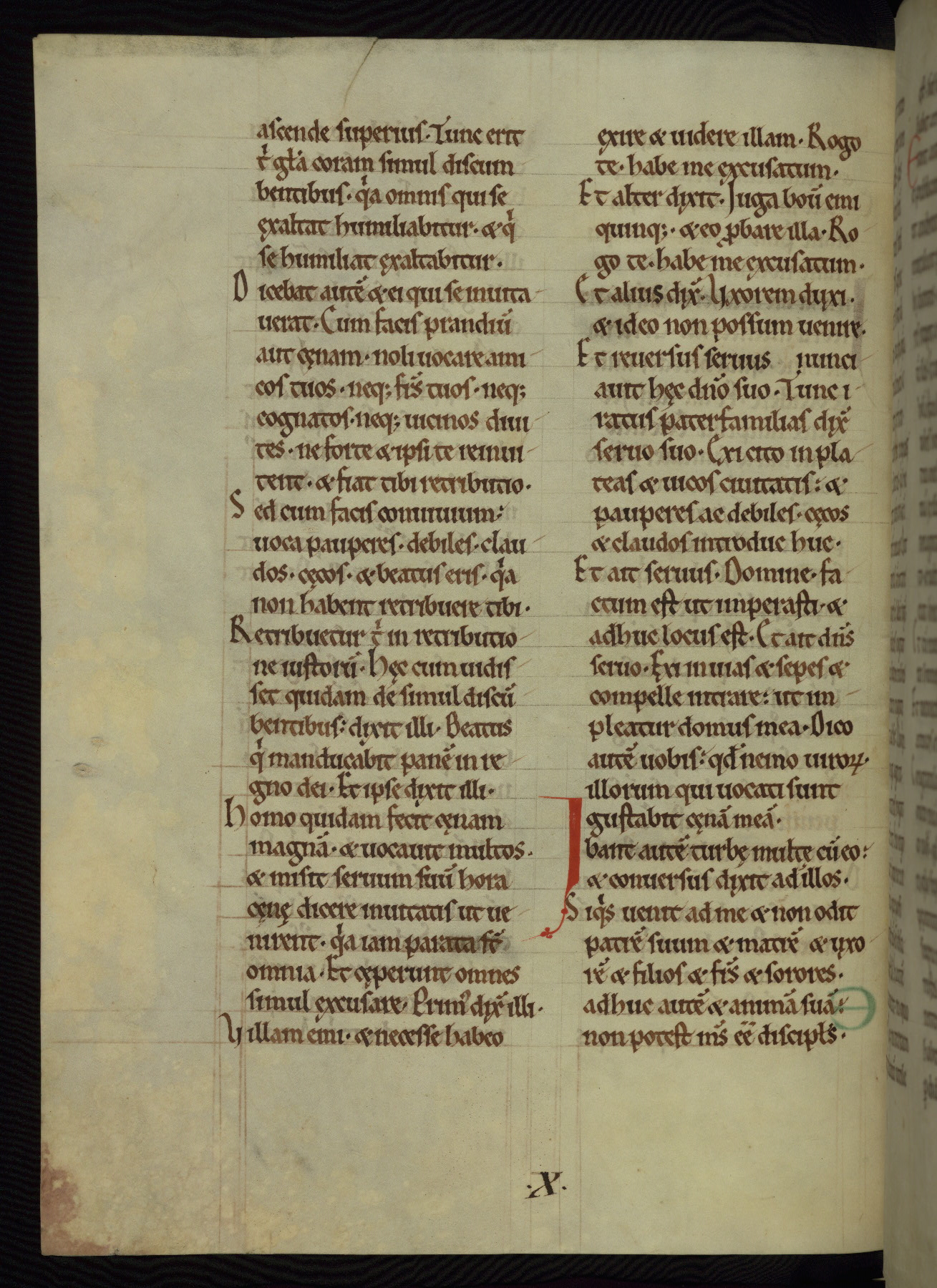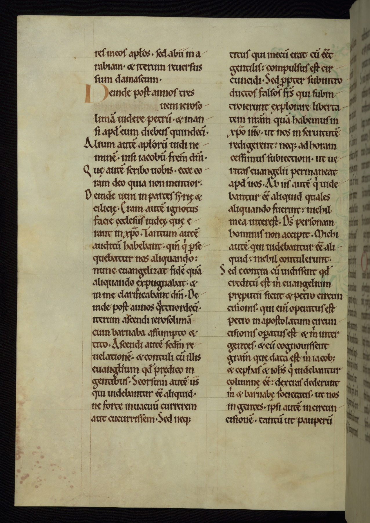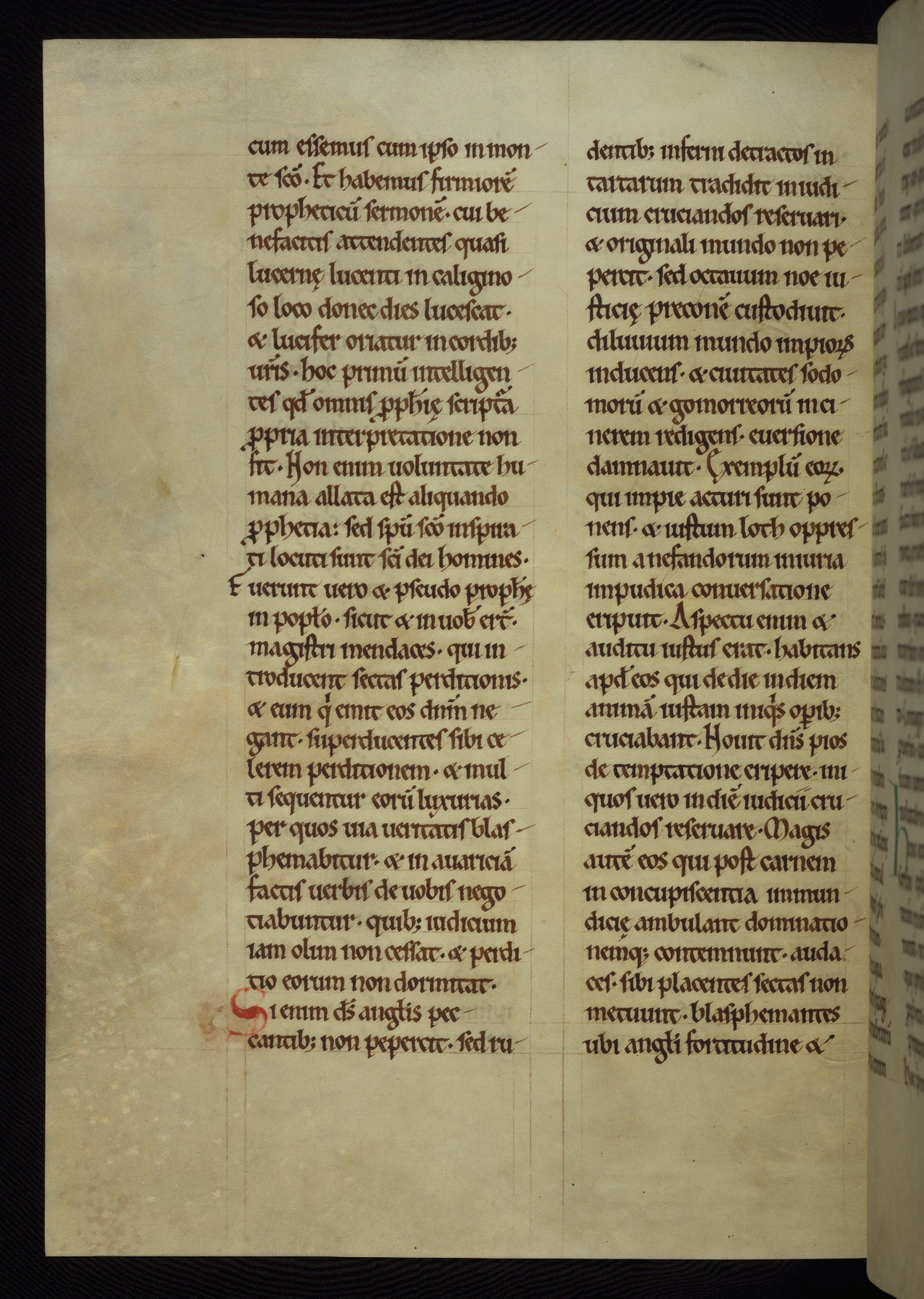 This large-format copy of the New Testament was almost certainly created at Rochester Cathedral Priory, England, in the first half of the twelfth century. It was part of a five-volume Bible, only one other volume of which, London, British Library Ms. Royal I.C.VII, has survived. The decorated initials in these manuscripts compare closely with those in other books securely attributed to Rochester. Textually these books are closely related to the Gundulph Bible (San Marino, Huntington Library Ms. HM 62), known to have been produced at Rochester in the second half of the eleventh century. Although neither the Walters' nor the British Library's volume includes an inscription associating this Bible with Rochester, the two medieval catalogs of the Rochester Cathedral library, produced around 1130 and in 1202, contain references to manuscripts that correspond well with them. The book’s large size indicates it that was designed to be read aloud, either during services or at meals in the refectory. Large, fanciful initials filled with succulent foliage, fruit, dragons, animals, and human faces begin each section of the text. Executed in a vibrant palette of red, blue, green, ochre (in place of gold), and yellow, the intricate, dynamic designs capture the essence of Romanesque manuscript illumination. Royal I.C.VII also includes four historiated initials (for the books of Joshua, I Samuel, 2 Samuel, and 2 Kings). Although the Bible was made at Rochester, the pre-Gothic script of W.18 in particular is extremely close to that practiced at nearby Canterbury at the time.