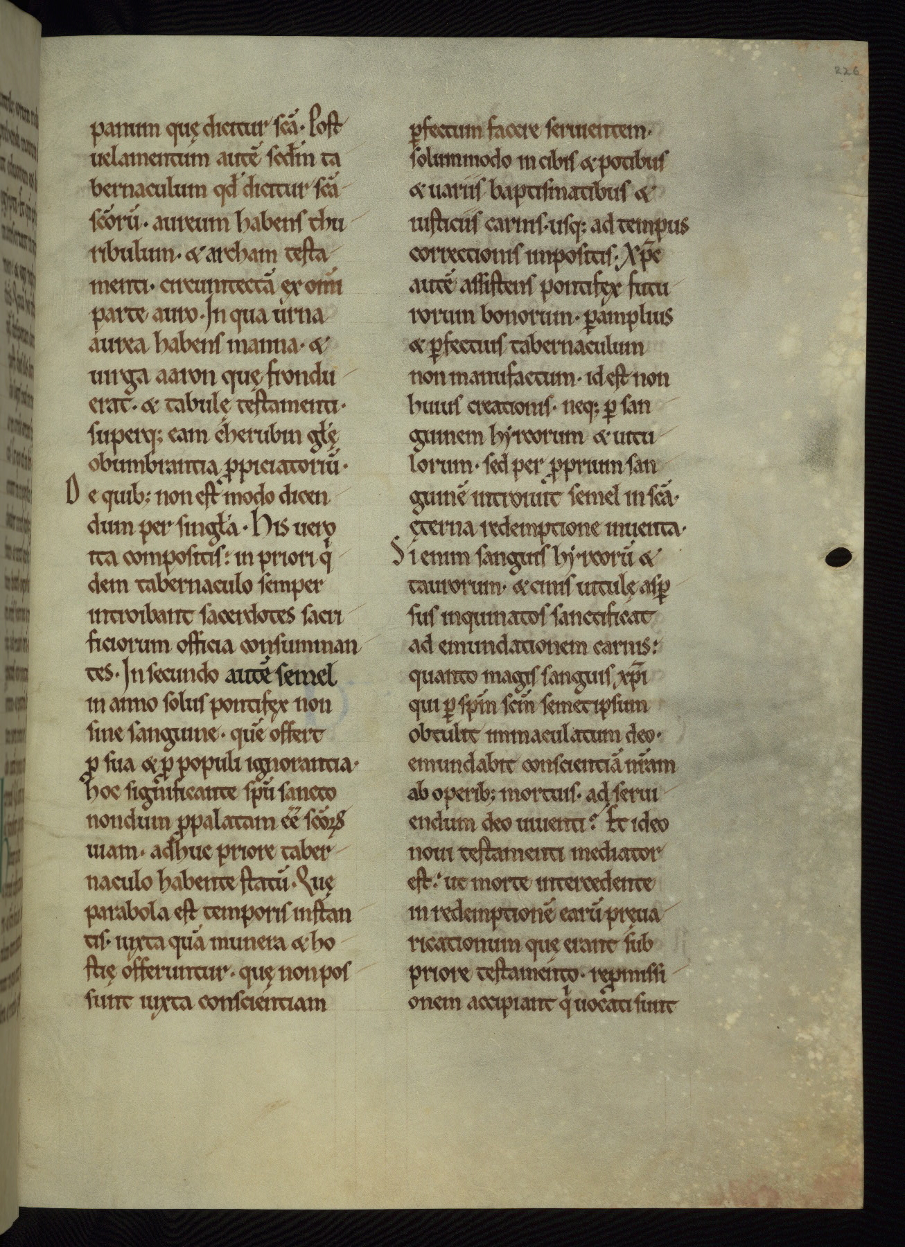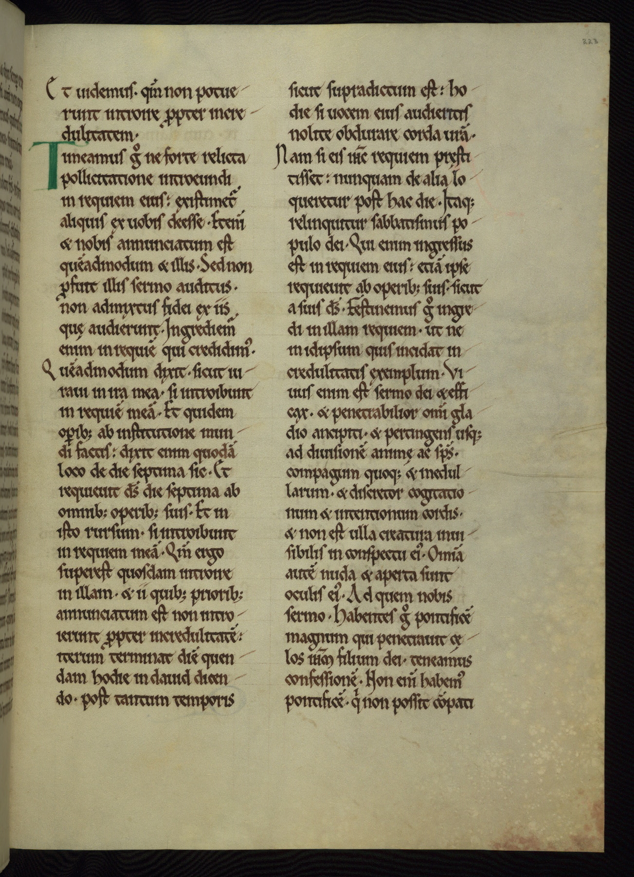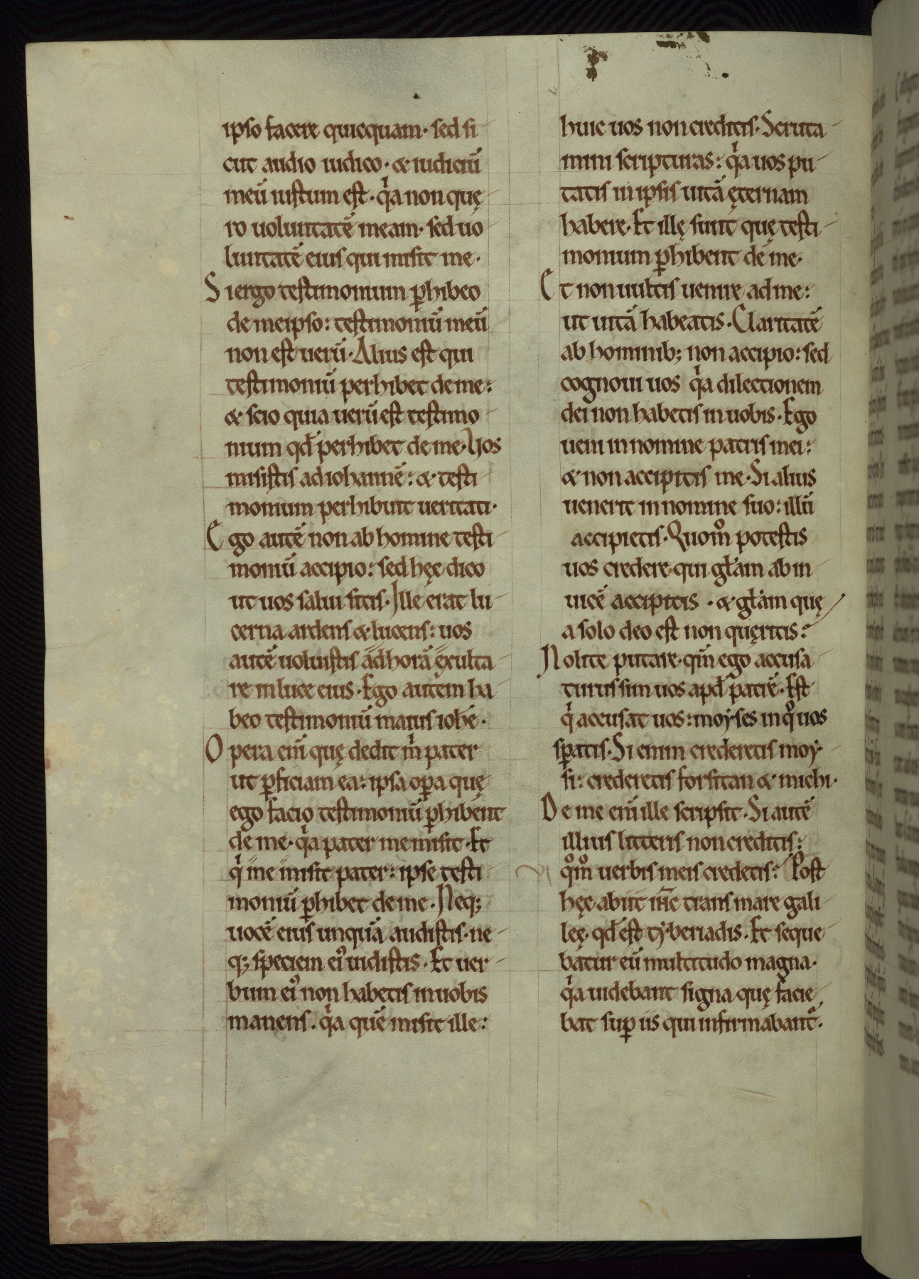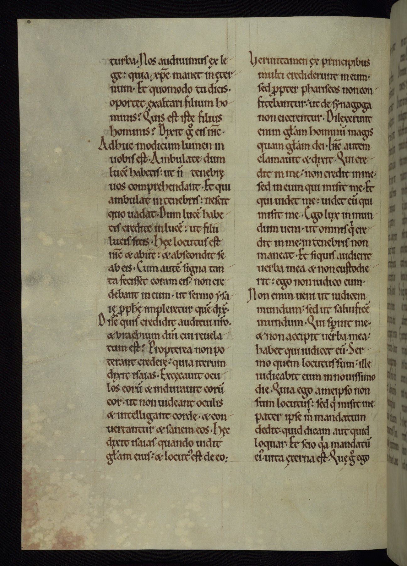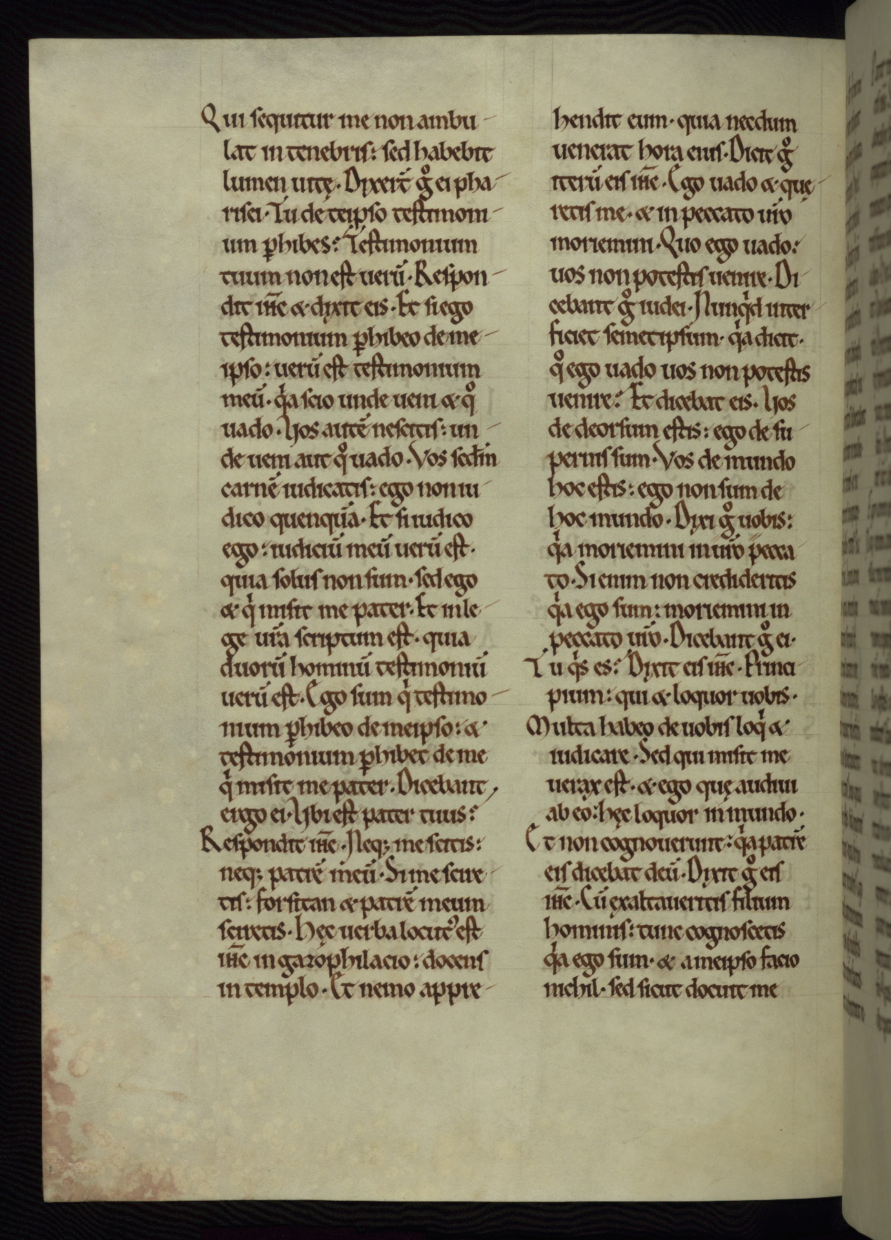 This large-format copy of the New Testament was almost certainly created at Rochester Cathedral Priory, England, in the first half of the twelfth century. It was part of a five-volume Bible, only one other volume of which, London, British Library Ms. Royal I.C.VII, has survived. The decorated initials in these manuscripts compare closely with those in other books securely attributed to Rochester. Textually these books are closely related to the Gundulph Bible (San Marino, Huntington Library Ms. HM 62), known to have been produced at Rochester in the second half of the eleventh century. Although neither the Walters' nor the British Library's volume includes an inscription associating this Bible with Rochester, the two medieval catalogs of the Rochester Cathedral library, produced around 1130 and in 1202, contain references to manuscripts that correspond well with them. The book’s large size indicates it that was designed to be read aloud, either during services or at meals in the refectory. Large, fanciful initials filled with succulent foliage, fruit, dragons, animals, and human faces begin each section of the text. Executed in a vibrant palette of red, blue, green, ochre (in place of gold), and yellow, the intricate, dynamic designs capture the essence of Romanesque manuscript illumination. Royal I.C.VII also includes four historiated initials (for the books of Joshua, I Samuel, 2 Samuel, and 2 Kings). Although the Bible was made at Rochester, the pre-Gothic script of W.18 in particular is extremely close to that practiced at nearby Canterbury at the time.