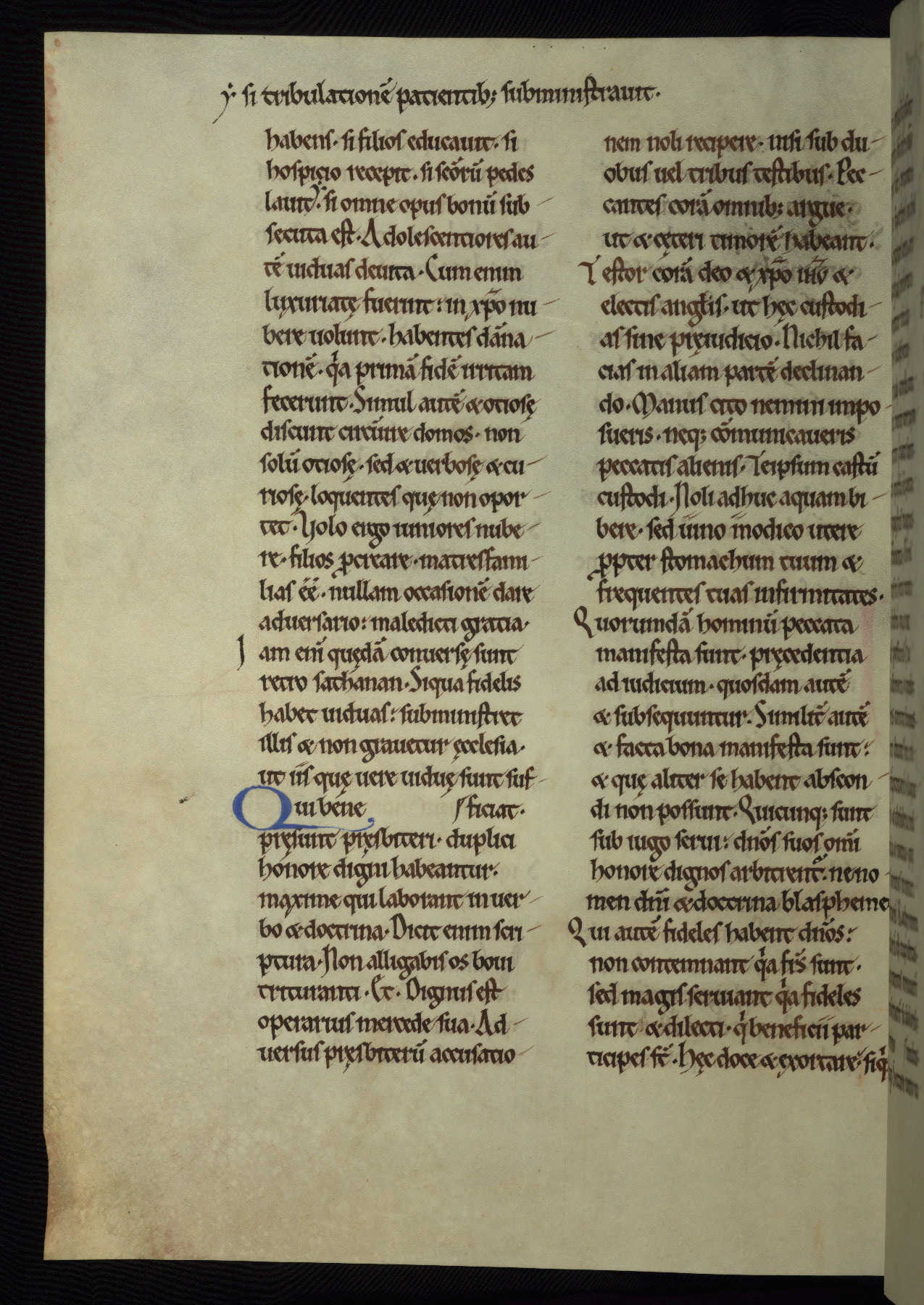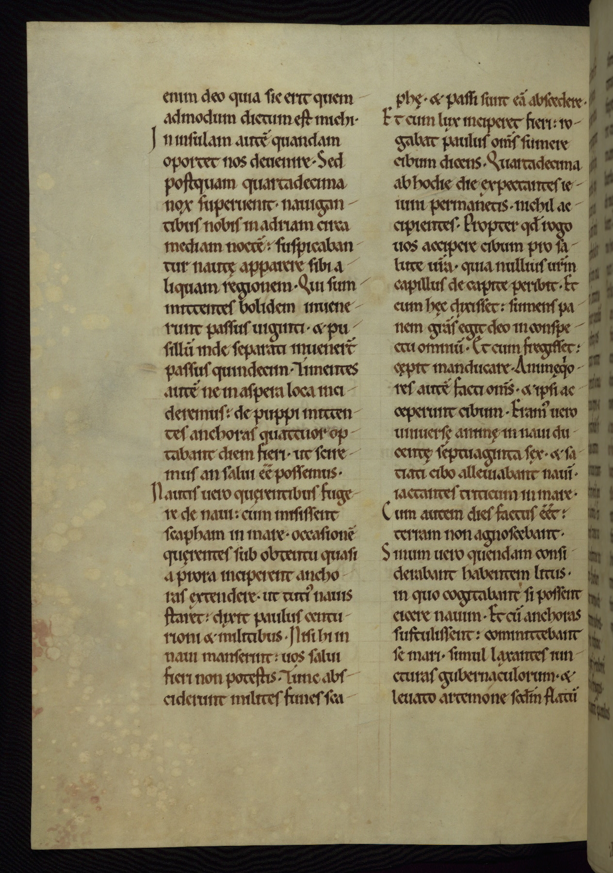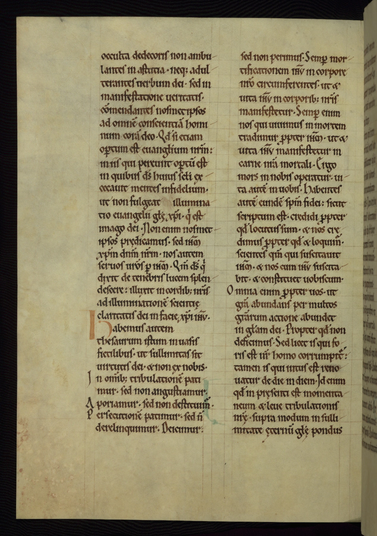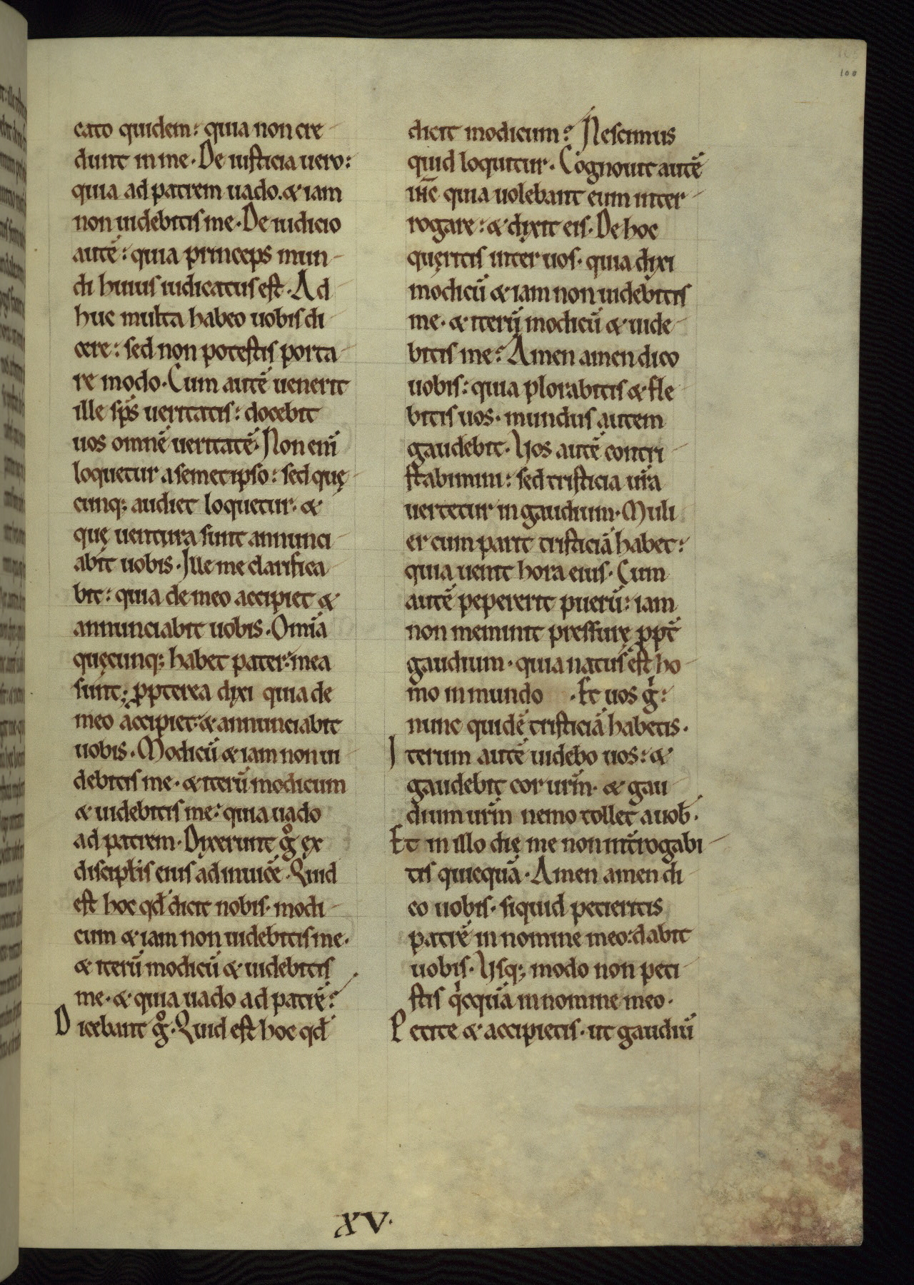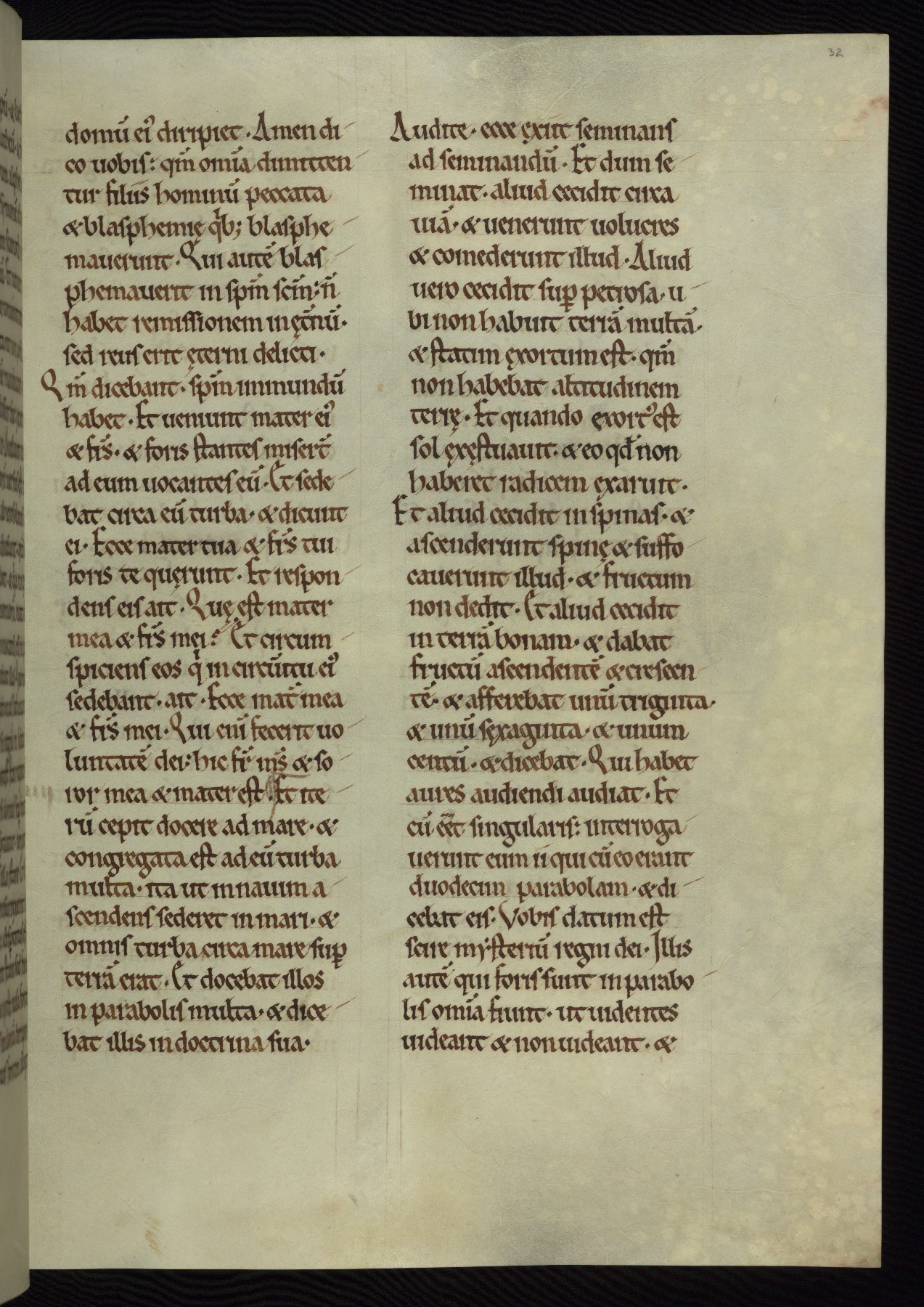 This large-format copy of the New Testament was almost certainly created at Rochester Cathedral Priory, England, in the first half of the twelfth century. It was part of a five-volume Bible, only one other volume of which, London, British Library Ms. Royal I.C.VII, has survived. The decorated initials in these manuscripts compare closely with those in other books securely attributed to Rochester. Textually these books are closely related to the Gundulph Bible (San Marino, Huntington Library Ms. HM 62), known to have been produced at Rochester in the second half of the eleventh century. Although neither the Walters' nor the British Library's volume includes an inscription associating this Bible with Rochester, the two medieval catalogs of the Rochester Cathedral library, produced around 1130 and in 1202, contain references to manuscripts that correspond well with them. The book’s large size indicates it that was designed to be read aloud, either during services or at meals in the refectory. Large, fanciful initials filled with succulent foliage, fruit, dragons, animals, and human faces begin each section of the text. Executed in a vibrant palette of red, blue, green, ochre (in place of gold), and yellow, the intricate, dynamic designs capture the essence of Romanesque manuscript illumination. Royal I.C.VII also includes four historiated initials (for the books of Joshua, I Samuel, 2 Samuel, and 2 Kings). Although the Bible was made at Rochester, the pre-Gothic script of W.18 in particular is extremely close to that practiced at nearby Canterbury at the time.