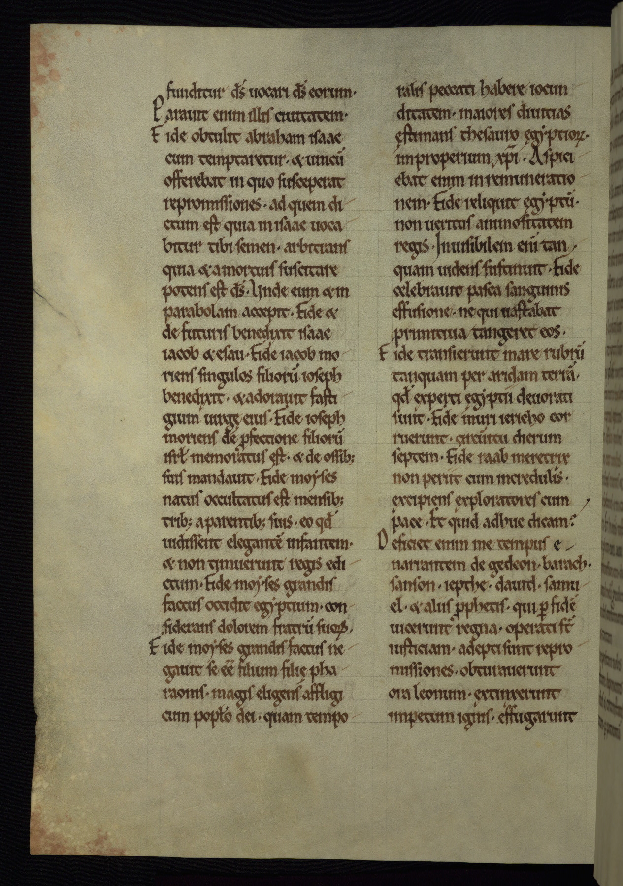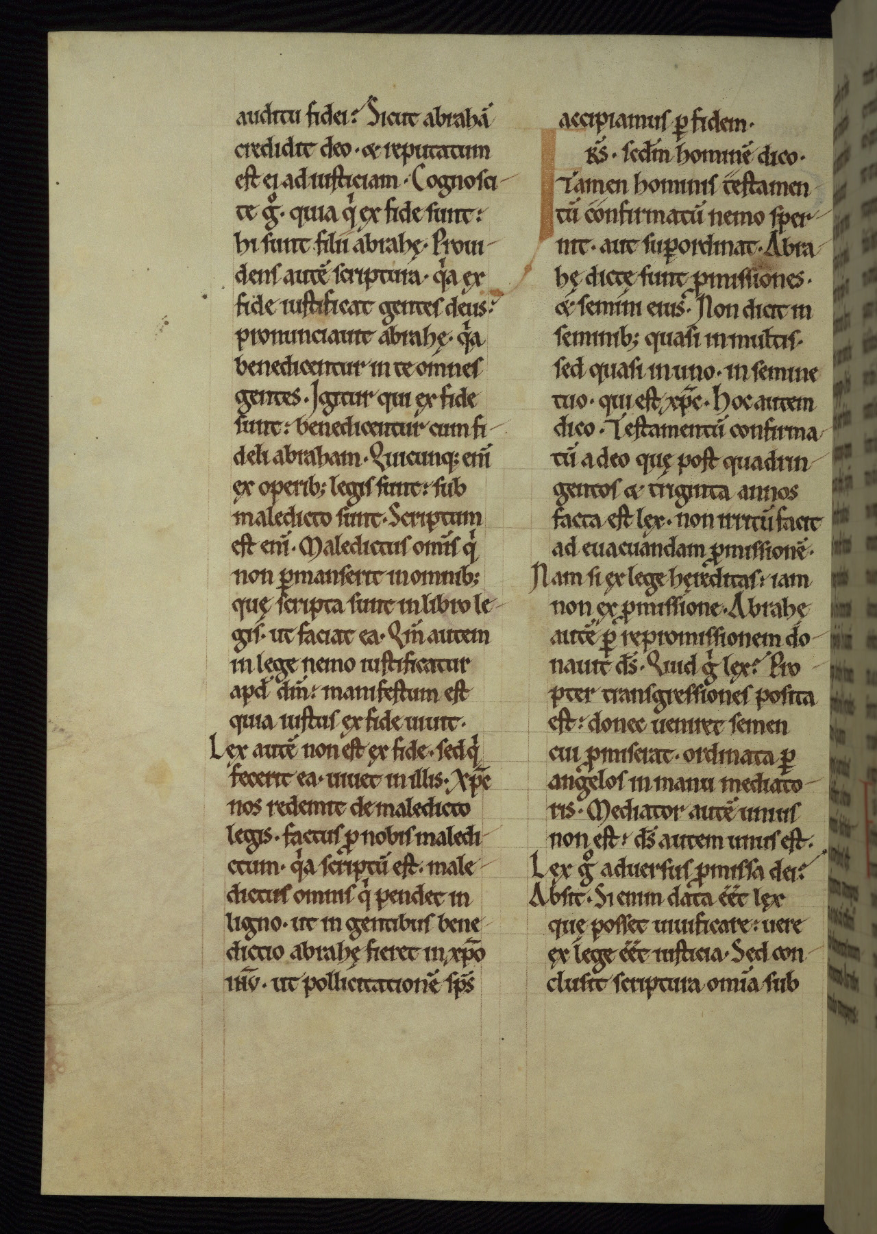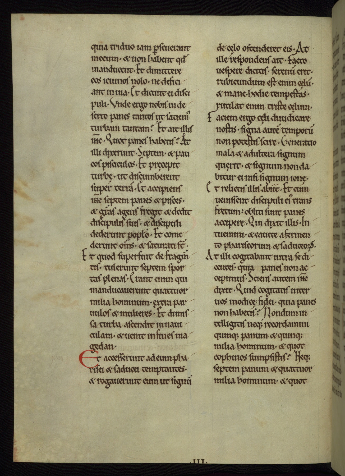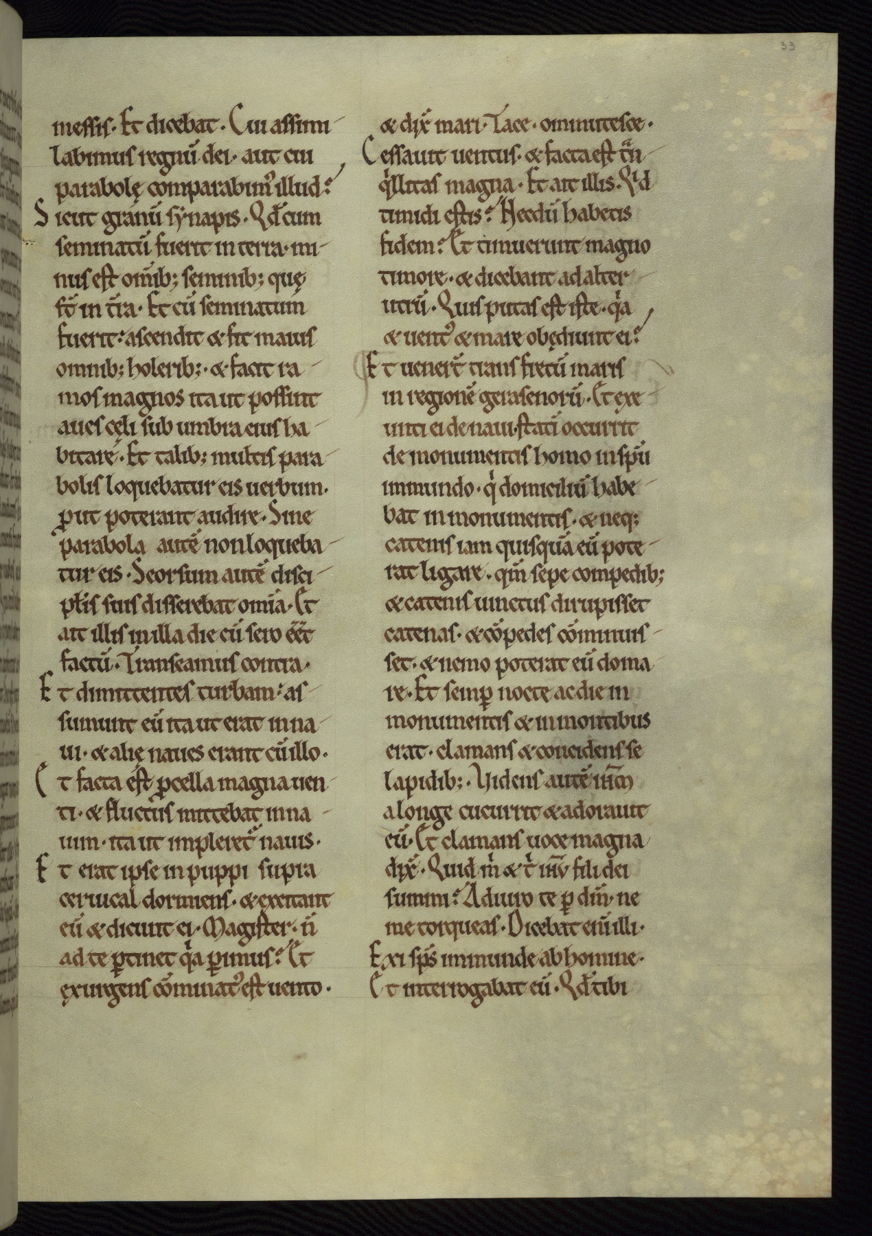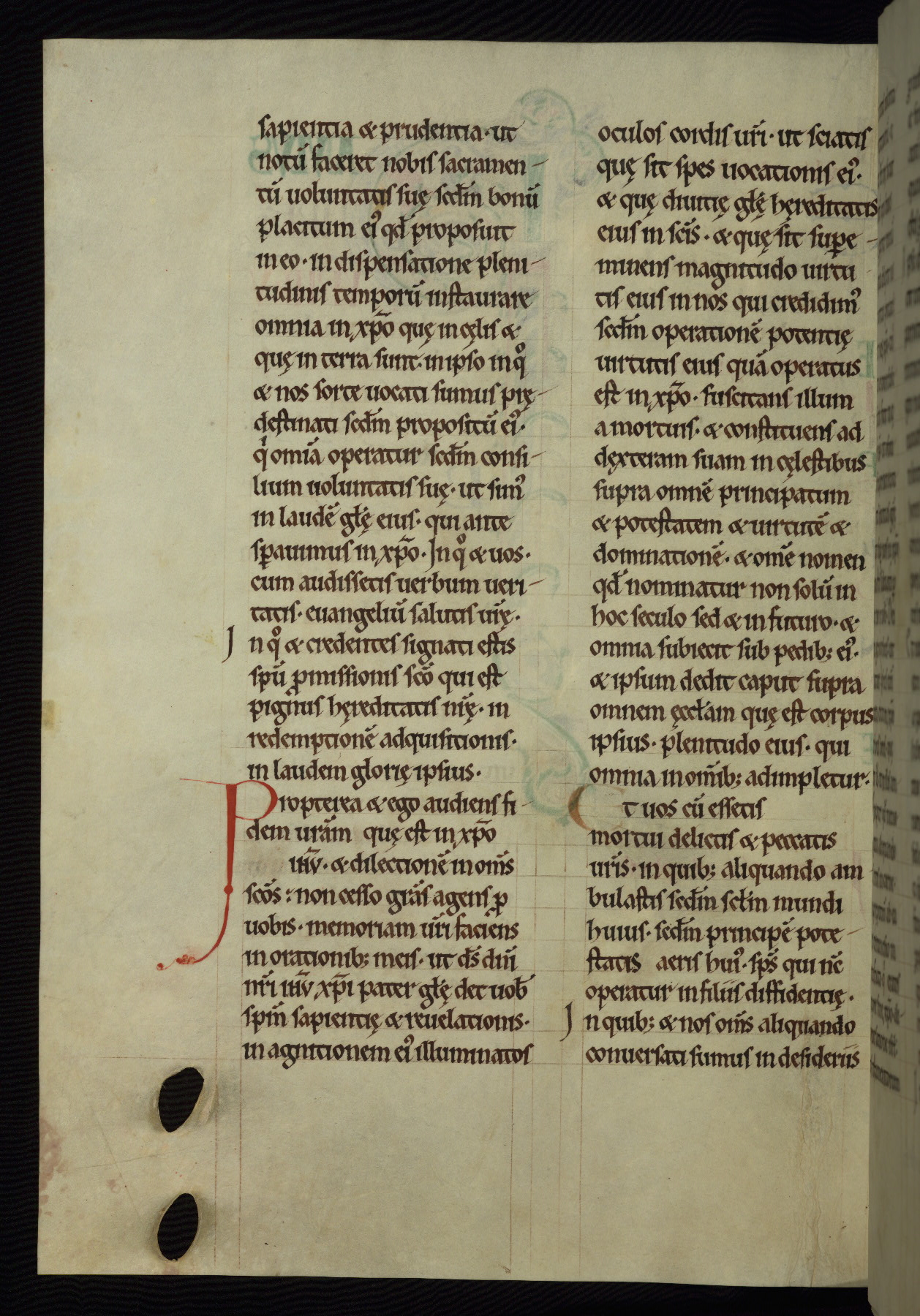 This large-format copy of the New Testament was almost certainly created at Rochester Cathedral Priory, England, in the first half of the twelfth century. It was part of a five-volume Bible, only one other volume of which, London, British Library Ms. Royal I.C.VII, has survived. The decorated initials in these manuscripts compare closely with those in other books securely attributed to Rochester. Textually these books are closely related to the Gundulph Bible (San Marino, Huntington Library Ms. HM 62), known to have been produced at Rochester in the second half of the eleventh century. Although neither the Walters' nor the British Library's volume includes an inscription associating this Bible with Rochester, the two medieval catalogs of the Rochester Cathedral library, produced around 1130 and in 1202, contain references to manuscripts that correspond well with them. The book’s large size indicates it that was designed to be read aloud, either during services or at meals in the refectory. Large, fanciful initials filled with succulent foliage, fruit, dragons, animals, and human faces begin each section of the text. Executed in a vibrant palette of red, blue, green, ochre (in place of gold), and yellow, the intricate, dynamic designs capture the essence of Romanesque manuscript illumination. Royal I.C.VII also includes four historiated initials (for the books of Joshua, I Samuel, 2 Samuel, and 2 Kings). Although the Bible was made at Rochester, the pre-Gothic script of W.18 in particular is extremely close to that practiced at nearby Canterbury at the time.
