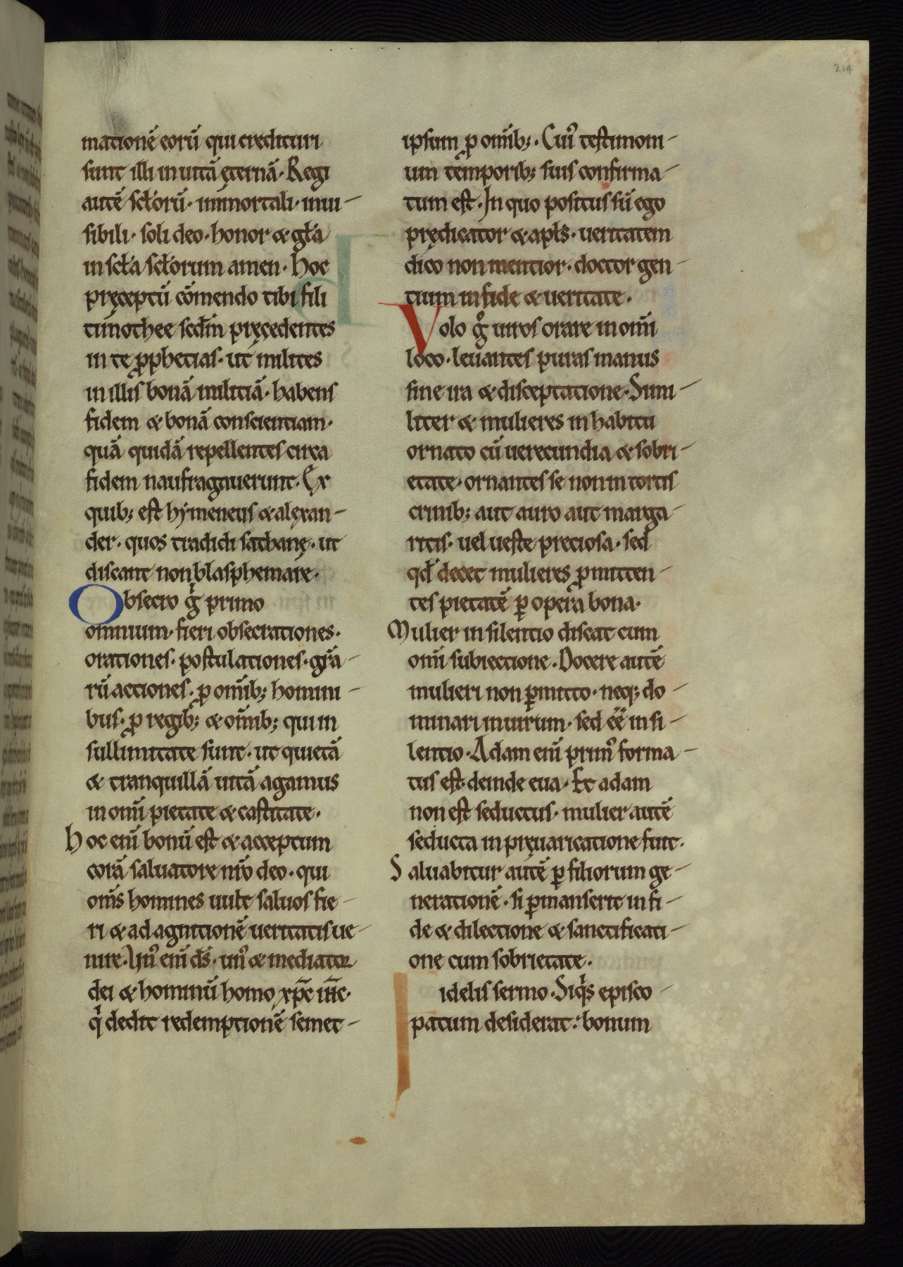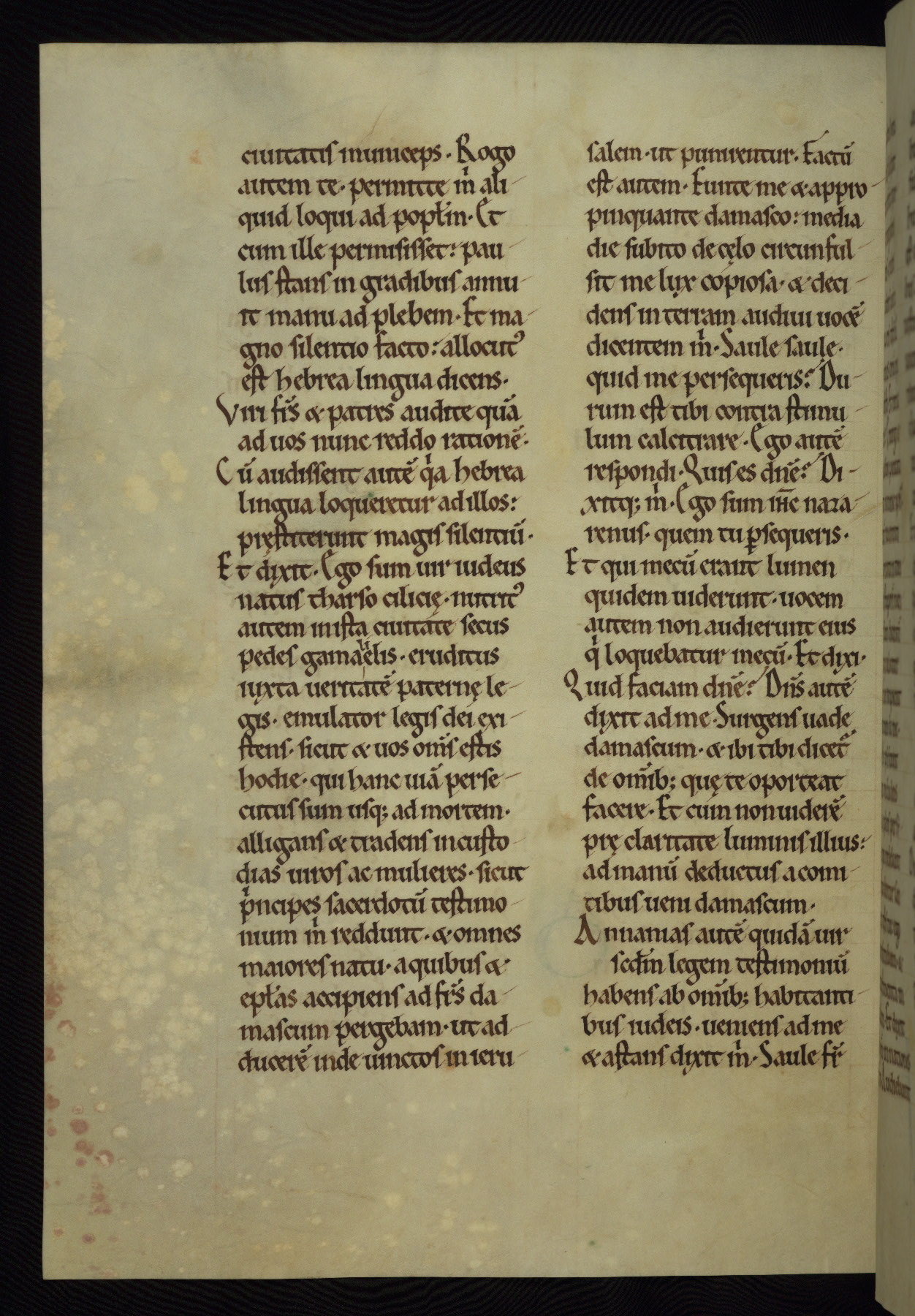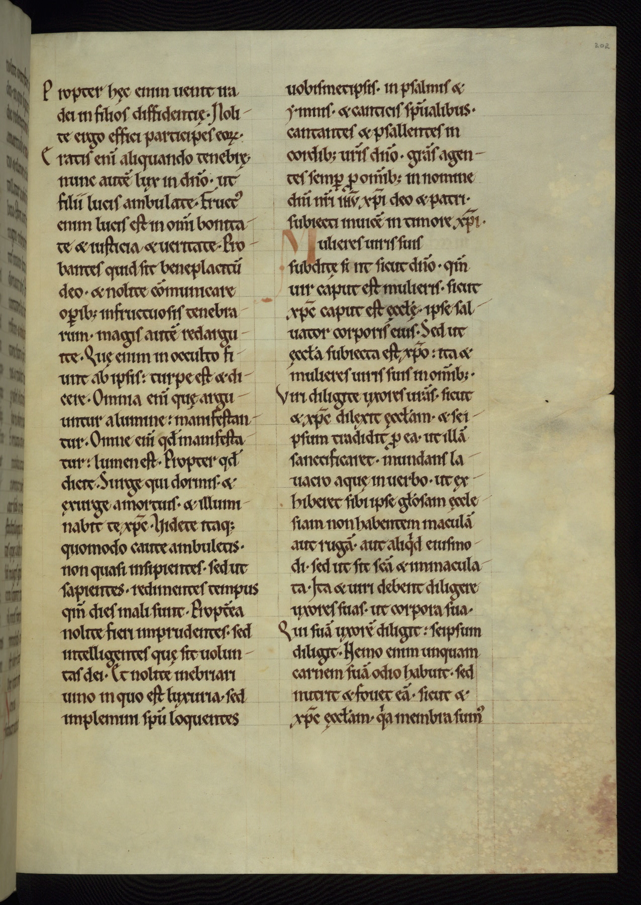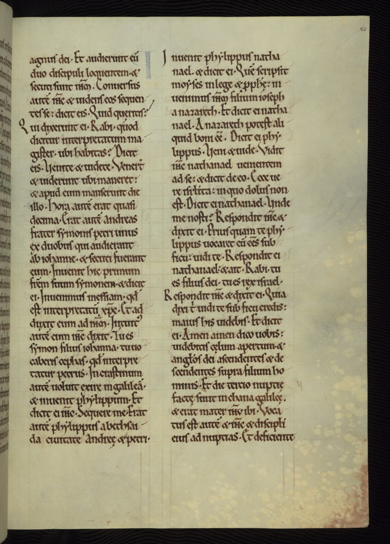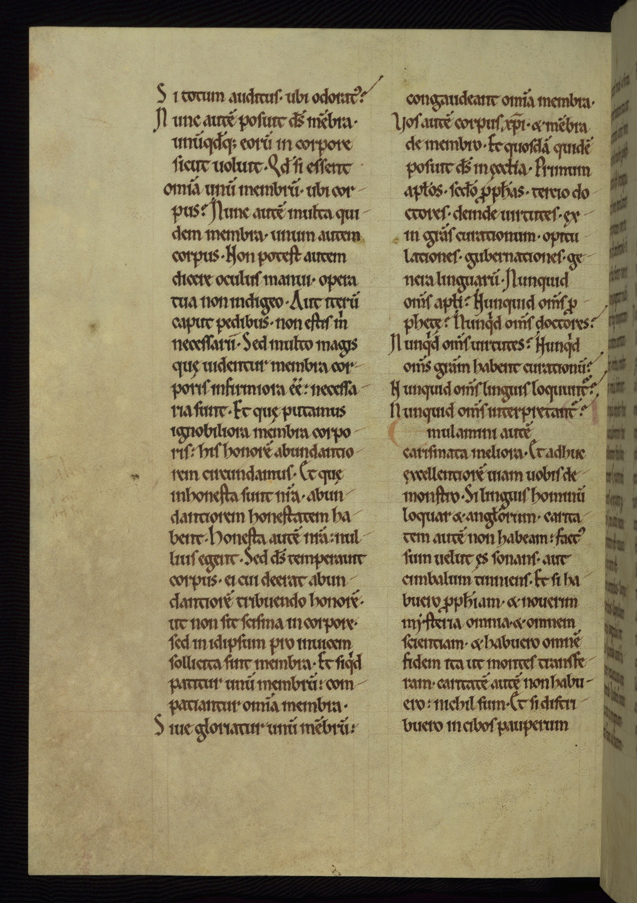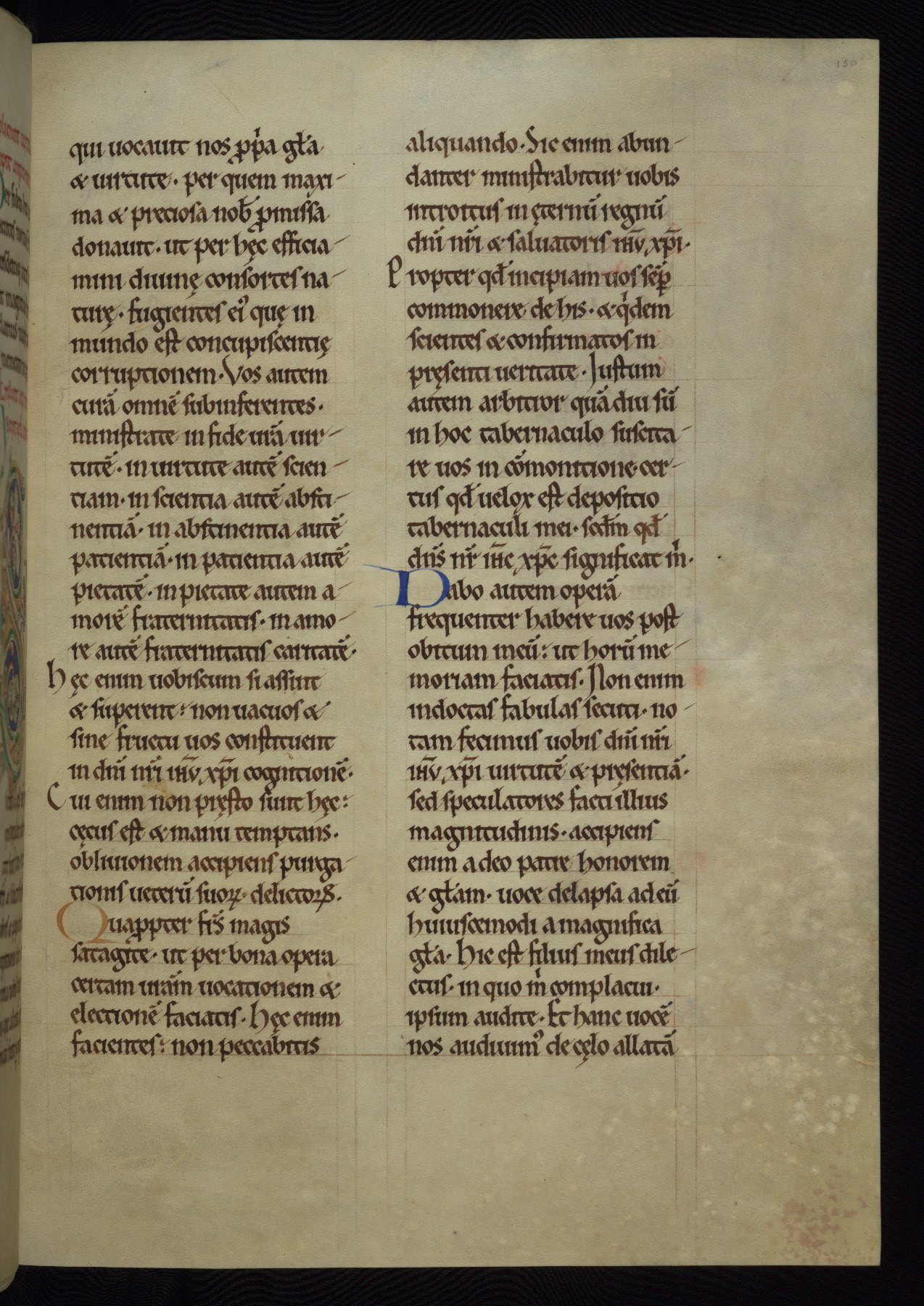 This large-format copy of the New Testament was almost certainly created at Rochester Cathedral Priory, England, in the first half of the twelfth century. It was part of a five-volume Bible, only one other volume of which, London, British Library Ms. Royal I.C.VII, has survived. The decorated initials in these manuscripts compare closely with those in other books securely attributed to Rochester. Textually these books are closely related to the Gundulph Bible (San Marino, Huntington Library Ms. HM 62), known to have been produced at Rochester in the second half of the eleventh century. Although neither the Walters' nor the British Library's volume includes an inscription associating this Bible with Rochester, the two medieval catalogs of the Rochester Cathedral library, produced around 1130 and in 1202, contain references to manuscripts that correspond well with them. The book’s large size indicates it that was designed to be read aloud, either during services or at meals in the refectory. Large, fanciful initials filled with succulent foliage, fruit, dragons, animals, and human faces begin each section of the text. Executed in a vibrant palette of red, blue, green, ochre (in place of gold), and yellow, the intricate, dynamic designs capture the essence of Romanesque manuscript illumination. Royal I.C.VII also includes four historiated initials (for the books of Joshua, I Samuel, 2 Samuel, and 2 Kings). Although the Bible was made at Rochester, the pre-Gothic script of W.18 in particular is extremely close to that practiced at nearby Canterbury at the time.