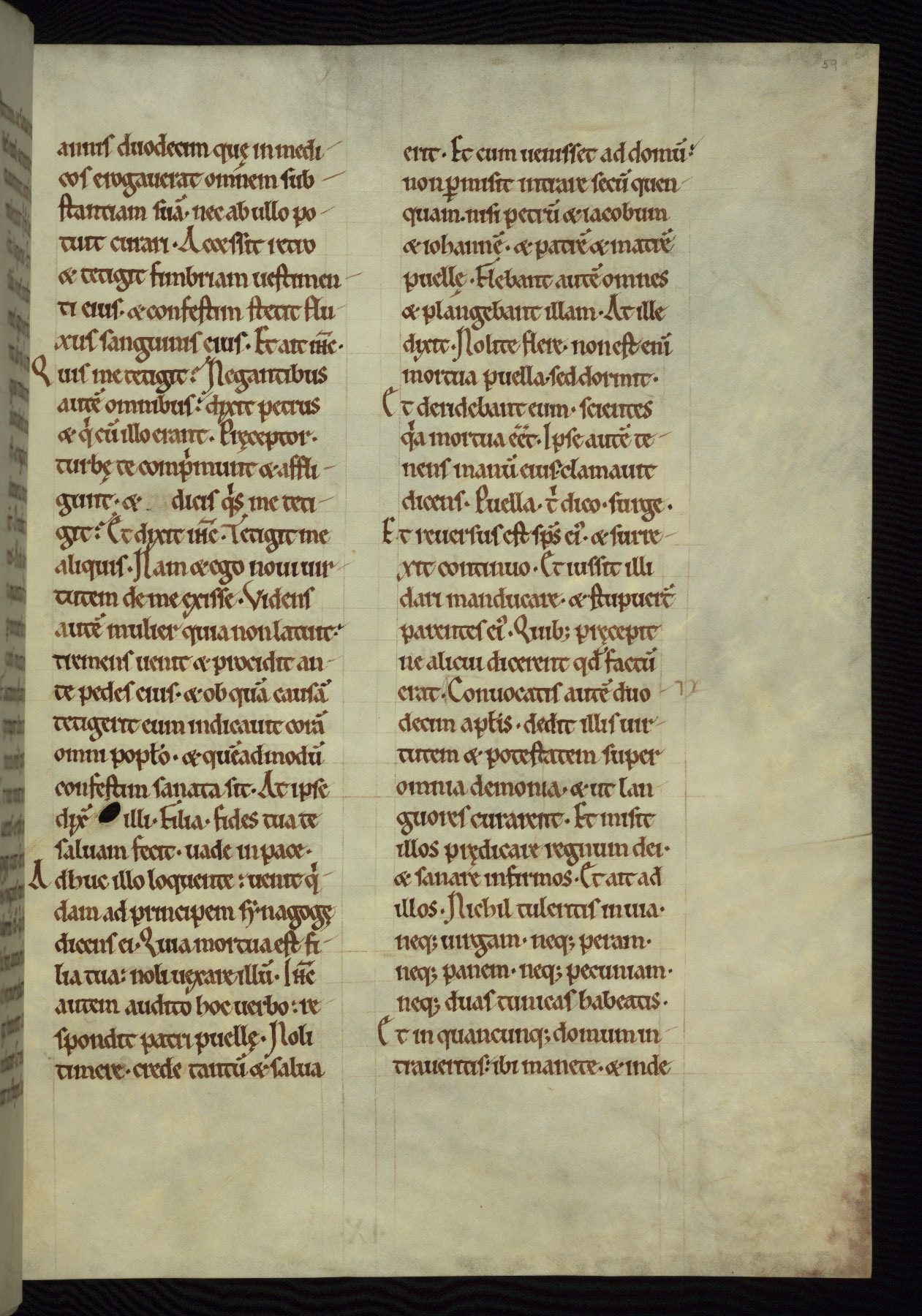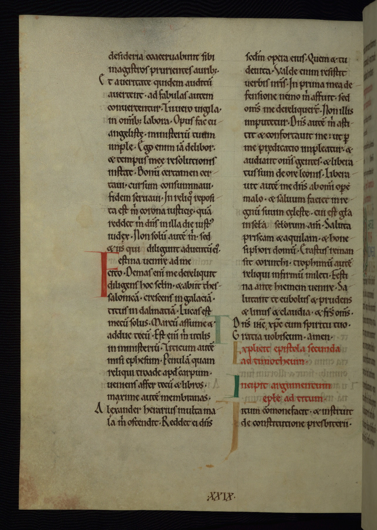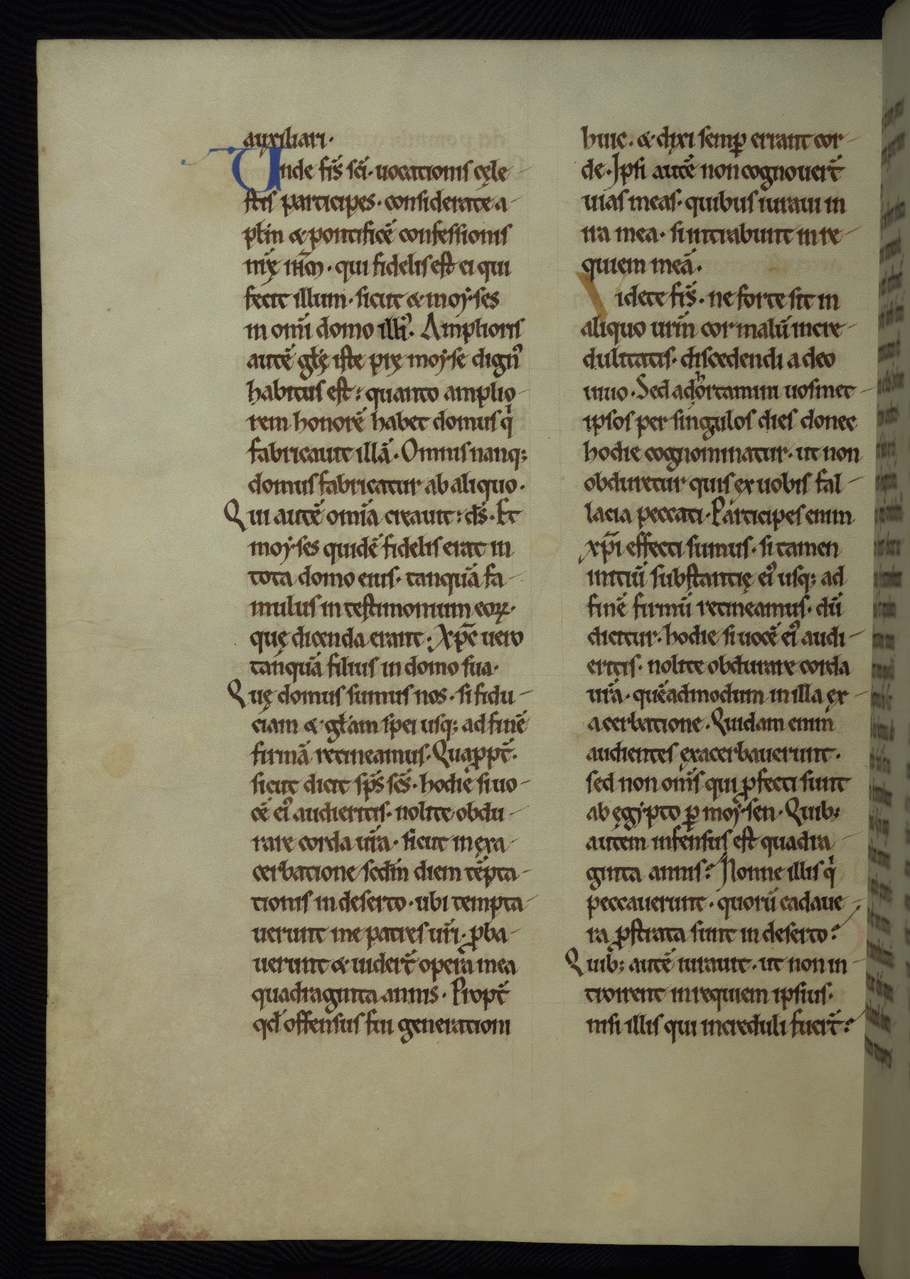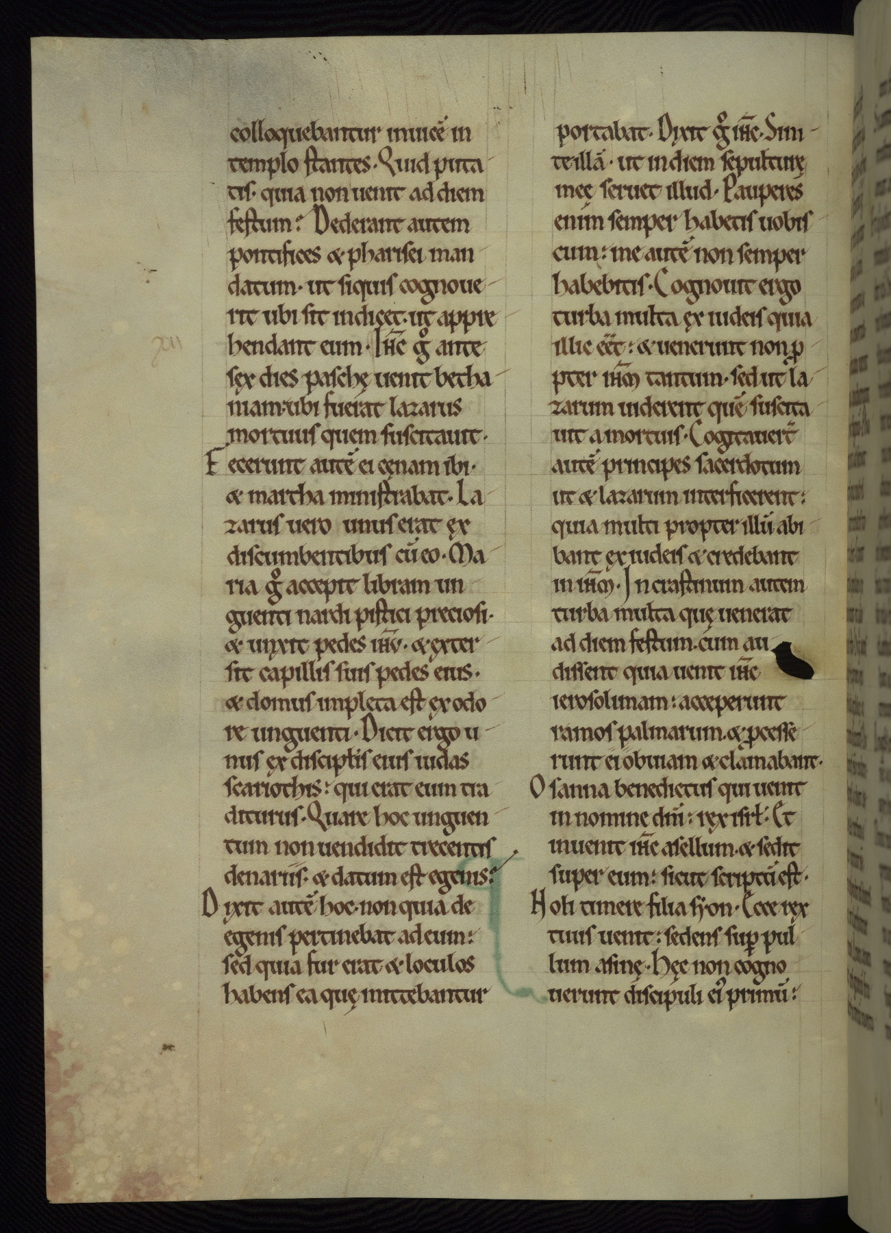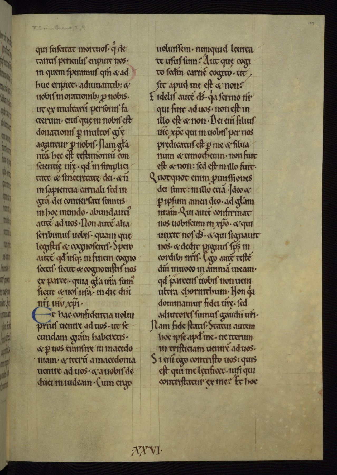 This large-format copy of the New Testament was almost certainly created at Rochester Cathedral Priory, England, in the first half of the twelfth century. It was part of a five-volume Bible, only one other volume of which, London, British Library Ms. Royal I.C.VII, has survived. The decorated initials in these manuscripts compare closely with those in other books securely attributed to Rochester. Textually these books are closely related to the Gundulph Bible (San Marino, Huntington Library Ms. HM 62), known to have been produced at Rochester in the second half of the eleventh century. Although neither the Walters' nor the British Library's volume includes an inscription associating this Bible with Rochester, the two medieval catalogs of the Rochester Cathedral library, produced around 1130 and in 1202, contain references to manuscripts that correspond well with them. The book’s large size indicates it that was designed to be read aloud, either during services or at meals in the refectory. Large, fanciful initials filled with succulent foliage, fruit, dragons, animals, and human faces begin each section of the text. Executed in a vibrant palette of red, blue, green, ochre (in place of gold), and yellow, the intricate, dynamic designs capture the essence of Romanesque manuscript illumination. Royal I.C.VII also includes four historiated initials (for the books of Joshua, I Samuel, 2 Samuel, and 2 Kings). Although the Bible was made at Rochester, the pre-Gothic script of W.18 in particular is extremely close to that practiced at nearby Canterbury at the time.