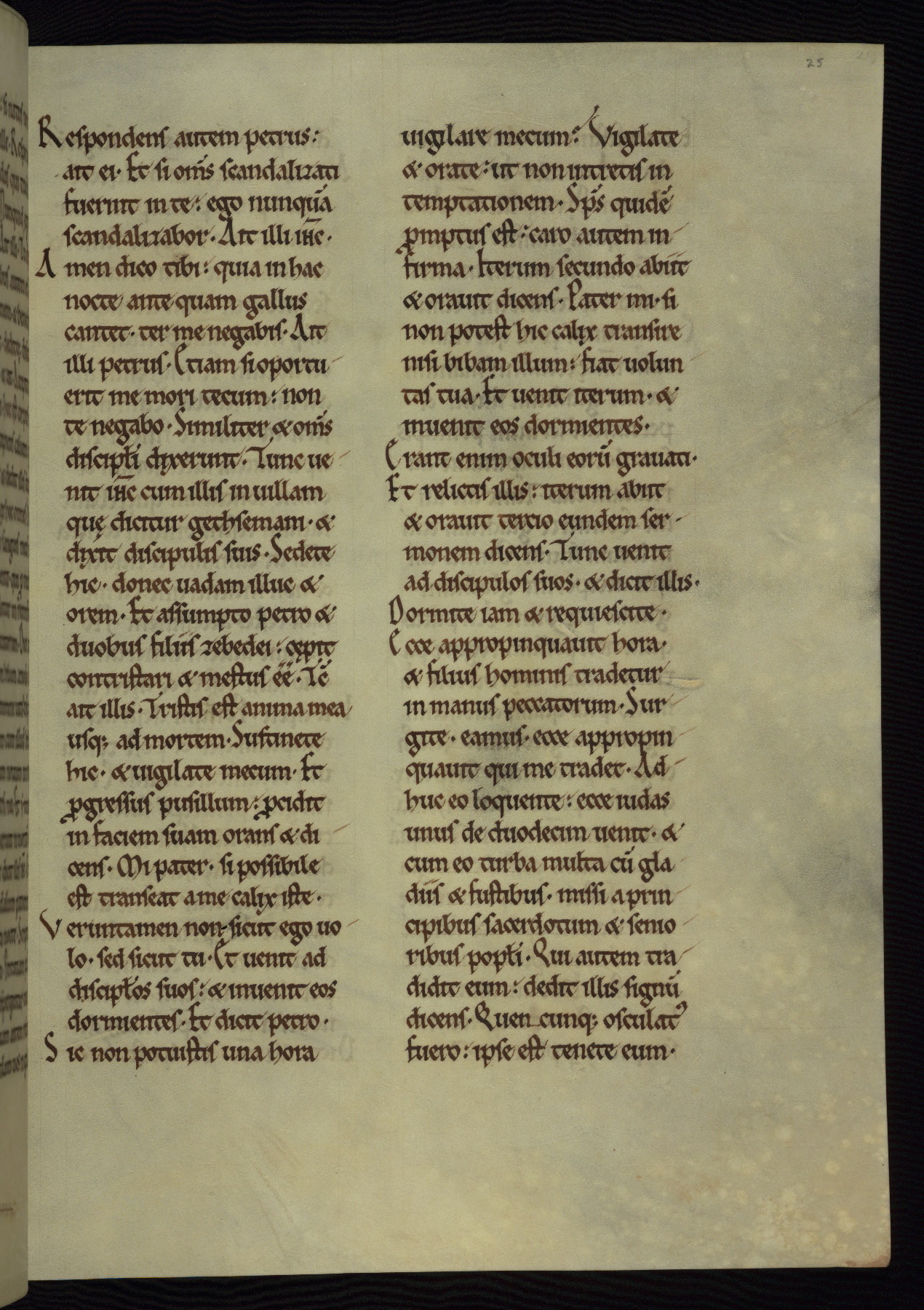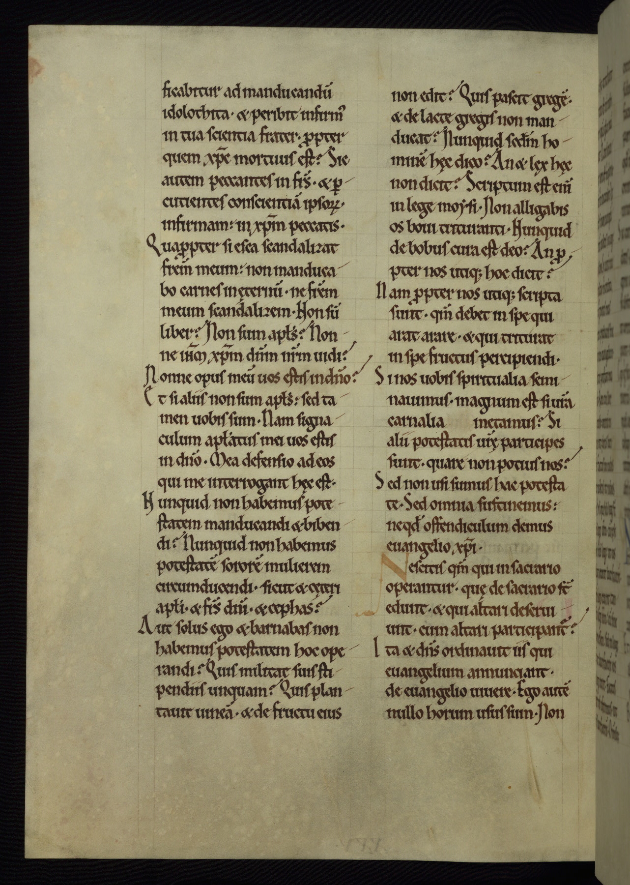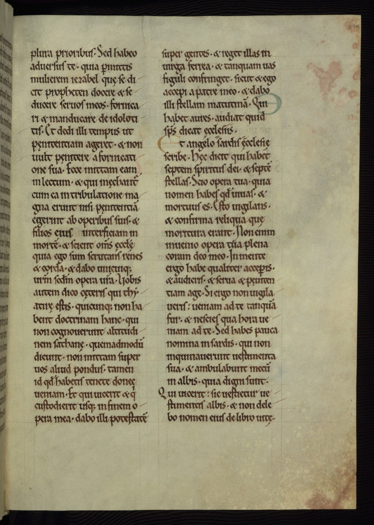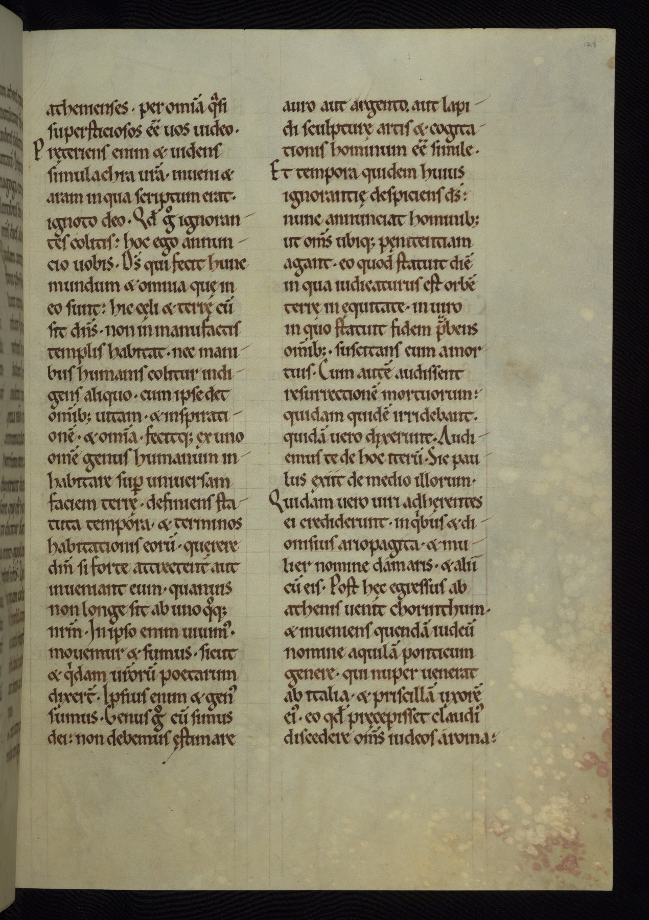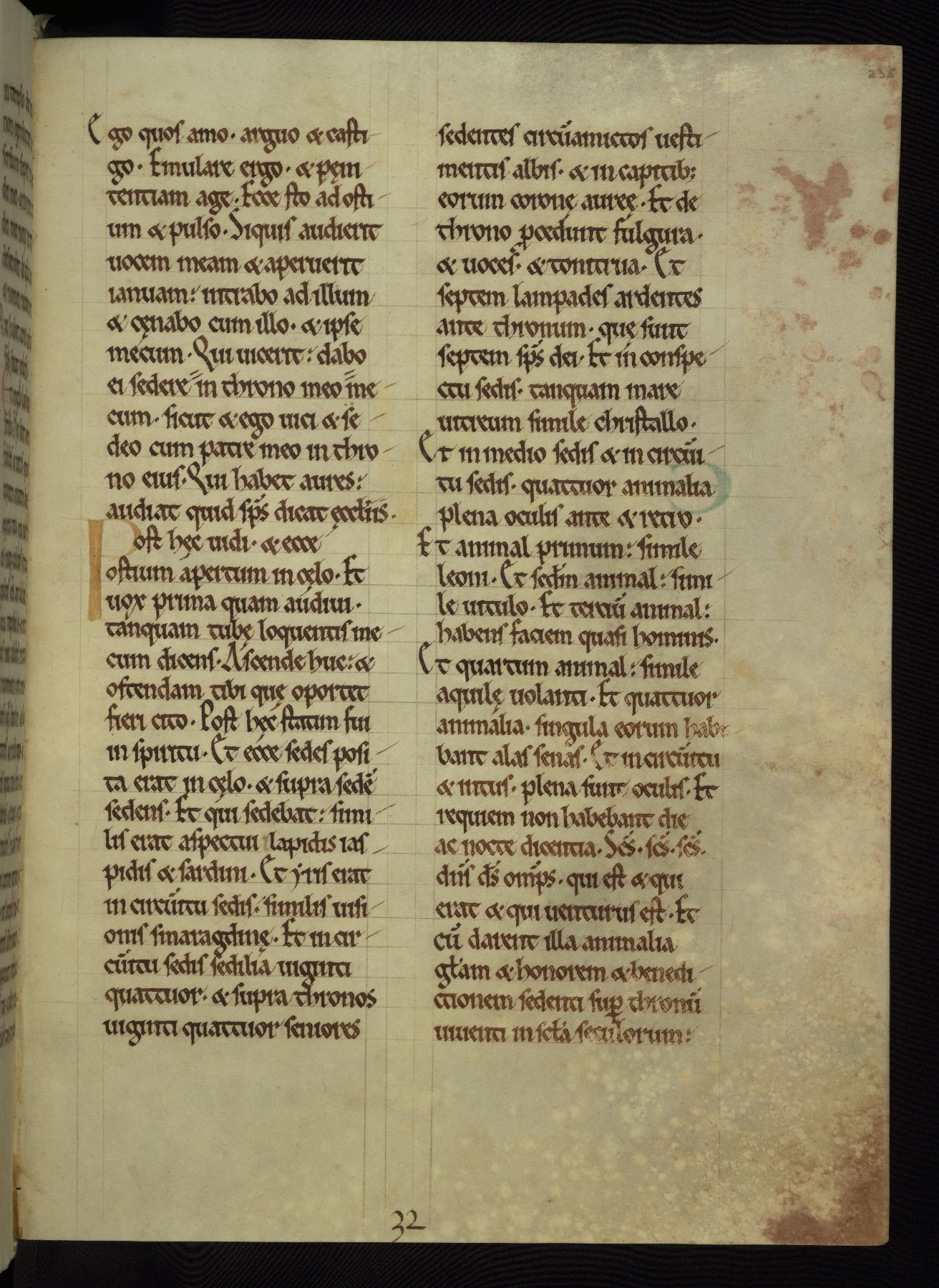 This large-format copy of the New Testament was almost certainly created at Rochester Cathedral Priory, England, in the first half of the twelfth century. It was part of a five-volume Bible, only one other volume of which, London, British Library Ms. Royal I.C.VII, has survived. The decorated initials in these manuscripts compare closely with those in other books securely attributed to Rochester. Textually these books are closely related to the Gundulph Bible (San Marino, Huntington Library Ms. HM 62), known to have been produced at Rochester in the second half of the eleventh century. Although neither the Walters' nor the British Library's volume includes an inscription associating this Bible with Rochester, the two medieval catalogs of the Rochester Cathedral library, produced around 1130 and in 1202, contain references to manuscripts that correspond well with them. The book’s large size indicates it that was designed to be read aloud, either during services or at meals in the refectory. Large, fanciful initials filled with succulent foliage, fruit, dragons, animals, and human faces begin each section of the text. Executed in a vibrant palette of red, blue, green, ochre (in place of gold), and yellow, the intricate, dynamic designs capture the essence of Romanesque manuscript illumination. Royal I.C.VII also includes four historiated initials (for the books of Joshua, I Samuel, 2 Samuel, and 2 Kings). Although the Bible was made at Rochester, the pre-Gothic script of W.18 in particular is extremely close to that practiced at nearby Canterbury at the time.