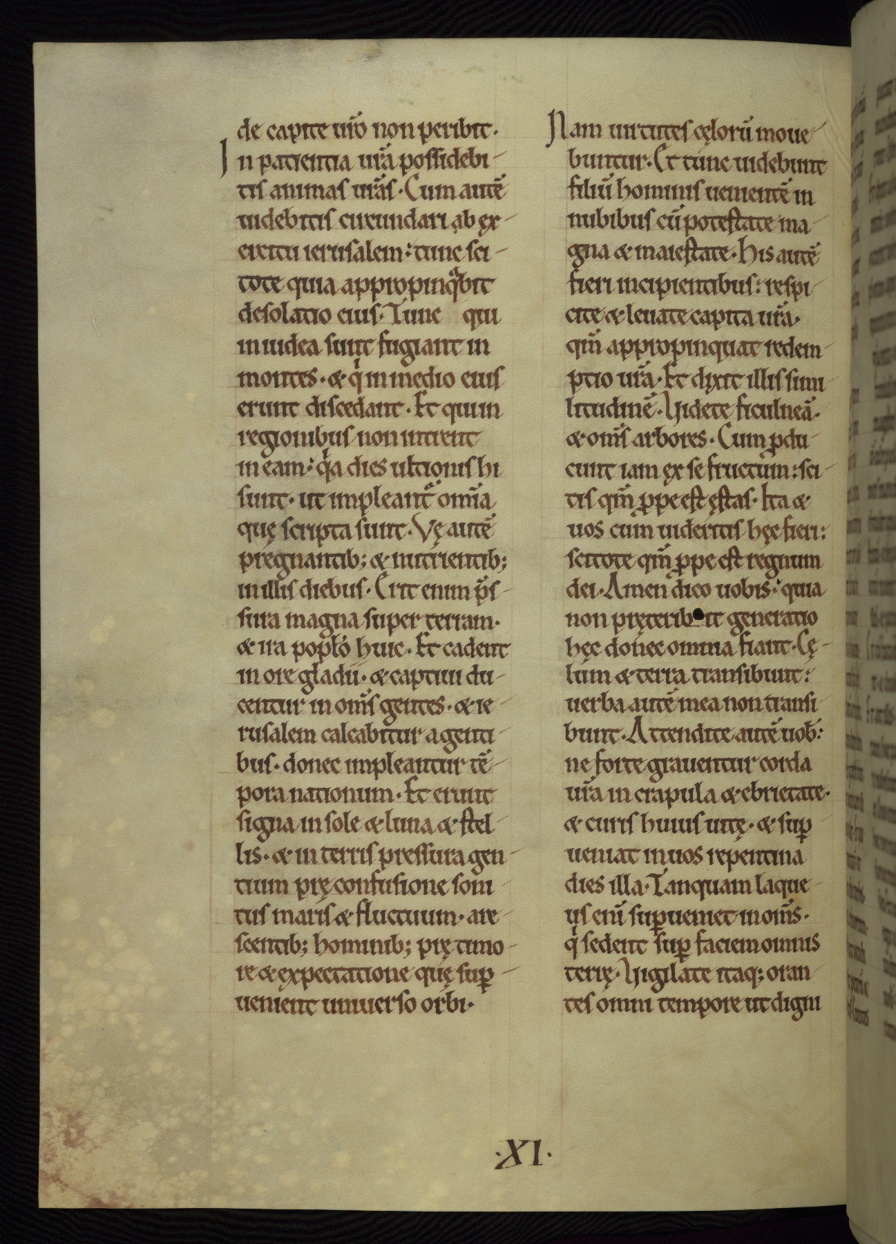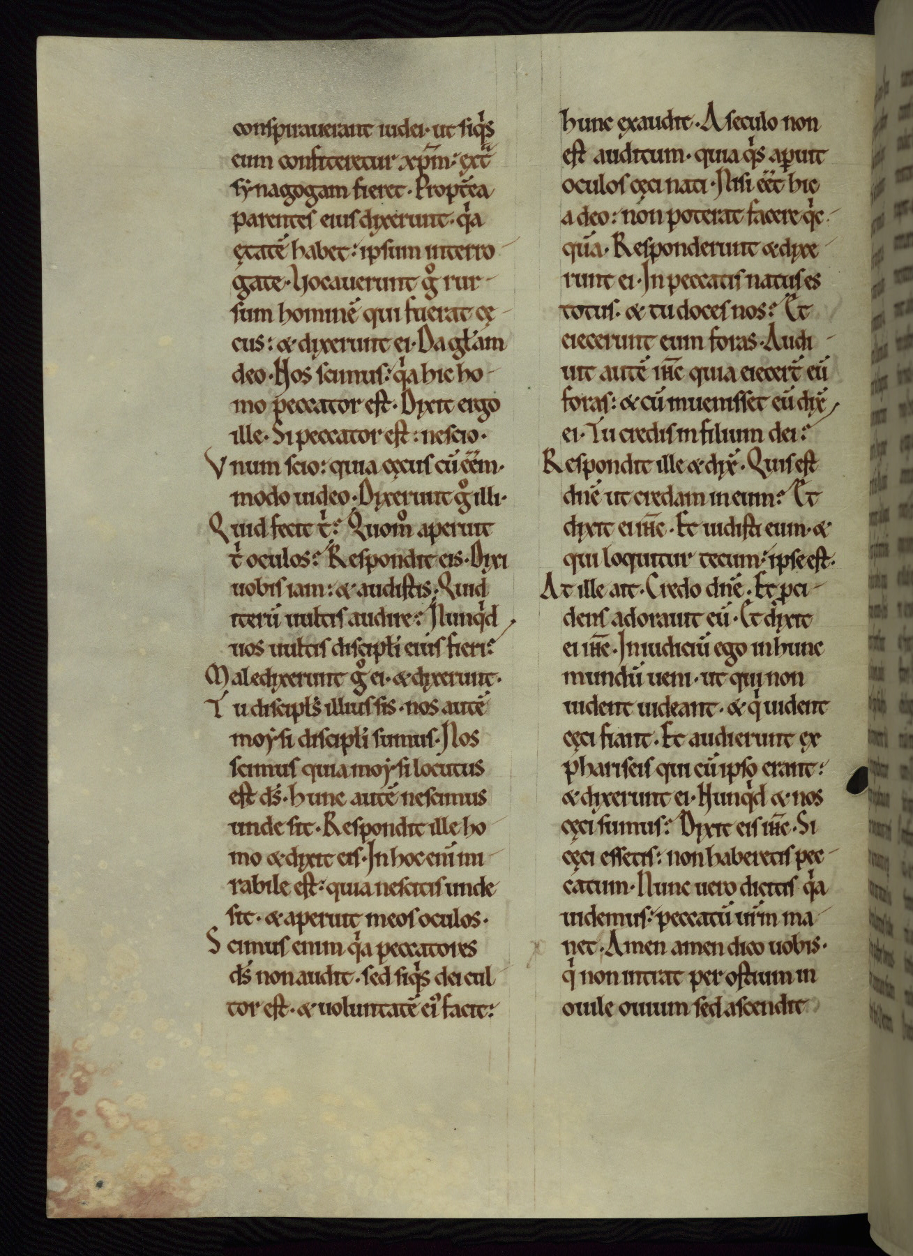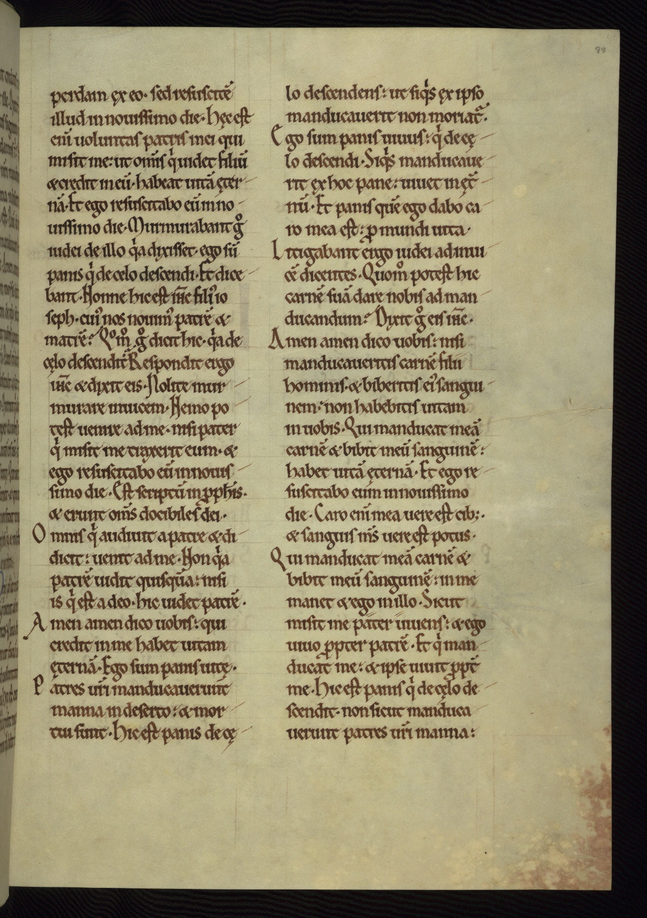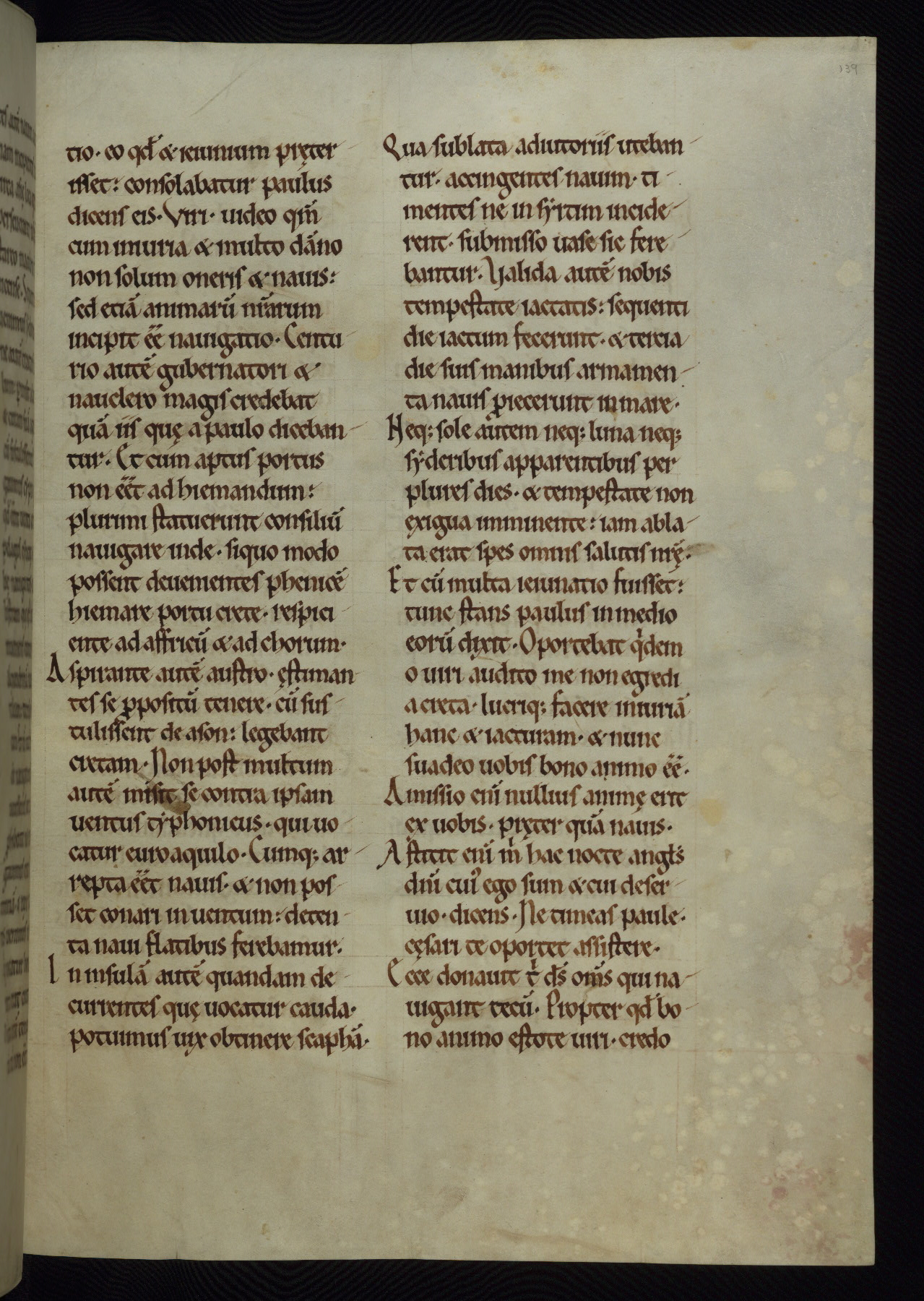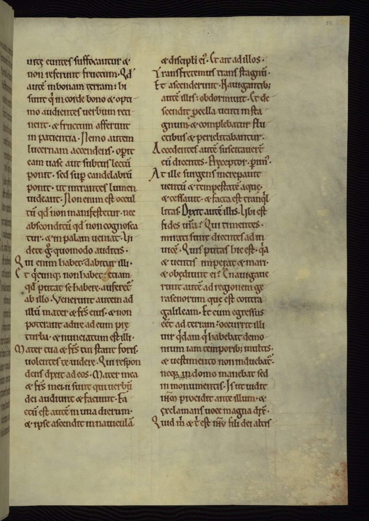 This large-format copy of the New Testament was almost certainly created at Rochester Cathedral Priory, England, in the first half of the twelfth century. It was part of a five-volume Bible, only one other volume of which, London, British Library Ms. Royal I.C.VII, has survived. The decorated initials in these manuscripts compare closely with those in other books securely attributed to Rochester. Textually these books are closely related to the Gundulph Bible (San Marino, Huntington Library Ms. HM 62), known to have been produced at Rochester in the second half of the eleventh century. Although neither the Walters' nor the British Library's volume includes an inscription associating this Bible with Rochester, the two medieval catalogs of the Rochester Cathedral library, produced around 1130 and in 1202, contain references to manuscripts that correspond well with them. The book’s large size indicates it that was designed to be read aloud, either during services or at meals in the refectory. Large, fanciful initials filled with succulent foliage, fruit, dragons, animals, and human faces begin each section of the text. Executed in a vibrant palette of red, blue, green, ochre (in place of gold), and yellow, the intricate, dynamic designs capture the essence of Romanesque manuscript illumination. Royal I.C.VII also includes four historiated initials (for the books of Joshua, I Samuel, 2 Samuel, and 2 Kings). Although the Bible was made at Rochester, the pre-Gothic script of W.18 in particular is extremely close to that practiced at nearby Canterbury at the time.
