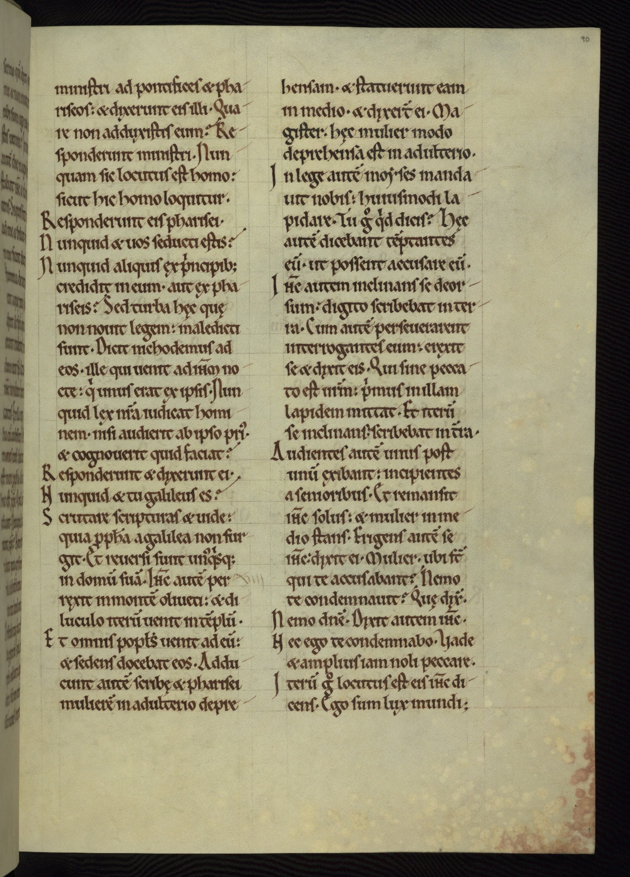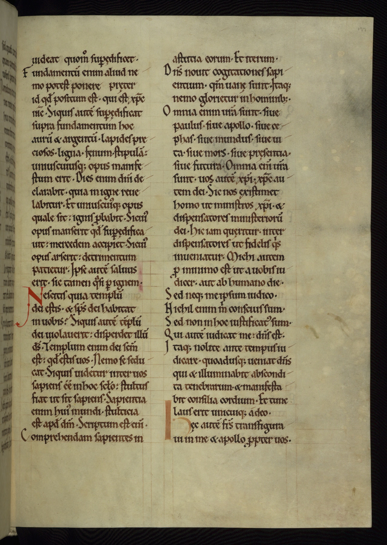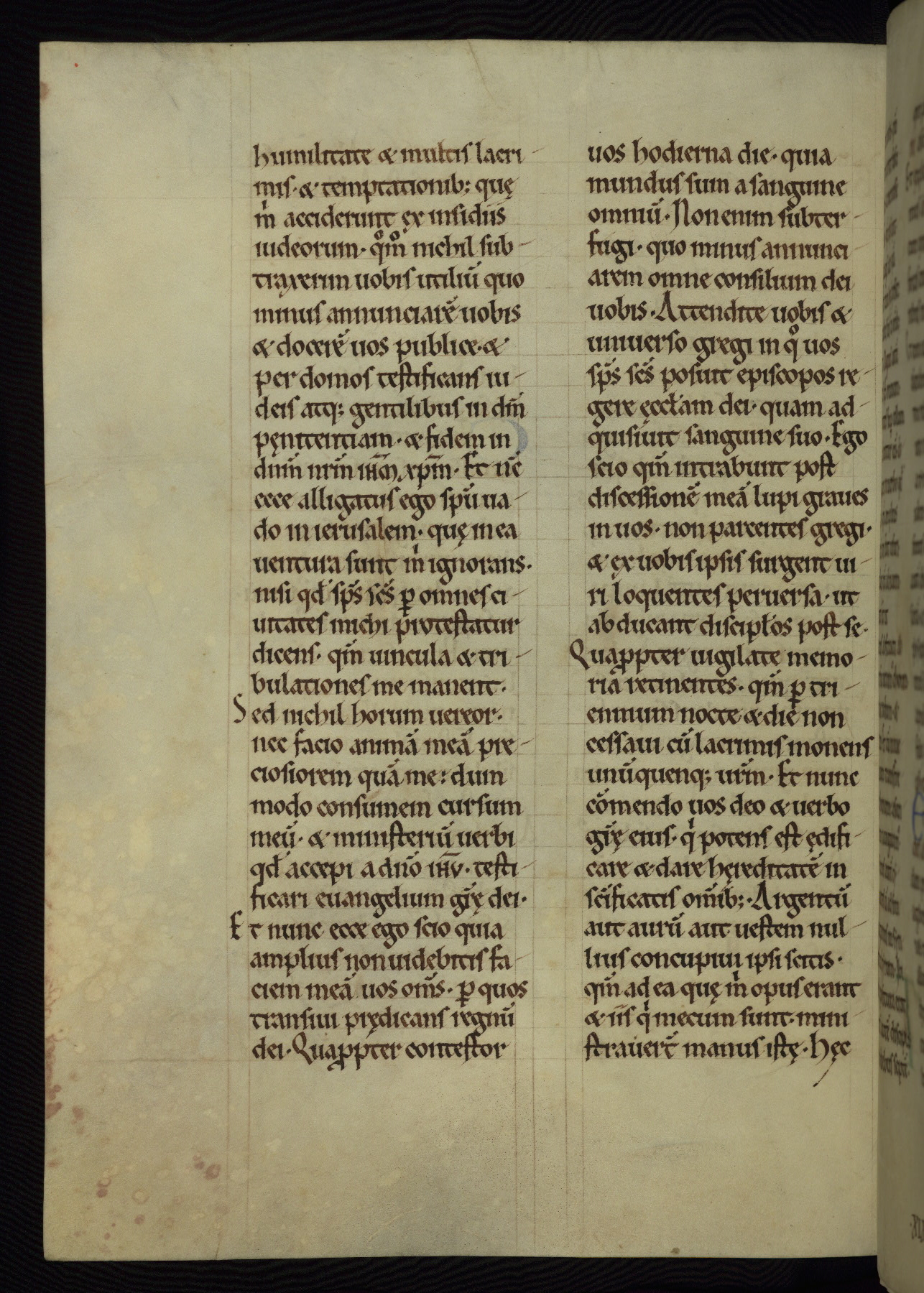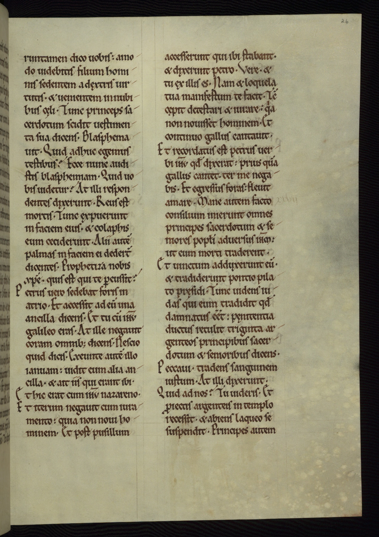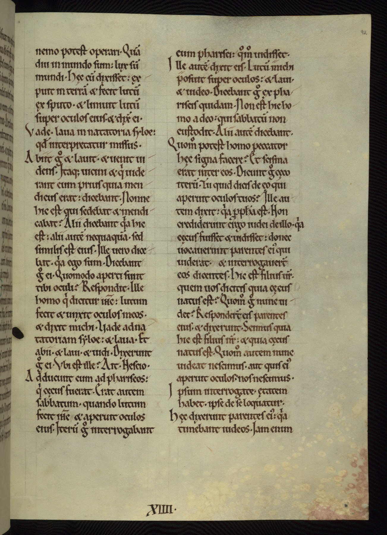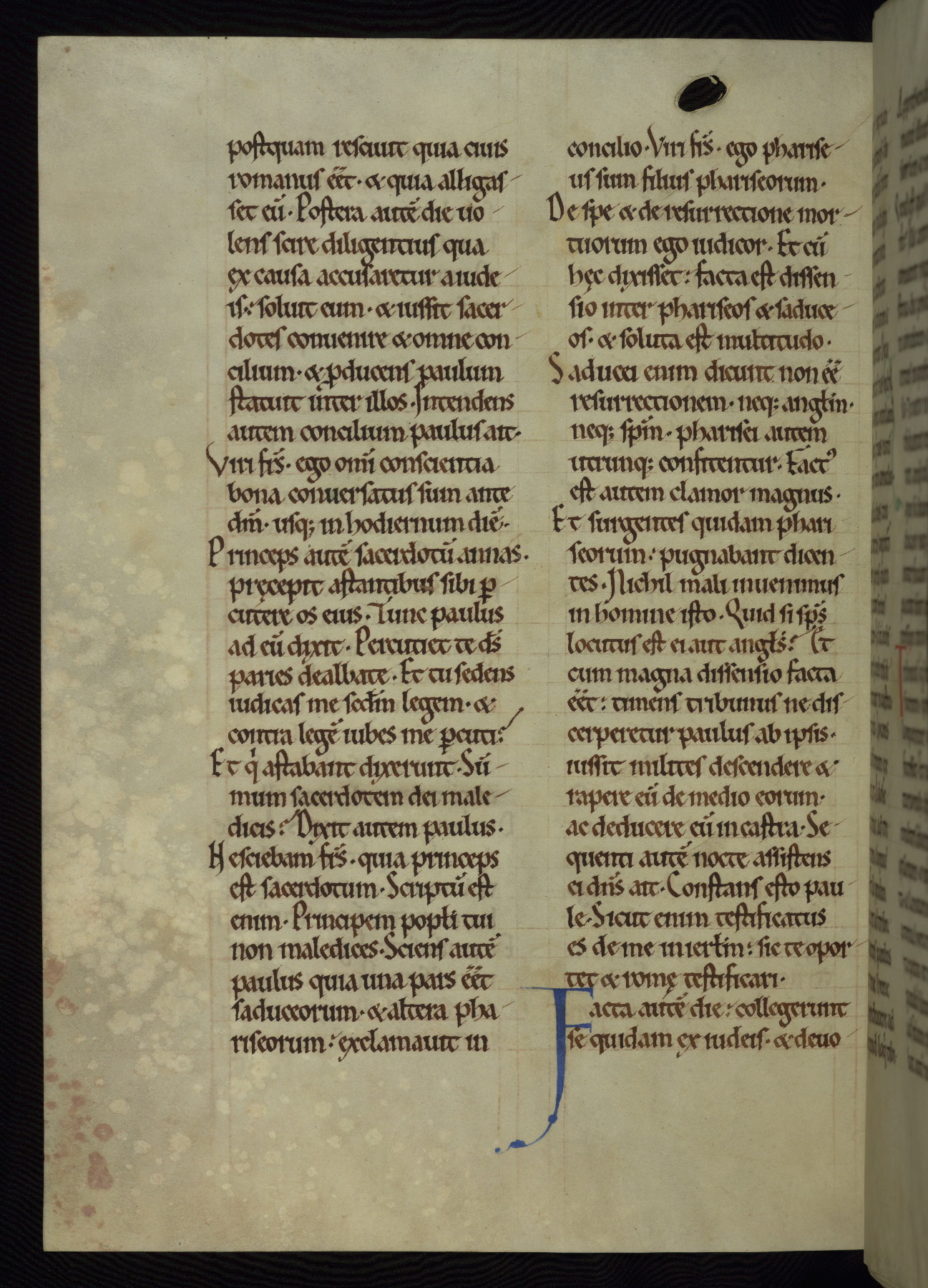 This large-format copy of the New Testament was almost certainly created at Rochester Cathedral Priory, England, in the first half of the twelfth century. It was part of a five-volume Bible, only one other volume of which, London, British Library Ms. Royal I.C.VII, has survived. The decorated initials in these manuscripts compare closely with those in other books securely attributed to Rochester. Textually these books are closely related to the Gundulph Bible (San Marino, Huntington Library Ms. HM 62), known to have been produced at Rochester in the second half of the eleventh century. Although neither the Walters' nor the British Library's volume includes an inscription associating this Bible with Rochester, the two medieval catalogs of the Rochester Cathedral library, produced around 1130 and in 1202, contain references to manuscripts that correspond well with them. The book’s large size indicates it that was designed to be read aloud, either during services or at meals in the refectory. Large, fanciful initials filled with succulent foliage, fruit, dragons, animals, and human faces begin each section of the text. Executed in a vibrant palette of red, blue, green, ochre (in place of gold), and yellow, the intricate, dynamic designs capture the essence of Romanesque manuscript illumination. Royal I.C.VII also includes four historiated initials (for the books of Joshua, I Samuel, 2 Samuel, and 2 Kings). Although the Bible was made at Rochester, the pre-Gothic script of W.18 in particular is extremely close to that practiced at nearby Canterbury at the time.