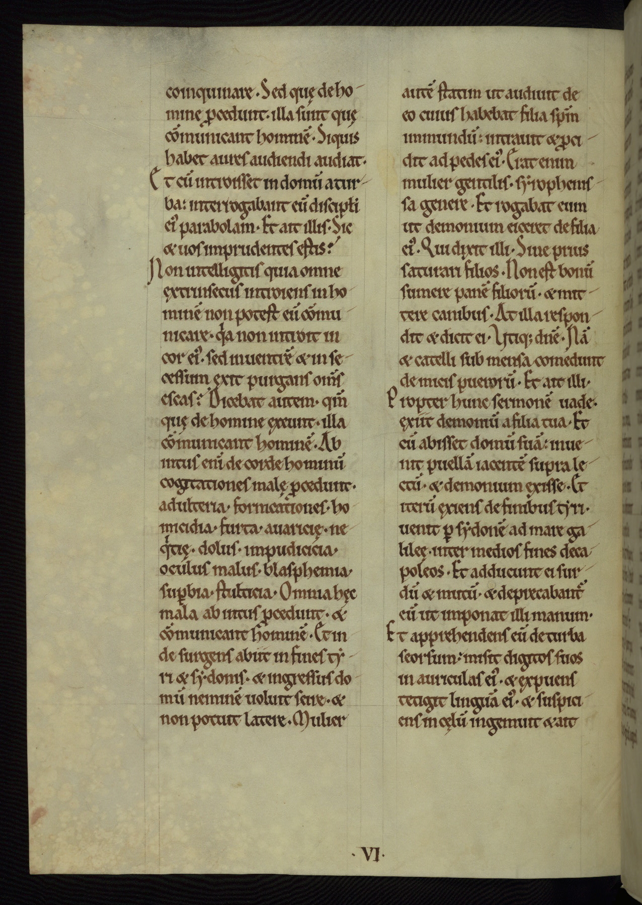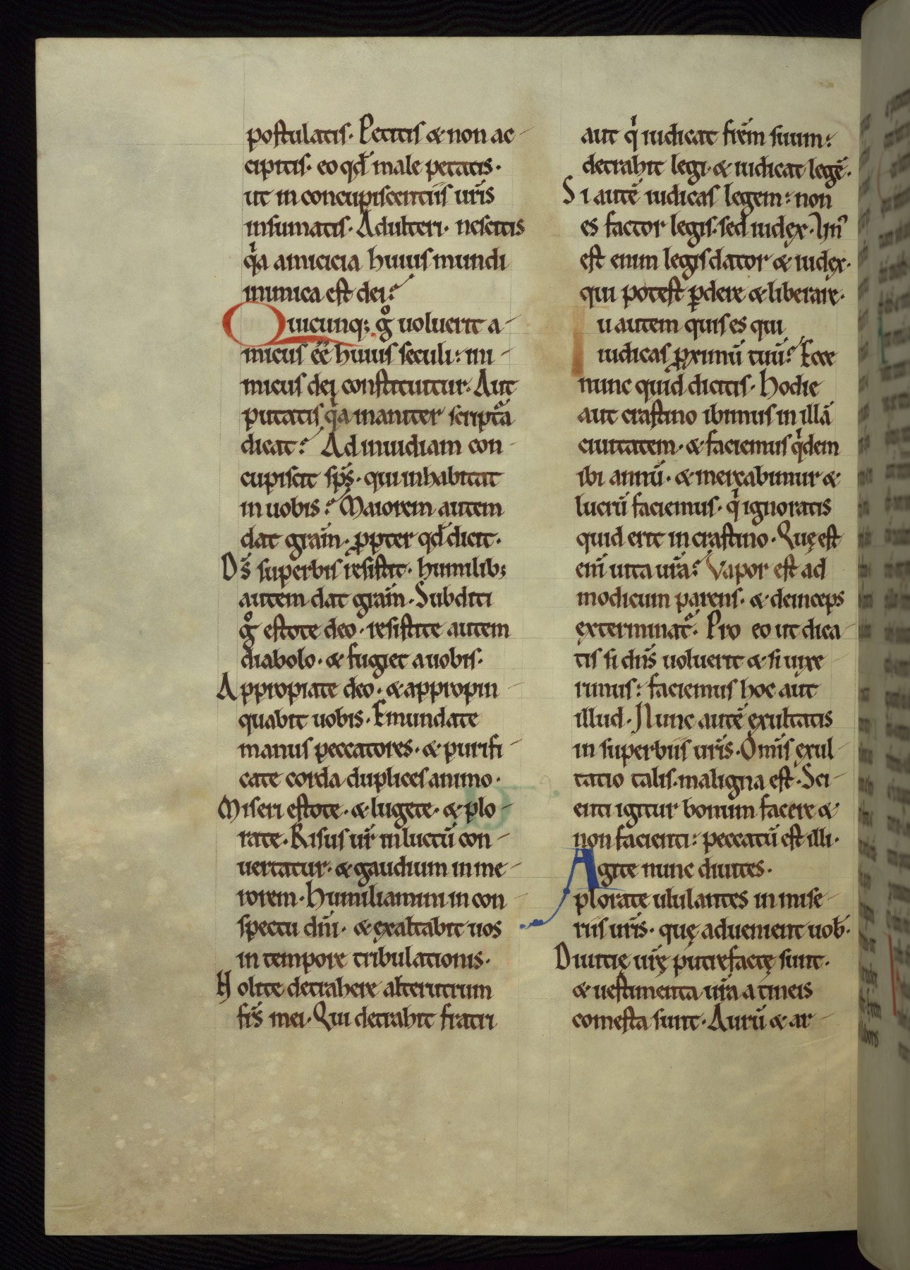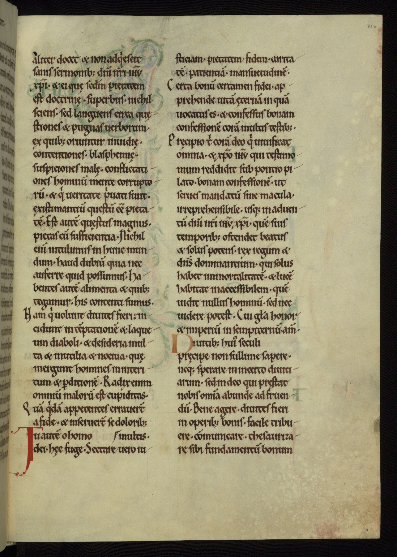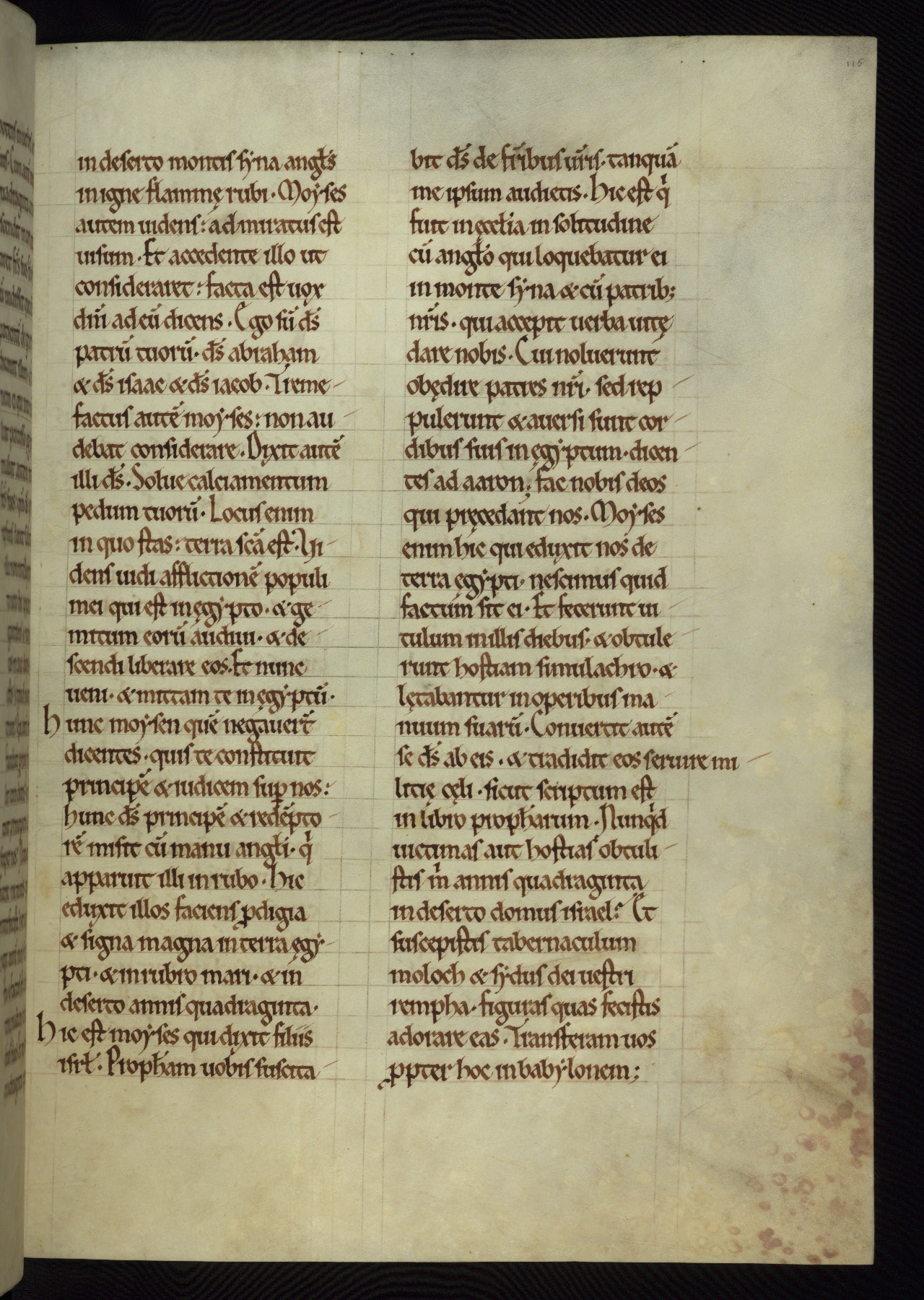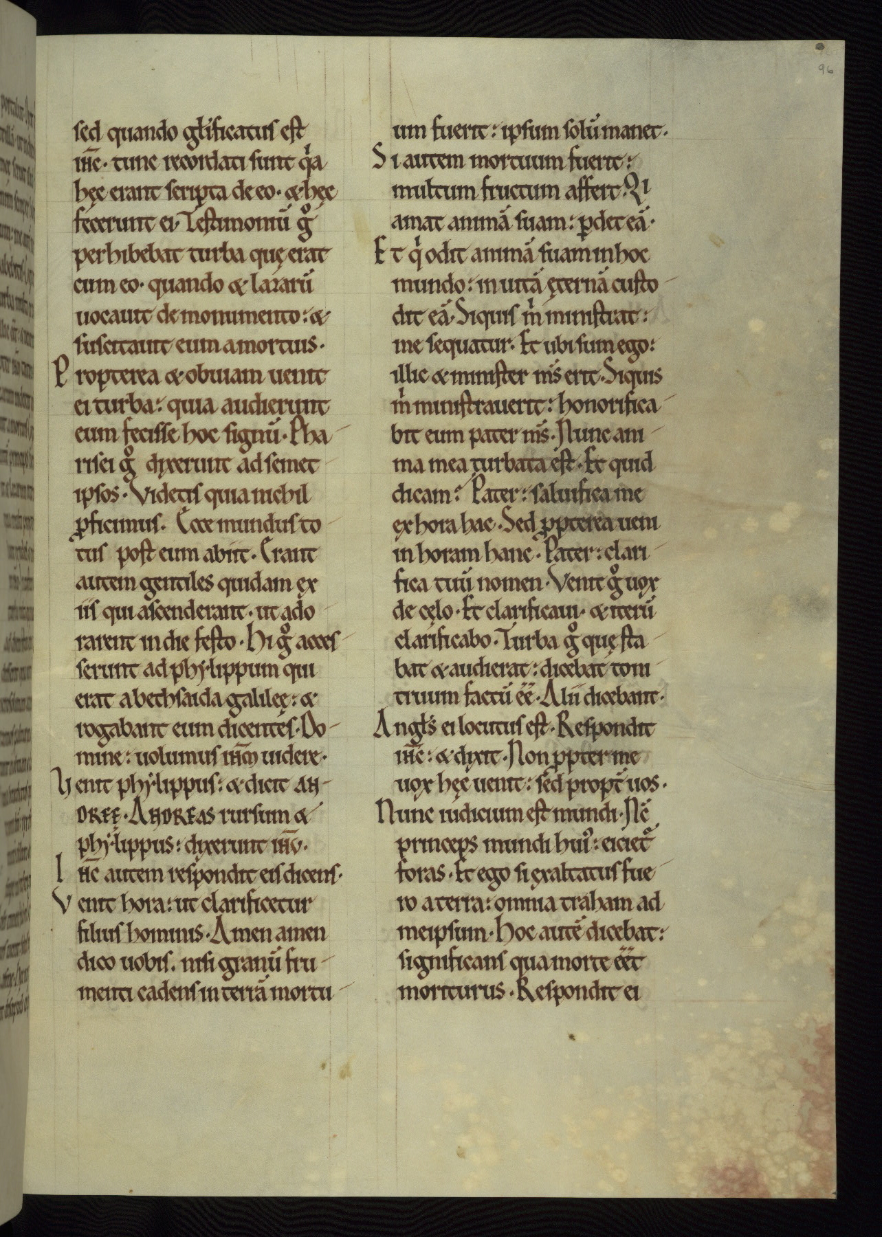 This large-format copy of the New Testament was almost certainly created at Rochester Cathedral Priory, England, in the first half of the twelfth century. It was part of a five-volume Bible, only one other volume of which, London, British Library Ms. Royal I.C.VII, has survived. The decorated initials in these manuscripts compare closely with those in other books securely attributed to Rochester. Textually these books are closely related to the Gundulph Bible (San Marino, Huntington Library Ms. HM 62), known to have been produced at Rochester in the second half of the eleventh century. Although neither the Walters' nor the British Library's volume includes an inscription associating this Bible with Rochester, the two medieval catalogs of the Rochester Cathedral library, produced around 1130 and in 1202, contain references to manuscripts that correspond well with them. The book’s large size indicates it that was designed to be read aloud, either during services or at meals in the refectory. Large, fanciful initials filled with succulent foliage, fruit, dragons, animals, and human faces begin each section of the text. Executed in a vibrant palette of red, blue, green, ochre (in place of gold), and yellow, the intricate, dynamic designs capture the essence of Romanesque manuscript illumination. Royal I.C.VII also includes four historiated initials (for the books of Joshua, I Samuel, 2 Samuel, and 2 Kings). Although the Bible was made at Rochester, the pre-Gothic script of W.18 in particular is extremely close to that practiced at nearby Canterbury at the time.