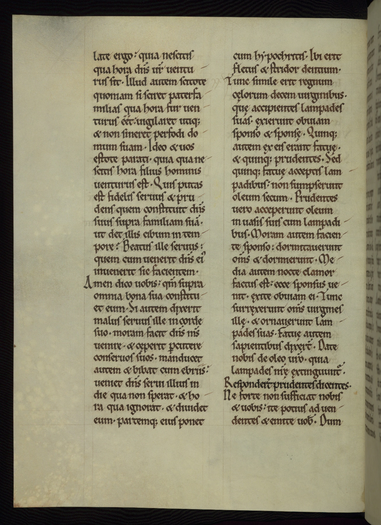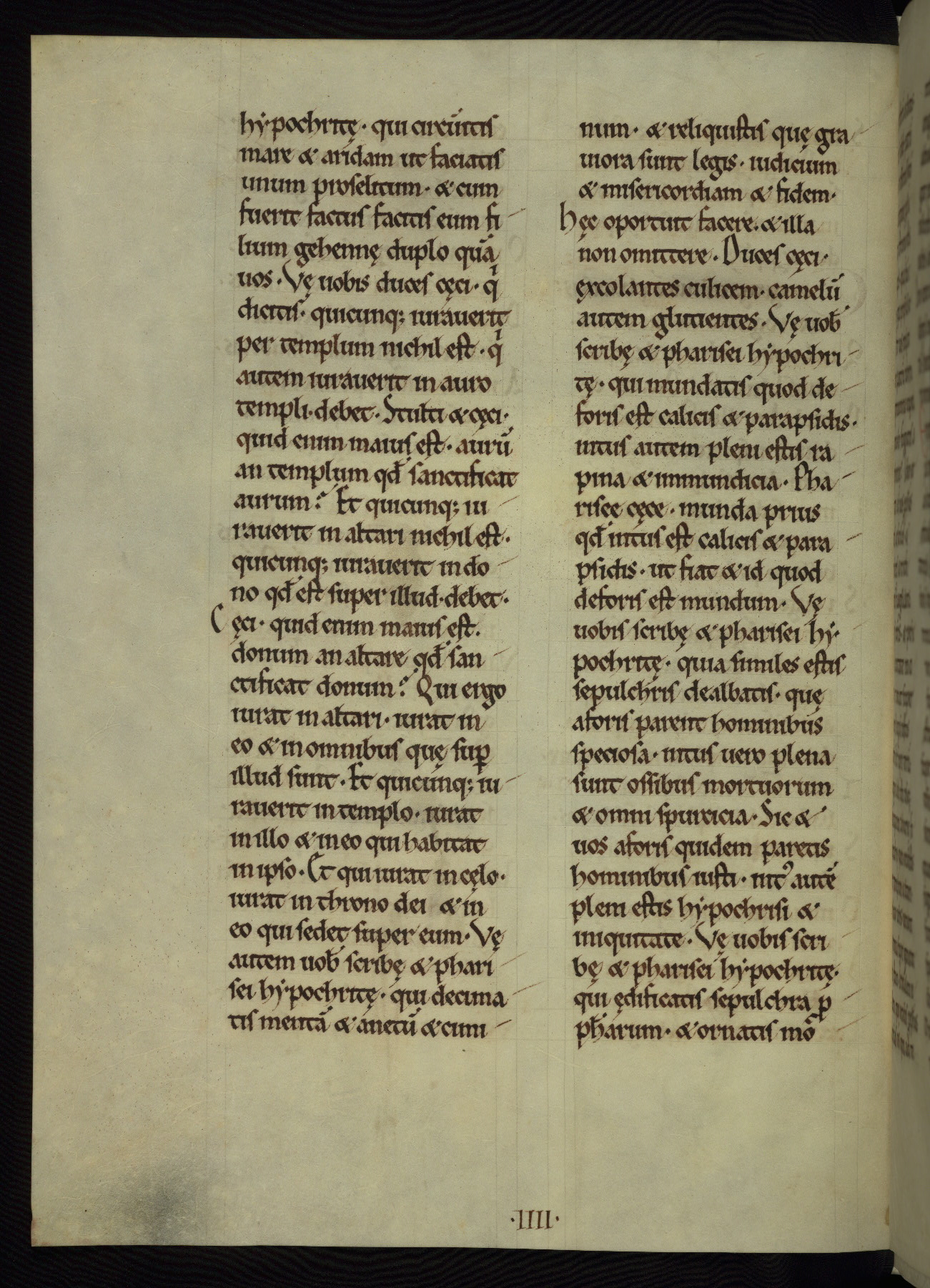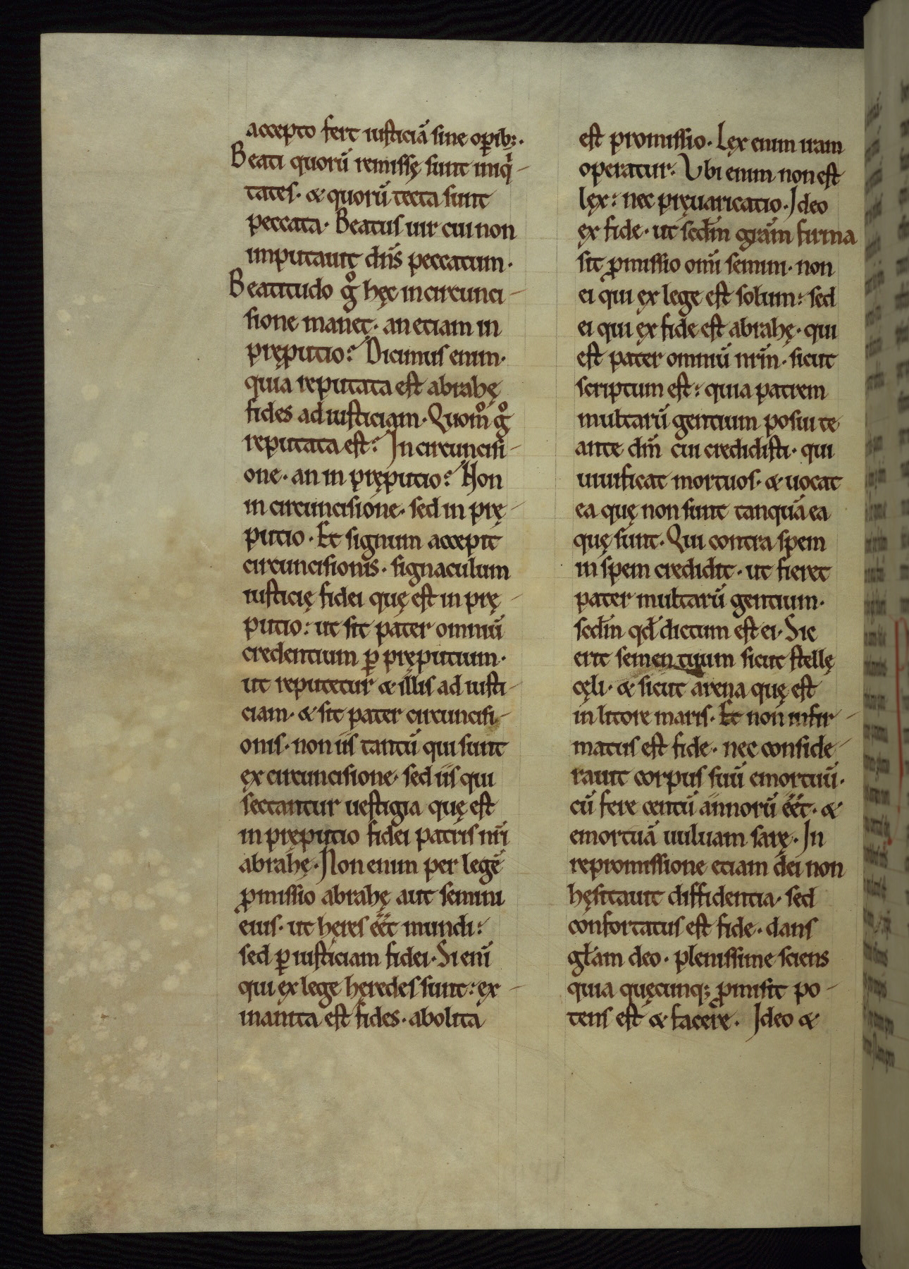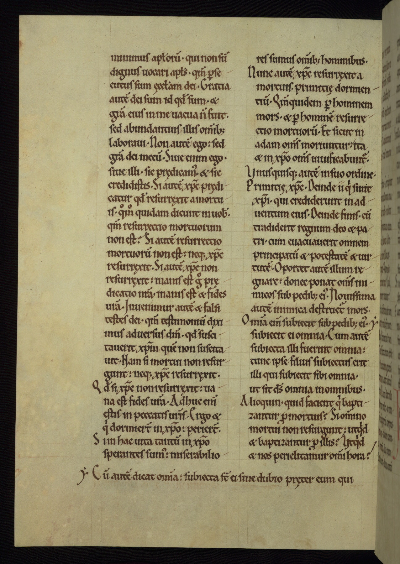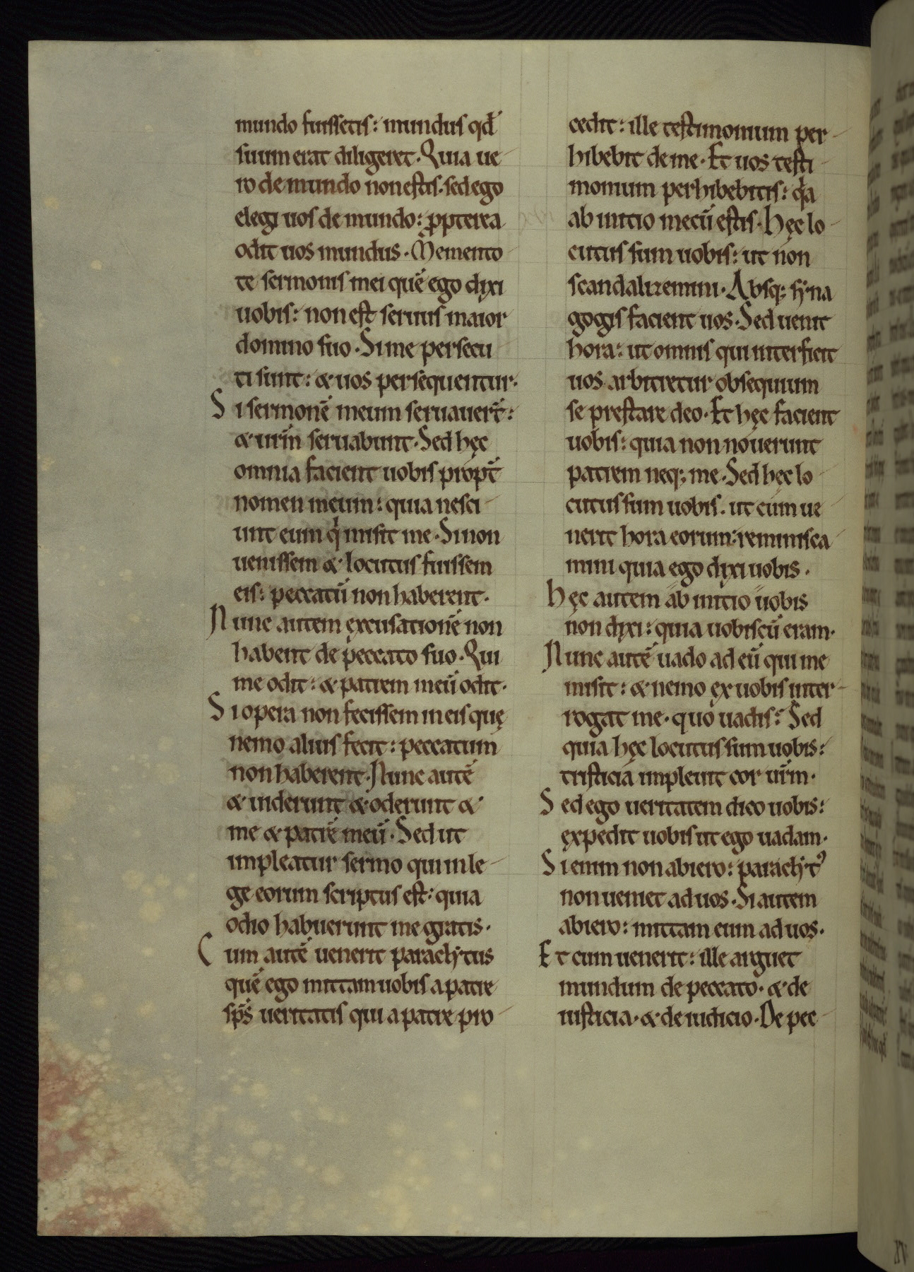 This large-format copy of the New Testament was almost certainly created at Rochester Cathedral Priory, England, in the first half of the twelfth century. It was part of a five-volume Bible, only one other volume of which, London, British Library Ms. Royal I.C.VII, has survived. The decorated initials in these manuscripts compare closely with those in other books securely attributed to Rochester. Textually these books are closely related to the Gundulph Bible (San Marino, Huntington Library Ms. HM 62), known to have been produced at Rochester in the second half of the eleventh century. Although neither the Walters' nor the British Library's volume includes an inscription associating this Bible with Rochester, the two medieval catalogs of the Rochester Cathedral library, produced around 1130 and in 1202, contain references to manuscripts that correspond well with them. The book’s large size indicates it that was designed to be read aloud, either during services or at meals in the refectory. Large, fanciful initials filled with succulent foliage, fruit, dragons, animals, and human faces begin each section of the text. Executed in a vibrant palette of red, blue, green, ochre (in place of gold), and yellow, the intricate, dynamic designs capture the essence of Romanesque manuscript illumination. Royal I.C.VII also includes four historiated initials (for the books of Joshua, I Samuel, 2 Samuel, and 2 Kings). Although the Bible was made at Rochester, the pre-Gothic script of W.18 in particular is extremely close to that practiced at nearby Canterbury at the time.