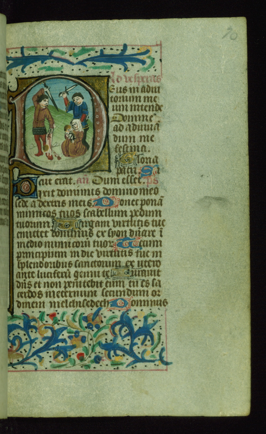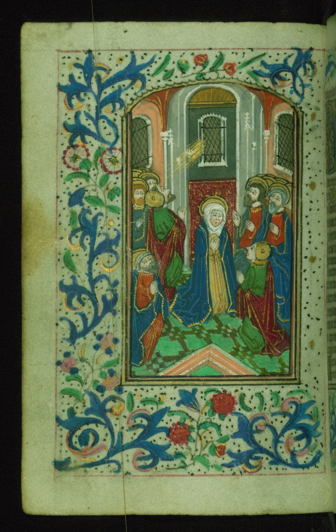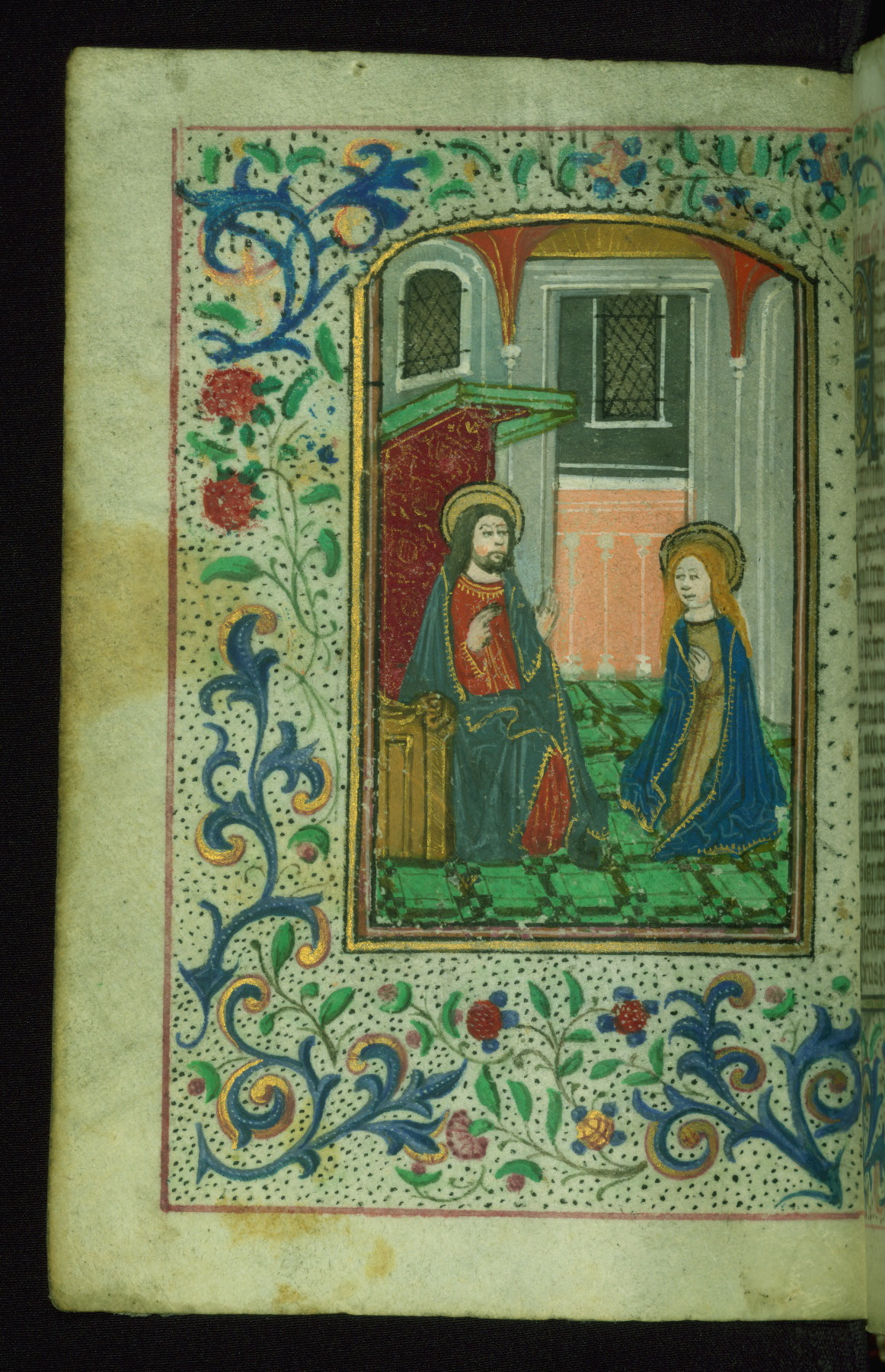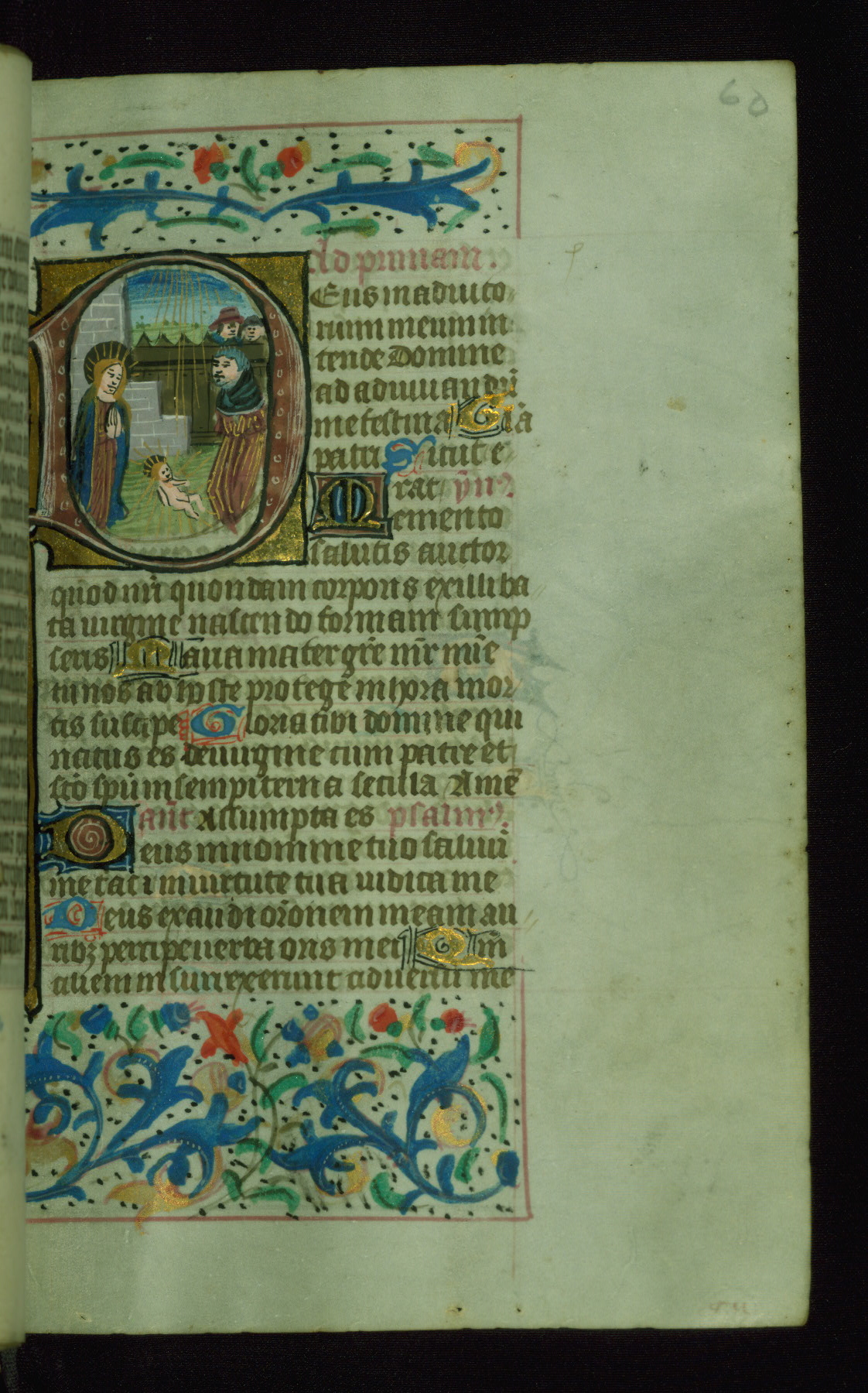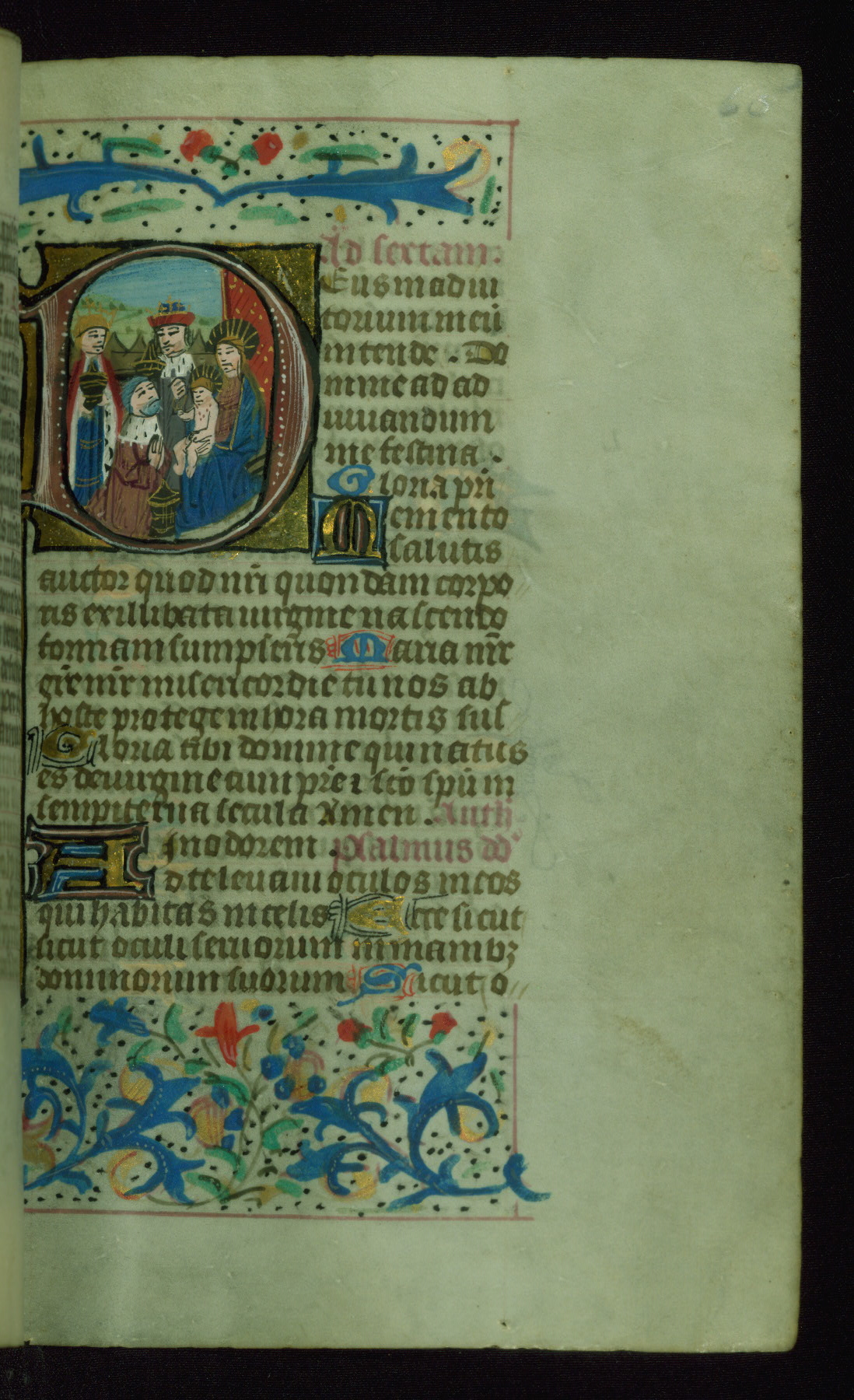 - Decoration note: Full-page miniature missing at Matins, between fols. 42 and 43; historiated initials fols. 53v, 60r, 62v, 65r, 67v, 70r, and 74v