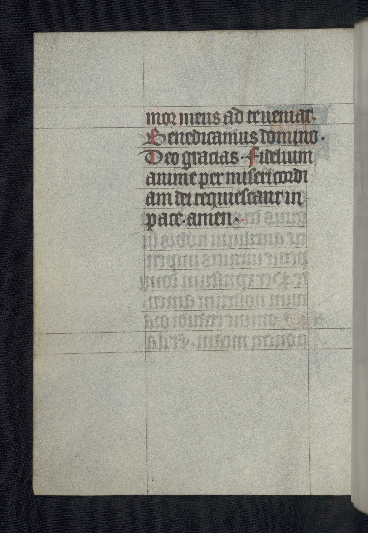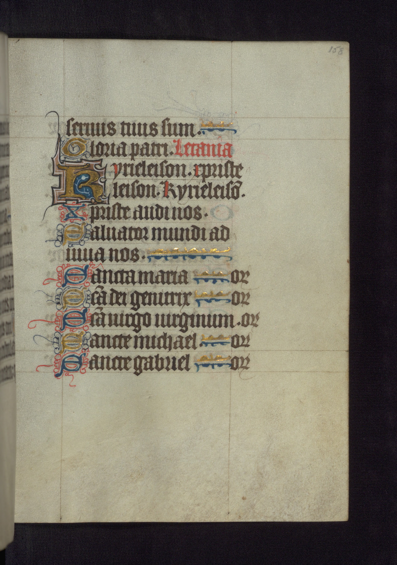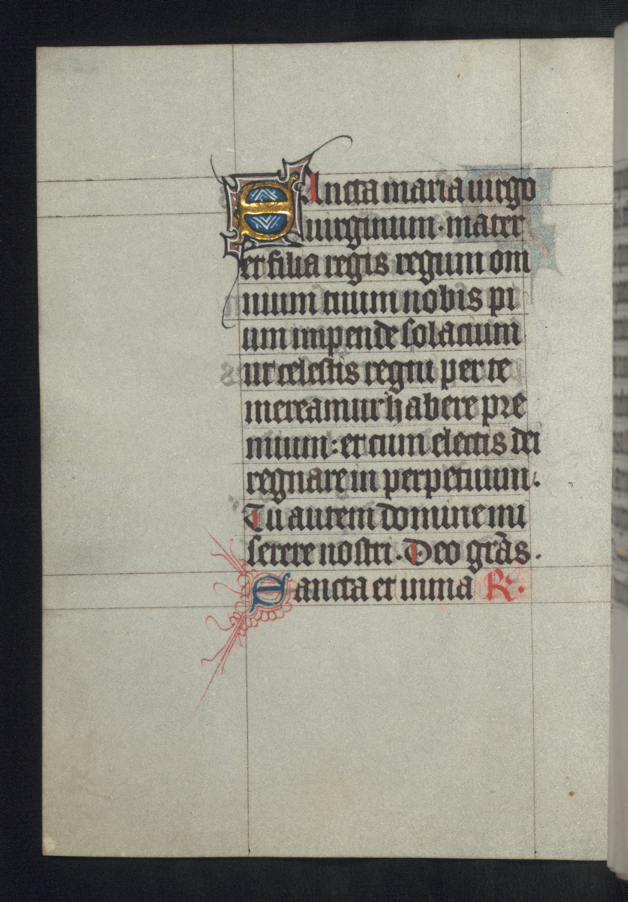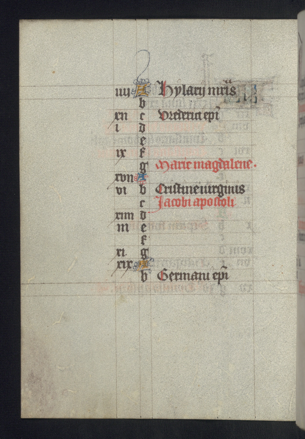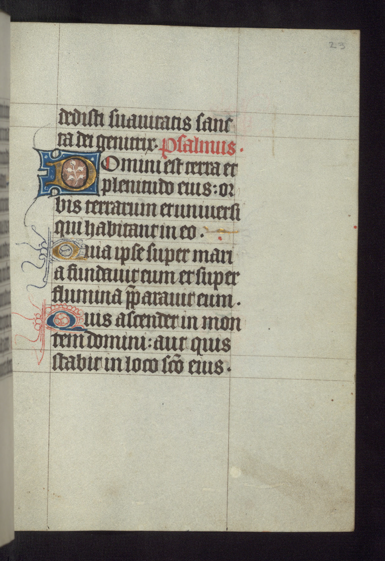 This Book of Hours was named the Doffinnes Hours after Franchoise de Doffinnes, who owned the book in the late sixteenth century and whose family’s subsequent history remains chronicled on the book’s final folios. However, the manuscript was originally made in the first quarter of the fifteenth century, probably for a married couple, who were originally represented kneeling with scrolls and their coats of arms in the margins, flanking a full-page miniature of the Crucifixion (fol. 72v), but whose figures and arms were later erased and overpainted with white. The manuscript contains both Latin and Dutch texts, supplemented by twelve full-page miniatures, the work of the Master of Walters 185. The manuscript also contains twelve pen-and-ink decorated initials in the calendar, some with grotesque faces, and letter "G" descenders throughout the book that can be attributed to the scribe Johannes de Malborch. The book’s original Dutch provenance is indicated by its calendar (for the Use of Utrecht) and its Hours of the Virgin, which follows predominantly the Use of the Windesheim Congregation. Prayers in Dutch were added to the end of the volume in the late fifteenth or early sixteenth century, and the book was subsequently rebound with its current cream-colored parchment binding of the seventeenth or eighteenth century.