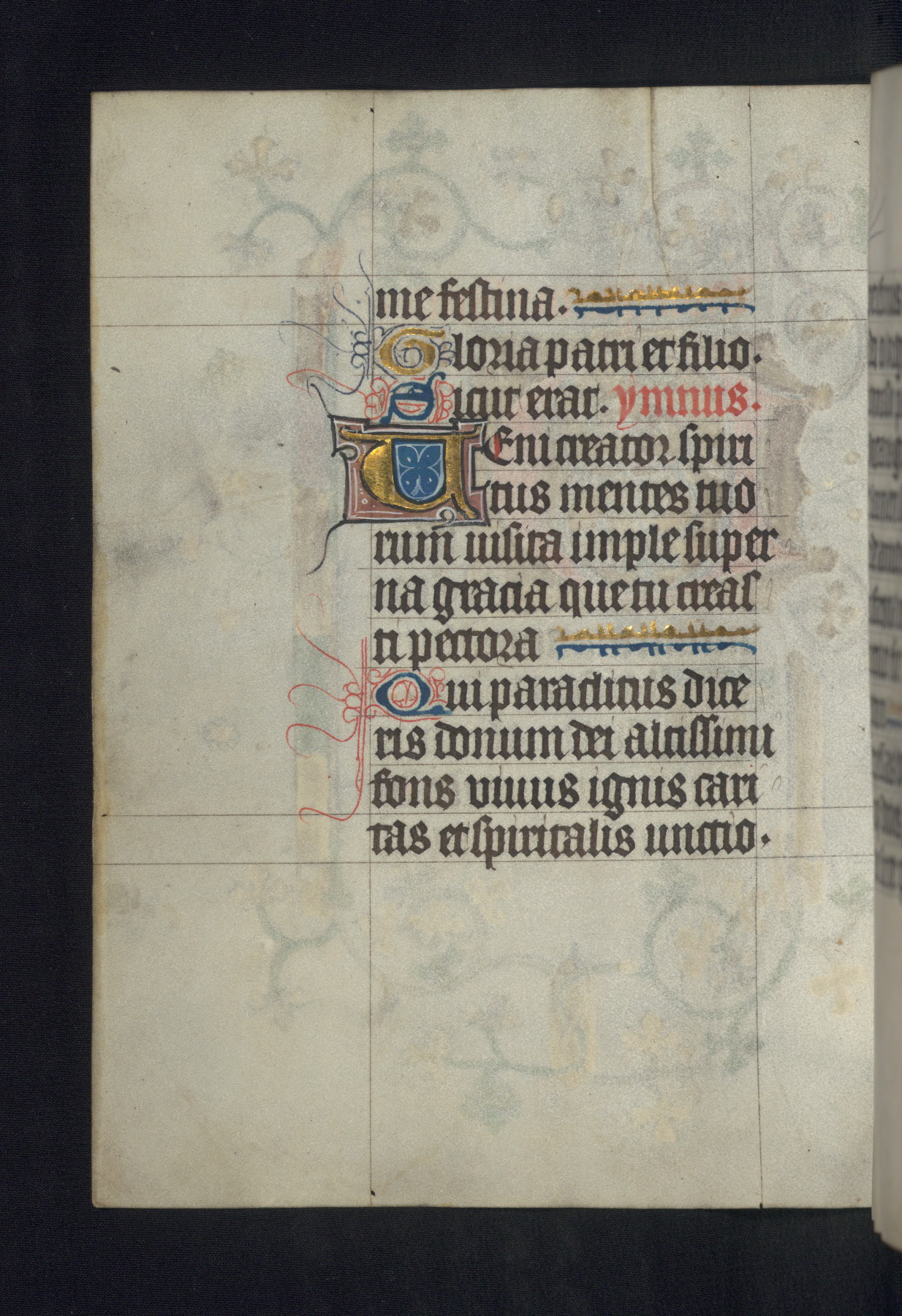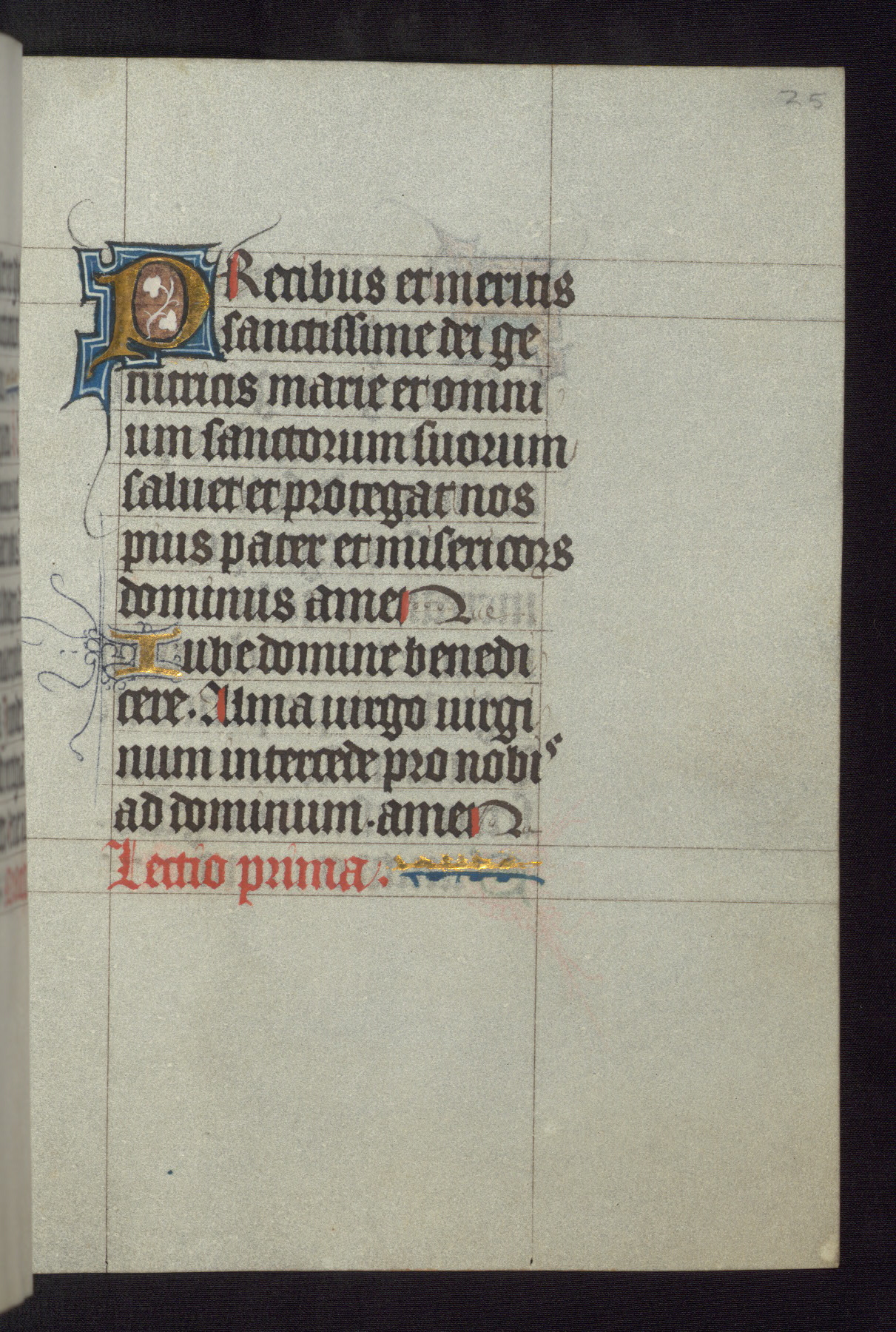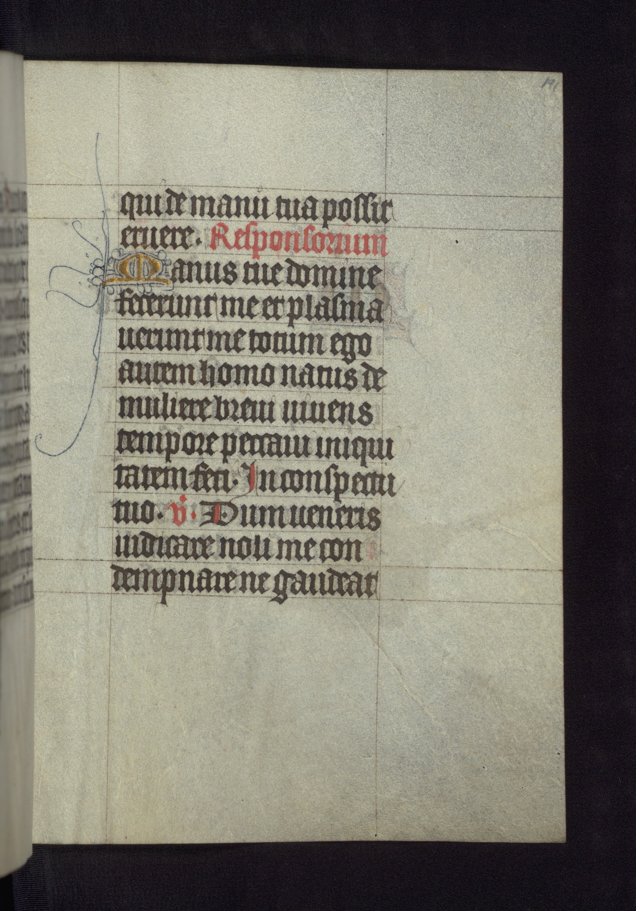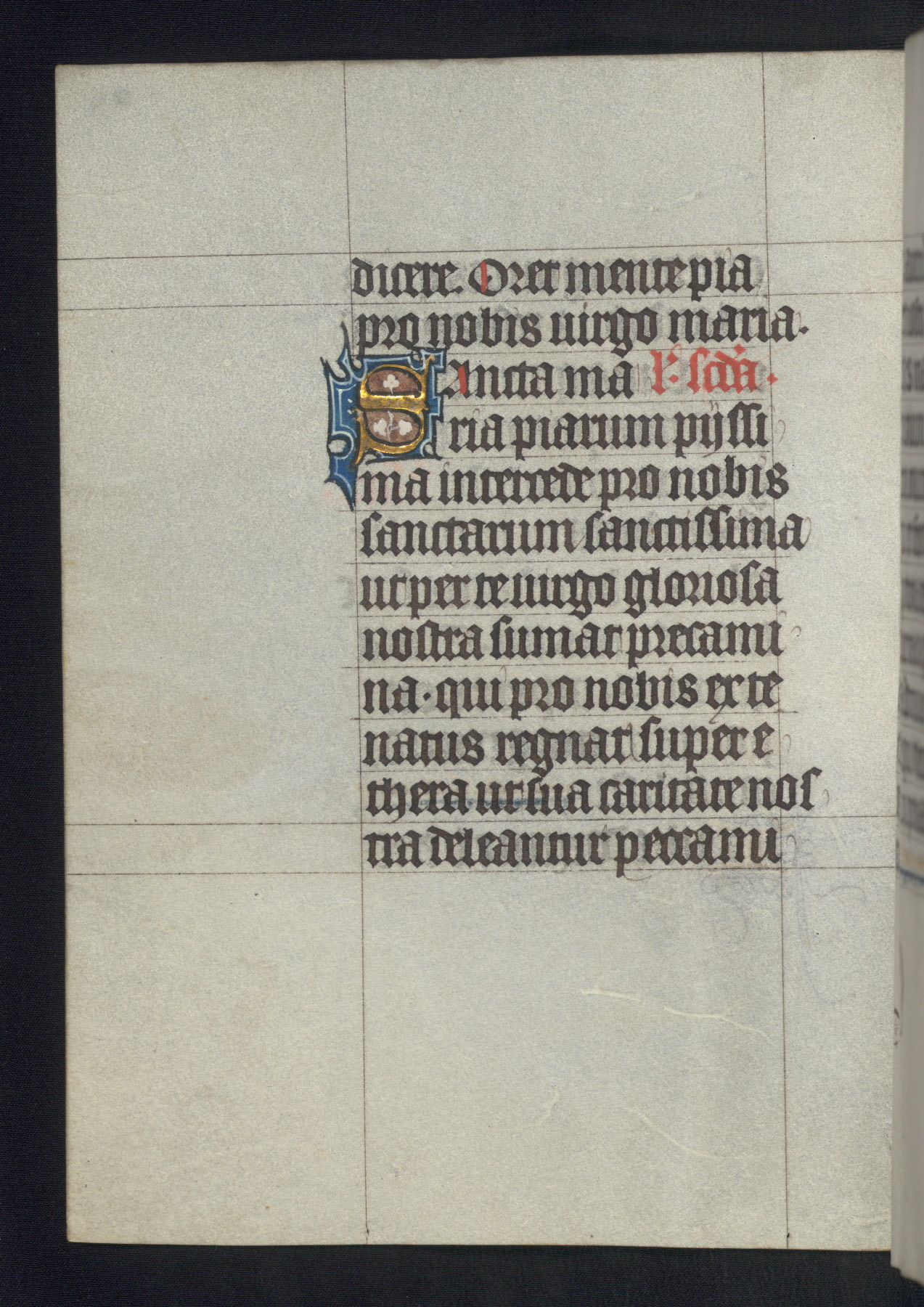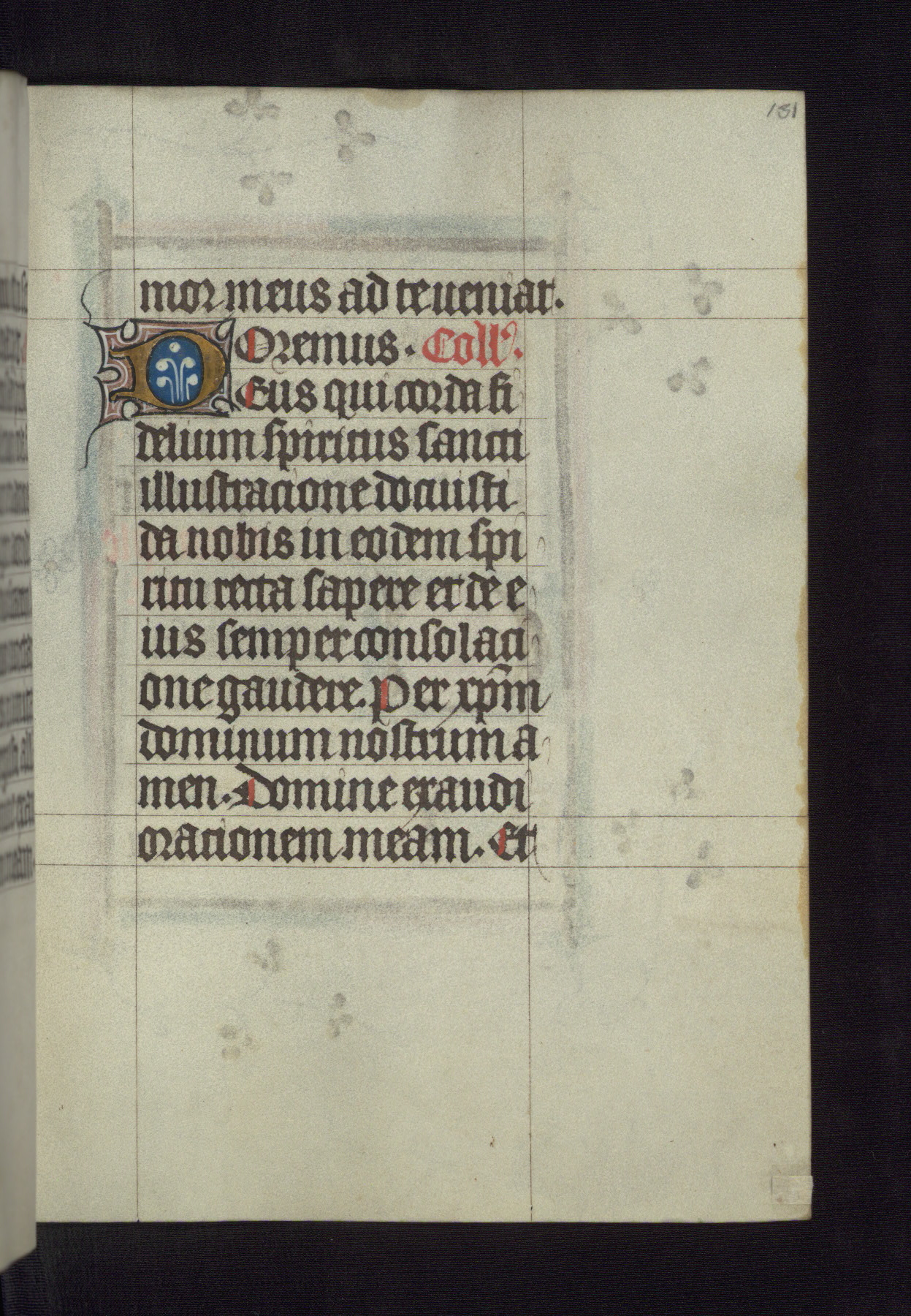 This Book of Hours was named the Doffinnes Hours after Franchoise de Doffinnes, who owned the book in the late sixteenth century and whose family’s subsequent history remains chronicled on the book’s final folios. However, the manuscript was originally made in the first quarter of the fifteenth century, probably for a married couple, who were originally represented kneeling with scrolls and their coats of arms in the margins, flanking a full-page miniature of the Crucifixion (fol. 72v), but whose figures and arms were later erased and overpainted with white. The manuscript contains both Latin and Dutch texts, supplemented by twelve full-page miniatures, the work of the Master of Walters 185. The manuscript also contains twelve pen-and-ink decorated initials in the calendar, some with grotesque faces, and letter "G" descenders throughout the book that can be attributed to the scribe Johannes de Malborch. The book’s original Dutch provenance is indicated by its calendar (for the Use of Utrecht) and its Hours of the Virgin, which follows predominantly the Use of the Windesheim Congregation. Prayers in Dutch were added to the end of the volume in the late fifteenth or early sixteenth century, and the book was subsequently rebound with its current cream-colored parchment binding of the seventeenth or eighteenth century.