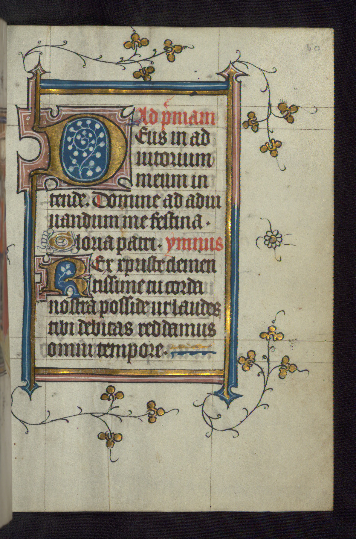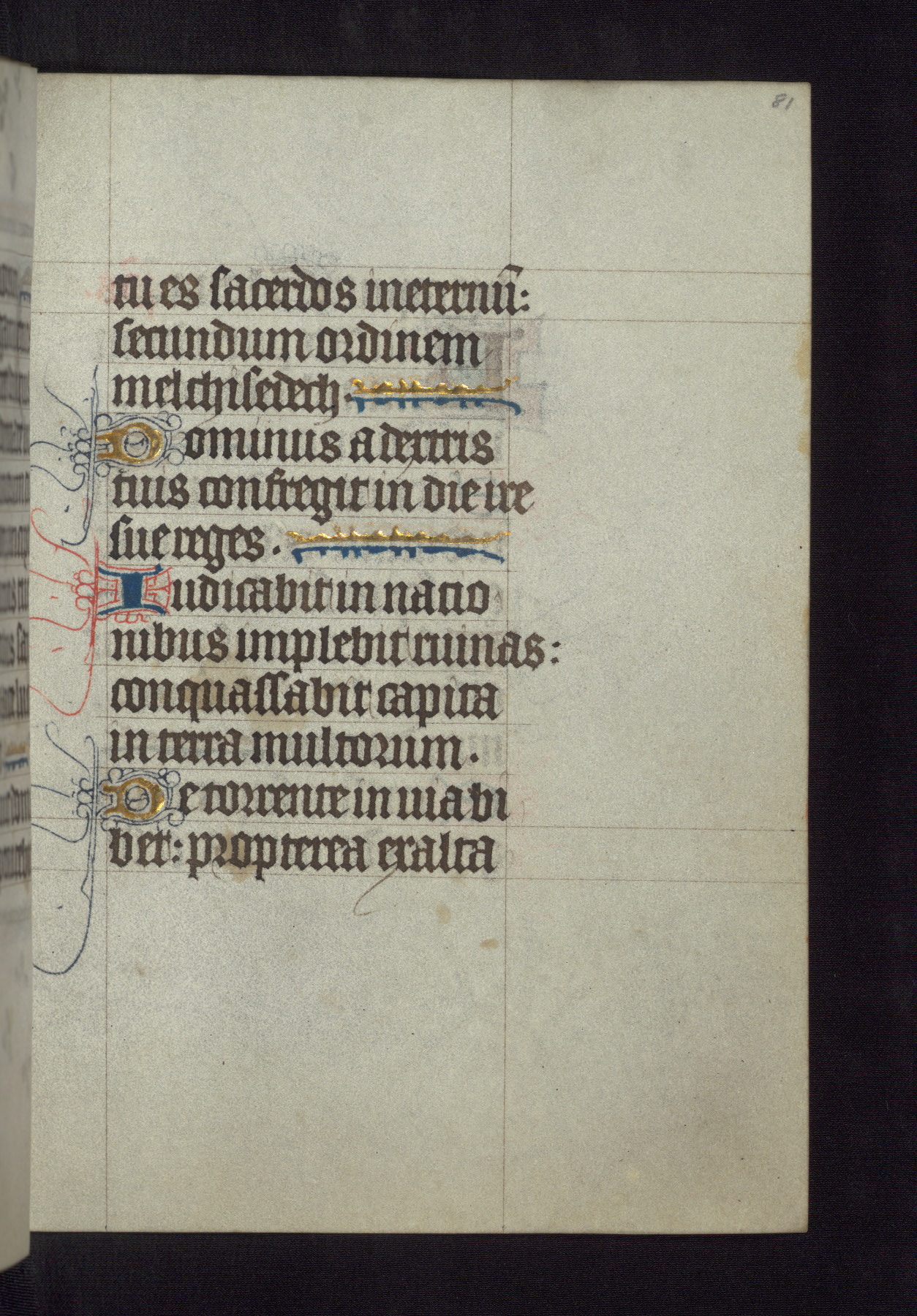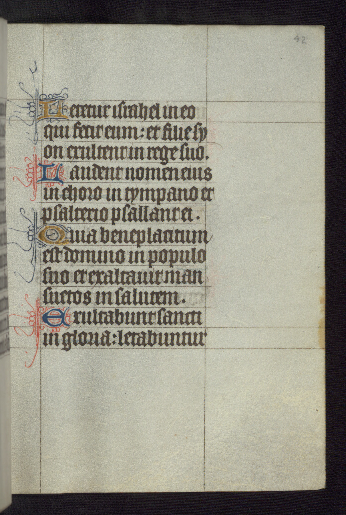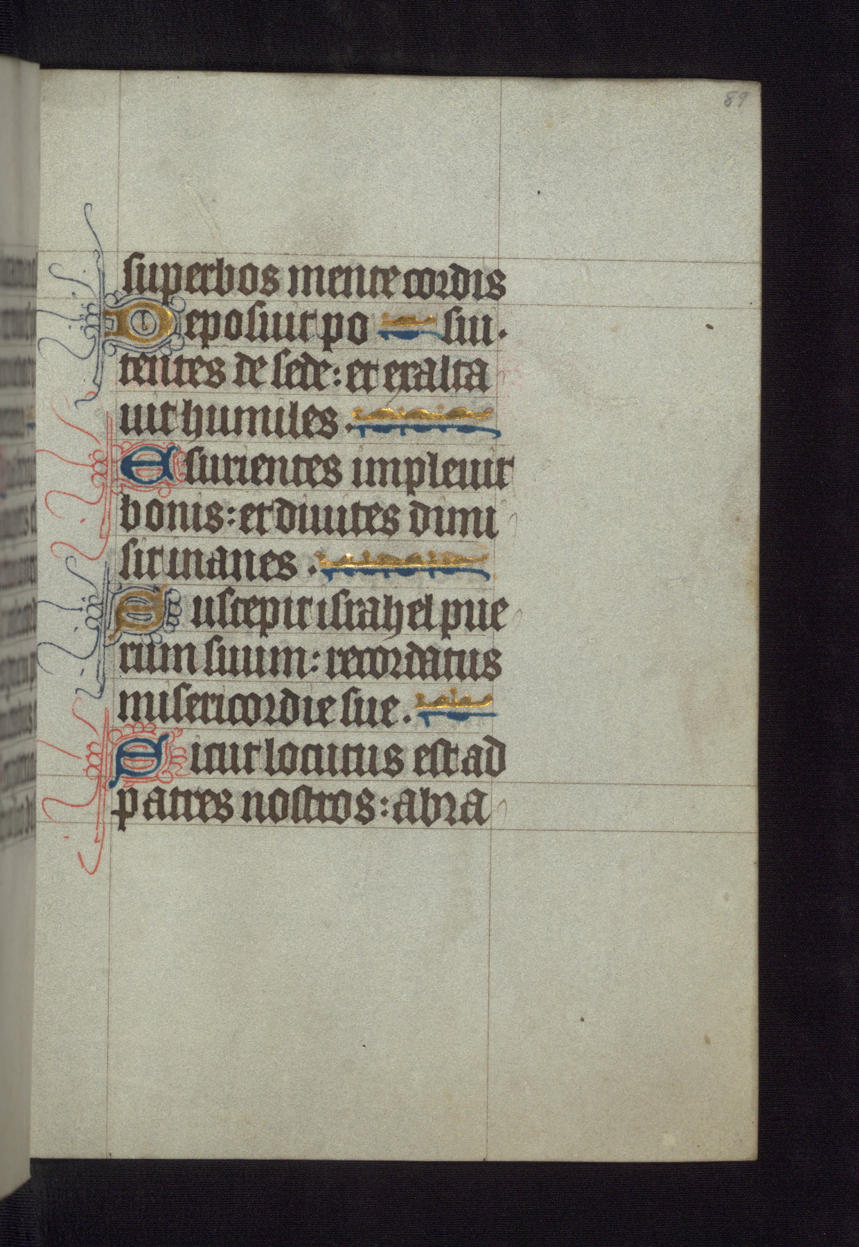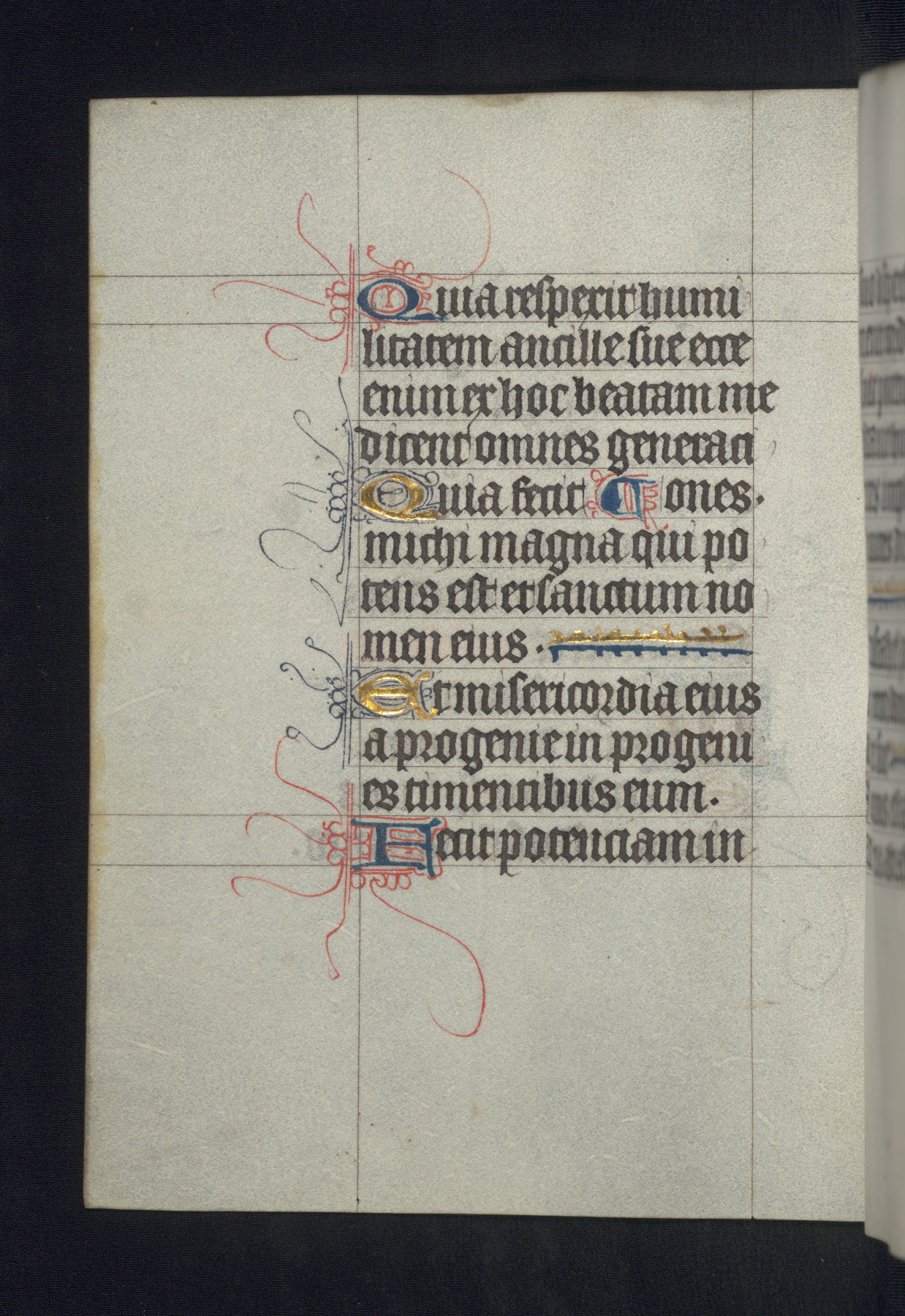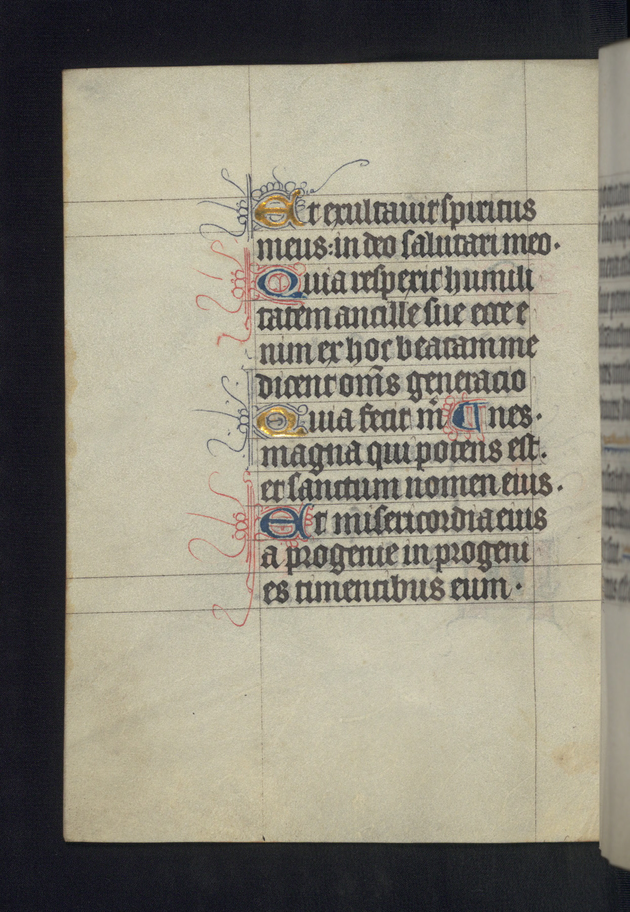 This Book of Hours was named the Doffinnes Hours after Franchoise de Doffinnes, who owned the book in the late sixteenth century and whose family’s subsequent history remains chronicled on the book’s final folios. However, the manuscript was originally made in the first quarter of the fifteenth century, probably for a married couple, who were originally represented kneeling with scrolls and their coats of arms in the margins, flanking a full-page miniature of the Crucifixion (fol. 72v), but whose figures and arms were later erased and overpainted with white. The manuscript contains both Latin and Dutch texts, supplemented by twelve full-page miniatures, the work of the Master of Walters 185. The manuscript also contains twelve pen-and-ink decorated initials in the calendar, some with grotesque faces, and letter "G" descenders throughout the book that can be attributed to the scribe Johannes de Malborch. The book’s original Dutch provenance is indicated by its calendar (for the Use of Utrecht) and its Hours of the Virgin, which follows predominantly the Use of the Windesheim Congregation. Prayers in Dutch were added to the end of the volume in the late fifteenth or early sixteenth century, and the book was subsequently rebound with its current cream-colored parchment binding of the seventeenth or eighteenth century.