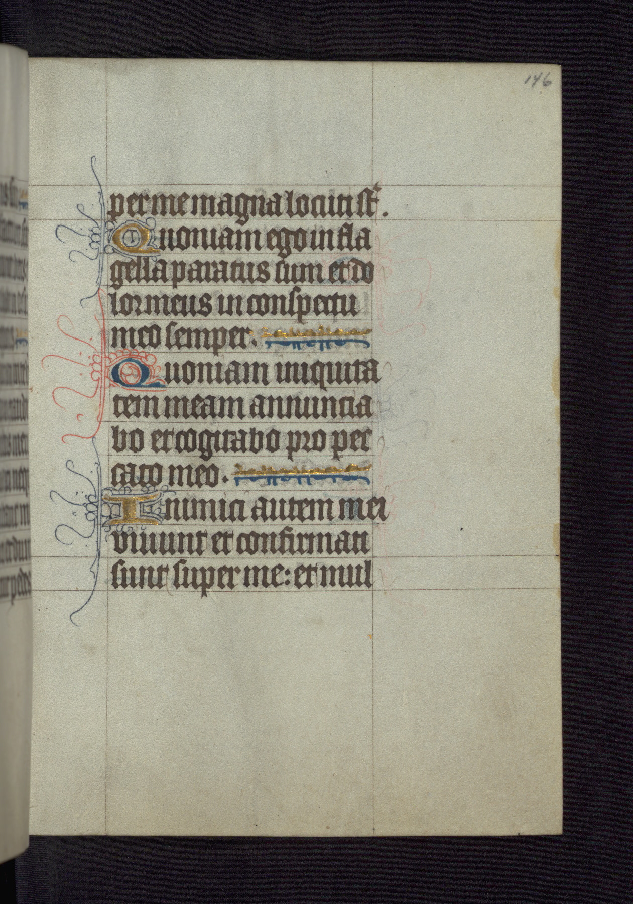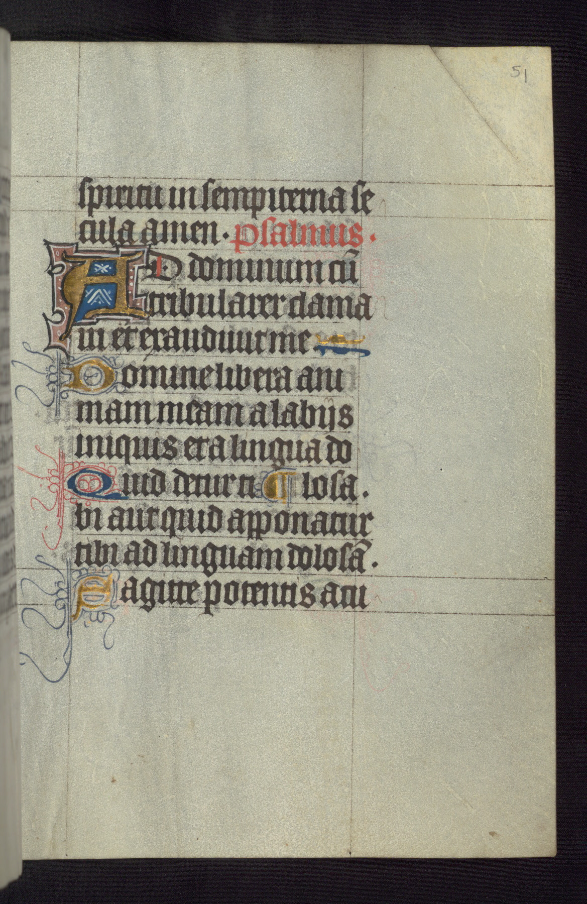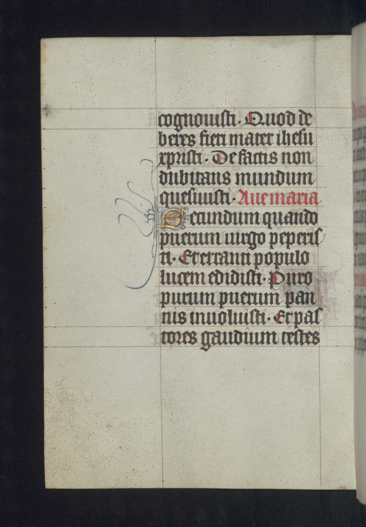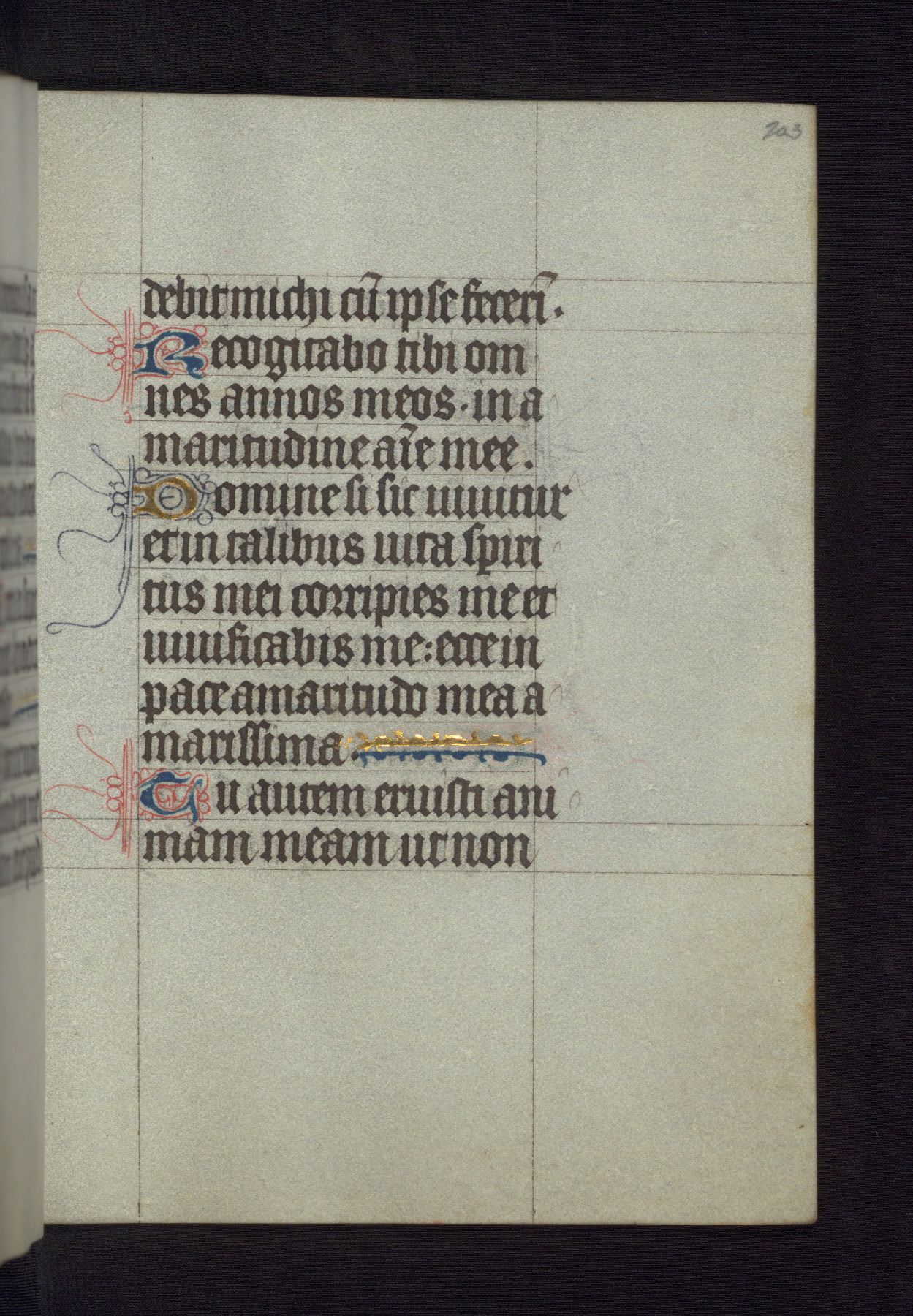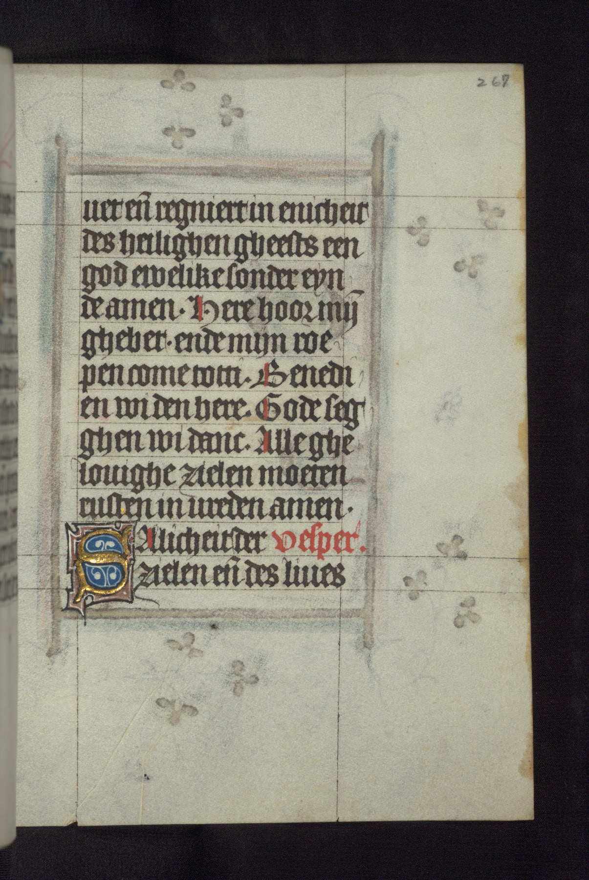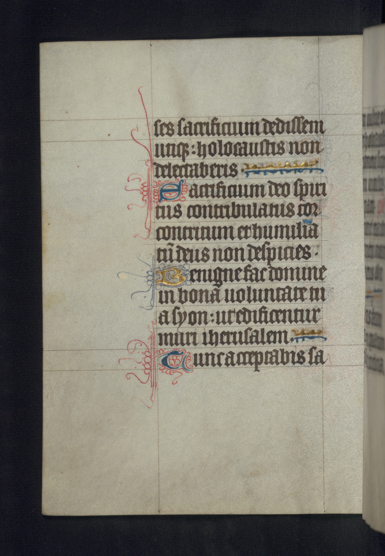 This Book of Hours was named the Doffinnes Hours after Franchoise de Doffinnes, who owned the book in the late sixteenth century and whose family’s subsequent history remains chronicled on the book’s final folios. However, the manuscript was originally made in the first quarter of the fifteenth century, probably for a married couple, who were originally represented kneeling with scrolls and their coats of arms in the margins, flanking a full-page miniature of the Crucifixion (fol. 72v), but whose figures and arms were later erased and overpainted with white. The manuscript contains both Latin and Dutch texts, supplemented by twelve full-page miniatures, the work of the Master of Walters 185. The manuscript also contains twelve pen-and-ink decorated initials in the calendar, some with grotesque faces, and letter "G" descenders throughout the book that can be attributed to the scribe Johannes de Malborch. The book’s original Dutch provenance is indicated by its calendar (for the Use of Utrecht) and its Hours of the Virgin, which follows predominantly the Use of the Windesheim Congregation. Prayers in Dutch were added to the end of the volume in the late fifteenth or early sixteenth century, and the book was subsequently rebound with its current cream-colored parchment binding of the seventeenth or eighteenth century.