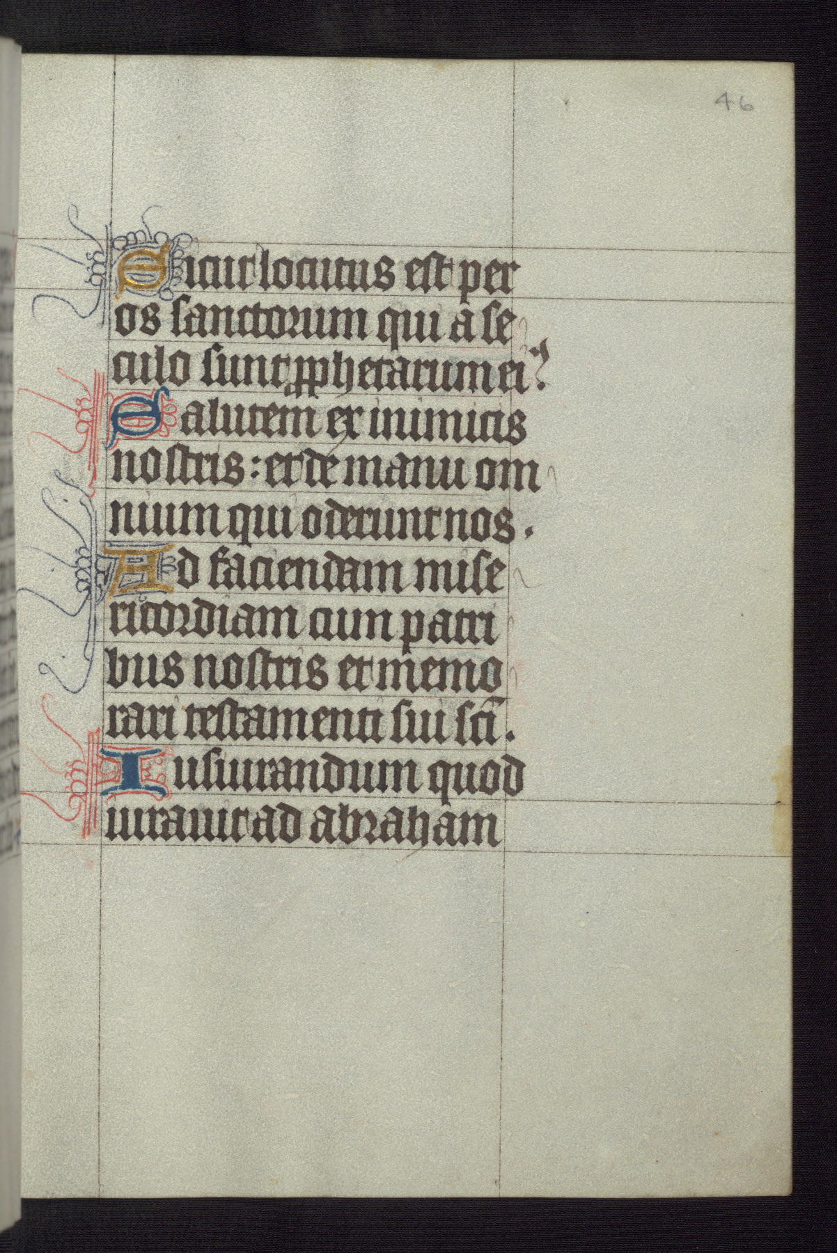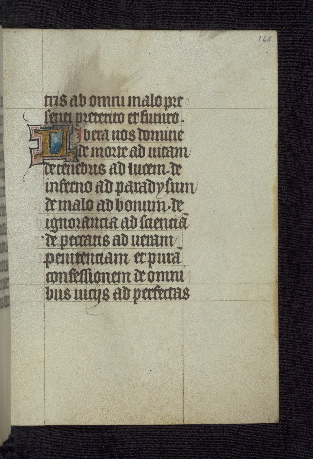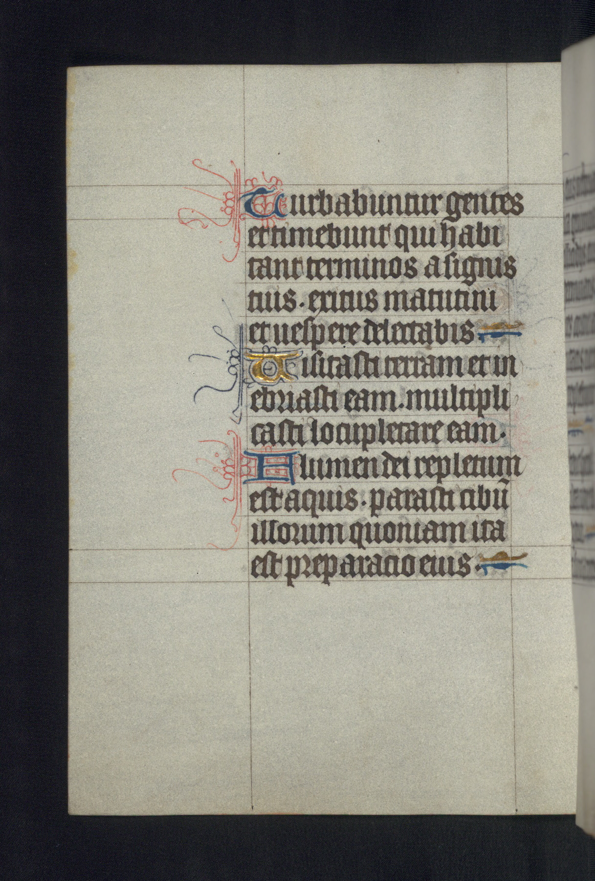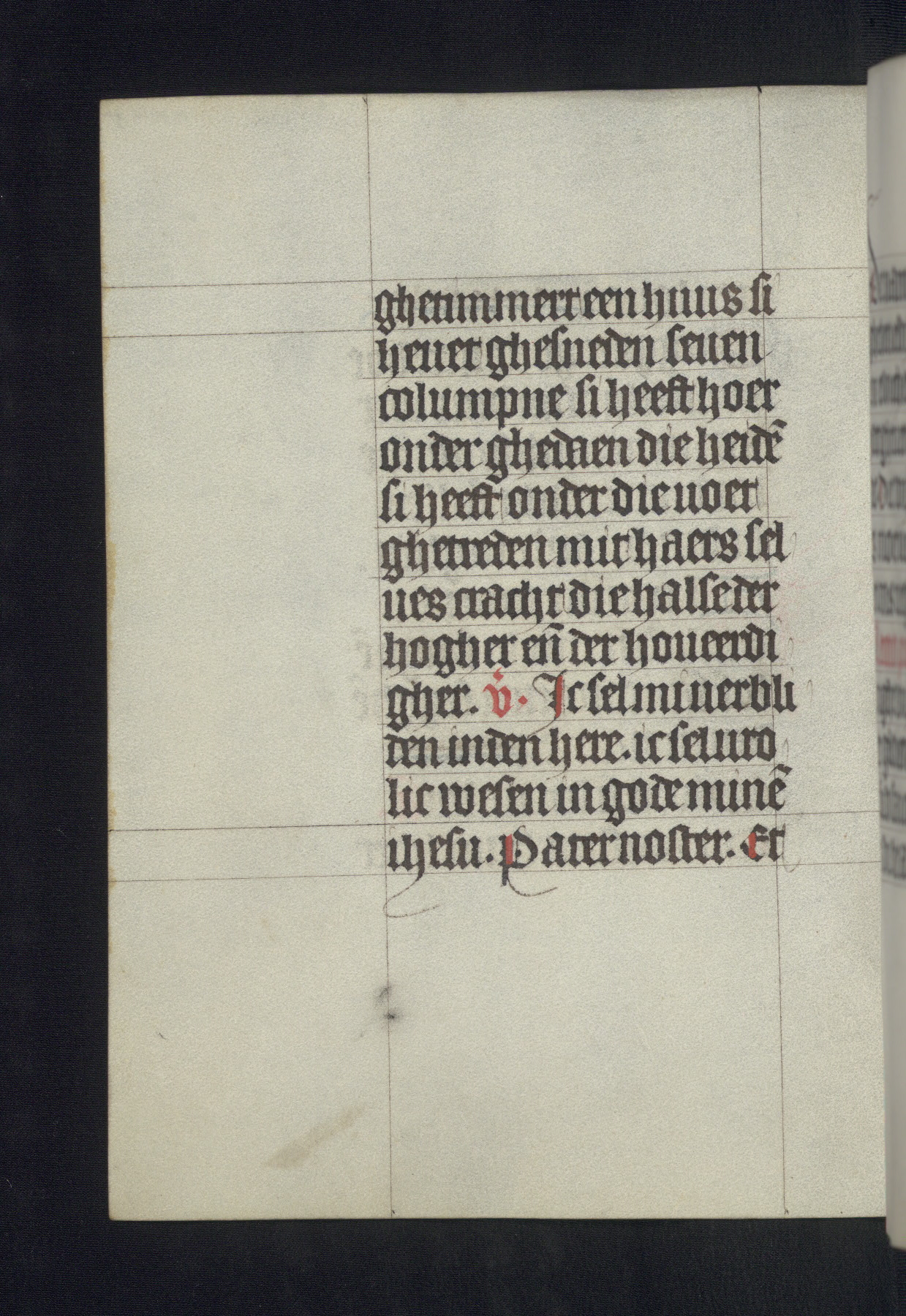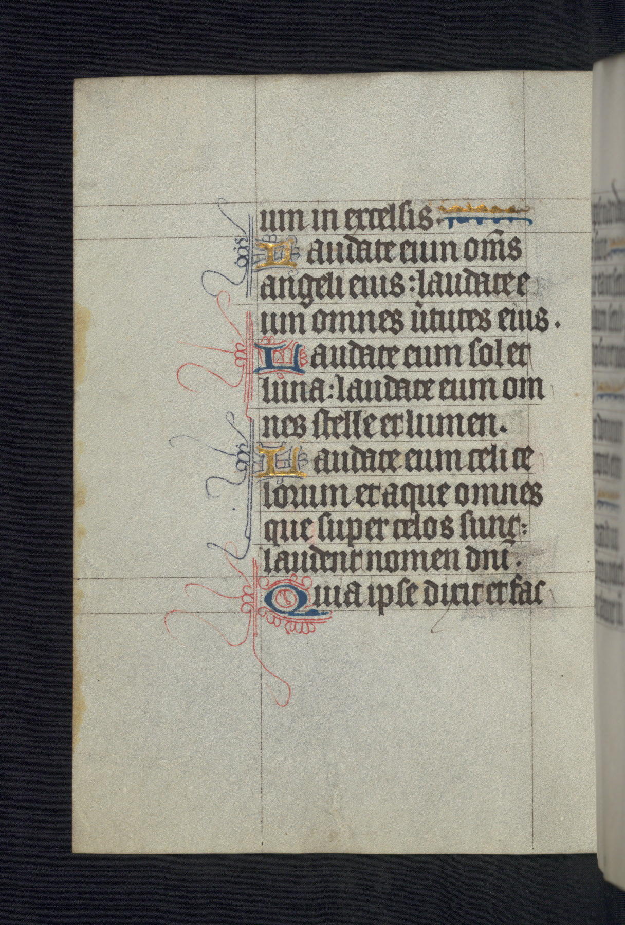 This Book of Hours was named the Doffinnes Hours after Franchoise de Doffinnes, who owned the book in the late sixteenth century and whose family’s subsequent history remains chronicled on the book’s final folios. However, the manuscript was originally made in the first quarter of the fifteenth century, probably for a married couple, who were originally represented kneeling with scrolls and their coats of arms in the margins, flanking a full-page miniature of the Crucifixion (fol. 72v), but whose figures and arms were later erased and overpainted with white. The manuscript contains both Latin and Dutch texts, supplemented by twelve full-page miniatures, the work of the Master of Walters 185. The manuscript also contains twelve pen-and-ink decorated initials in the calendar, some with grotesque faces, and letter "G" descenders throughout the book that can be attributed to the scribe Johannes de Malborch. The book’s original Dutch provenance is indicated by its calendar (for the Use of Utrecht) and its Hours of the Virgin, which follows predominantly the Use of the Windesheim Congregation. Prayers in Dutch were added to the end of the volume in the late fifteenth or early sixteenth century, and the book was subsequently rebound with its current cream-colored parchment binding of the seventeenth or eighteenth century.