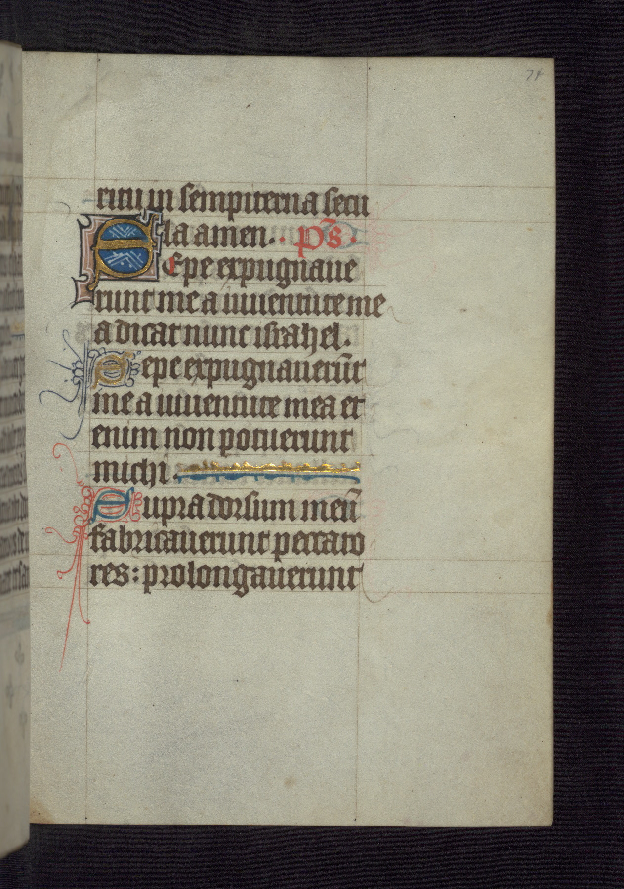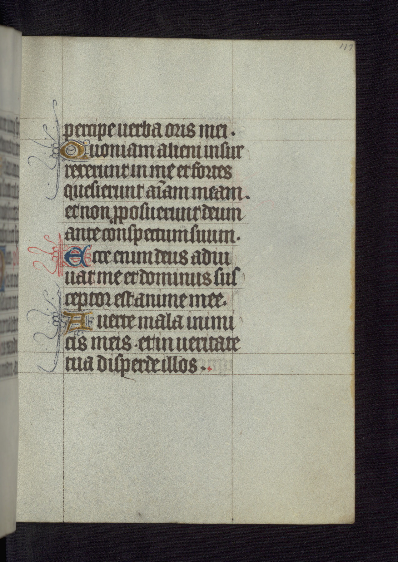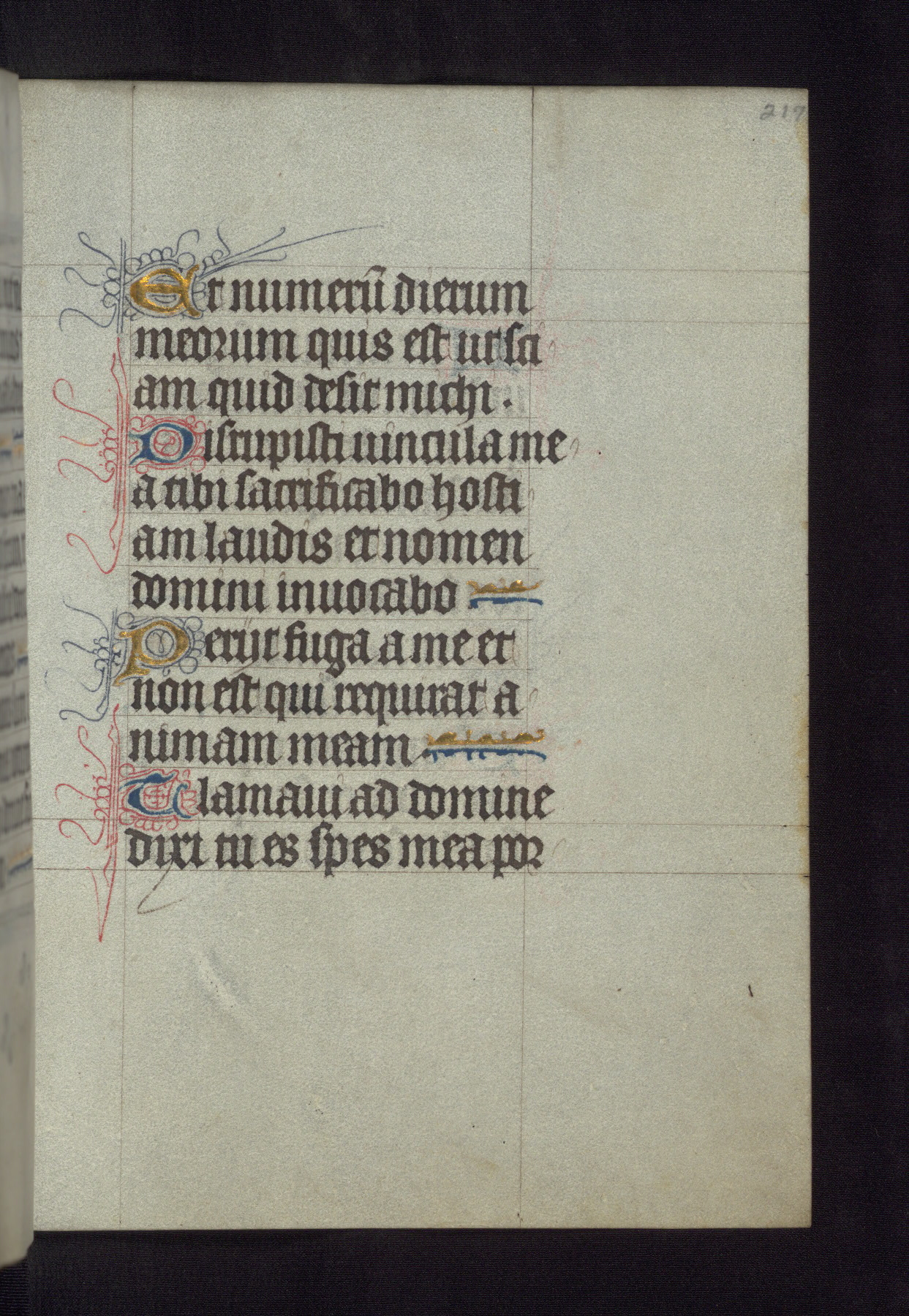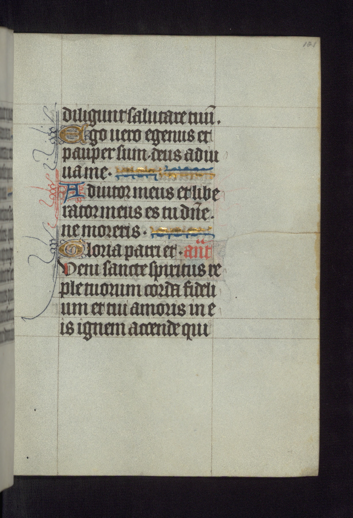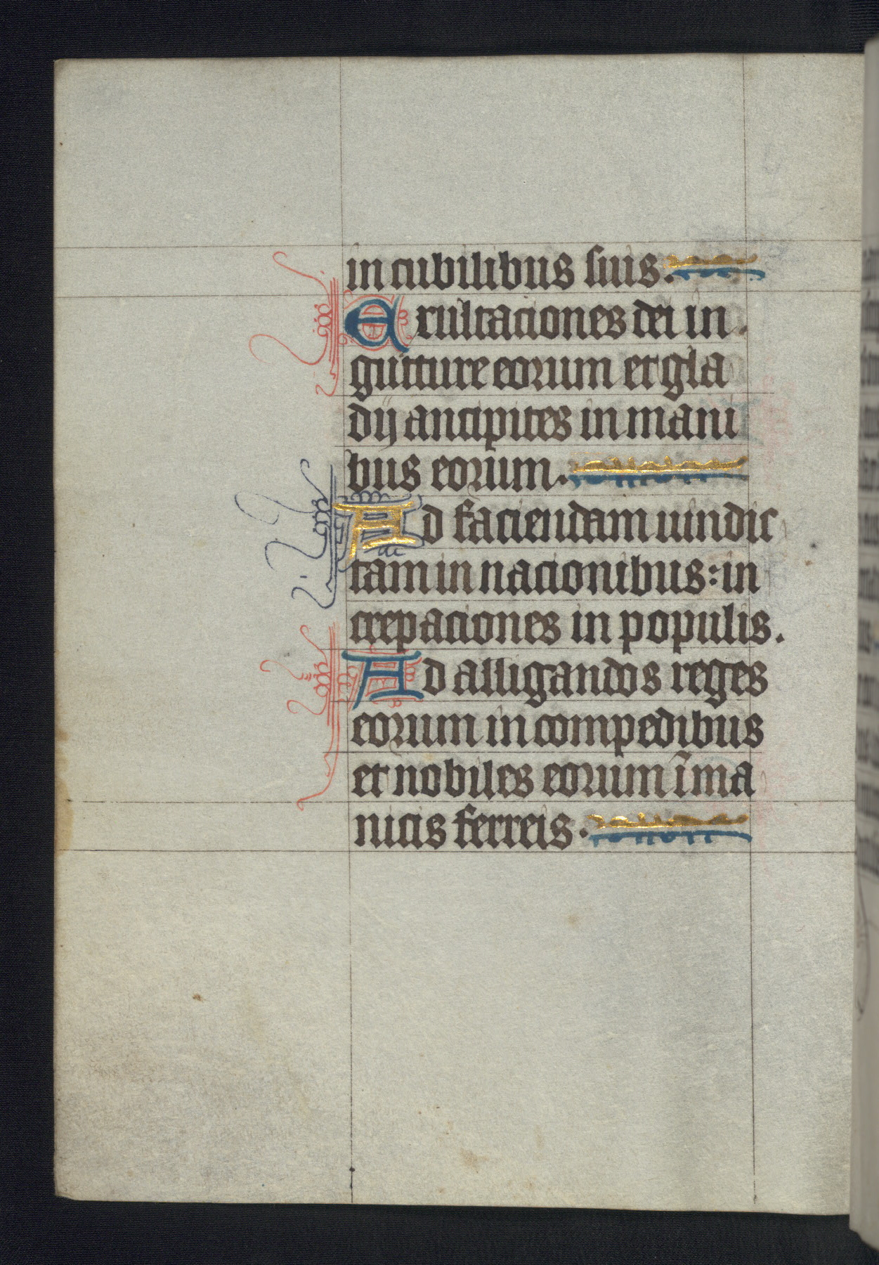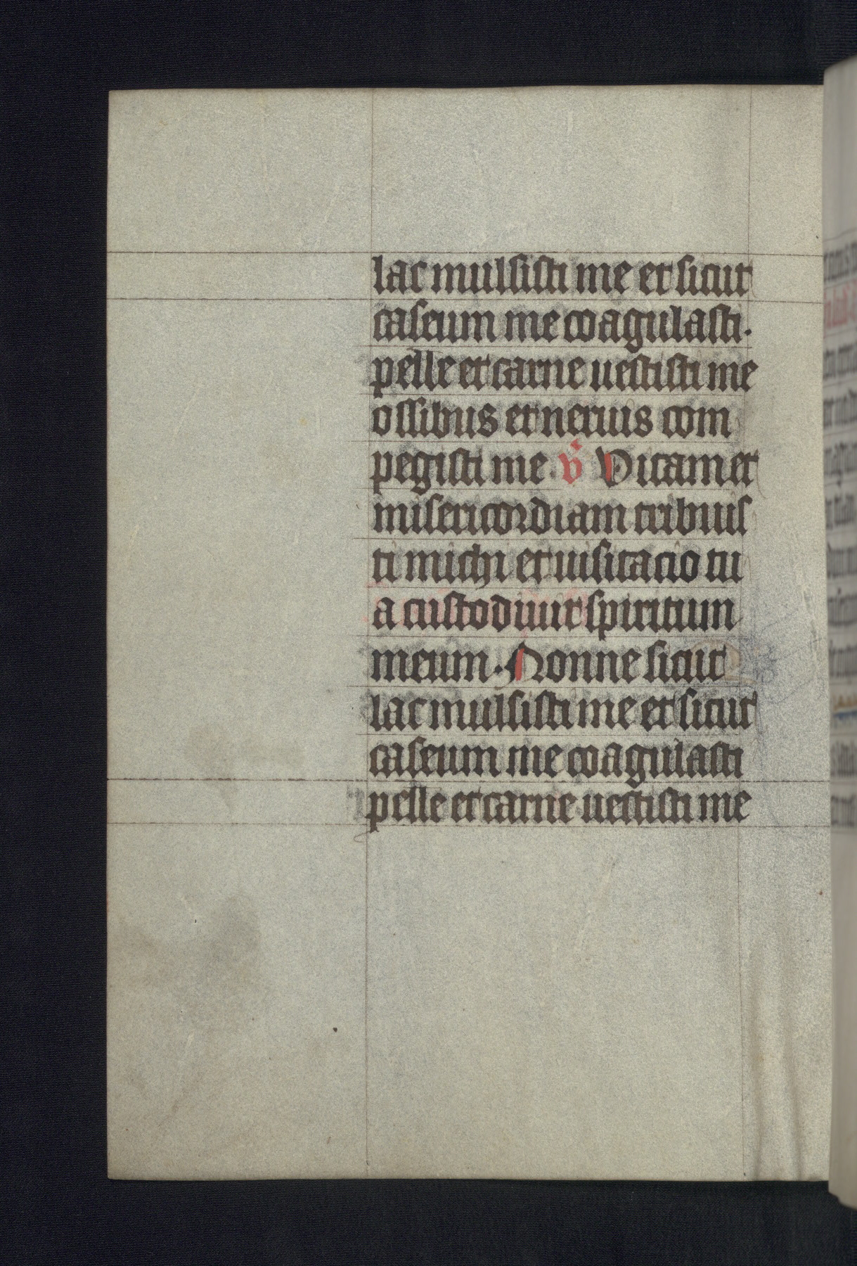 This Book of Hours was named the Doffinnes Hours after Franchoise de Doffinnes, who owned the book in the late sixteenth century and whose family’s subsequent history remains chronicled on the book’s final folios. However, the manuscript was originally made in the first quarter of the fifteenth century, probably for a married couple, who were originally represented kneeling with scrolls and their coats of arms in the margins, flanking a full-page miniature of the Crucifixion (fol. 72v), but whose figures and arms were later erased and overpainted with white. The manuscript contains both Latin and Dutch texts, supplemented by twelve full-page miniatures, the work of the Master of Walters 185. The manuscript also contains twelve pen-and-ink decorated initials in the calendar, some with grotesque faces, and letter "G" descenders throughout the book that can be attributed to the scribe Johannes de Malborch. The book’s original Dutch provenance is indicated by its calendar (for the Use of Utrecht) and its Hours of the Virgin, which follows predominantly the Use of the Windesheim Congregation. Prayers in Dutch were added to the end of the volume in the late fifteenth or early sixteenth century, and the book was subsequently rebound with its current cream-colored parchment binding of the seventeenth or eighteenth century.