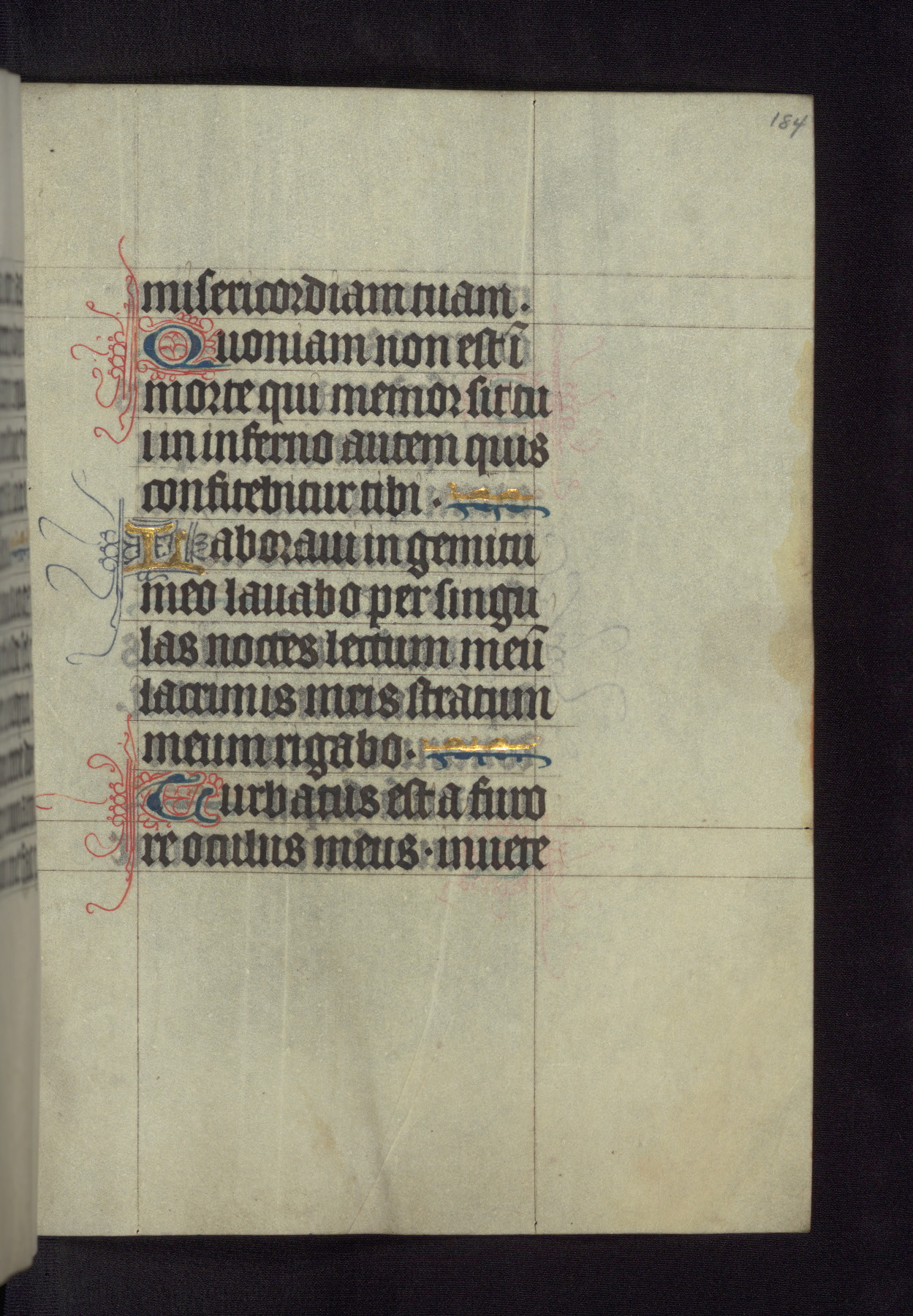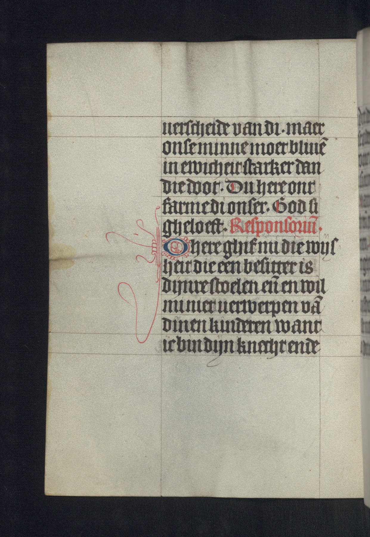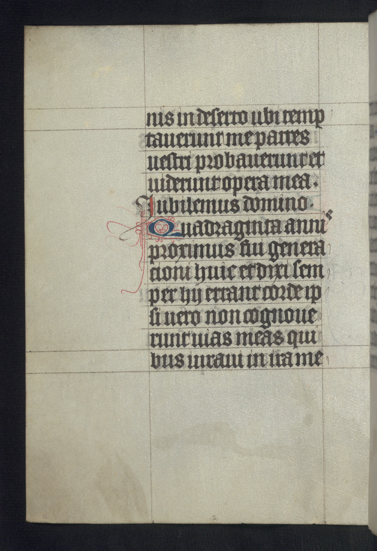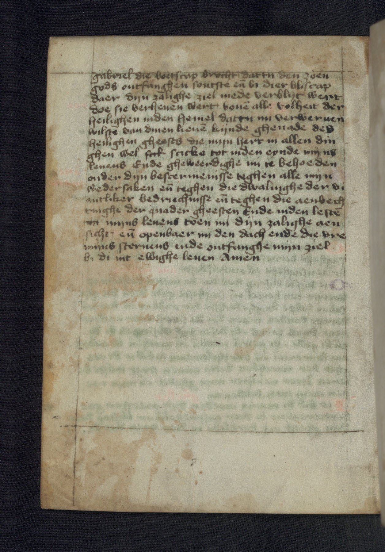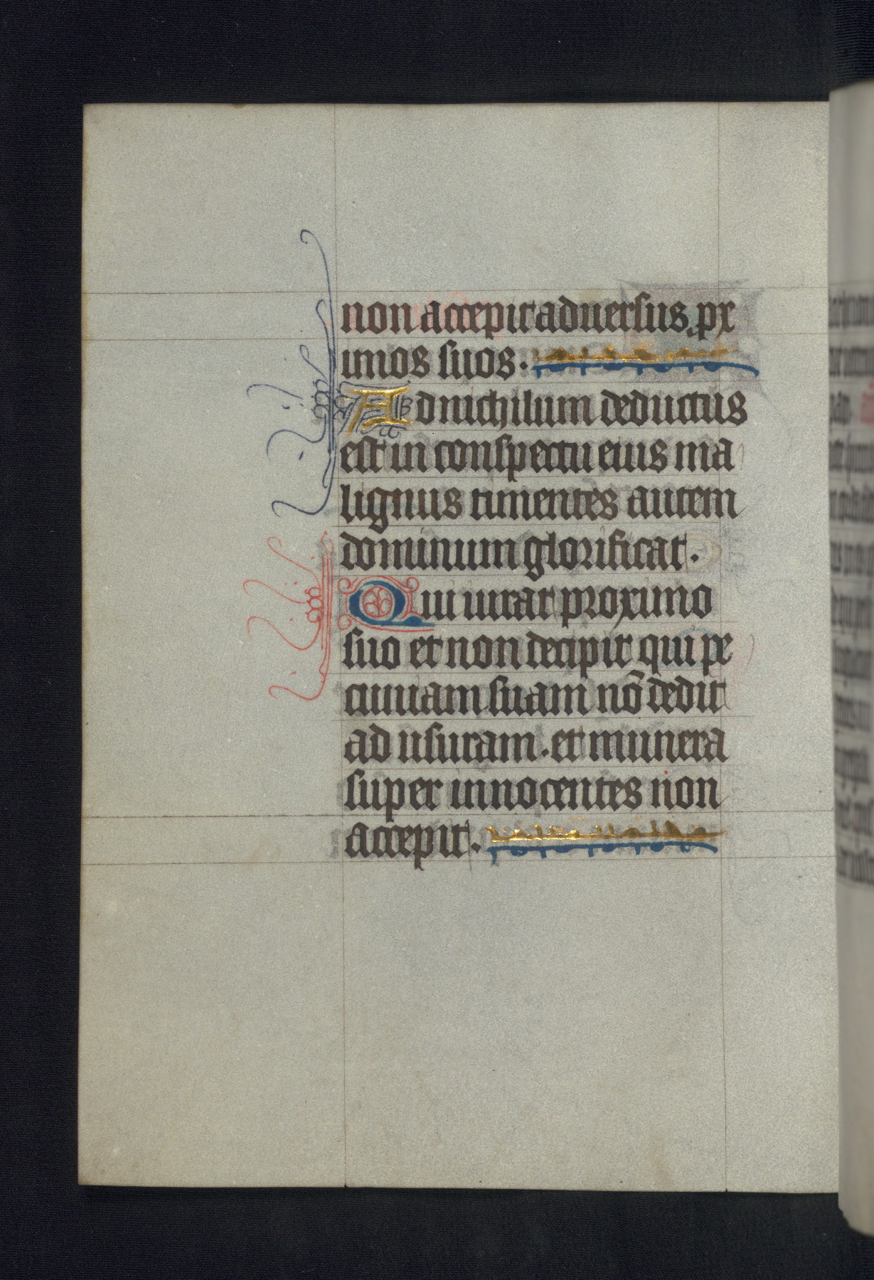This Book of Hours was named the Doffinnes Hours after Franchoise de Doffinnes, who owned the book in the late sixteenth century and whose family’s subsequent history remains chronicled on the book’s final folios. However, the manuscript was originally made in the first quarter of the fifteenth century, probably for a married couple, who were originally represented kneeling with scrolls and their coats of arms in the margins, flanking a full-page miniature of the Crucifixion (fol. 72v), but whose figures and arms were later erased and overpainted with white. The manuscript contains both Latin and Dutch texts, supplemented by twelve full-page miniatures, the work of the Master of Walters 185. The manuscript also contains twelve pen-and-ink decorated initials in the calendar, some with grotesque faces, and letter "G" descenders throughout the book that can be attributed to the scribe Johannes de Malborch. The book’s original Dutch provenance is indicated by its calendar (for the Use of Utrecht) and its Hours of the Virgin, which follows predominantly the Use of the Windesheim Congregation. Prayers in Dutch were added to the end of the volume in the late fifteenth or early sixteenth century, and the book was subsequently rebound with its current cream-colored parchment binding of the seventeenth or eighteenth century.