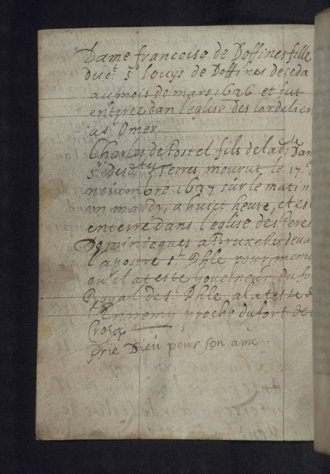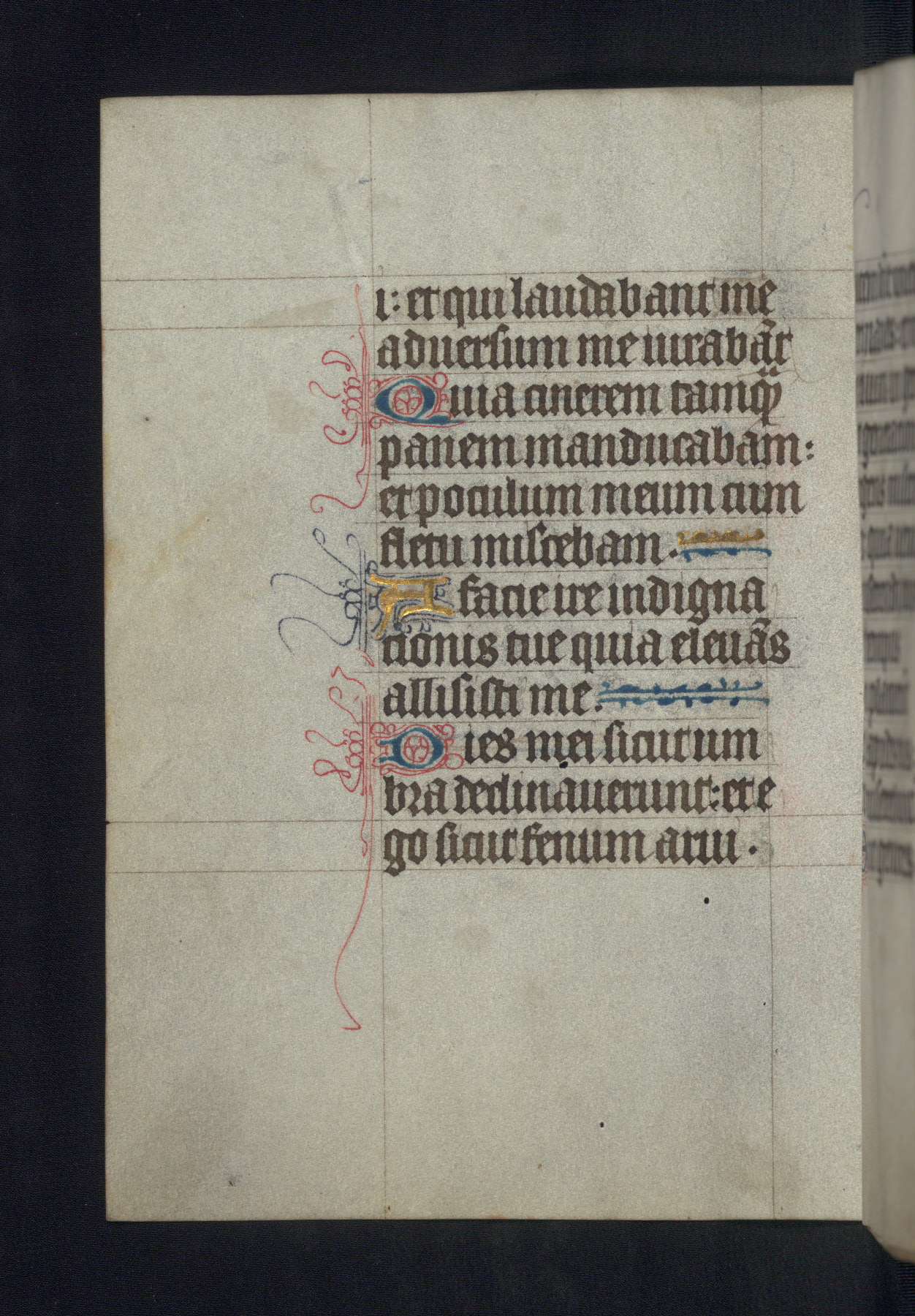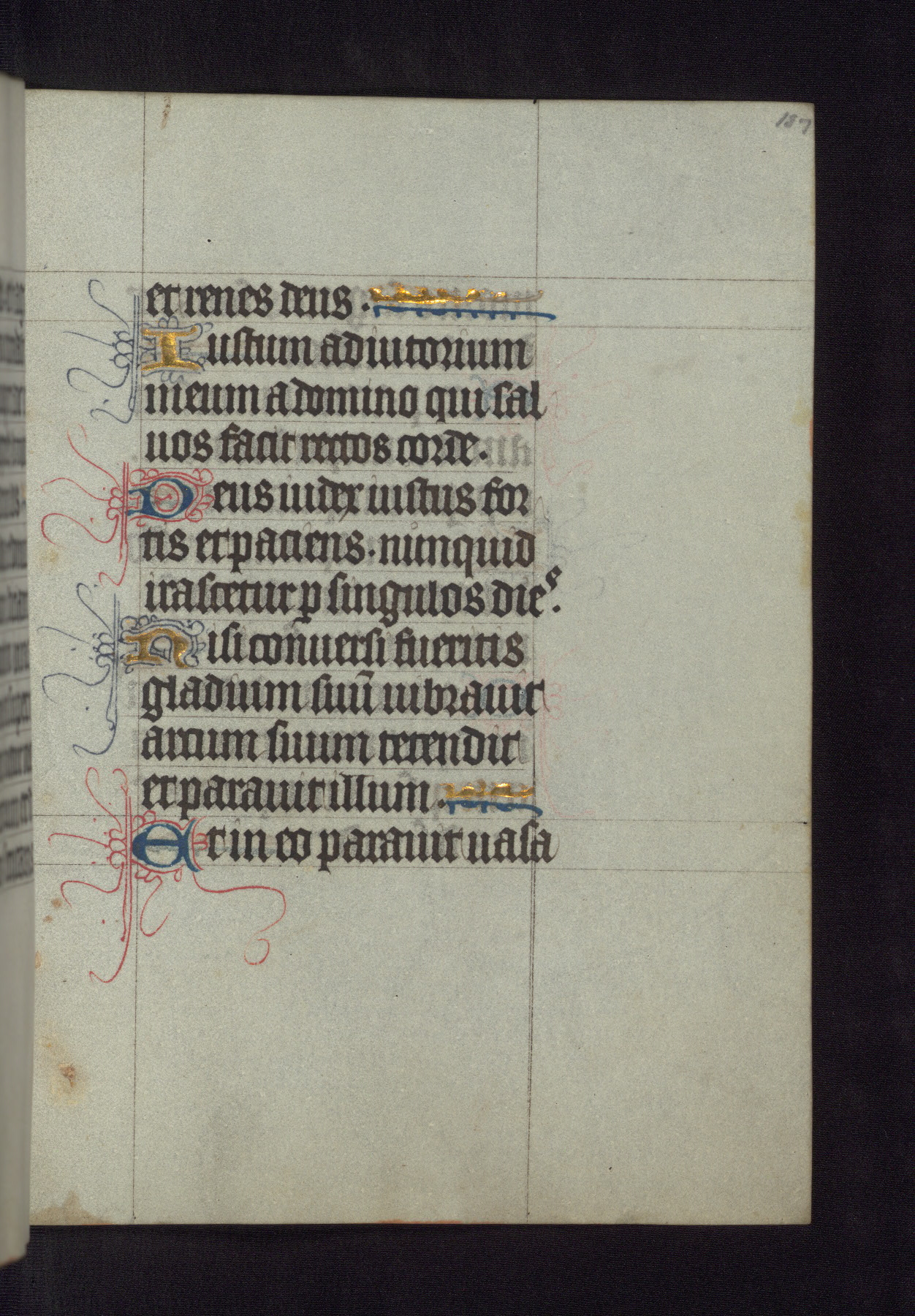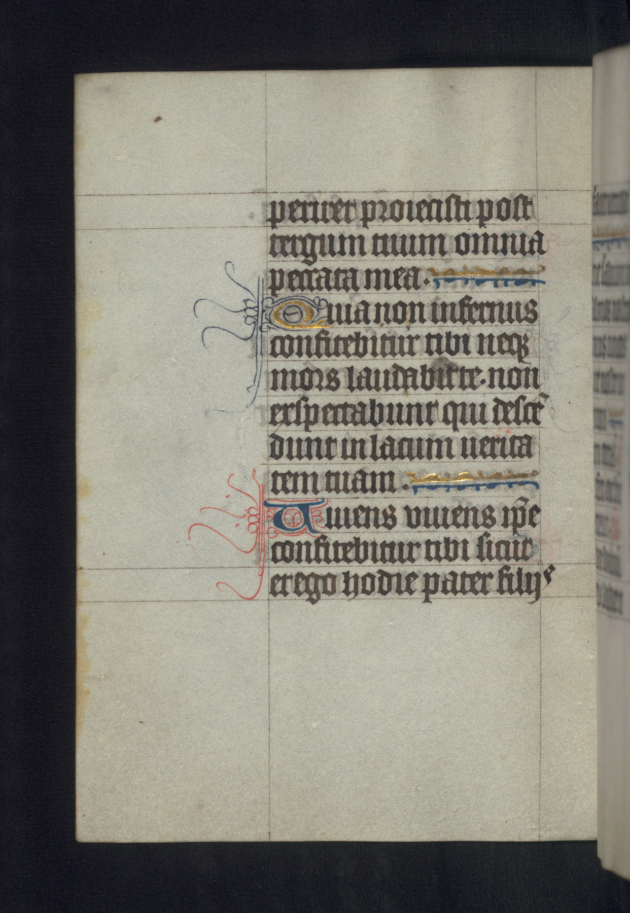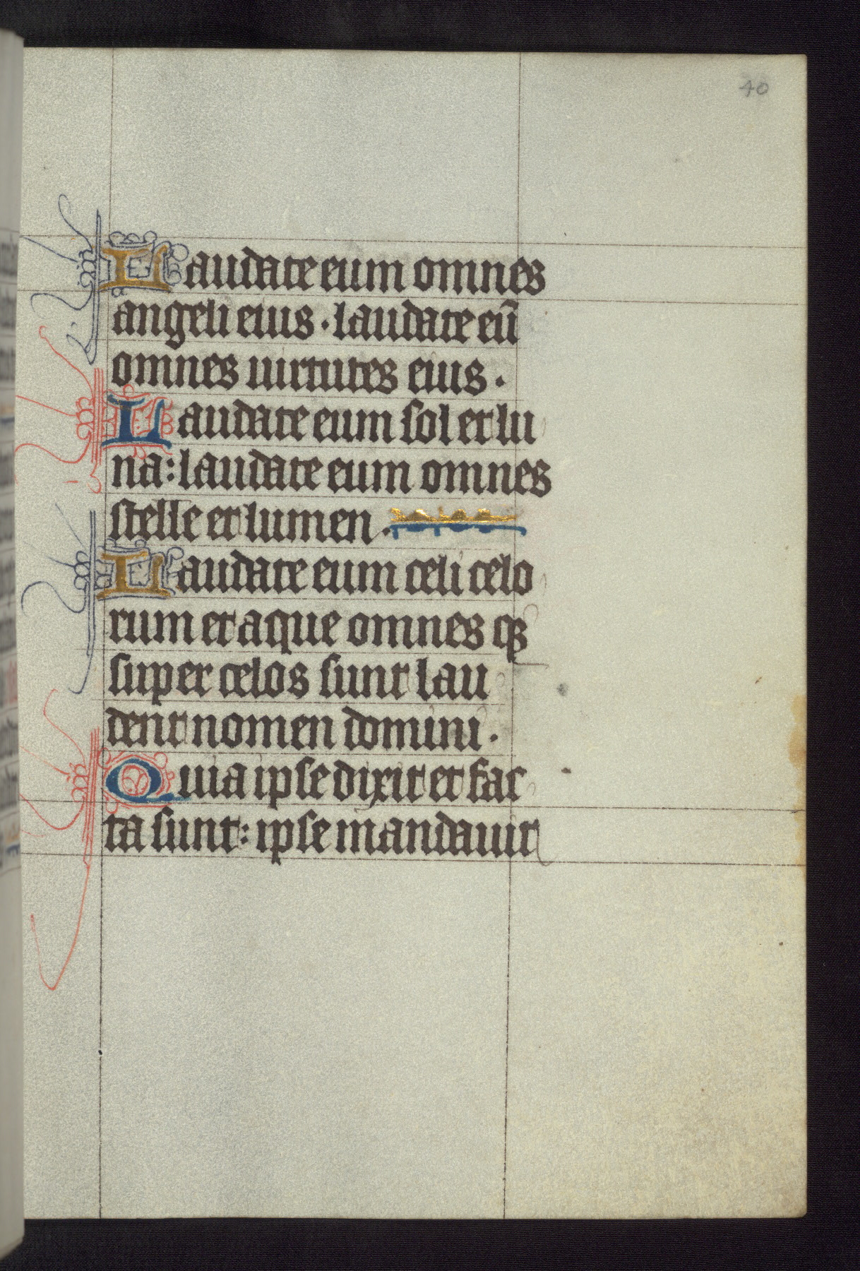 This Book of Hours was named the Doffinnes Hours after Franchoise de Doffinnes, who owned the book in the late sixteenth century and whose family’s subsequent history remains chronicled on the book’s final folios. However, the manuscript was originally made in the first quarter of the fifteenth century, probably for a married couple, who were originally represented kneeling with scrolls and their coats of arms in the margins, flanking a full-page miniature of the Crucifixion (fol. 72v), but whose figures and arms were later erased and overpainted with white. The manuscript contains both Latin and Dutch texts, supplemented by twelve full-page miniatures, the work of the Master of Walters 185. The manuscript also contains twelve pen-and-ink decorated initials in the calendar, some with grotesque faces, and letter "G" descenders throughout the book that can be attributed to the scribe Johannes de Malborch. The book’s original Dutch provenance is indicated by its calendar (for the Use of Utrecht) and its Hours of the Virgin, which follows predominantly the Use of the Windesheim Congregation. Prayers in Dutch were added to the end of the volume in the late fifteenth or early sixteenth century, and the book was subsequently rebound with its current cream-colored parchment binding of the seventeenth or eighteenth century.