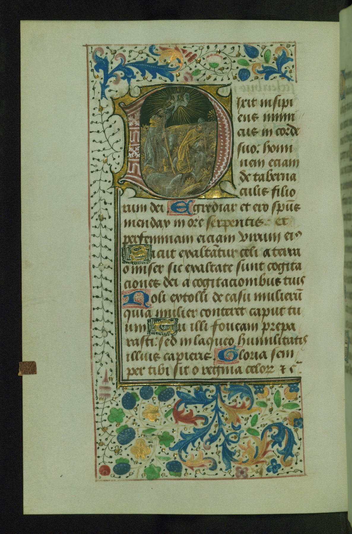 - Title: Initial "D" with the Annunciation to the Shepherds