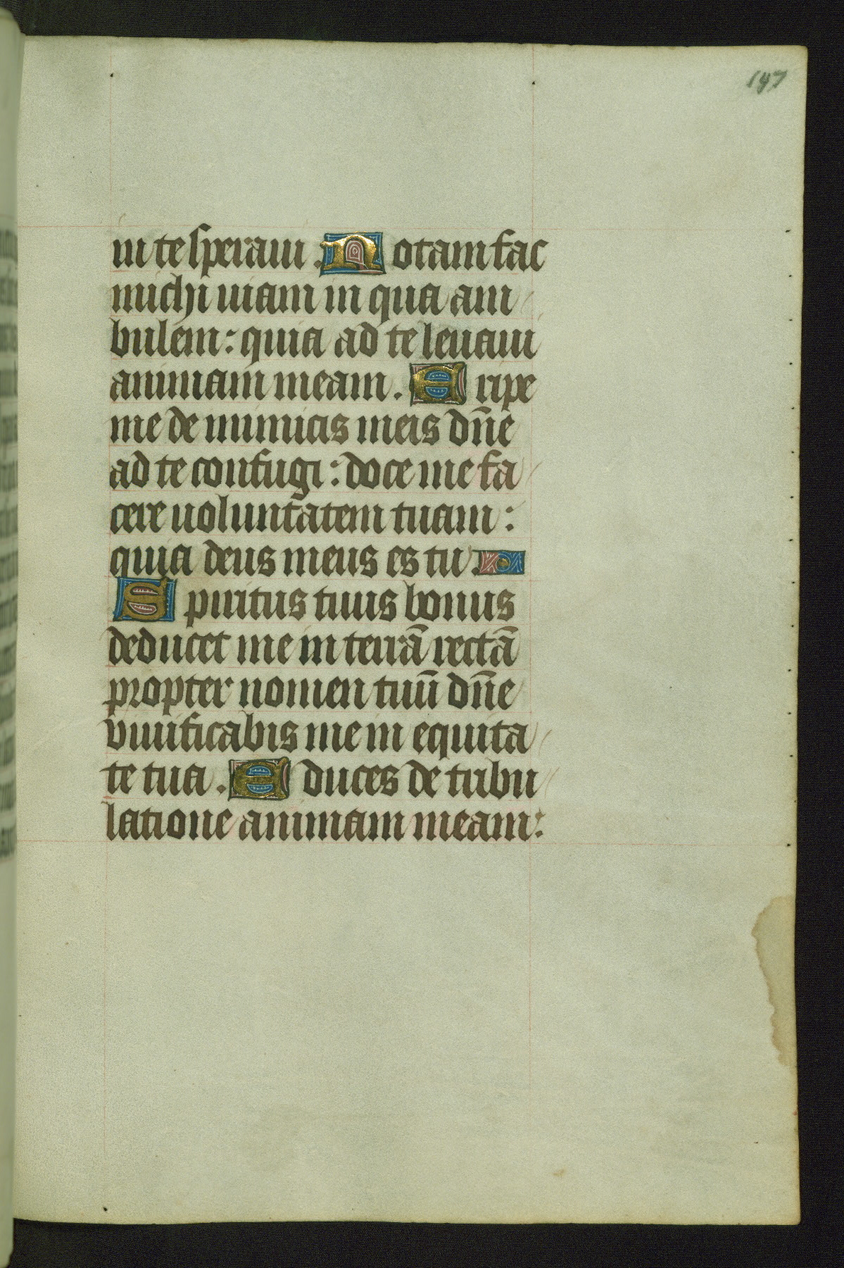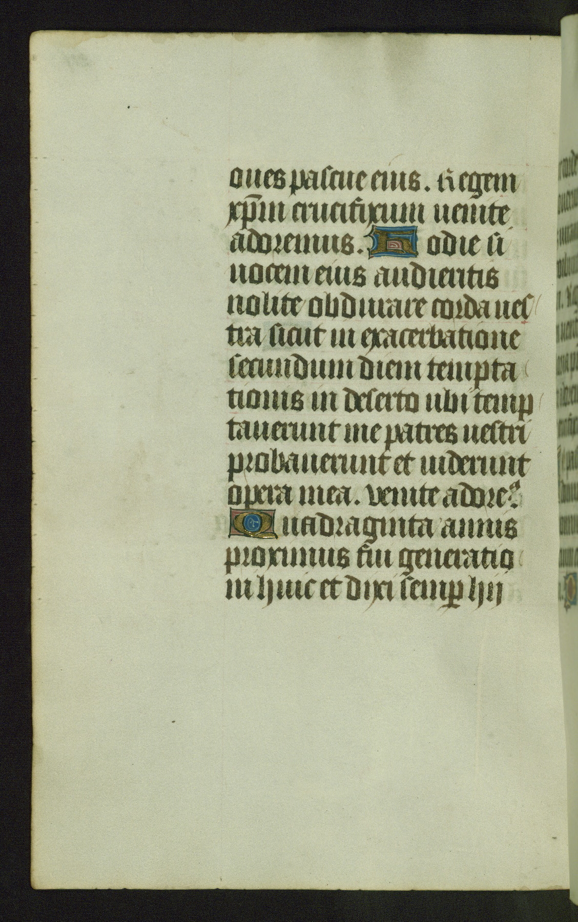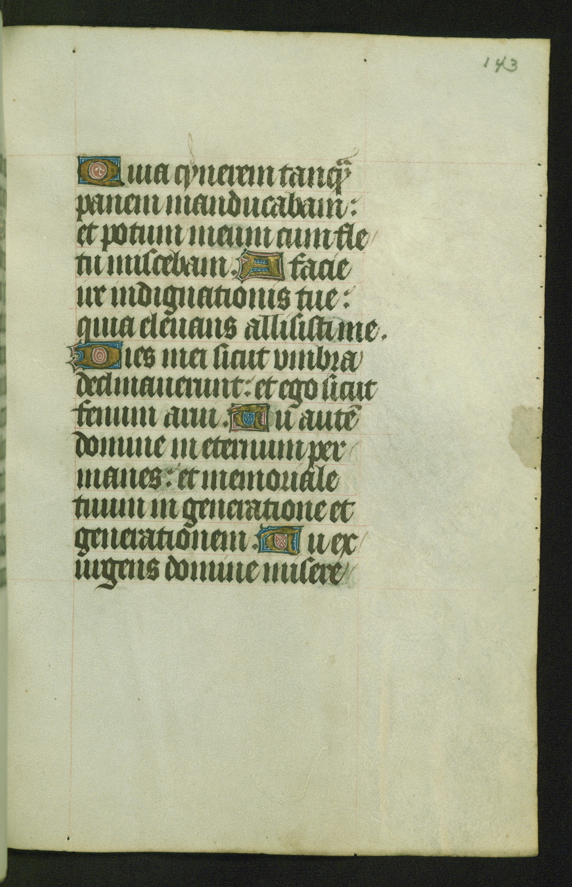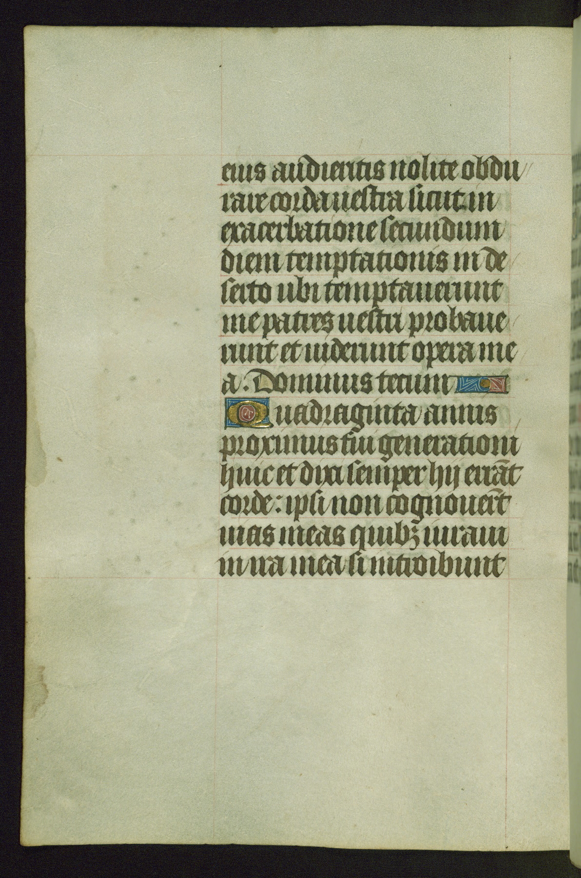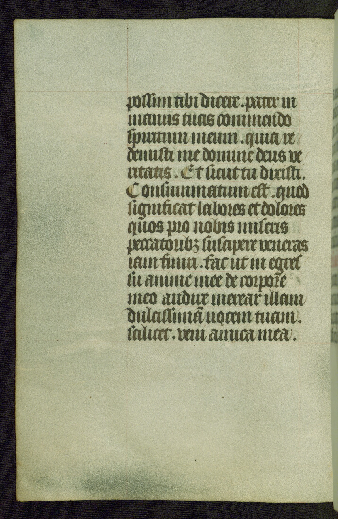 Completed for use of Cambrai, ca. 1450-60, this sizable Book of Hours is comprised of 265 folios, with two full-page miniatures (inserted) and thirteen historiated initials. Perhaps the focus on prayer rather than decoration was due to the presumed first owner, who was established in Mons and was associated with a Benedictine nunnery (dedicated to Sainte Waudry). Some Franciscan sympathies are indicated in the litany (fol. 147v), evinced by a citation of Bernardinus of Siena, Francis, and Clara.