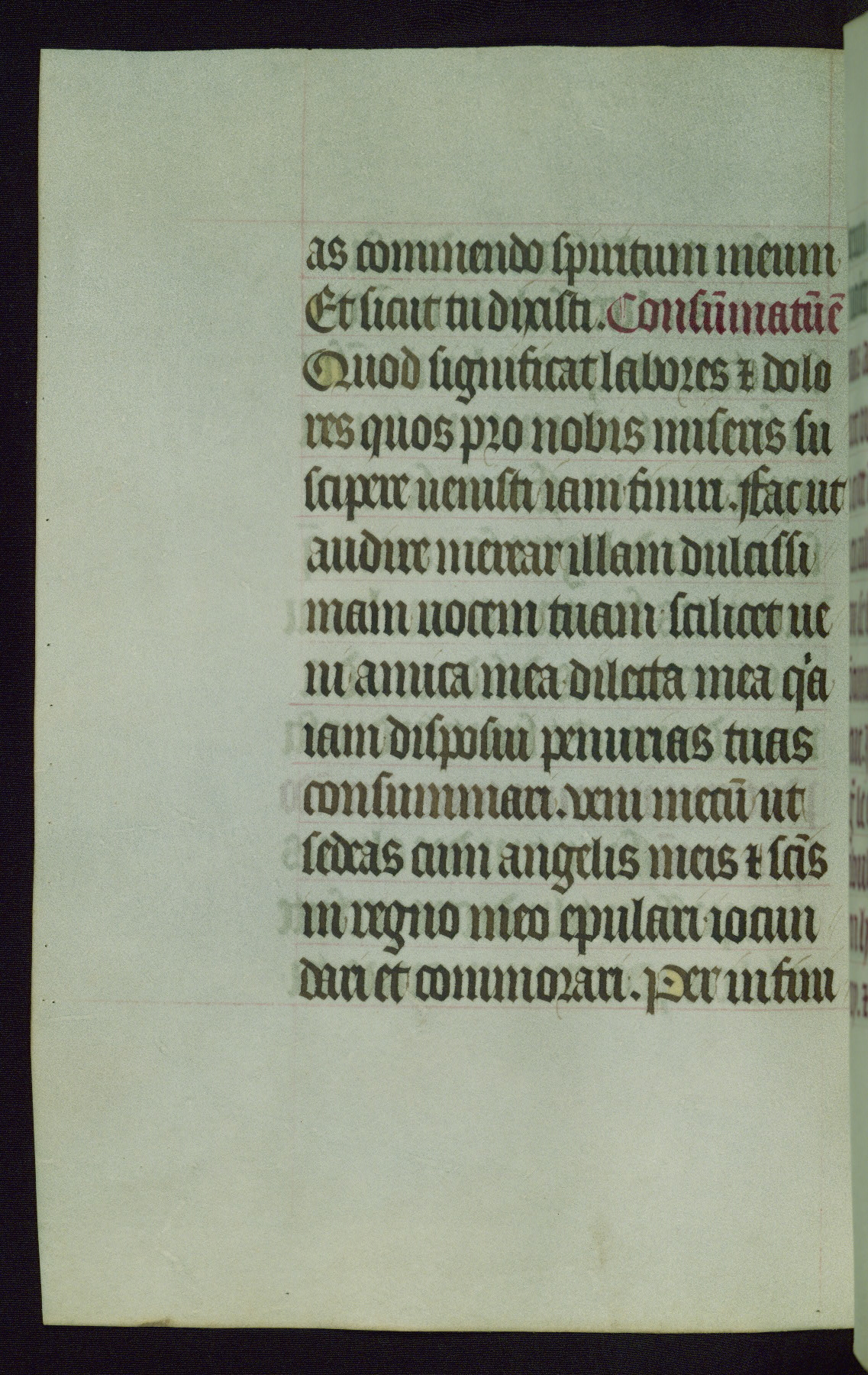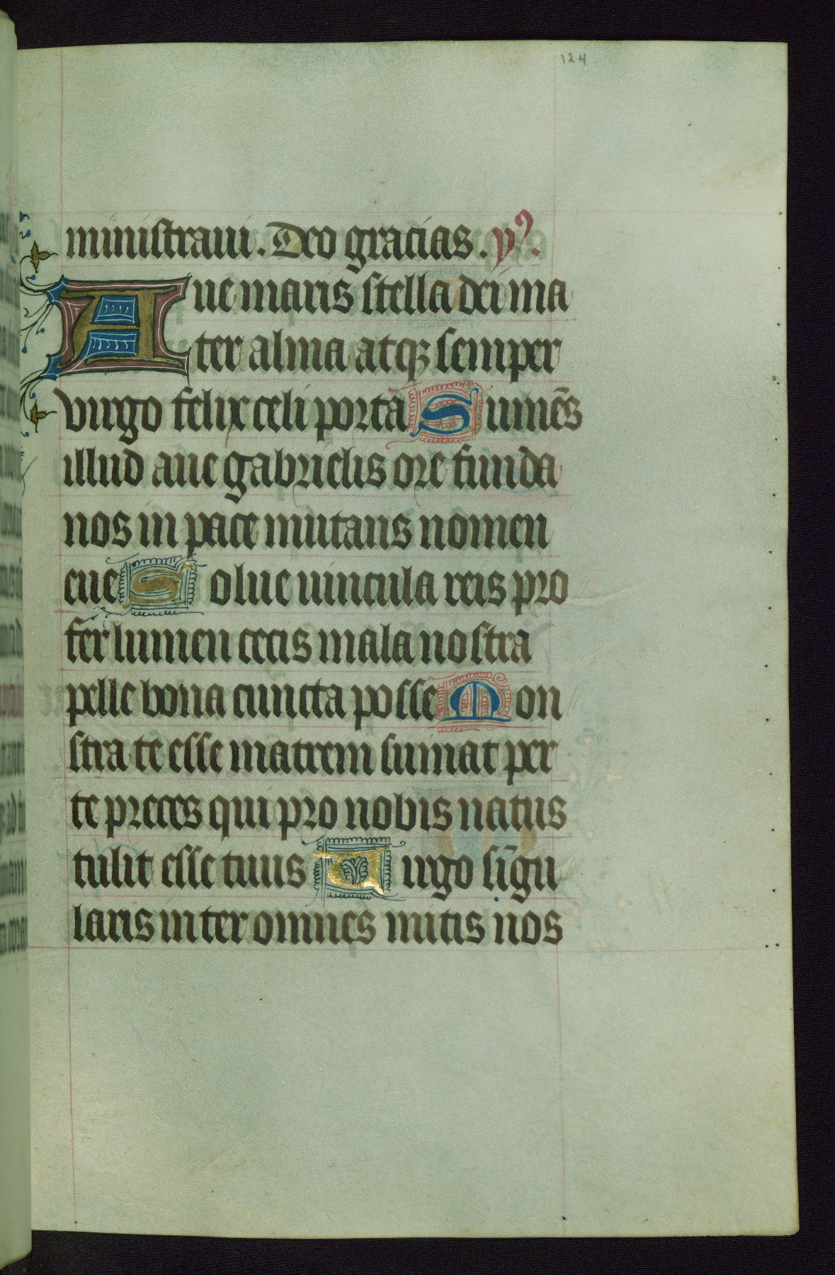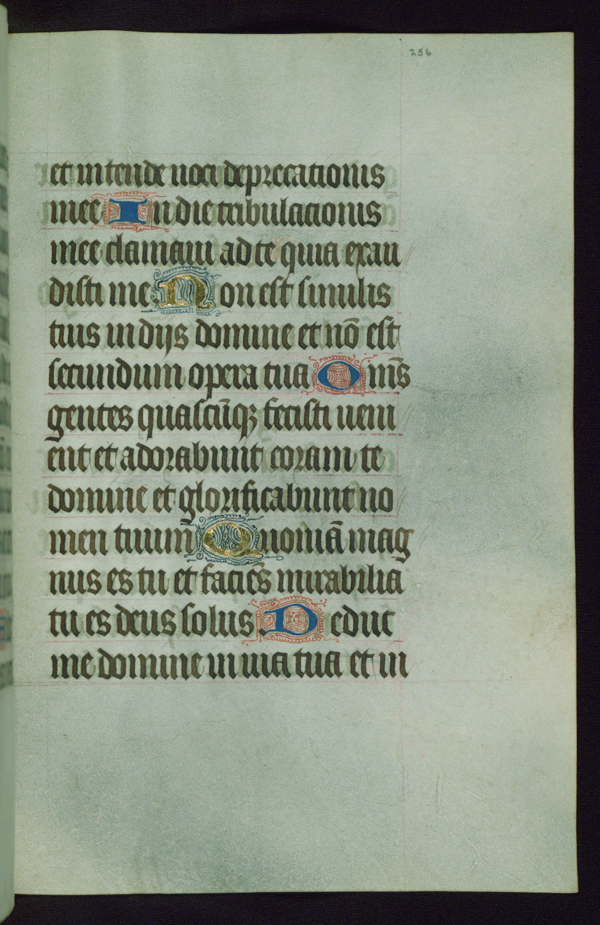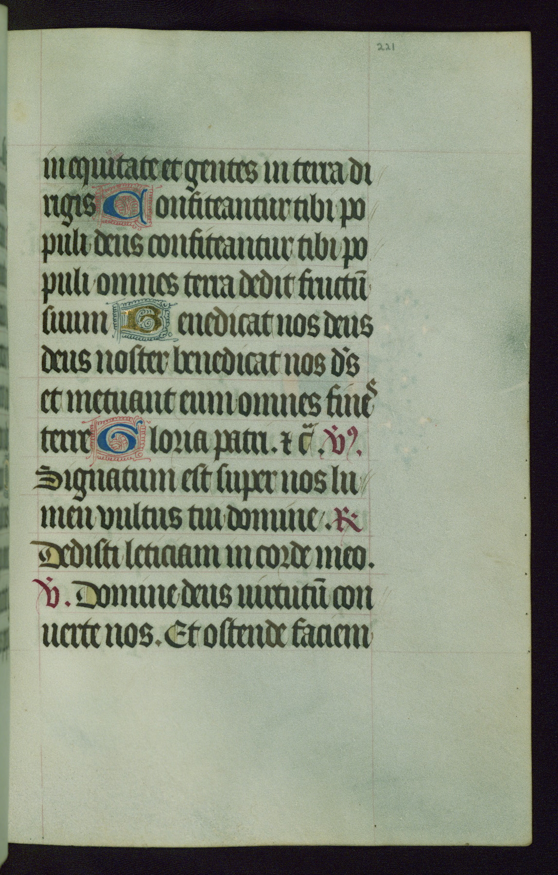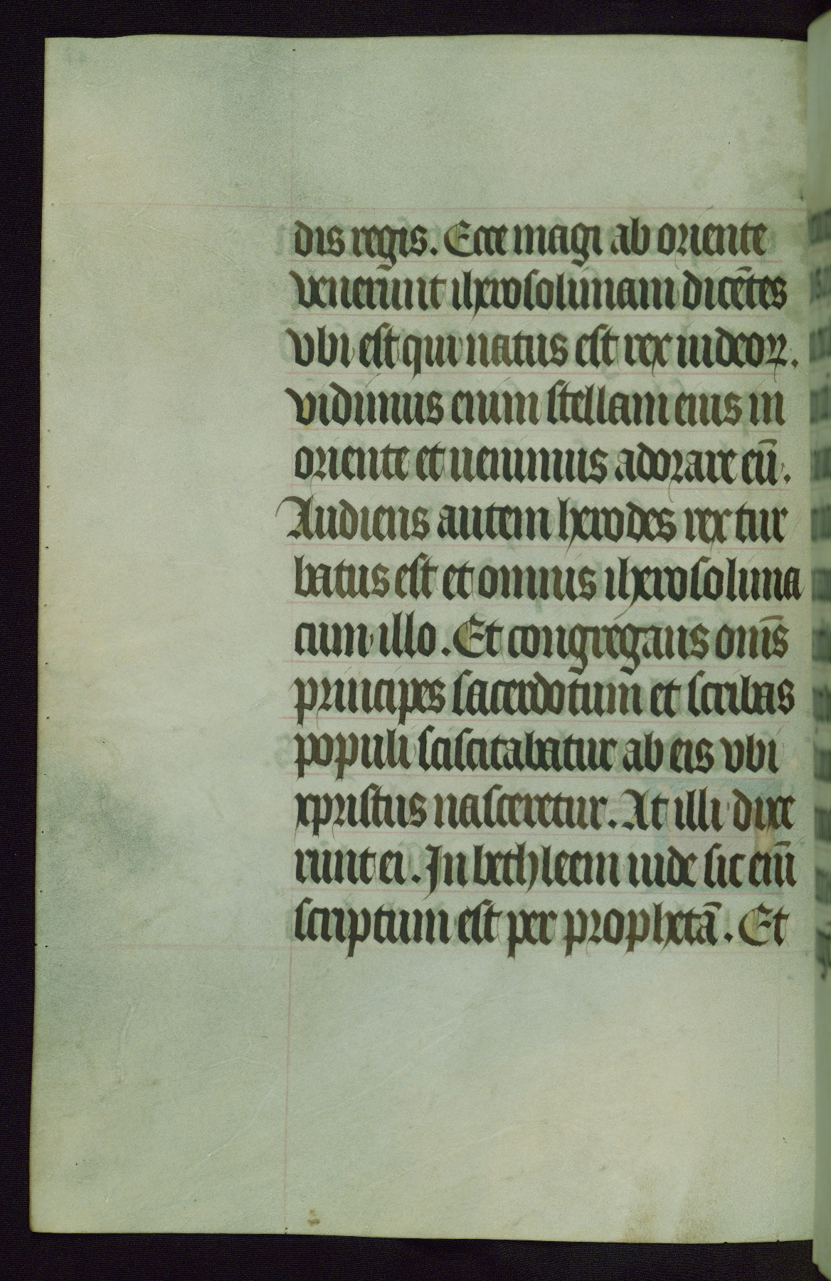 This Book of Hours, ca. 1460, was completed for use of Rome and illuminated under the influence, if not the direct participation, of Willem Vrelant. There remain twenty-two extant marginal calendar illustrations, thirteen extant full-page miniatures (many of which are paired with opening suffrages, perhaps suggesting a certain amount of significance to the owner), and one historiated initial. The contemporary binding, signed Livinus Stuaert, is dated 1477 and is most likely of Bruges or Ghent origin. It is thought that the first owner was French due to the French headings throughout and prominent fleur-de-lis figurations decorating the binding. Further, the first owner was likely female, suggested by the ways in which the book was structured to facilitate legibility. This is evinced by the large size of the script and the lack of abbreviations. While much of the text is standard, there remains evidence of personal significance and preference. This is seen in the chosen illuminations for those sections that are most significant to the owner. Most illuminations are paired with the opening page of staple Hours; however, many are accompanied by individual suffrages, constituting a large portion of the beginning of the manuscript. Personal preference is also shown in those sections of text that stray from the standard. The devotional sequence of this manuscript is notable for its sheer length and diversity of prayers as well as its inclusion of a French prayer not of official liturgy (fols. 215r-219v). The first collection of three prayers is headed and written in French. The prayer is attributed to St. Augustine and is described to guarantee a transformation of tribulation into joy through Christ's mercy, but only if the suppliant recites the prayer for thirty consecutive days. While it is not uncommon for evidence of an owner's predilections to surface in a Book of Hours, the particularly divergent features of this book allow readers to glean an intimate view of the patron.