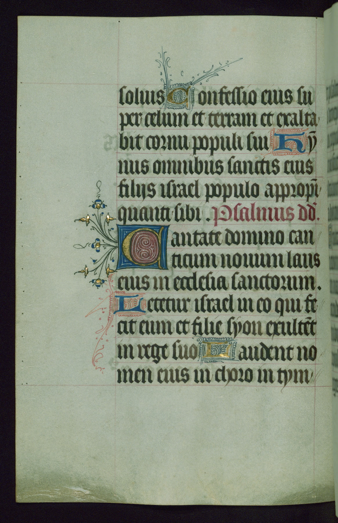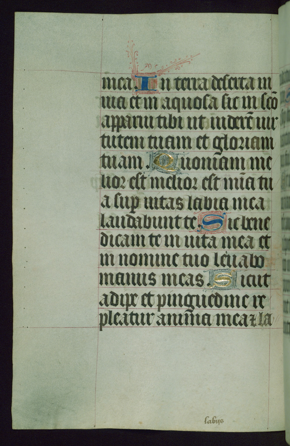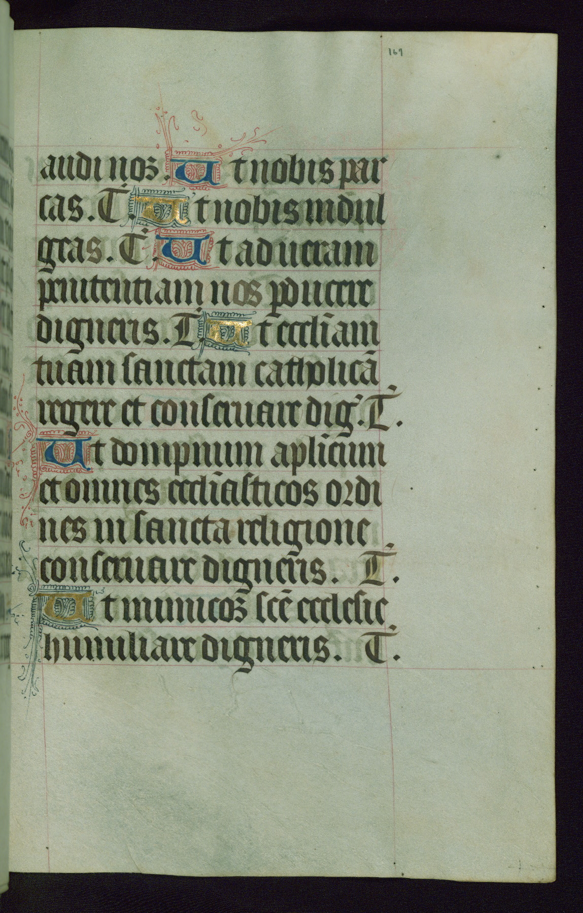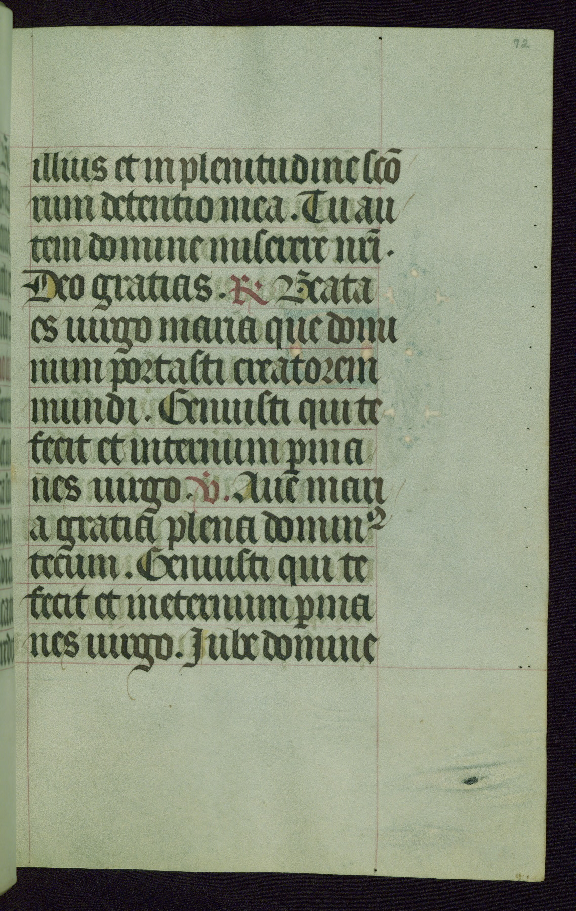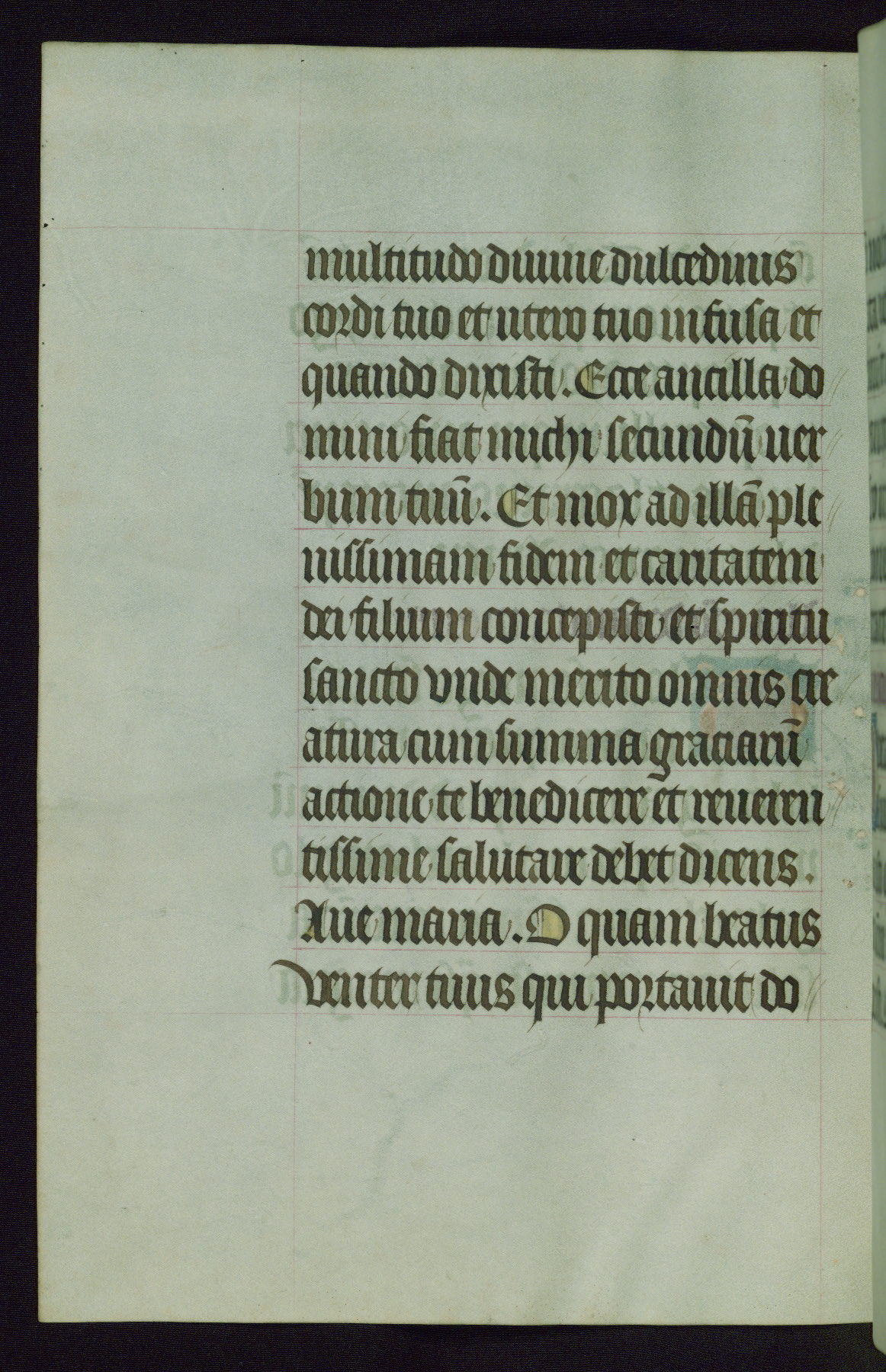 This Book of Hours, ca. 1460, was completed for use of Rome and illuminated under the influence, if not the direct participation, of Willem Vrelant. There remain twenty-two extant marginal calendar illustrations, thirteen extant full-page miniatures (many of which are paired with opening suffrages, perhaps suggesting a certain amount of significance to the owner), and one historiated initial. The contemporary binding, signed Livinus Stuaert, is dated 1477 and is most likely of Bruges or Ghent origin. It is thought that the first owner was French due to the French headings throughout and prominent fleur-de-lis figurations decorating the binding. Further, the first owner was likely female, suggested by the ways in which the book was structured to facilitate legibility. This is evinced by the large size of the script and the lack of abbreviations. While much of the text is standard, there remains evidence of personal significance and preference. This is seen in the chosen illuminations for those sections that are most significant to the owner. Most illuminations are paired with the opening page of staple Hours; however, many are accompanied by individual suffrages, constituting a large portion of the beginning of the manuscript. Personal preference is also shown in those sections of text that stray from the standard. The devotional sequence of this manuscript is notable for its sheer length and diversity of prayers as well as its inclusion of a French prayer not of official liturgy (fols. 215r-219v). The first collection of three prayers is headed and written in French. The prayer is attributed to St. Augustine and is described to guarantee a transformation of tribulation into joy through Christ's mercy, but only if the suppliant recites the prayer for thirty consecutive days. While it is not uncommon for evidence of an owner's predilections to surface in a Book of Hours, the particularly divergent features of this book allow readers to glean an intimate view of the patron.