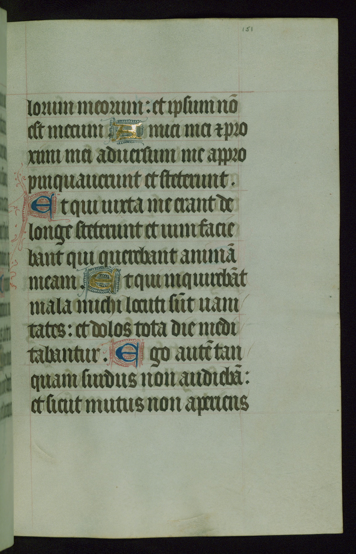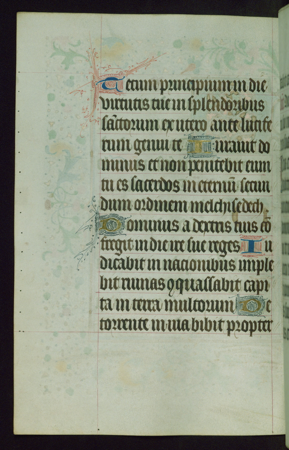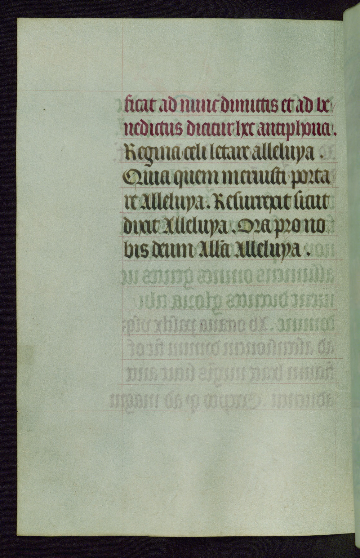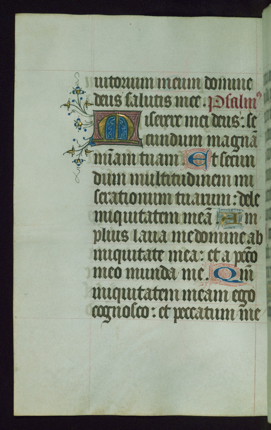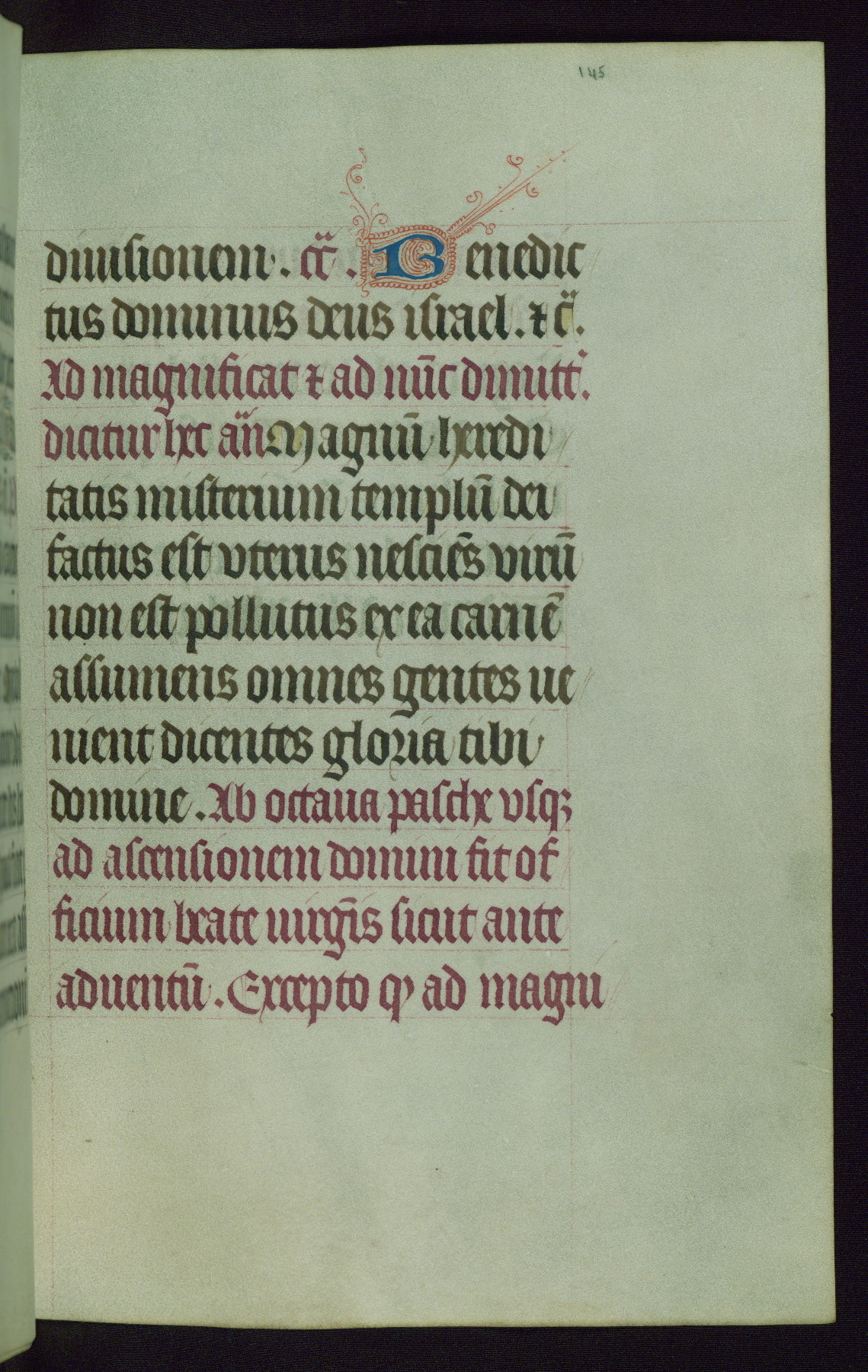 This Book of Hours, ca. 1460, was completed for use of Rome and illuminated under the influence, if not the direct participation, of Willem Vrelant. There remain twenty-two extant marginal calendar illustrations, thirteen extant full-page miniatures (many of which are paired with opening suffrages, perhaps suggesting a certain amount of significance to the owner), and one historiated initial. The contemporary binding, signed Livinus Stuaert, is dated 1477 and is most likely of Bruges or Ghent origin. It is thought that the first owner was French due to the French headings throughout and prominent fleur-de-lis figurations decorating the binding. Further, the first owner was likely female, suggested by the ways in which the book was structured to facilitate legibility. This is evinced by the large size of the script and the lack of abbreviations. While much of the text is standard, there remains evidence of personal significance and preference. This is seen in the chosen illuminations for those sections that are most significant to the owner. Most illuminations are paired with the opening page of staple Hours; however, many are accompanied by individual suffrages, constituting a large portion of the beginning of the manuscript. Personal preference is also shown in those sections of text that stray from the standard. The devotional sequence of this manuscript is notable for its sheer length and diversity of prayers as well as its inclusion of a French prayer not of official liturgy (fols. 215r-219v). The first collection of three prayers is headed and written in French. The prayer is attributed to St. Augustine and is described to guarantee a transformation of tribulation into joy through Christ's mercy, but only if the suppliant recites the prayer for thirty consecutive days. While it is not uncommon for evidence of an owner's predilections to surface in a Book of Hours, the particularly divergent features of this book allow readers to glean an intimate view of the patron.