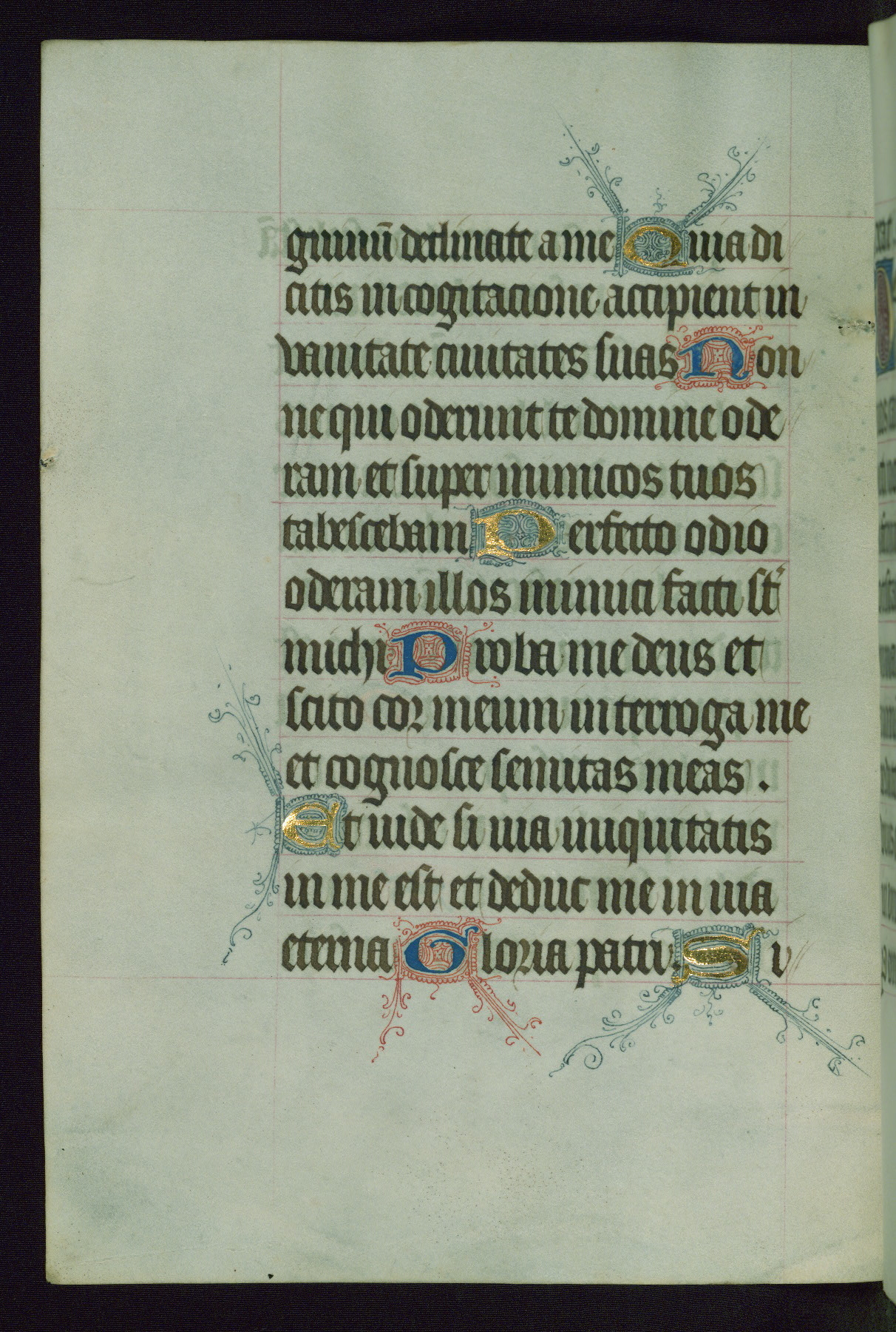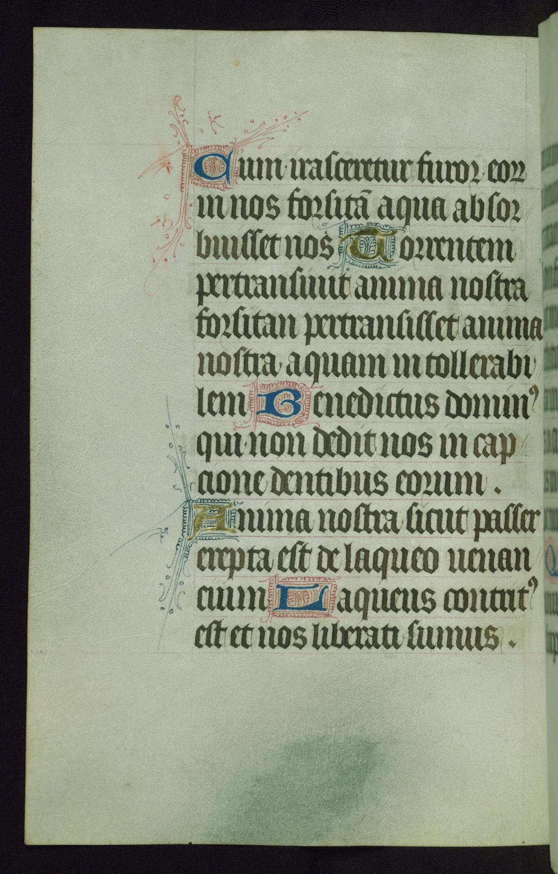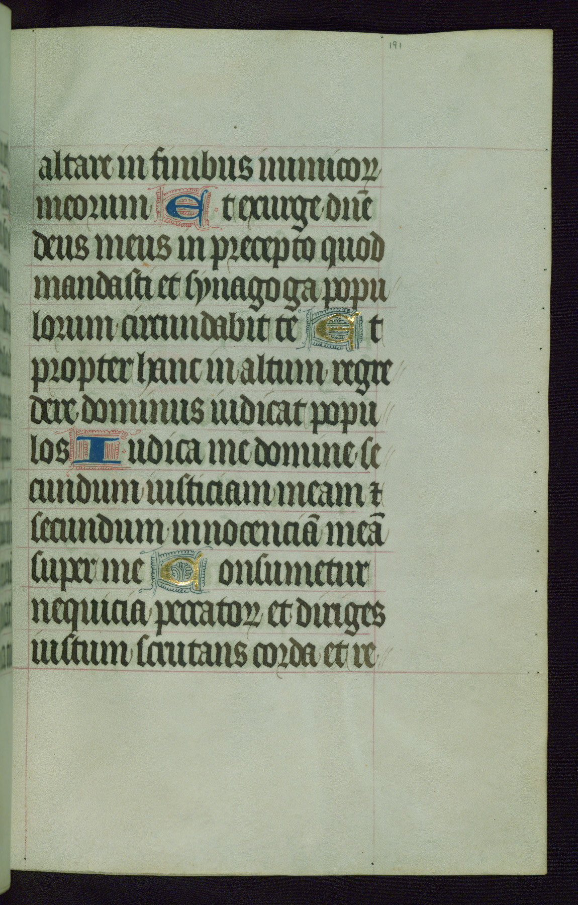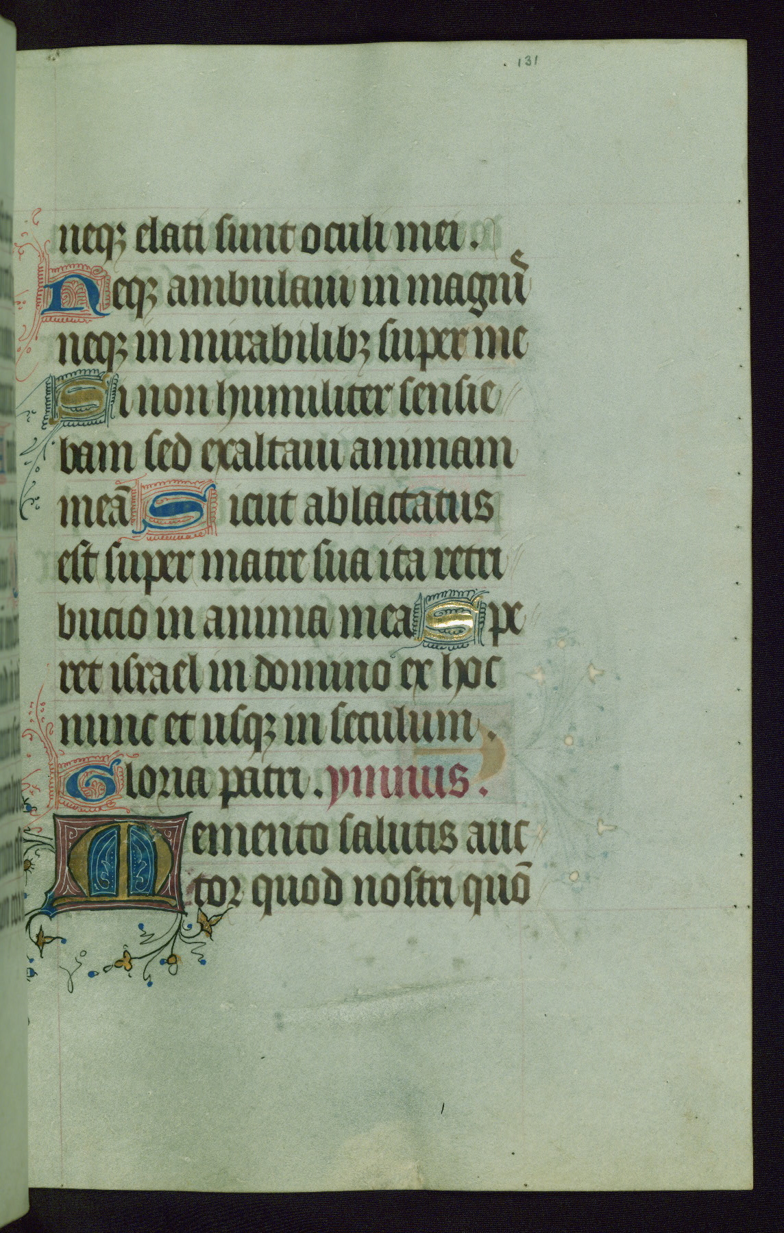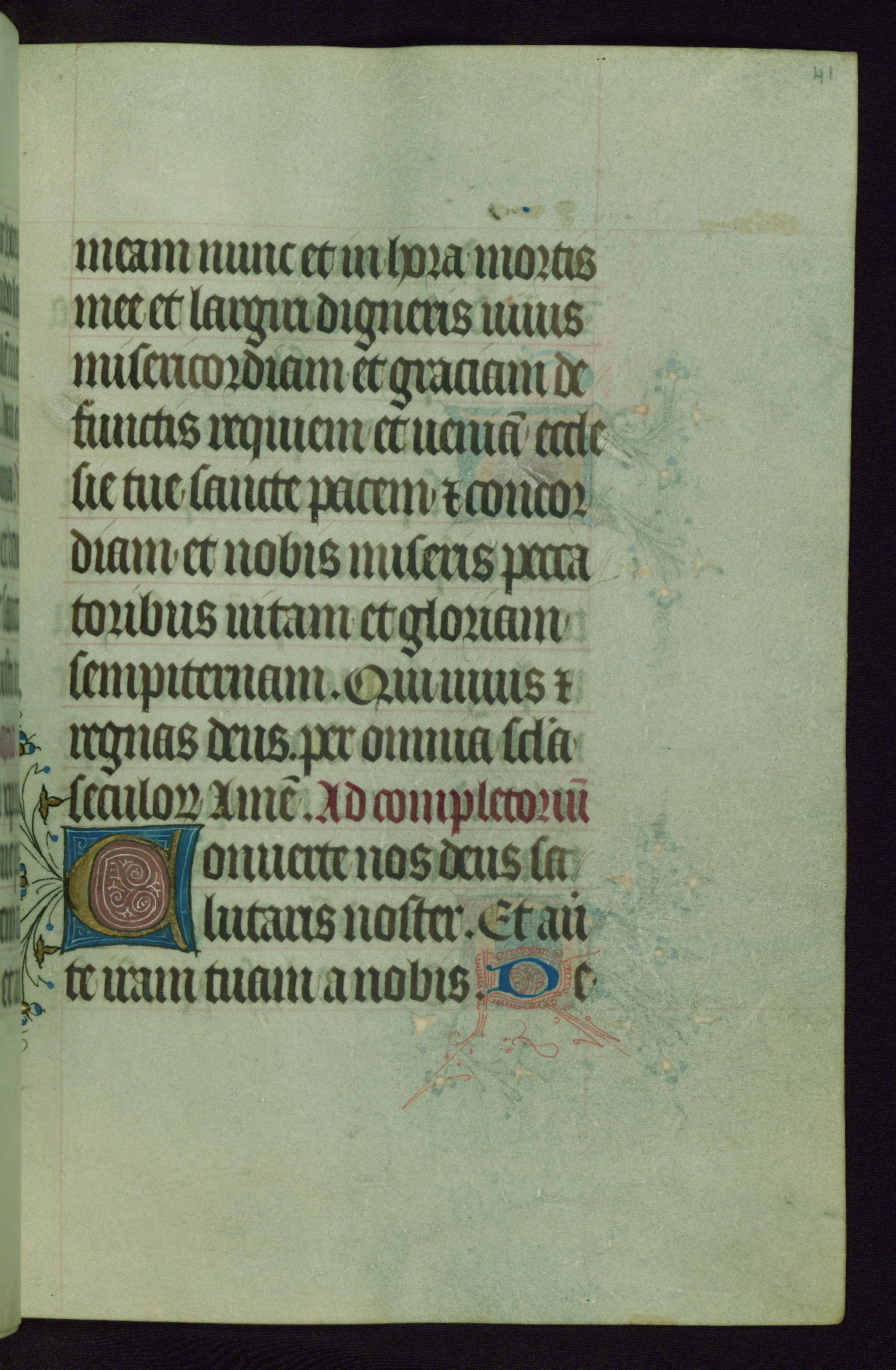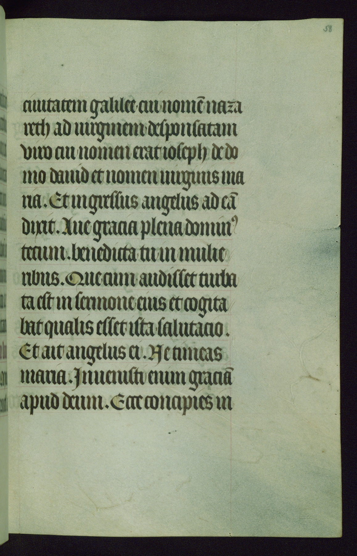 This Book of Hours, ca. 1460, was completed for use of Rome and illuminated under the influence, if not the direct participation, of Willem Vrelant. There remain twenty-two extant marginal calendar illustrations, thirteen extant full-page miniatures (many of which are paired with opening suffrages, perhaps suggesting a certain amount of significance to the owner), and one historiated initial. The contemporary binding, signed Livinus Stuaert, is dated 1477 and is most likely of Bruges or Ghent origin. It is thought that the first owner was French due to the French headings throughout and prominent fleur-de-lis figurations decorating the binding. Further, the first owner was likely female, suggested by the ways in which the book was structured to facilitate legibility. This is evinced by the large size of the script and the lack of abbreviations. While much of the text is standard, there remains evidence of personal significance and preference. This is seen in the chosen illuminations for those sections that are most significant to the owner. Most illuminations are paired with the opening page of staple Hours; however, many are accompanied by individual suffrages, constituting a large portion of the beginning of the manuscript. Personal preference is also shown in those sections of text that stray from the standard. The devotional sequence of this manuscript is notable for its sheer length and diversity of prayers as well as its inclusion of a French prayer not of official liturgy (fols. 215r-219v). The first collection of three prayers is headed and written in French. The prayer is attributed to St. Augustine and is described to guarantee a transformation of tribulation into joy through Christ's mercy, but only if the suppliant recites the prayer for thirty consecutive days. While it is not uncommon for evidence of an owner's predilections to surface in a Book of Hours, the particularly divergent features of this book allow readers to glean an intimate view of the patron.