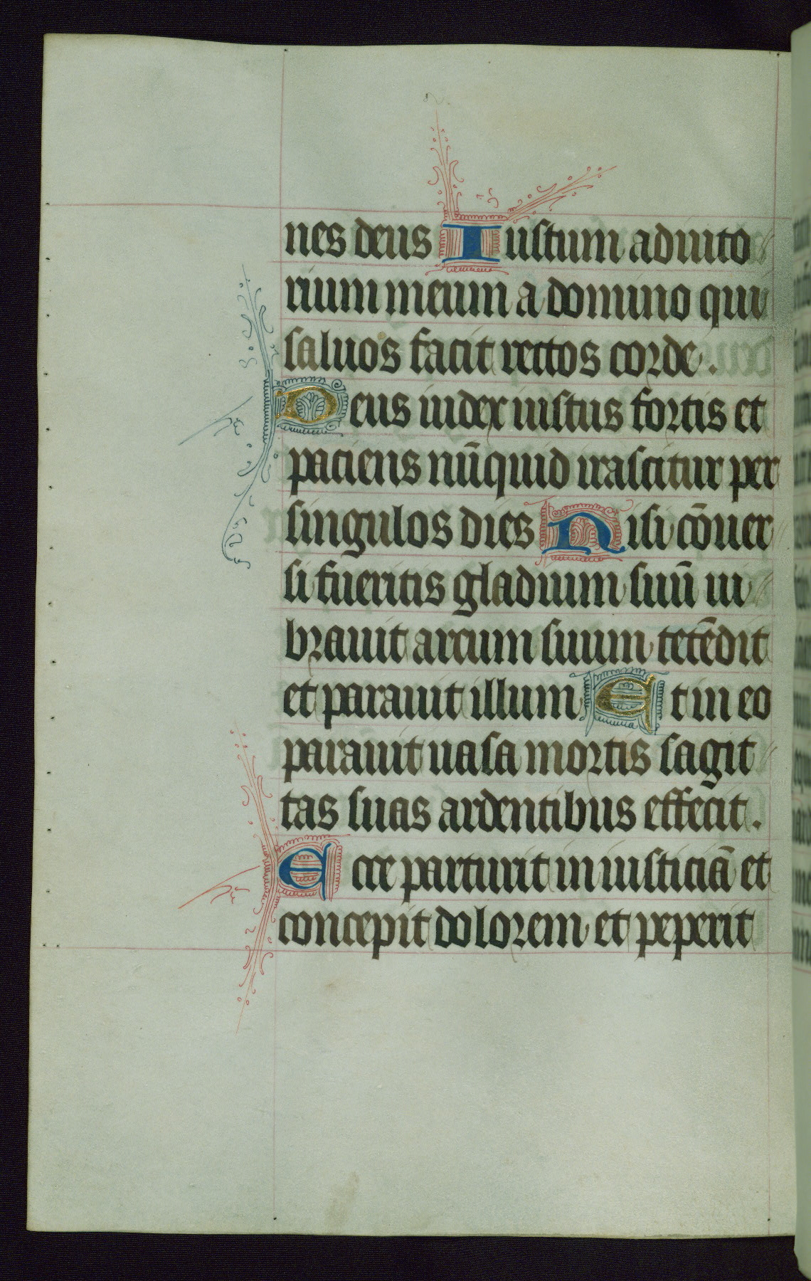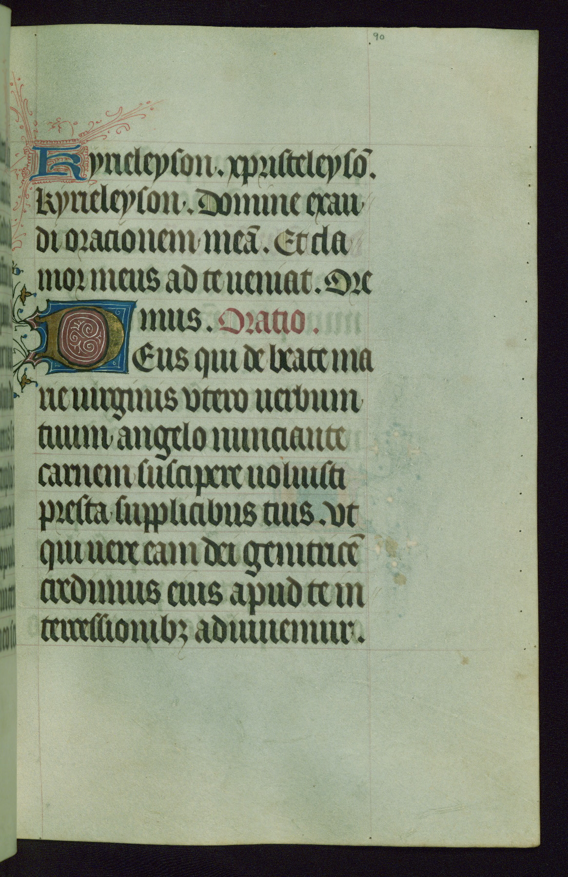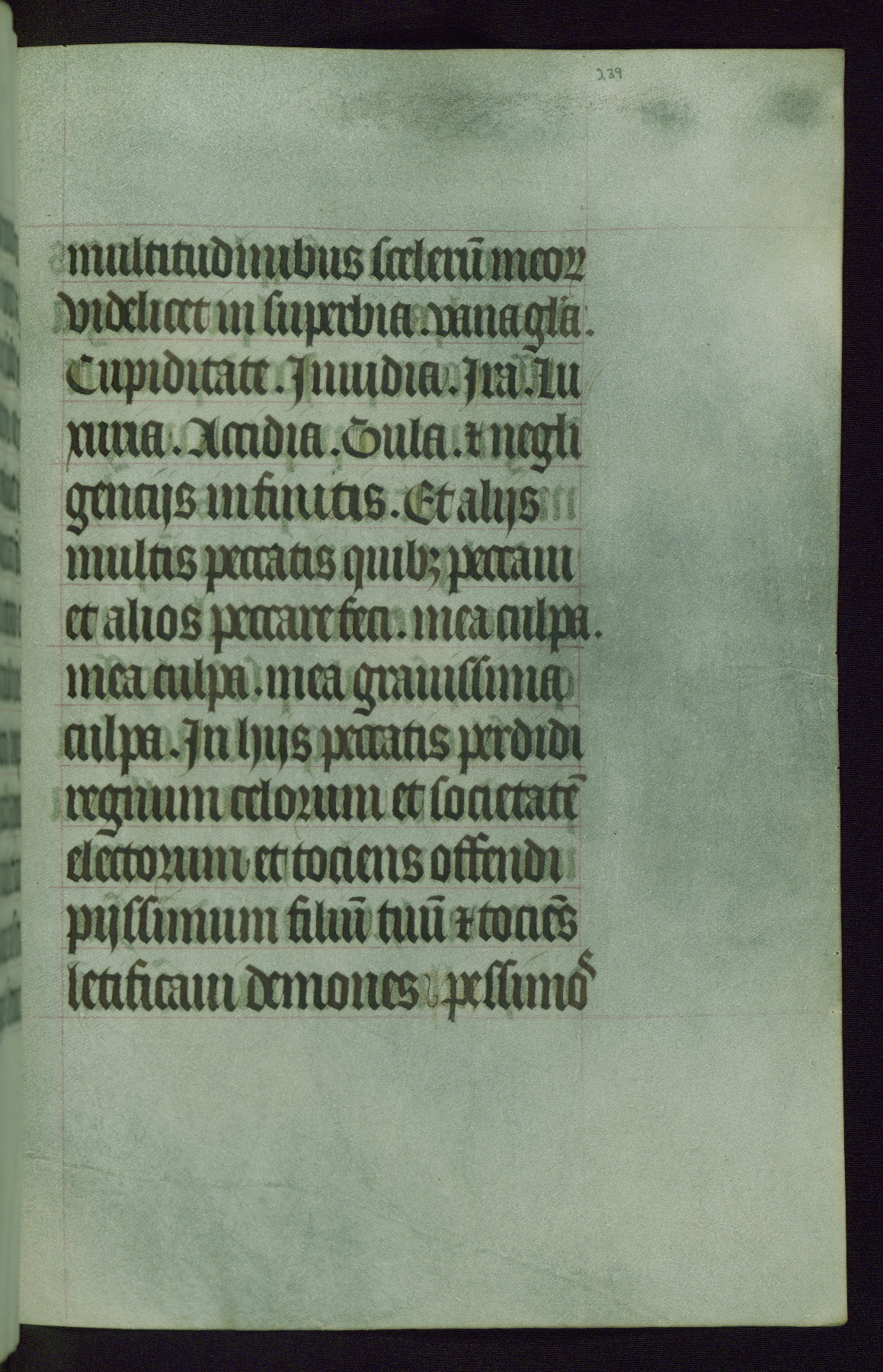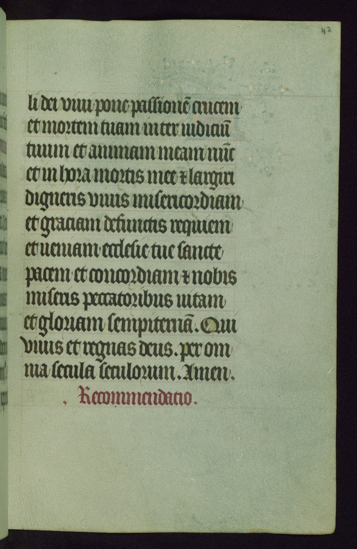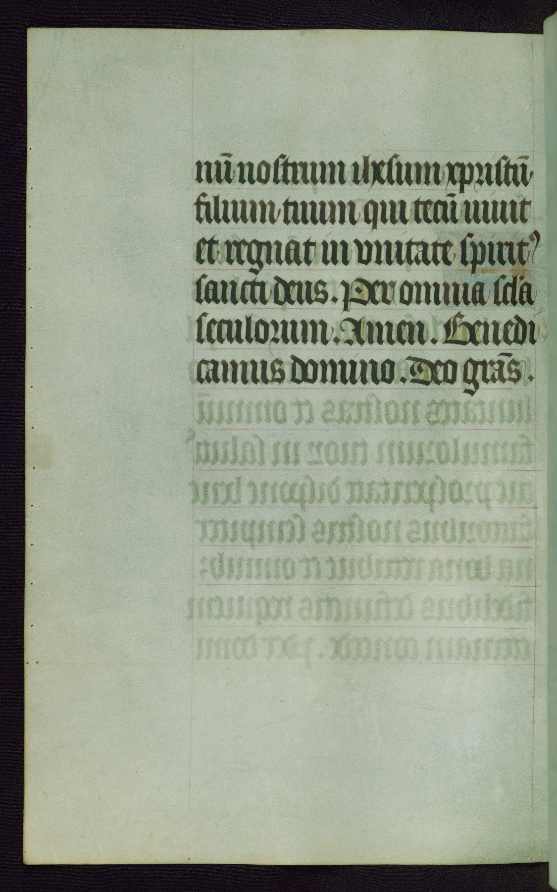 This Book of Hours, ca. 1460, was completed for use of Rome and illuminated under the influence, if not the direct participation, of Willem Vrelant. There remain twenty-two extant marginal calendar illustrations, thirteen extant full-page miniatures (many of which are paired with opening suffrages, perhaps suggesting a certain amount of significance to the owner), and one historiated initial. The contemporary binding, signed Livinus Stuaert, is dated 1477 and is most likely of Bruges or Ghent origin. It is thought that the first owner was French due to the French headings throughout and prominent fleur-de-lis figurations decorating the binding. Further, the first owner was likely female, suggested by the ways in which the book was structured to facilitate legibility. This is evinced by the large size of the script and the lack of abbreviations. While much of the text is standard, there remains evidence of personal significance and preference. This is seen in the chosen illuminations for those sections that are most significant to the owner. Most illuminations are paired with the opening page of staple Hours; however, many are accompanied by individual suffrages, constituting a large portion of the beginning of the manuscript. Personal preference is also shown in those sections of text that stray from the standard. The devotional sequence of this manuscript is notable for its sheer length and diversity of prayers as well as its inclusion of a French prayer not of official liturgy (fols. 215r-219v). The first collection of three prayers is headed and written in French. The prayer is attributed to St. Augustine and is described to guarantee a transformation of tribulation into joy through Christ's mercy, but only if the suppliant recites the prayer for thirty consecutive days. While it is not uncommon for evidence of an owner's predilections to surface in a Book of Hours, the particularly divergent features of this book allow readers to glean an intimate view of the patron.