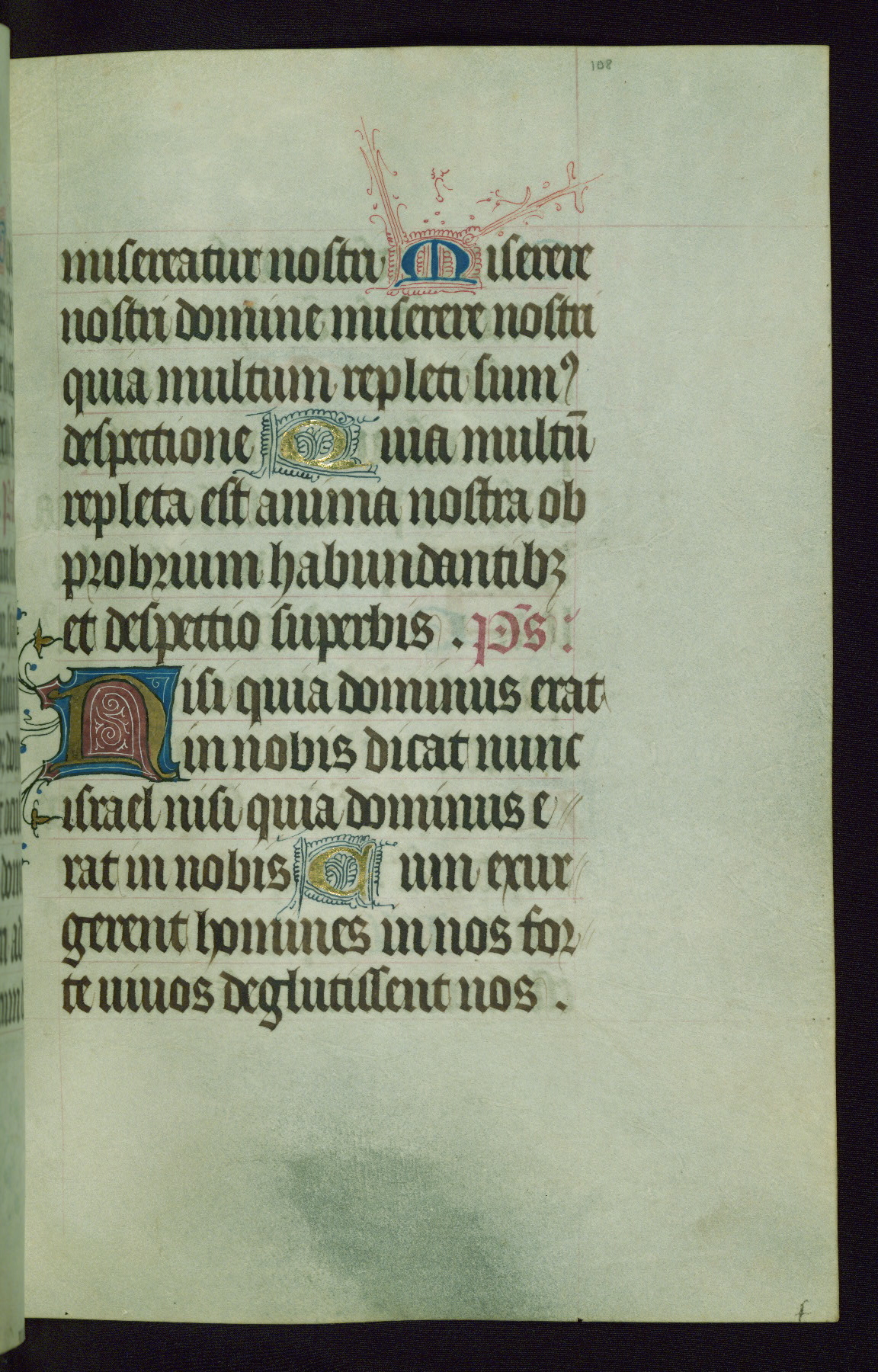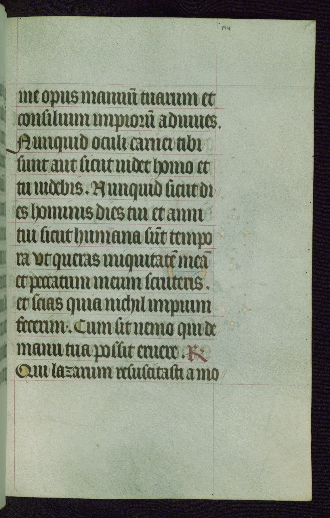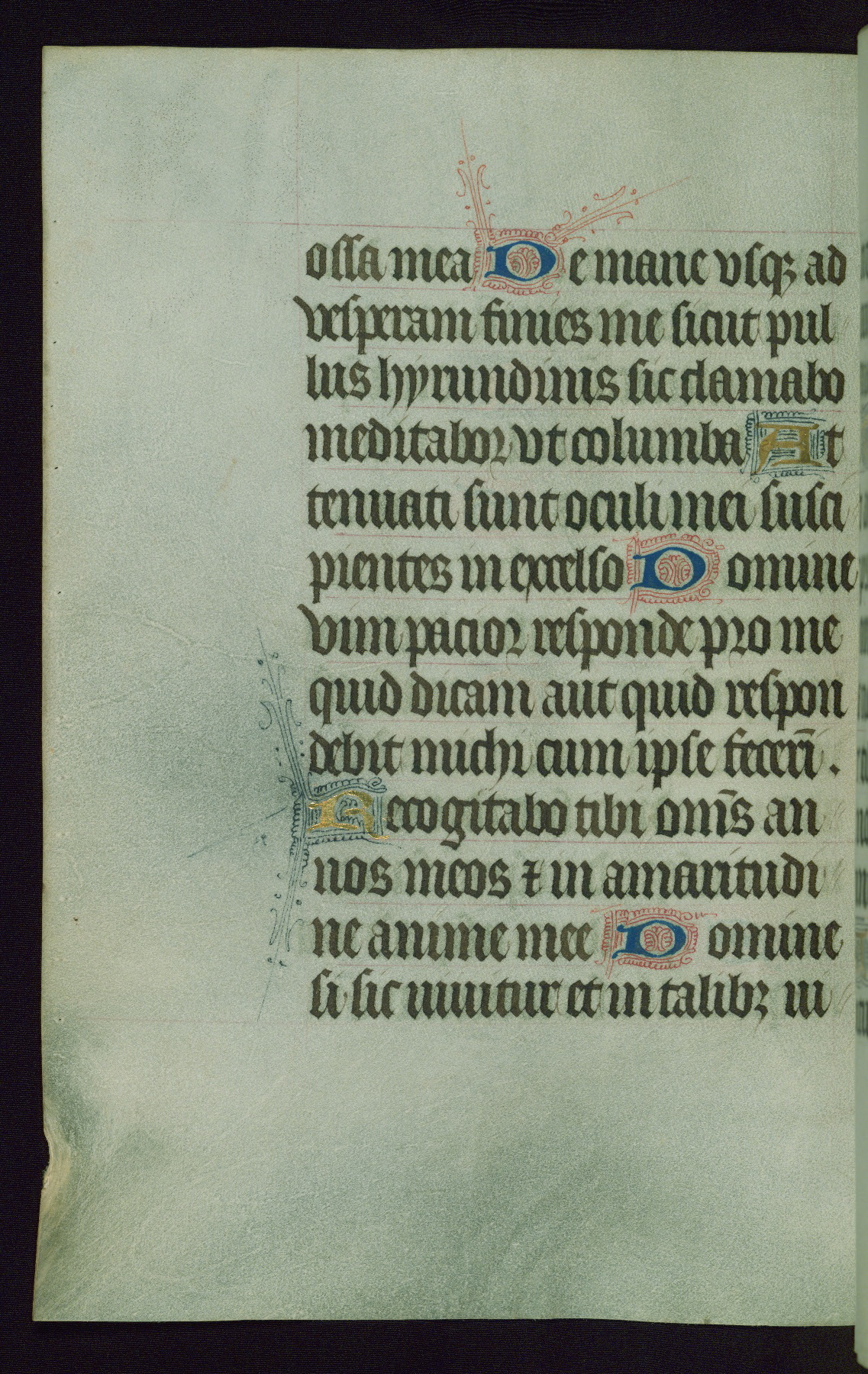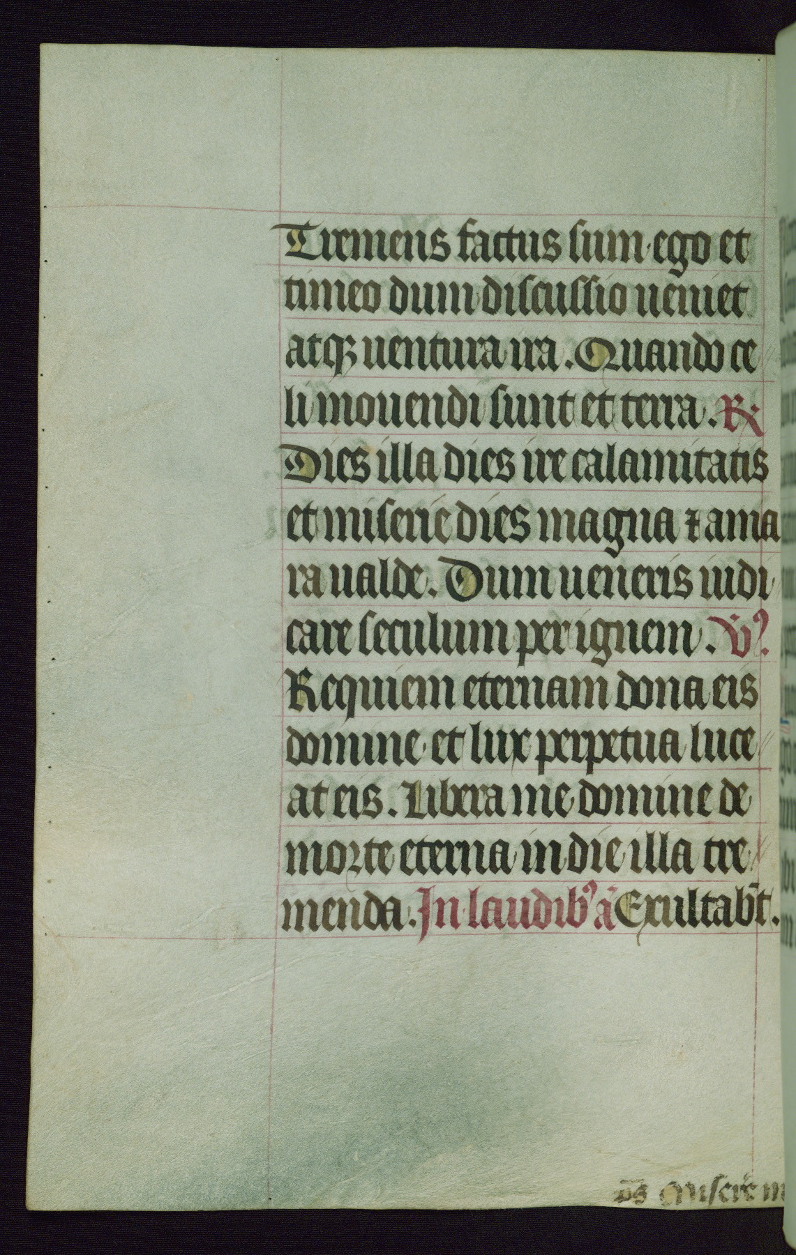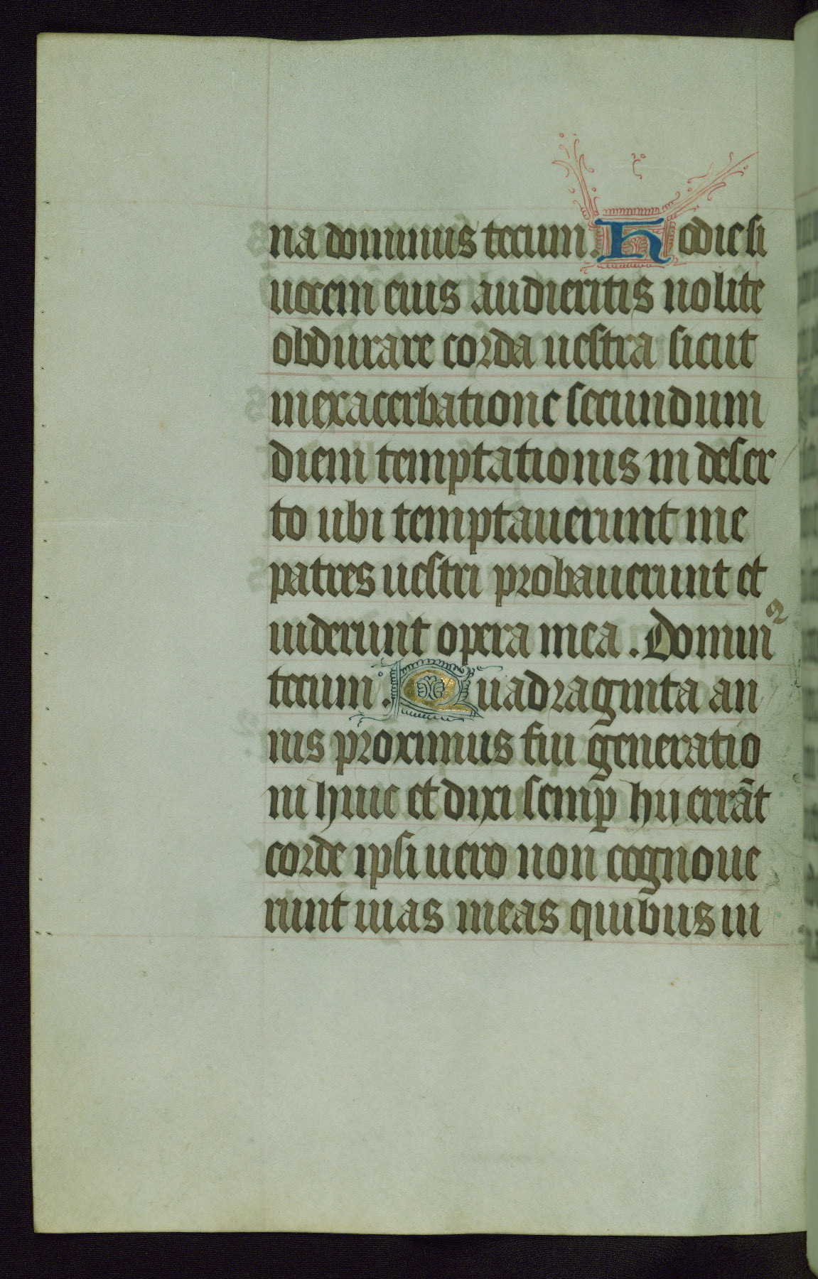 This Book of Hours, ca. 1460, was completed for use of Rome and illuminated under the influence, if not the direct participation, of Willem Vrelant. There remain twenty-two extant marginal calendar illustrations, thirteen extant full-page miniatures (many of which are paired with opening suffrages, perhaps suggesting a certain amount of significance to the owner), and one historiated initial. The contemporary binding, signed Livinus Stuaert, is dated 1477 and is most likely of Bruges or Ghent origin. It is thought that the first owner was French due to the French headings throughout and prominent fleur-de-lis figurations decorating the binding. Further, the first owner was likely female, suggested by the ways in which the book was structured to facilitate legibility. This is evinced by the large size of the script and the lack of abbreviations. While much of the text is standard, there remains evidence of personal significance and preference. This is seen in the chosen illuminations for those sections that are most significant to the owner. Most illuminations are paired with the opening page of staple Hours; however, many are accompanied by individual suffrages, constituting a large portion of the beginning of the manuscript. Personal preference is also shown in those sections of text that stray from the standard. The devotional sequence of this manuscript is notable for its sheer length and diversity of prayers as well as its inclusion of a French prayer not of official liturgy (fols. 215r-219v). The first collection of three prayers is headed and written in French. The prayer is attributed to St. Augustine and is described to guarantee a transformation of tribulation into joy through Christ's mercy, but only if the suppliant recites the prayer for thirty consecutive days. While it is not uncommon for evidence of an owner's predilections to surface in a Book of Hours, the particularly divergent features of this book allow readers to glean an intimate view of the patron.