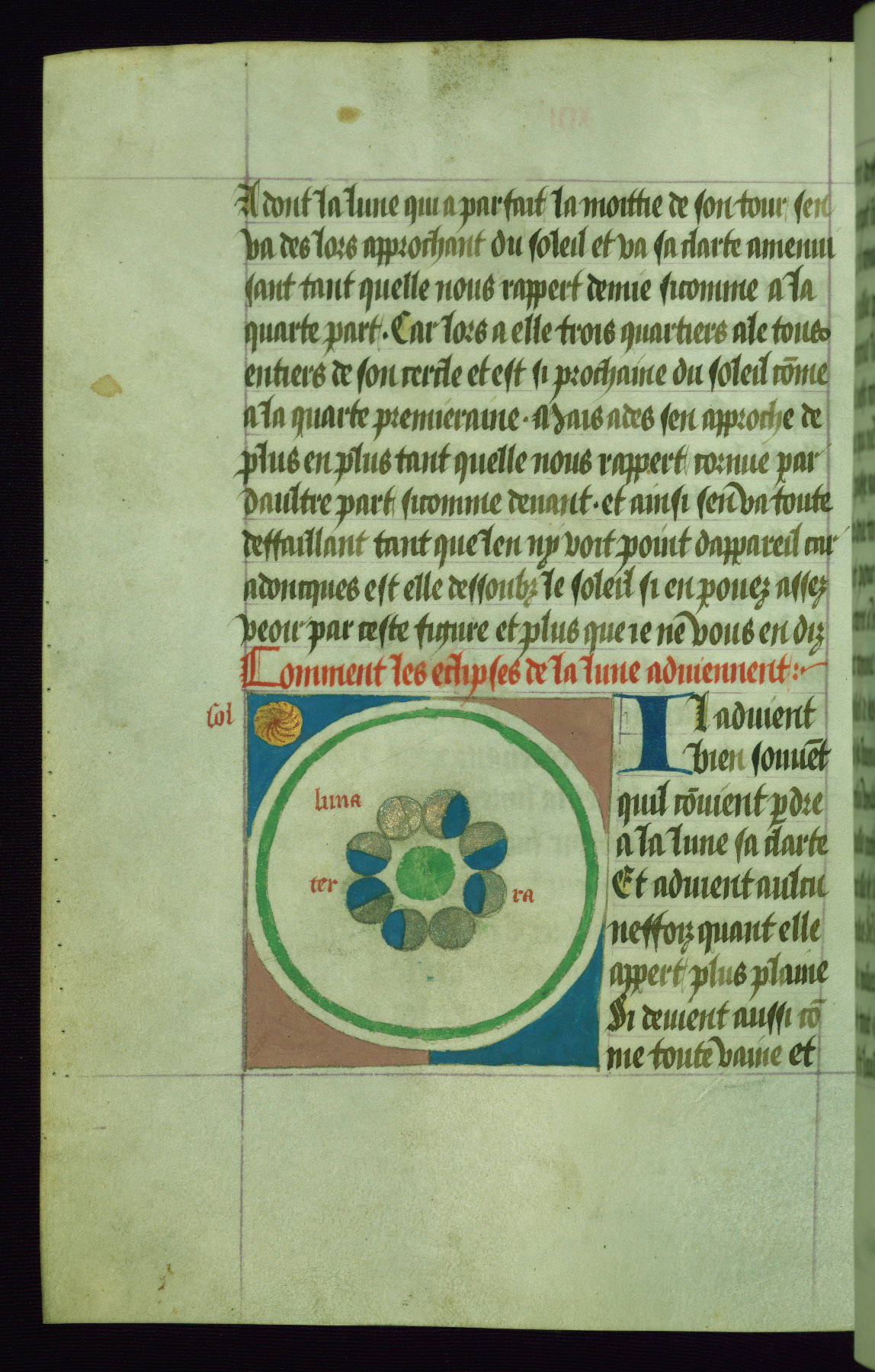 - Text: Comment la lune rechoipt diversement sa clarte et lumiere poeut chascun veour y chi