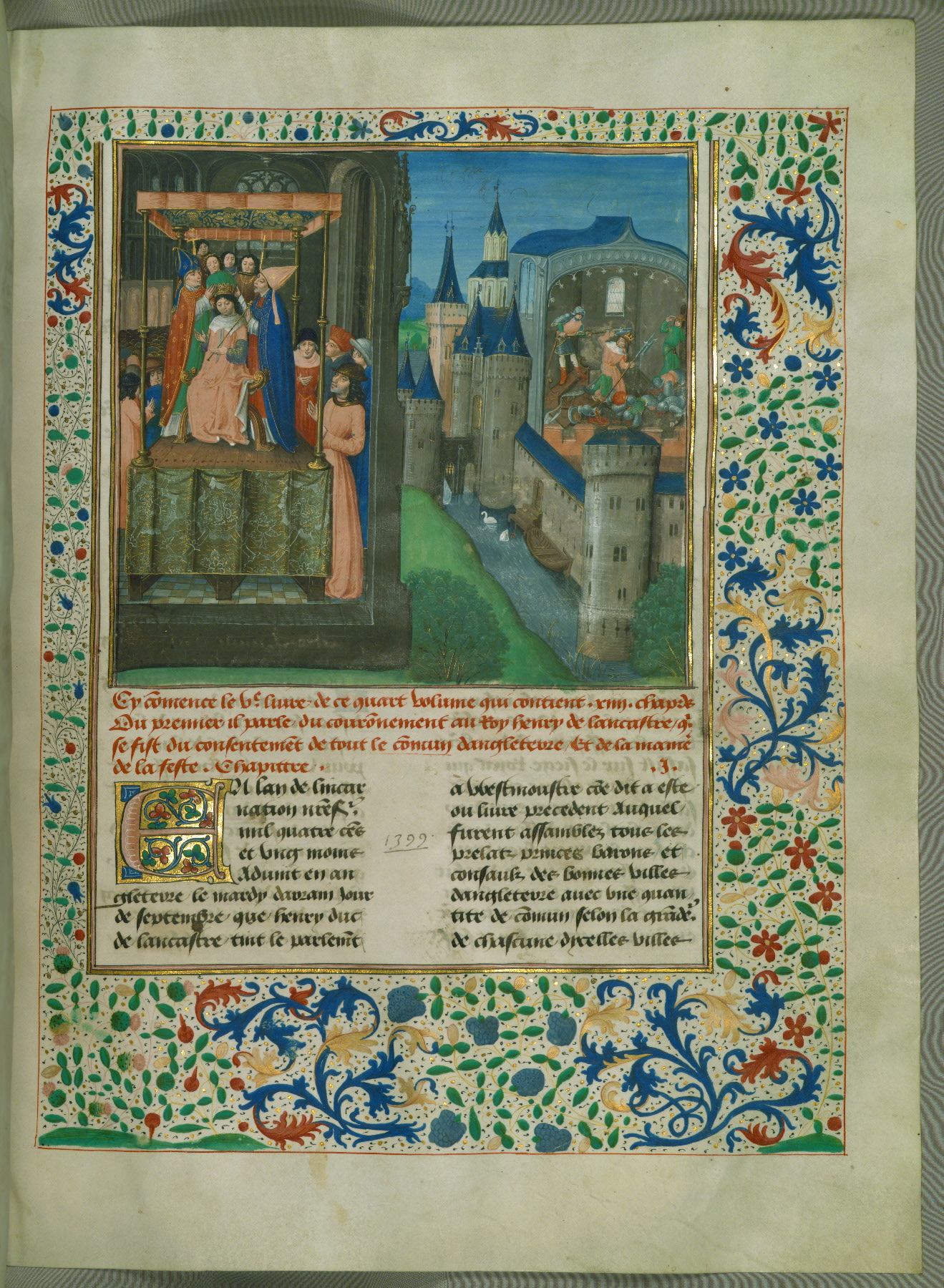 - Text note: Second redaction; heavily relies on the material from the Chroniques de Richard II and Jean Foissart's Chroniques; text in Vol. IV concerns the years proceeding Richard II's coronation in 1377 up to the death of Henry IV in 1413